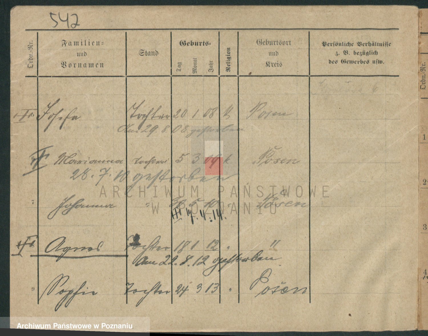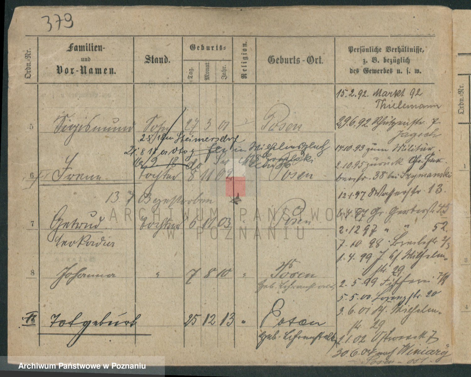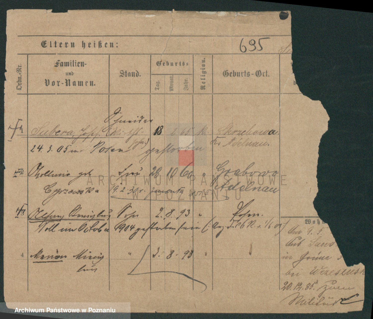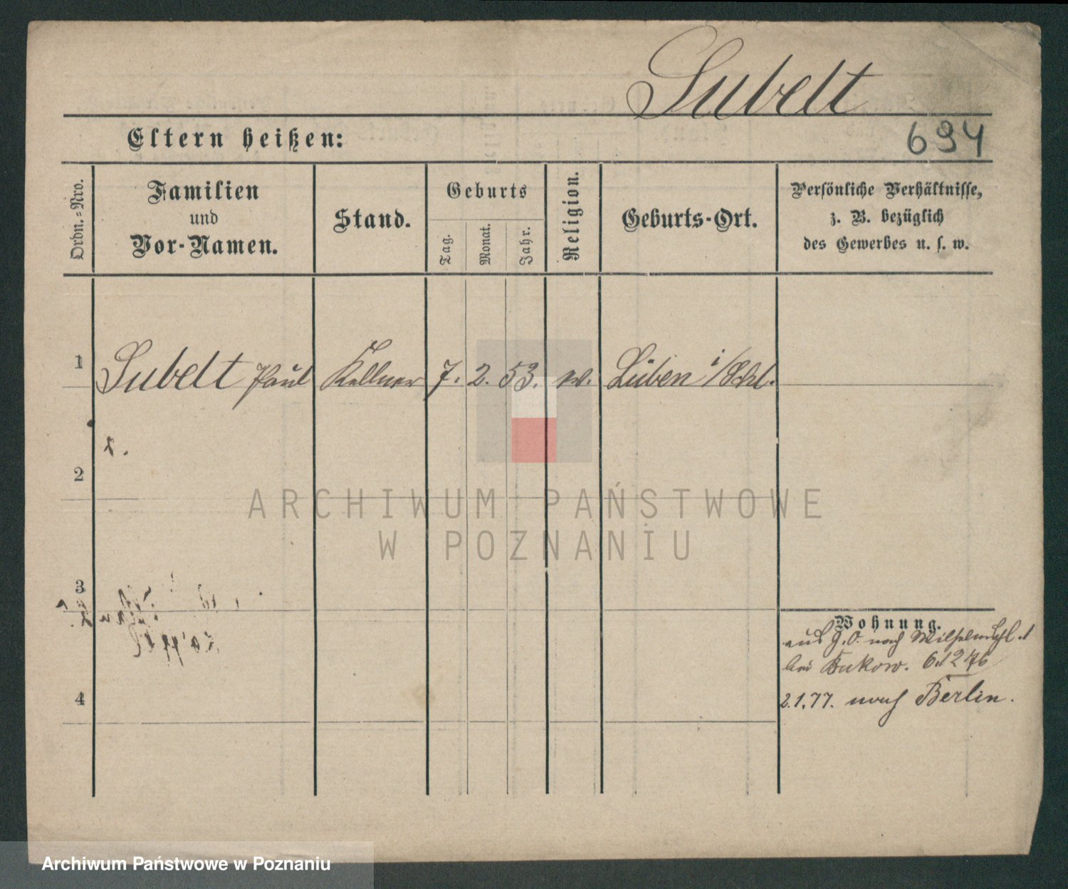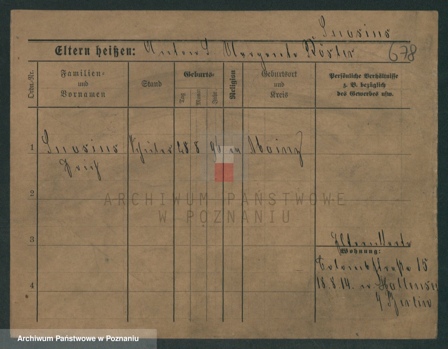 Podgląd karty osobowej dostępny jest po kliknięciu na nazwisko lub ikonkę karty. Można dokonywać powiększenia (ikony na górze) lub przechodzić między kolejnymi skanami (strzałki po bokach).