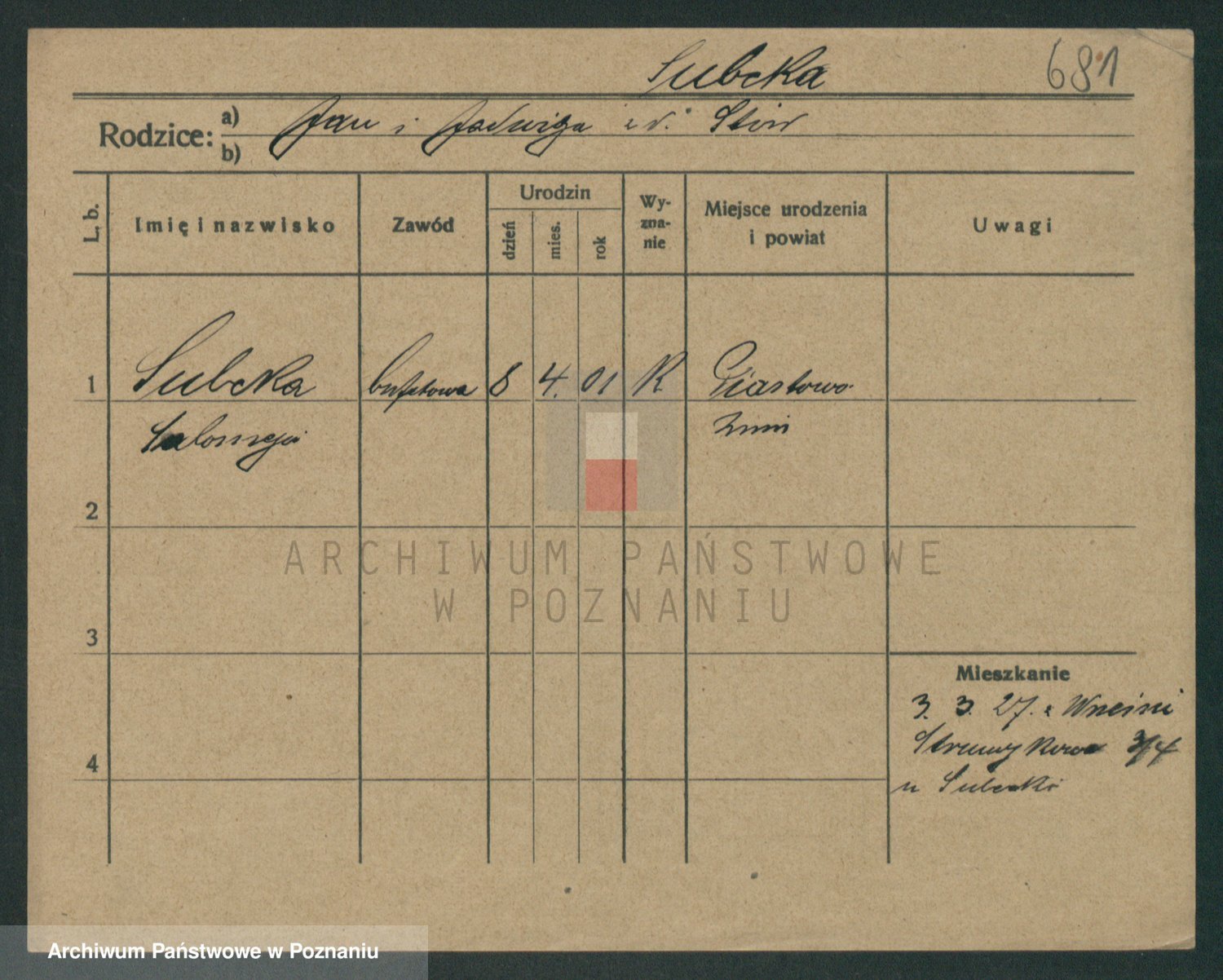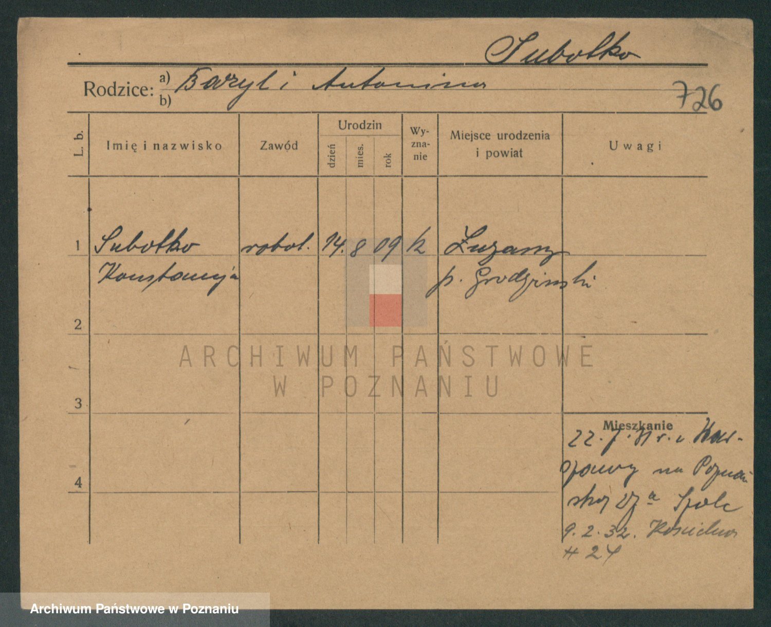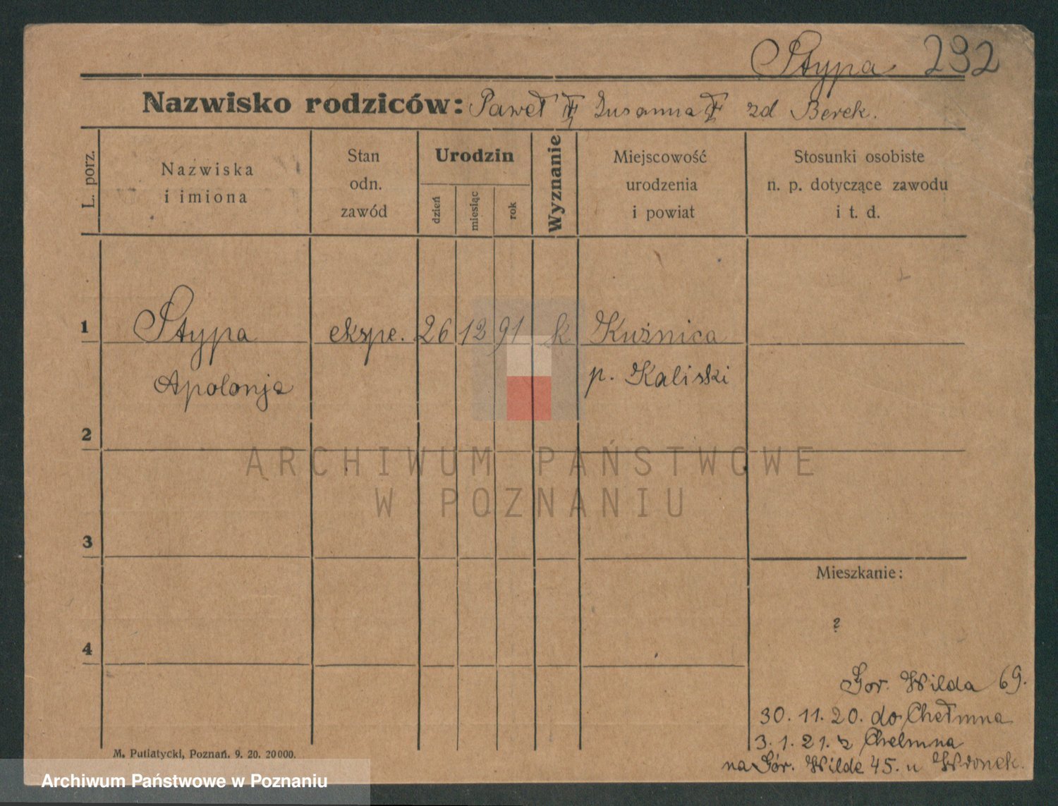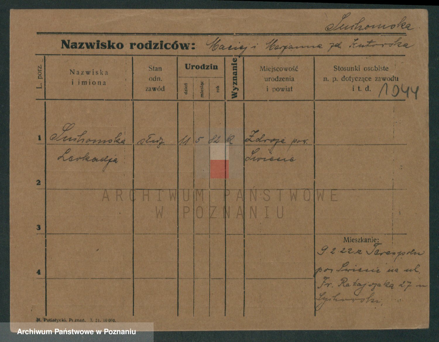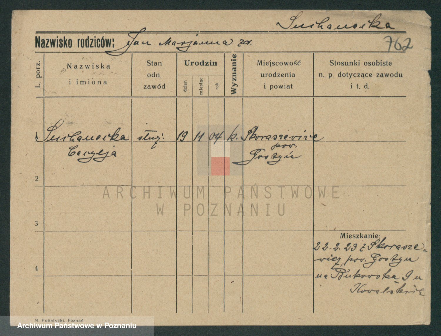 Suchodolski z d. Grajewska, Apolonie