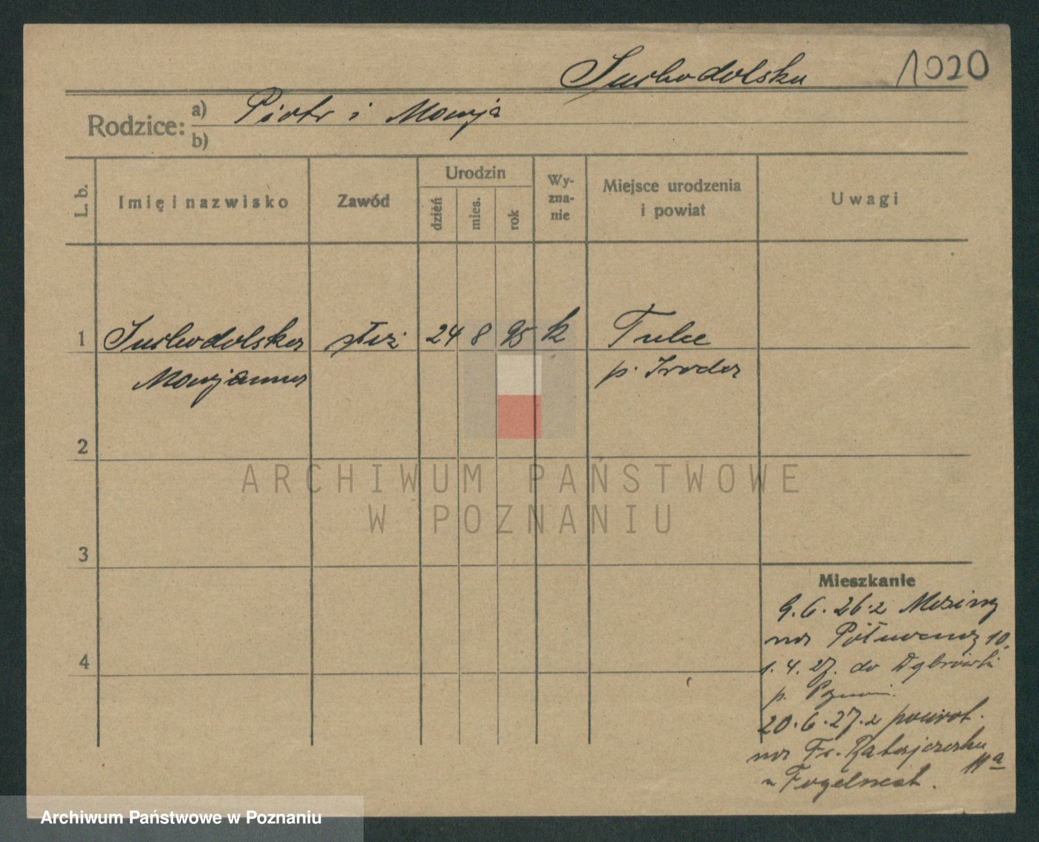 karta: 1020
