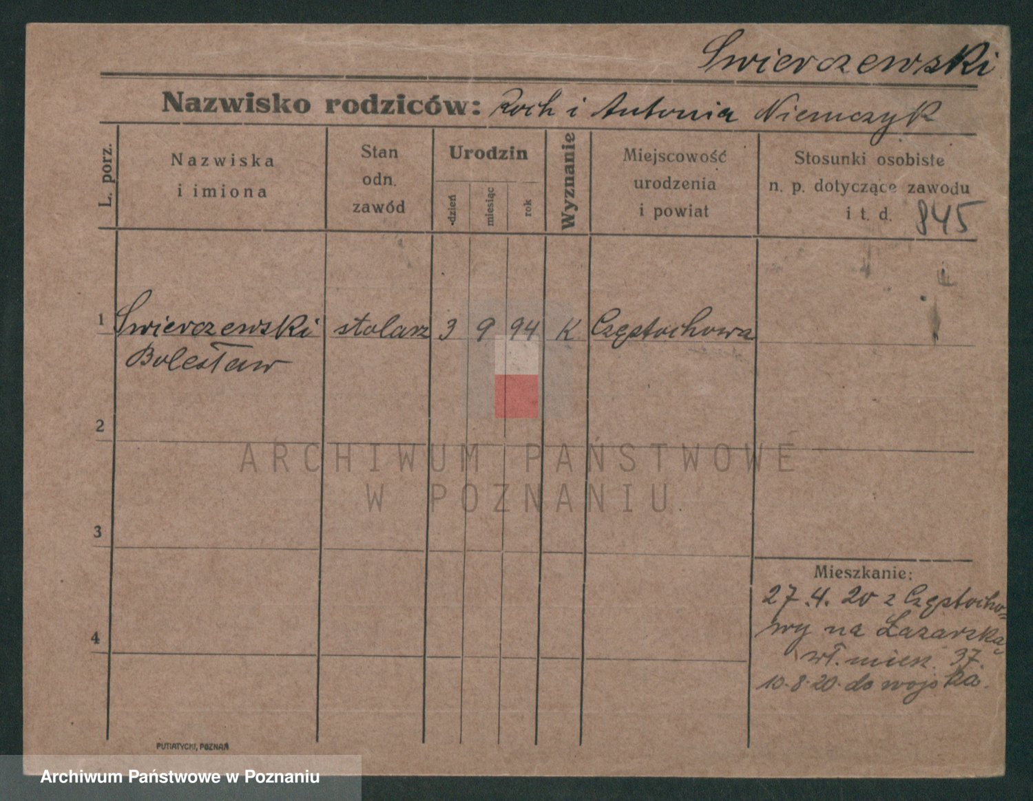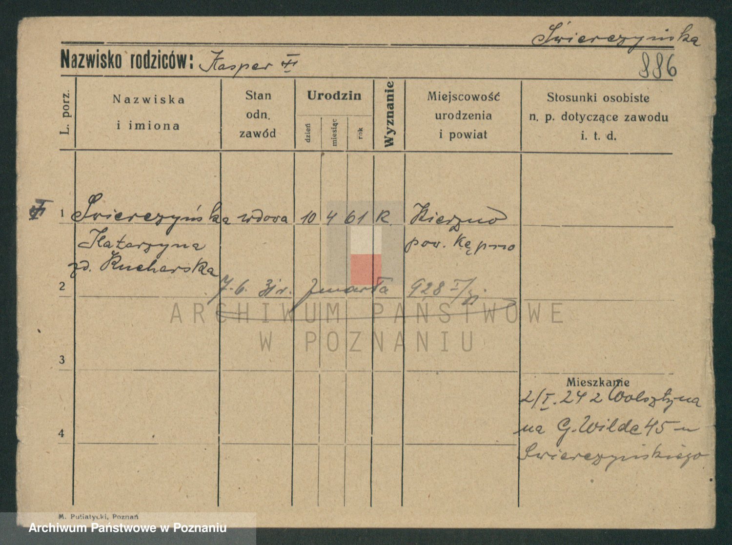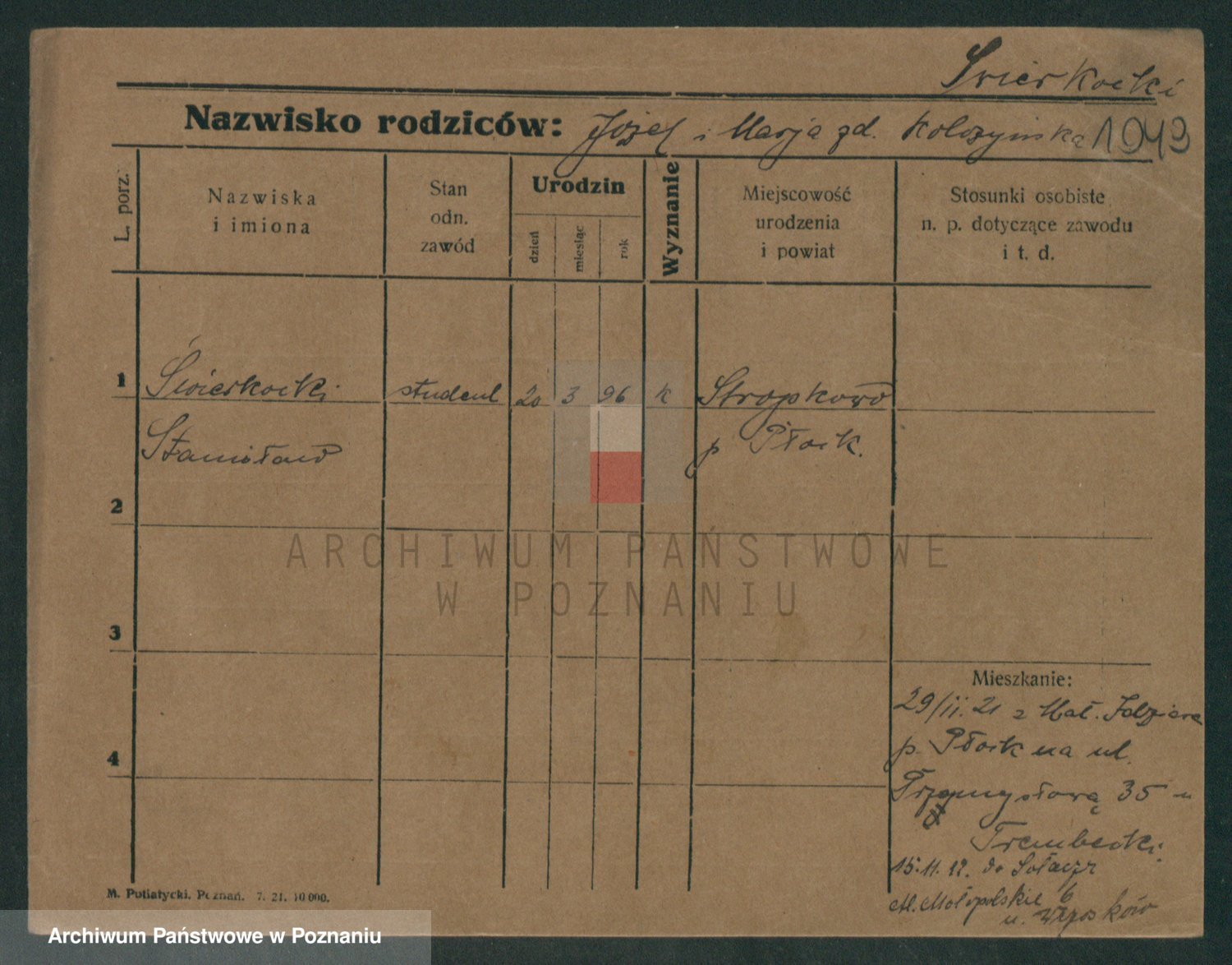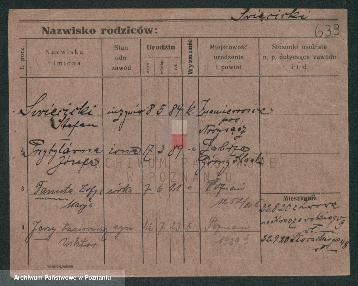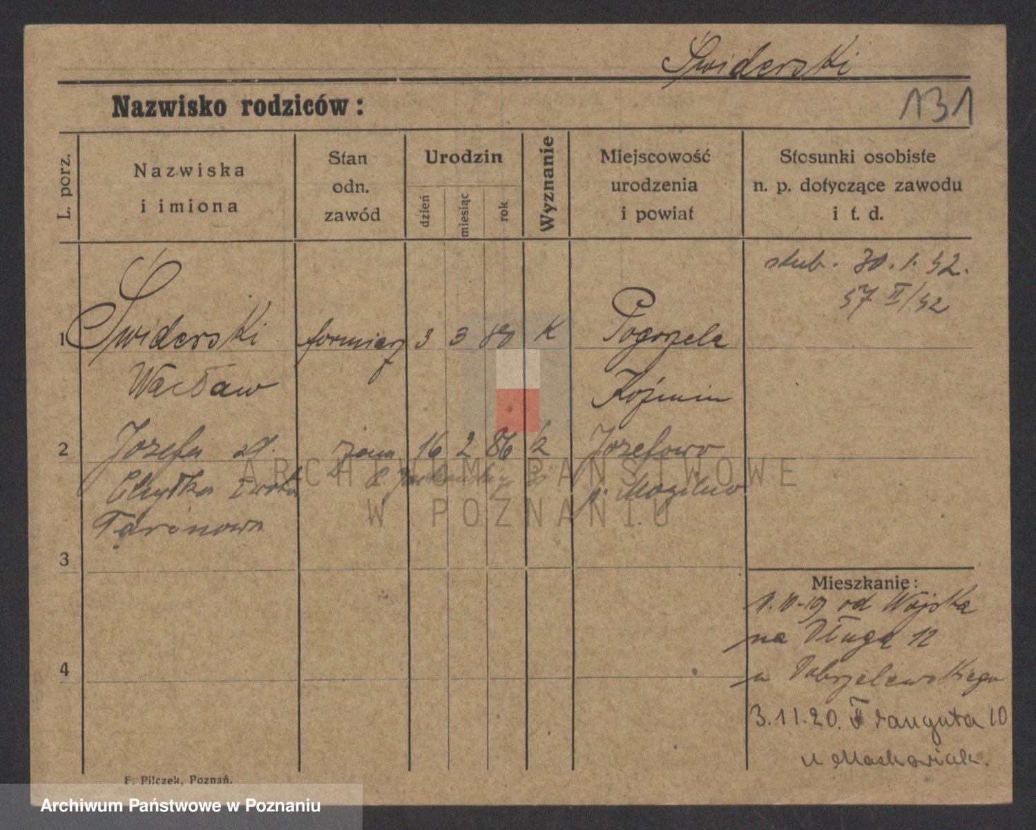 Podgląd karty osobowej dostępny jest po kliknięciu na nazwisko lub ikonkę karty. Można dokonywać powiększenia (ikony na górze) lub przechodzić między kolejnymi skanami (strzałki po bokach).