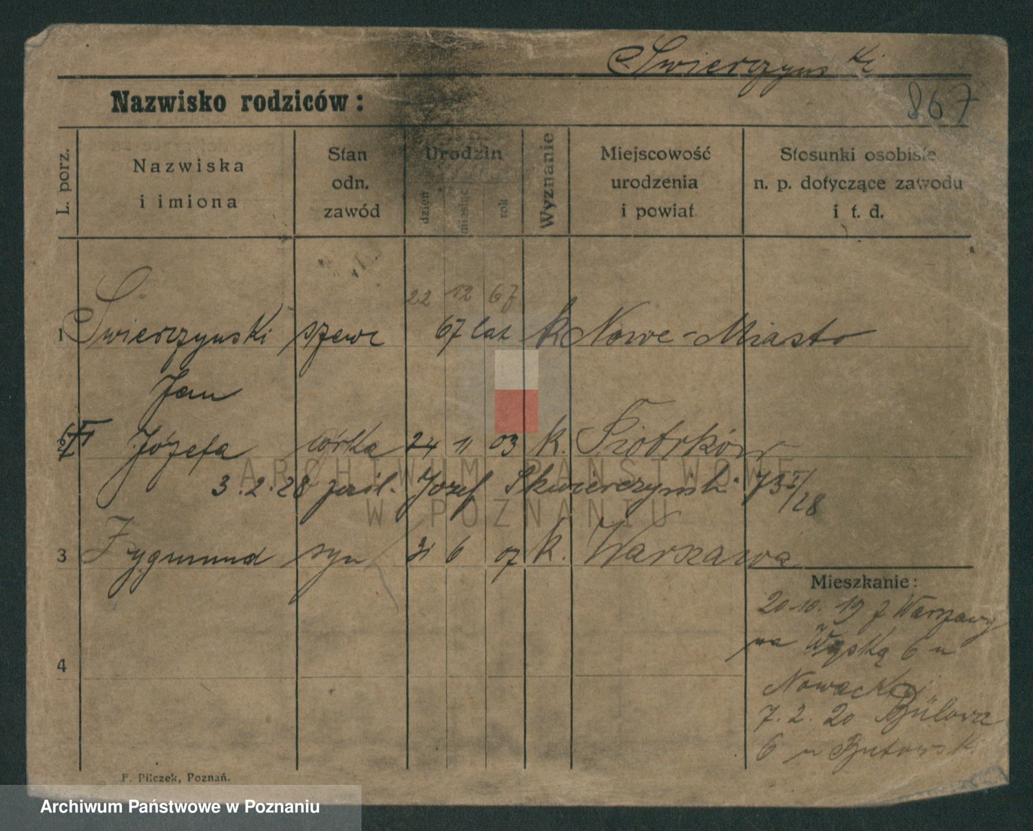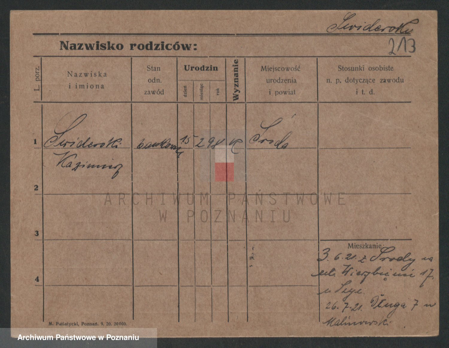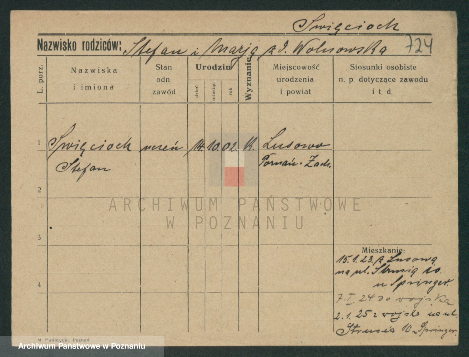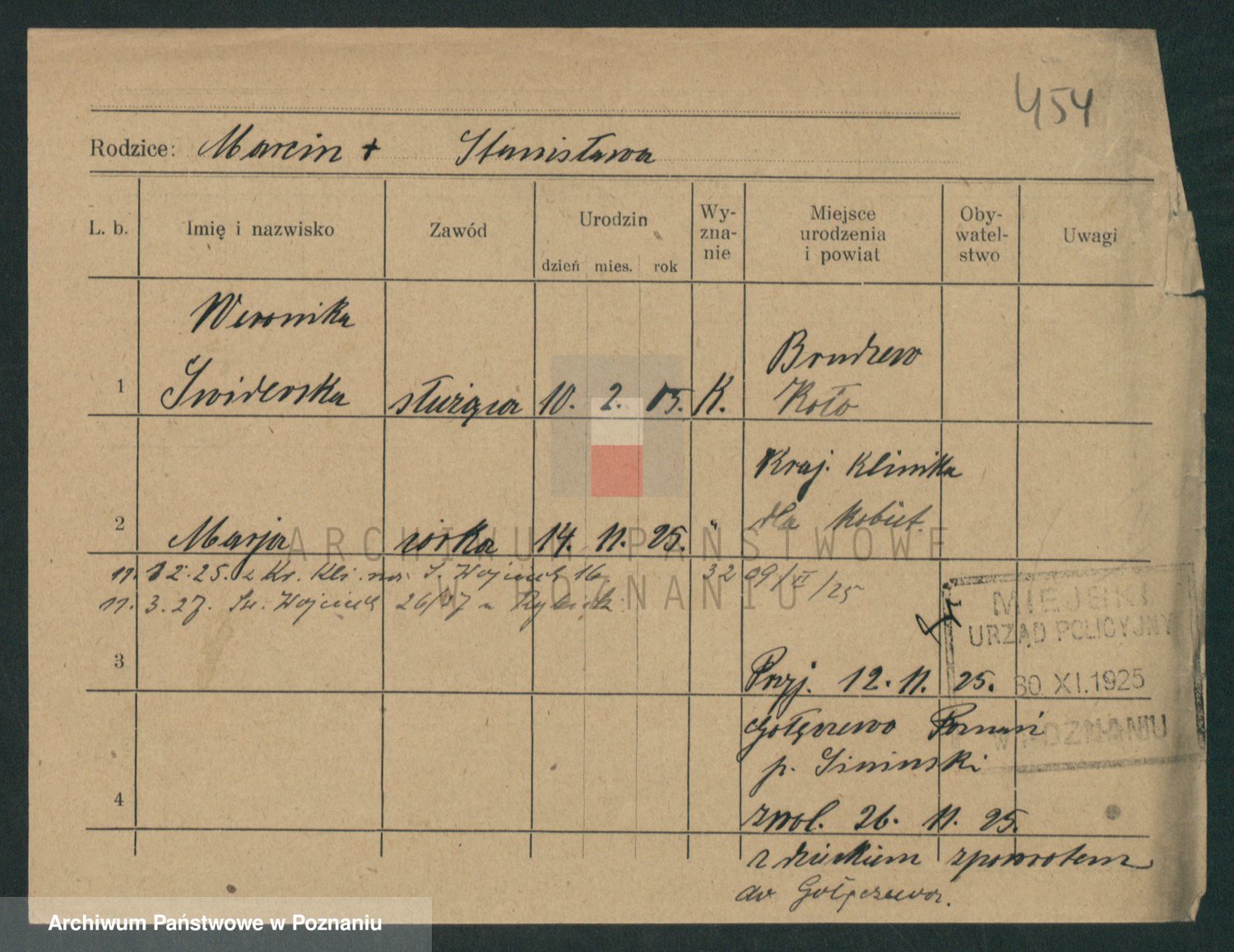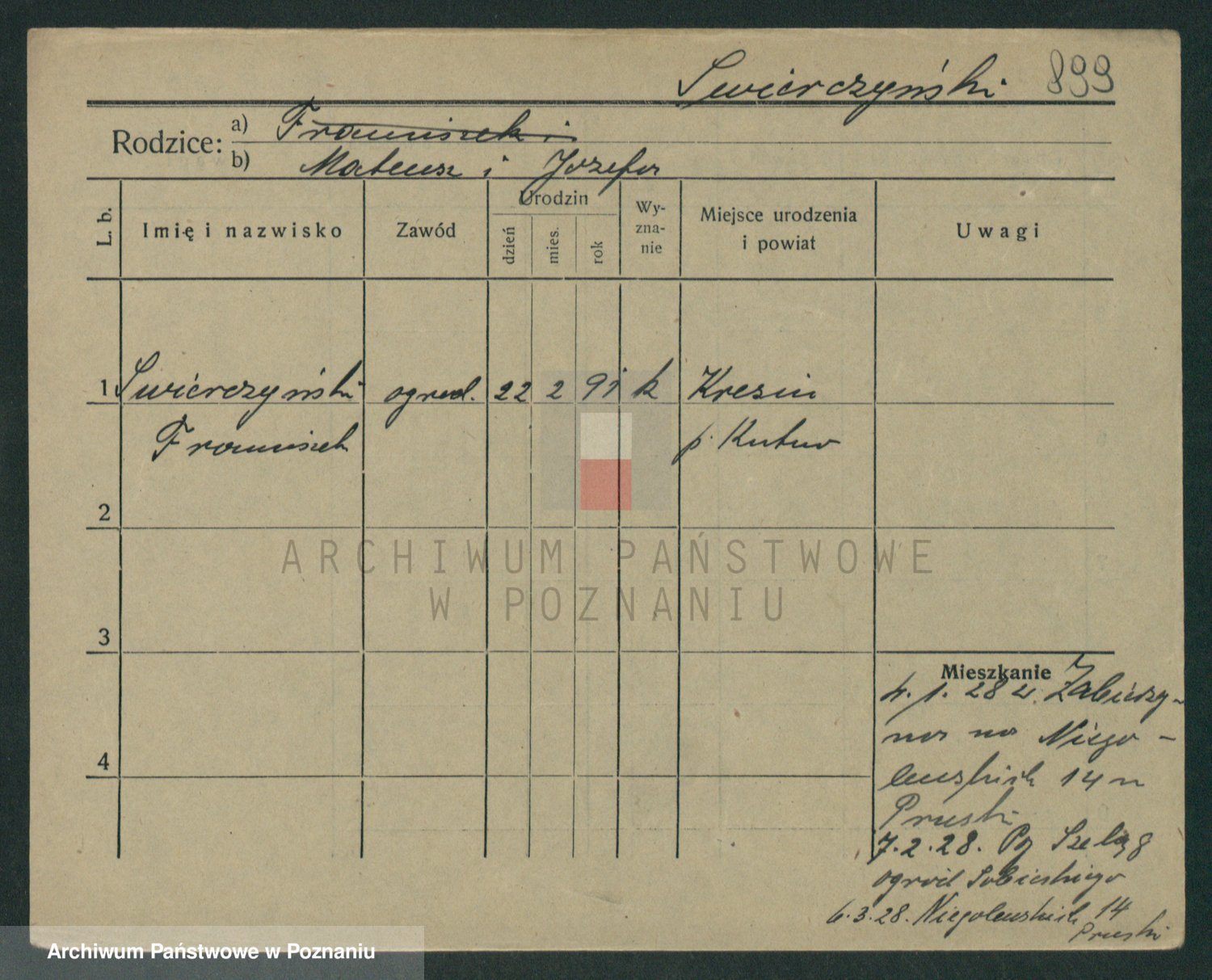 Podgląd karty osobowej dostępny jest po kliknięciu na nazwisko lub ikonkę karty. Można dokonywać powiększenia (ikony na górze) lub przechodzić między kolejnymi skanami (strzałki po bokach).