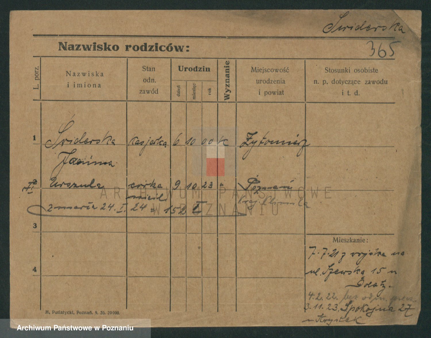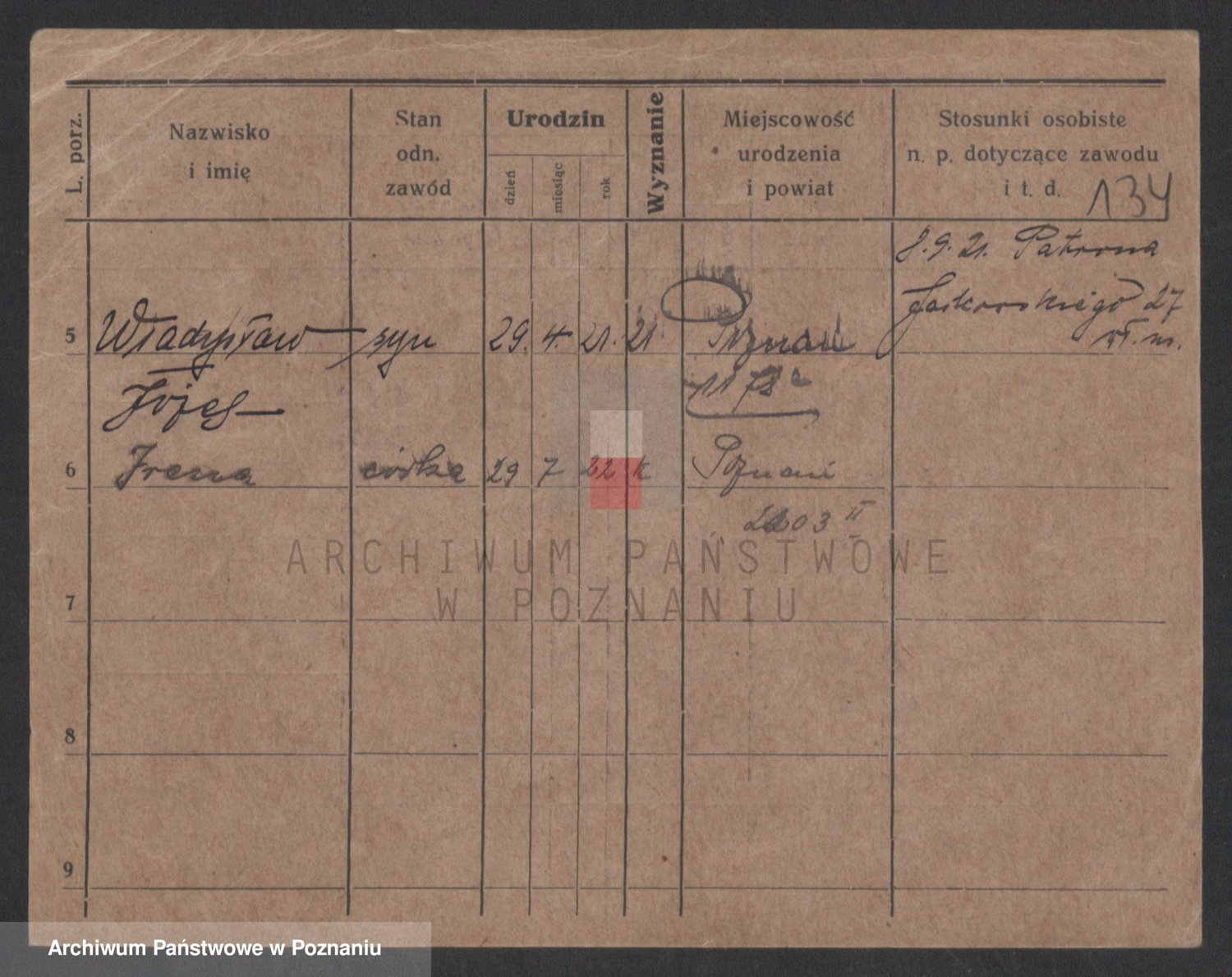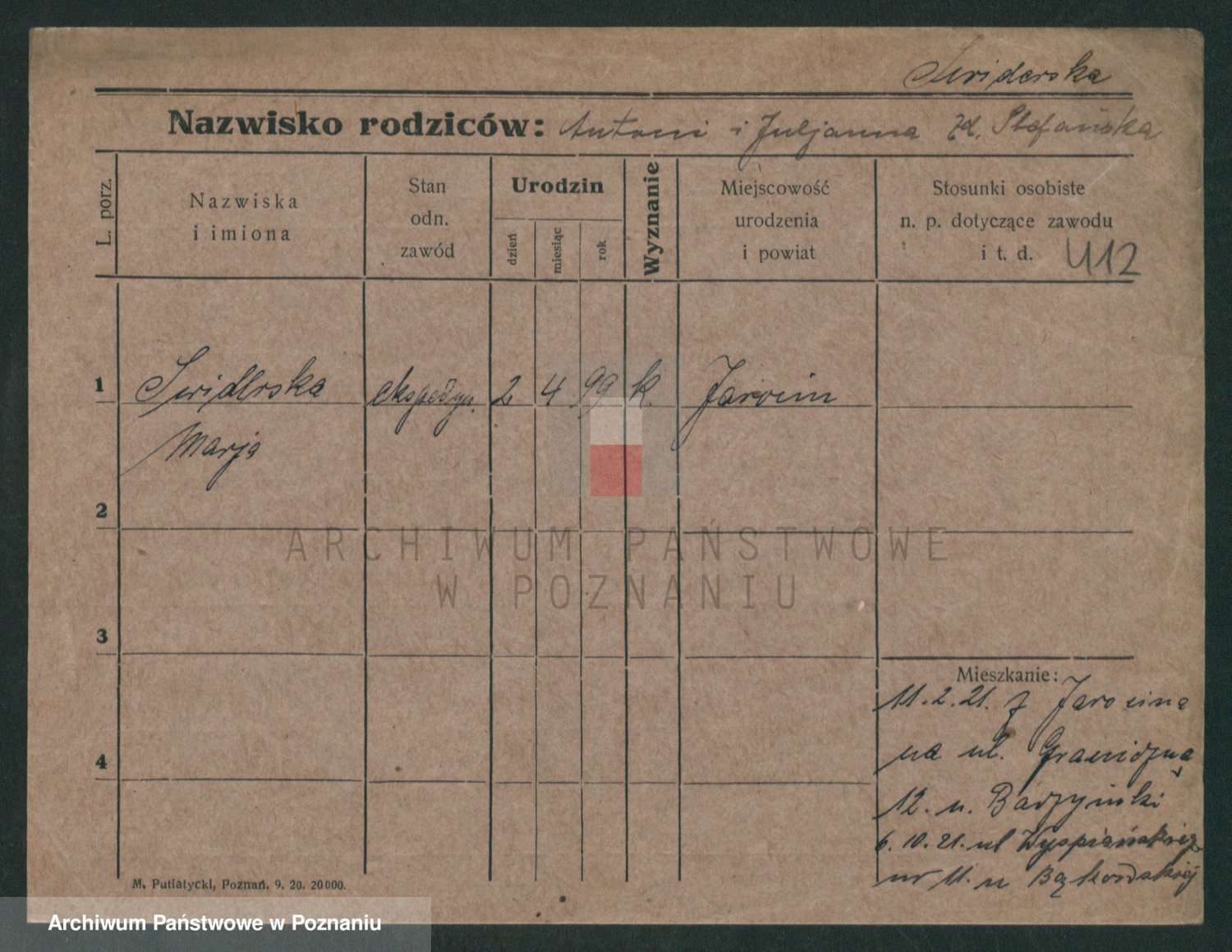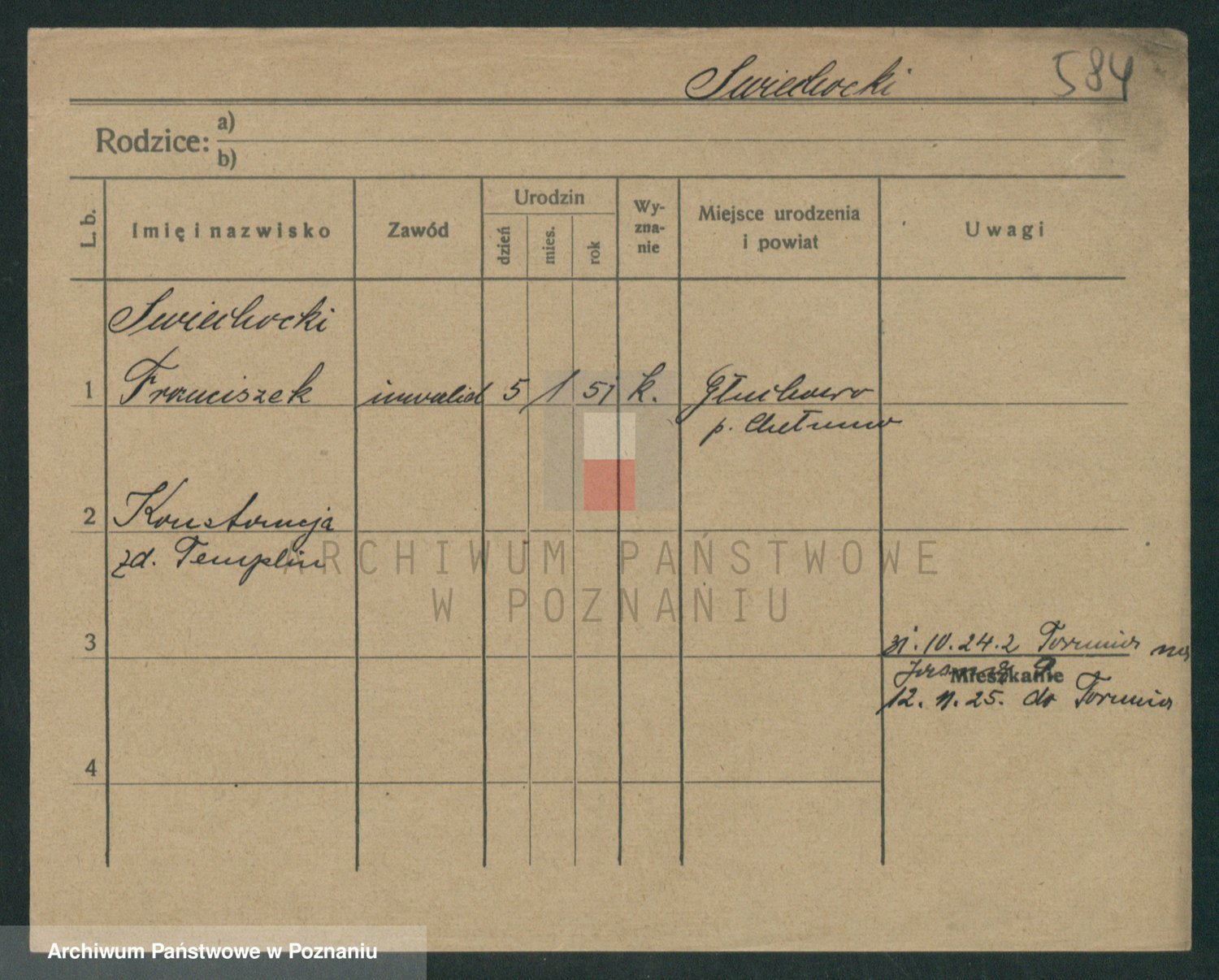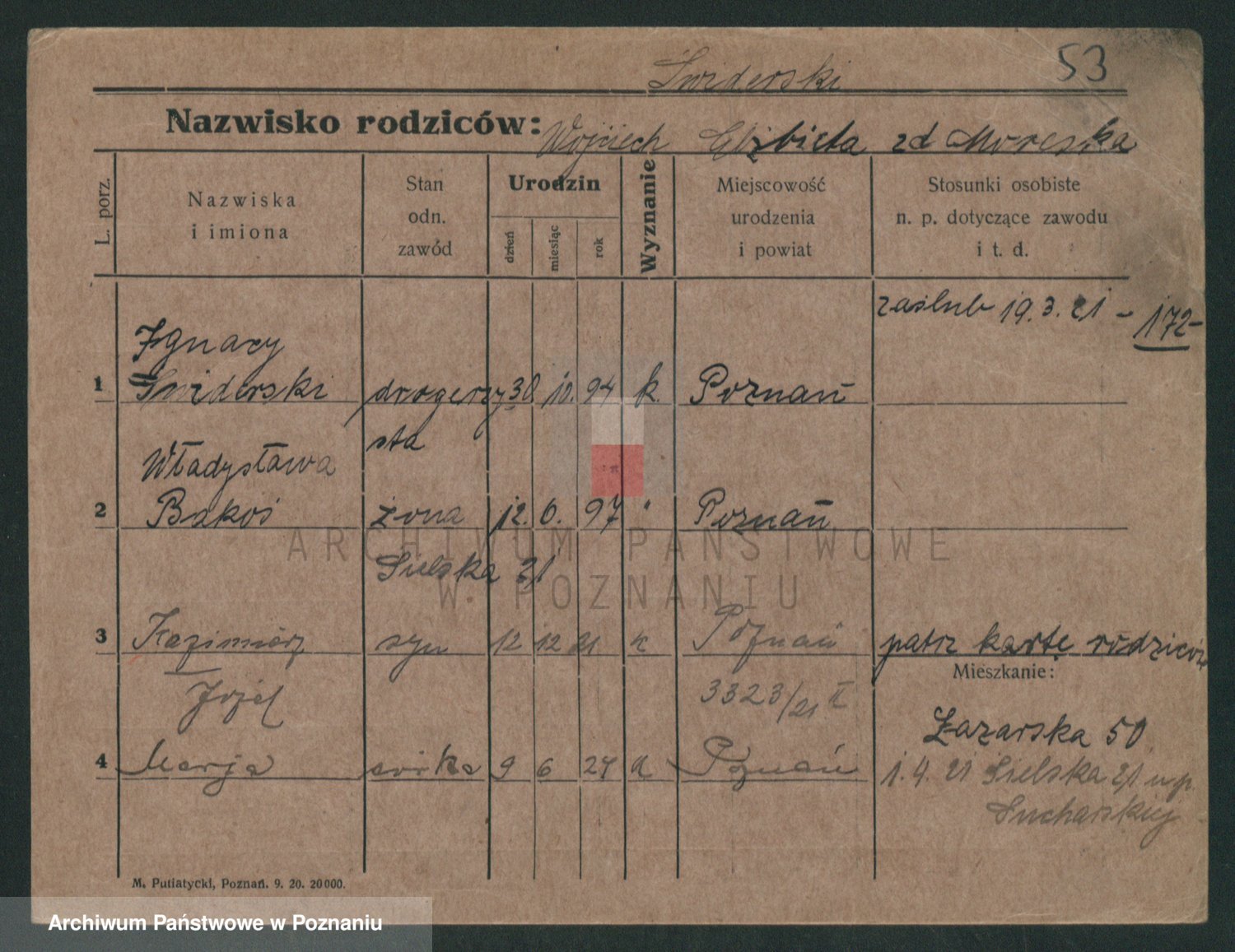Podgląd karty osobowej dostępny jest po kliknięciu na nazwisko lub ikonkę karty. Można dokonywać powiększenia (ikony na górze) lub przechodzić między kolejnymi skanami (strzałki po bokach).