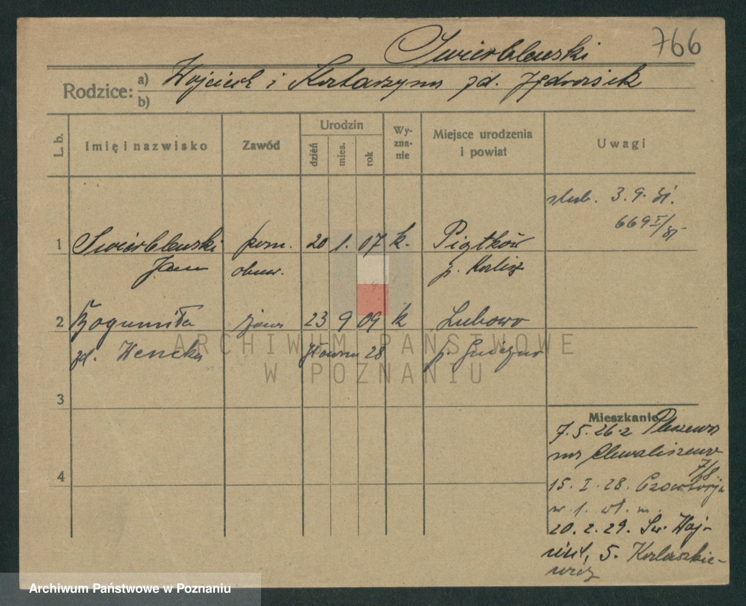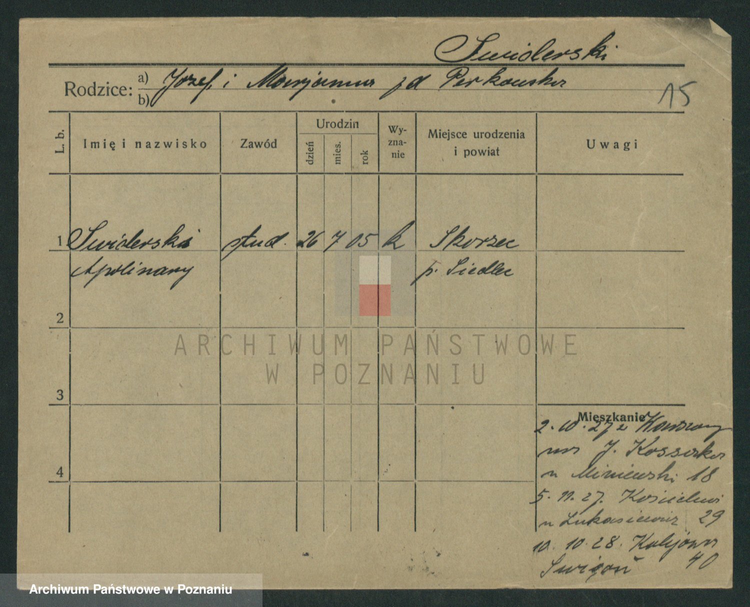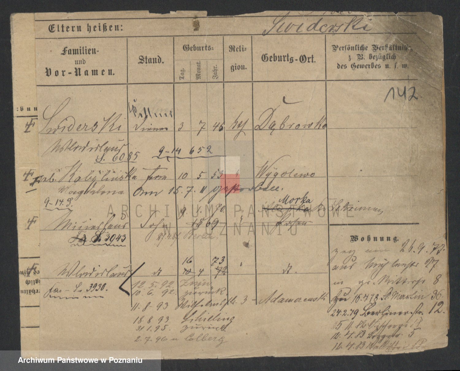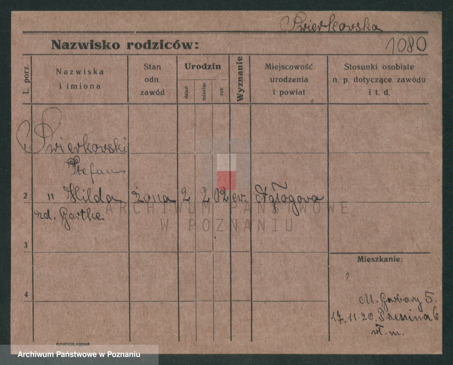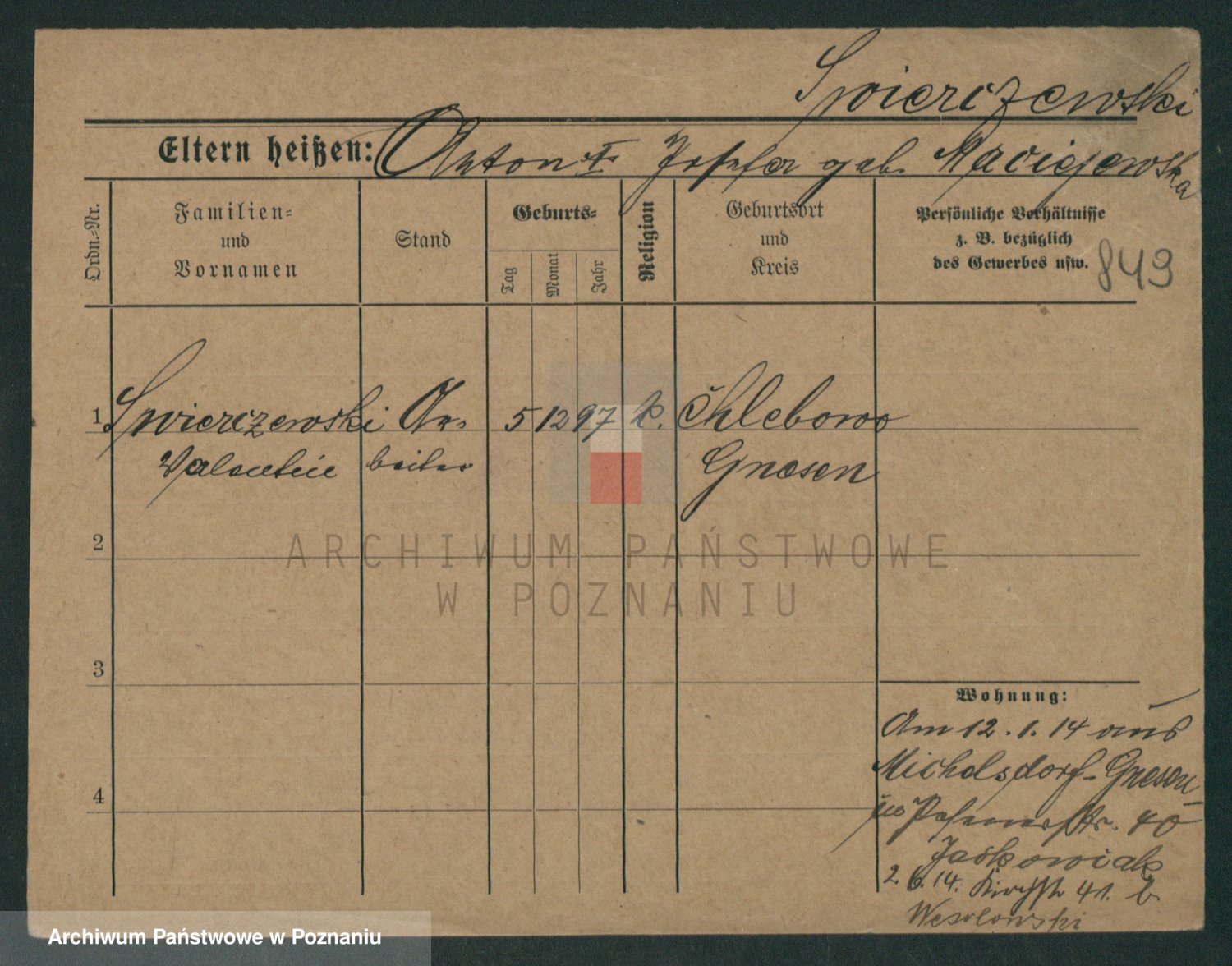 Podgląd karty osobowej dostępny jest po kliknięciu na nazwisko lub ikonkę karty. Można dokonywać powiększenia (ikony na górze) lub przechodzić między kolejnymi skanami (strzałki po bokach).