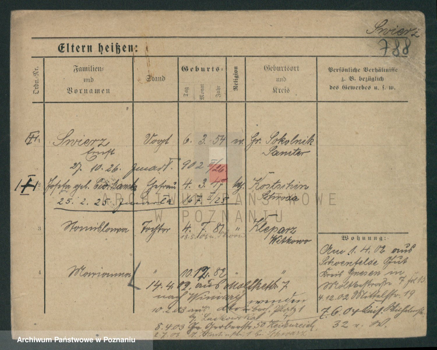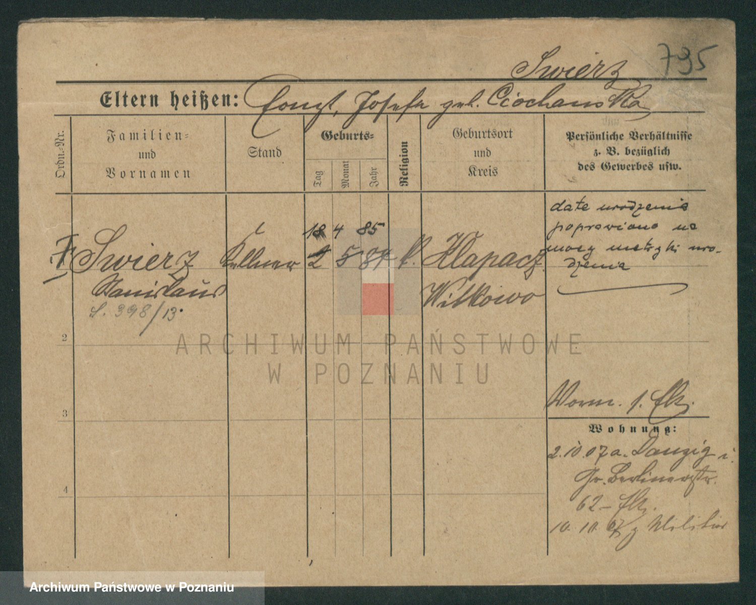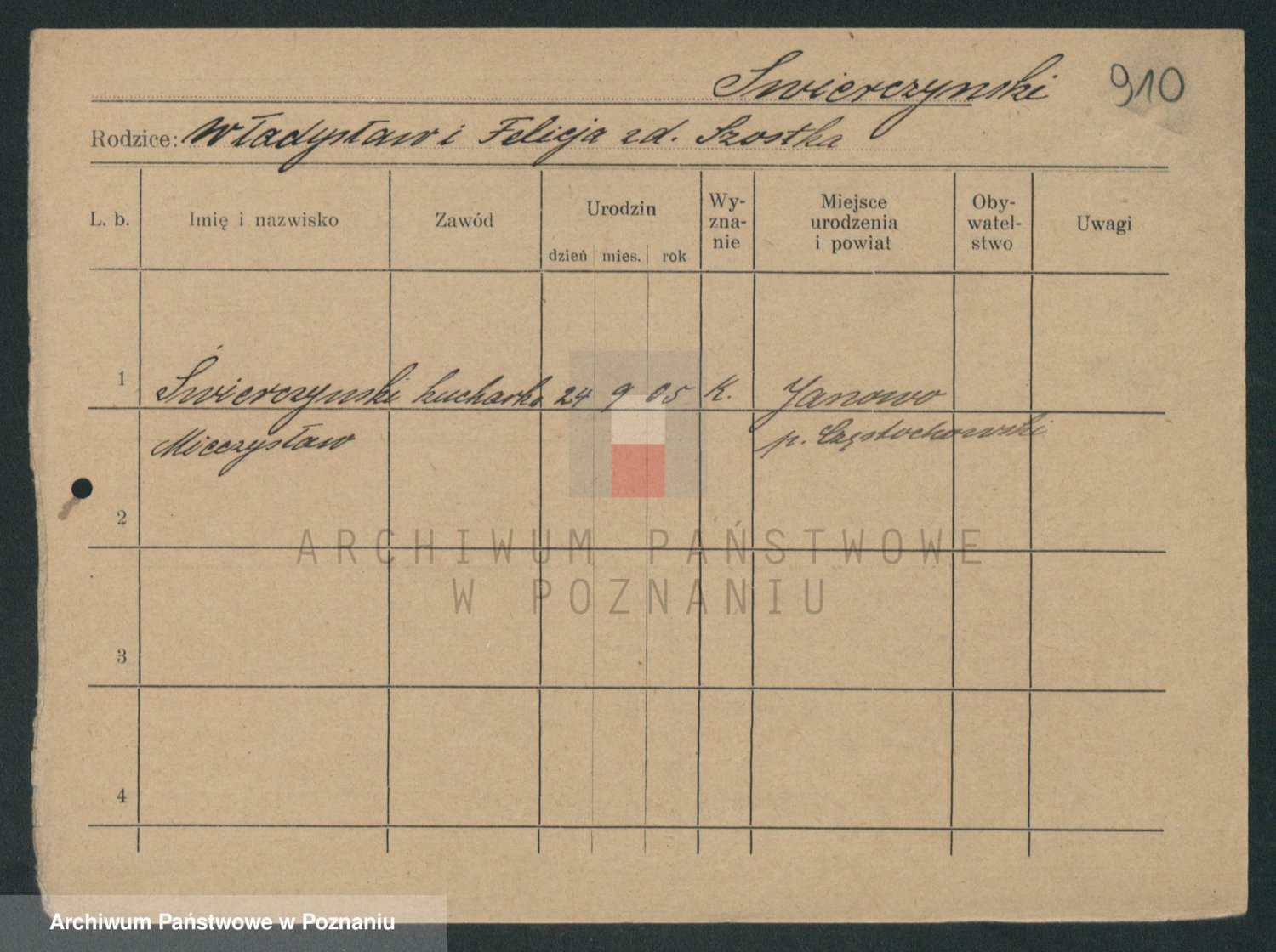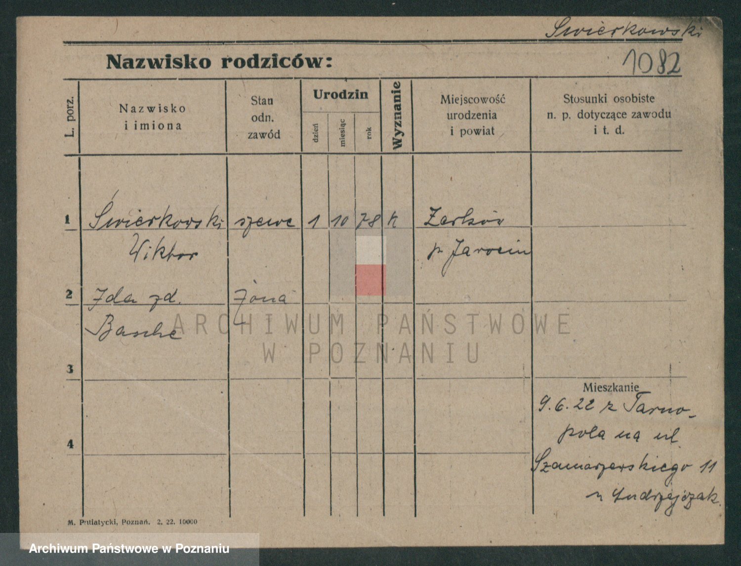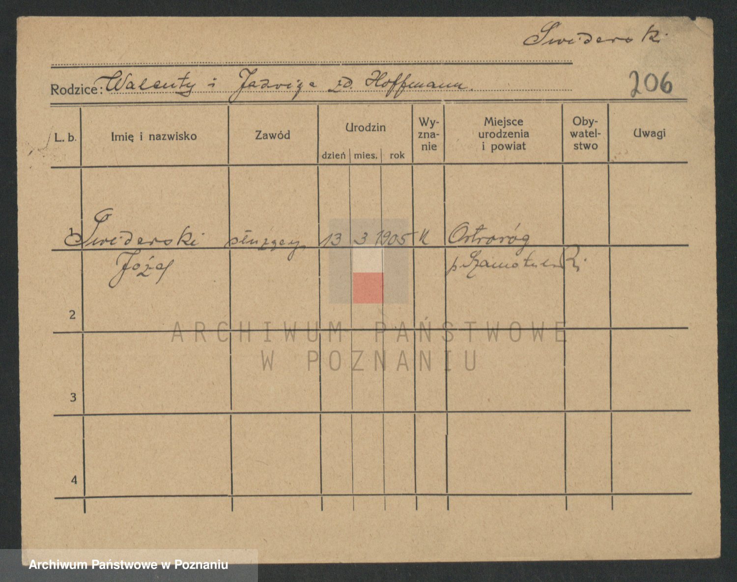 Podgląd karty osobowej dostępny jest po kliknięciu na nazwisko lub ikonkę karty. Można dokonywać powiększenia (ikony na górze) lub przechodzić między kolejnymi skanami (strzałki po bokach).