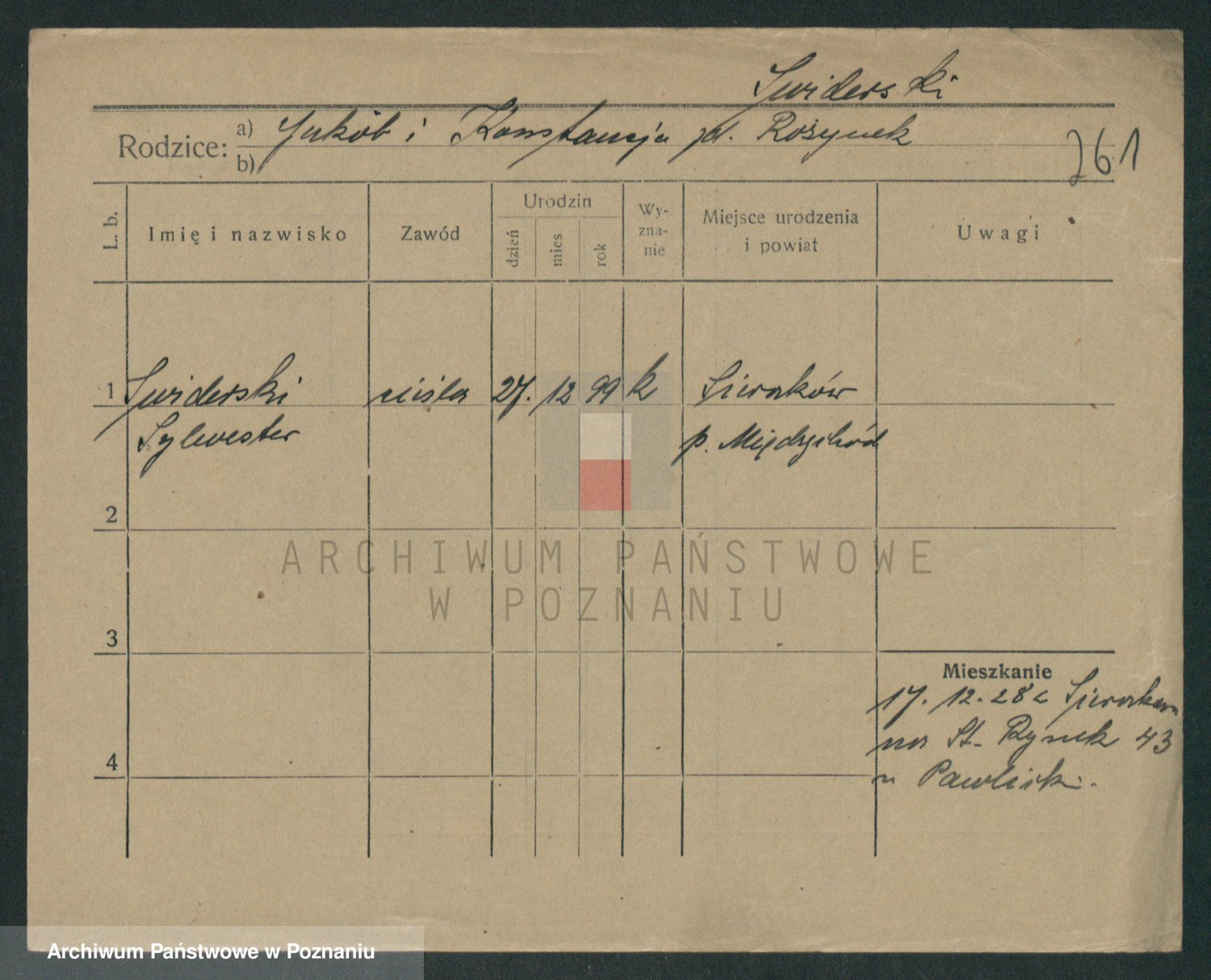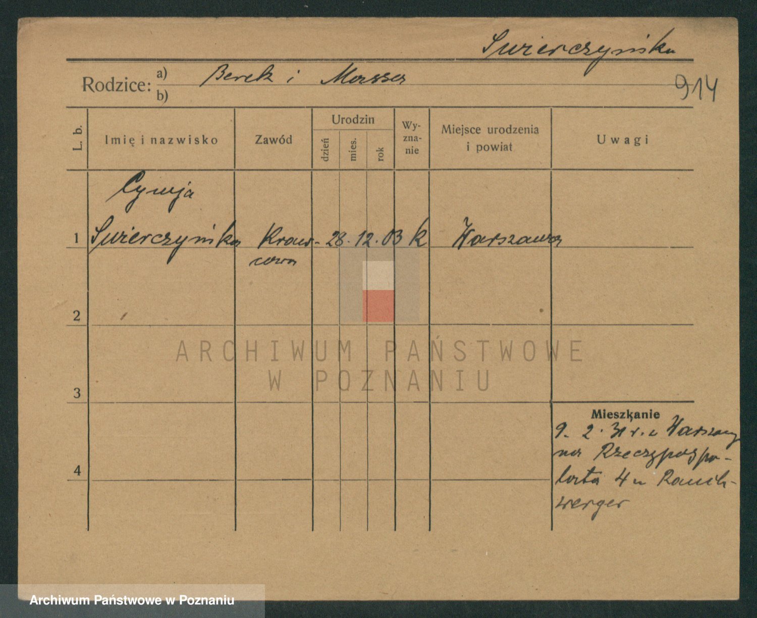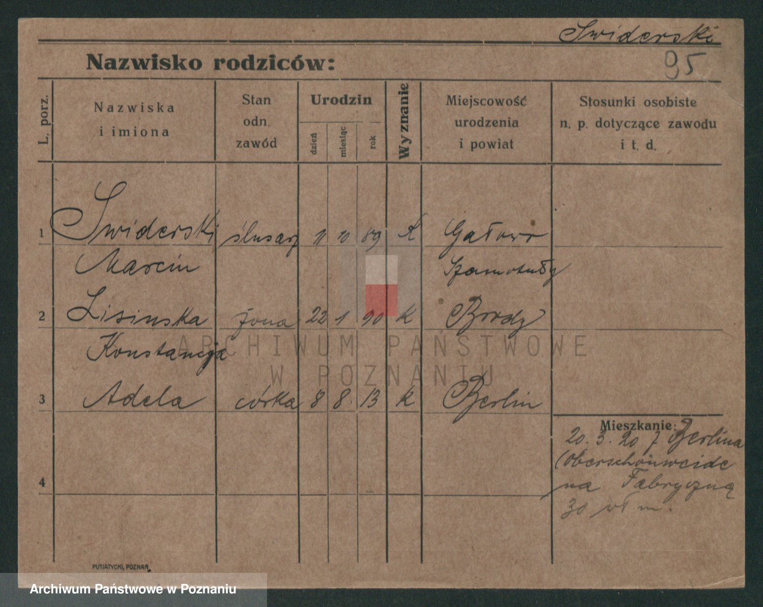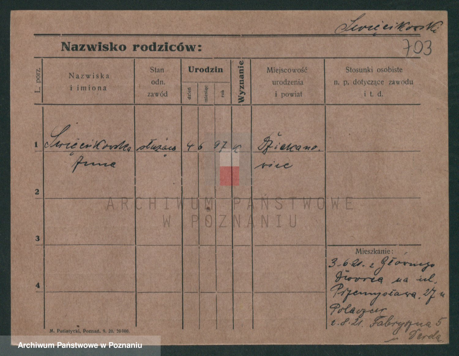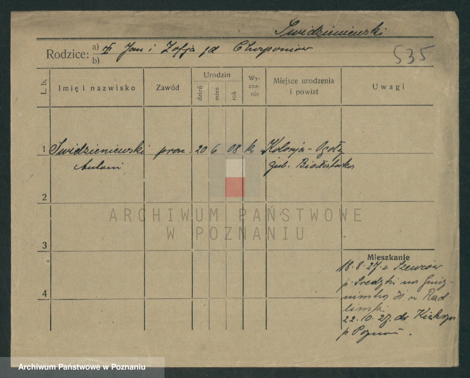 Podgląd karty osobowej dostępny jest po kliknięciu na nazwisko lub ikonkę karty. Można dokonywać powiększenia (ikony na górze) lub przechodzić między kolejnymi skanami (strzałki po bokach).