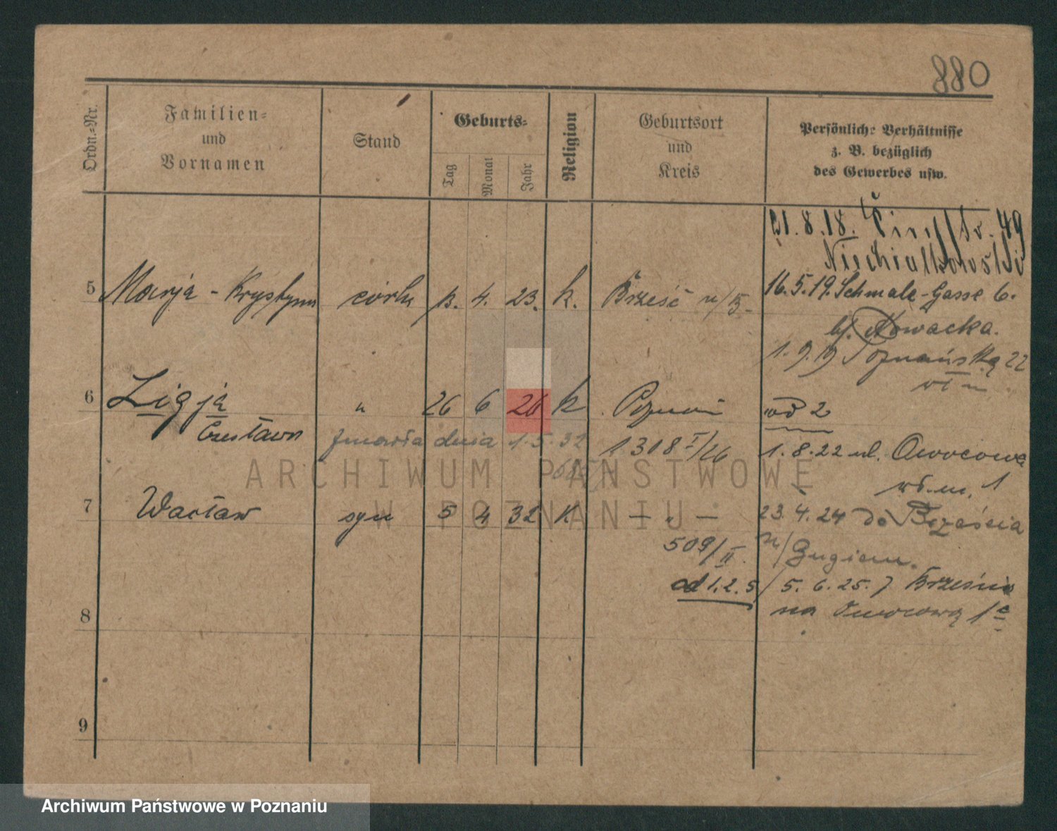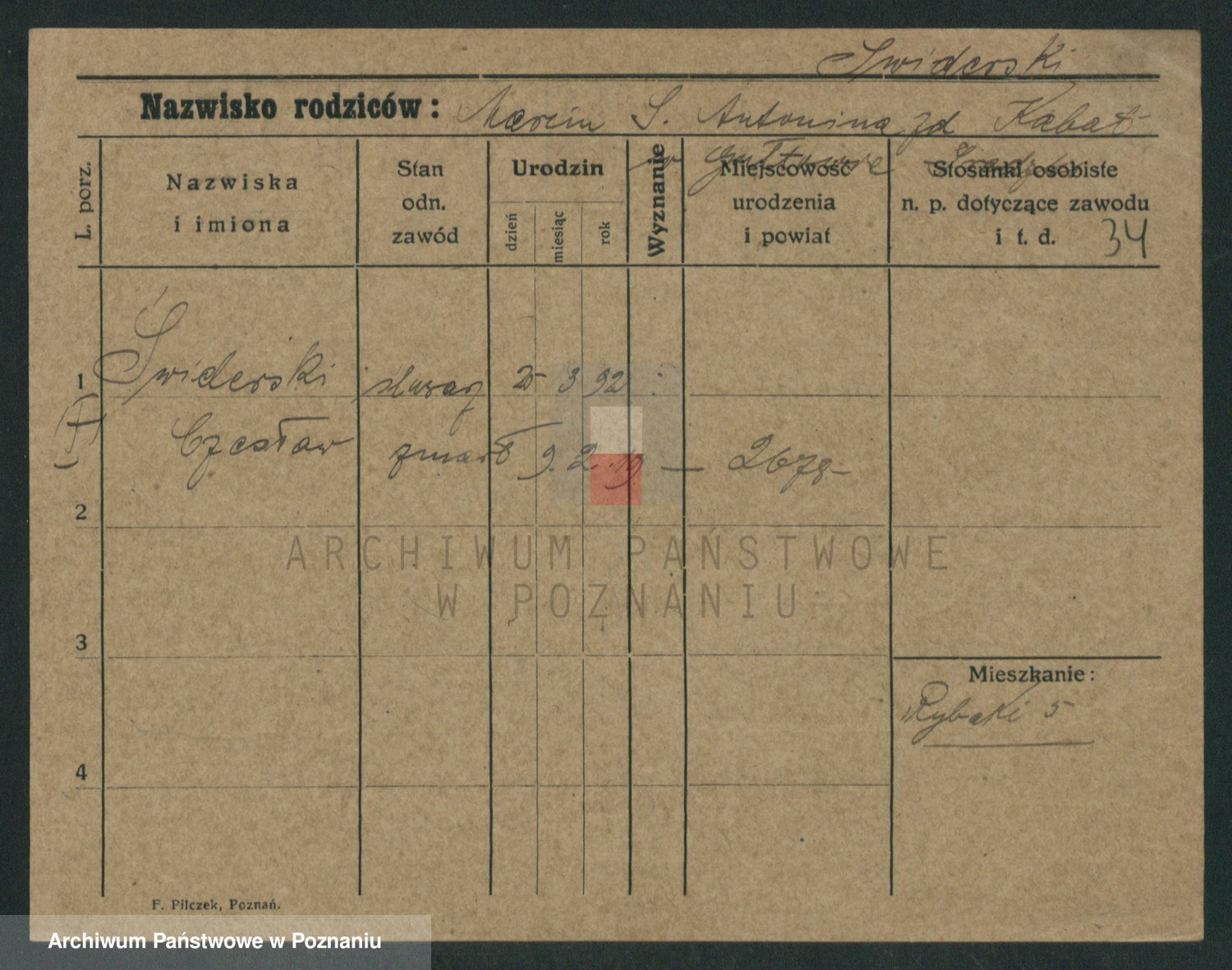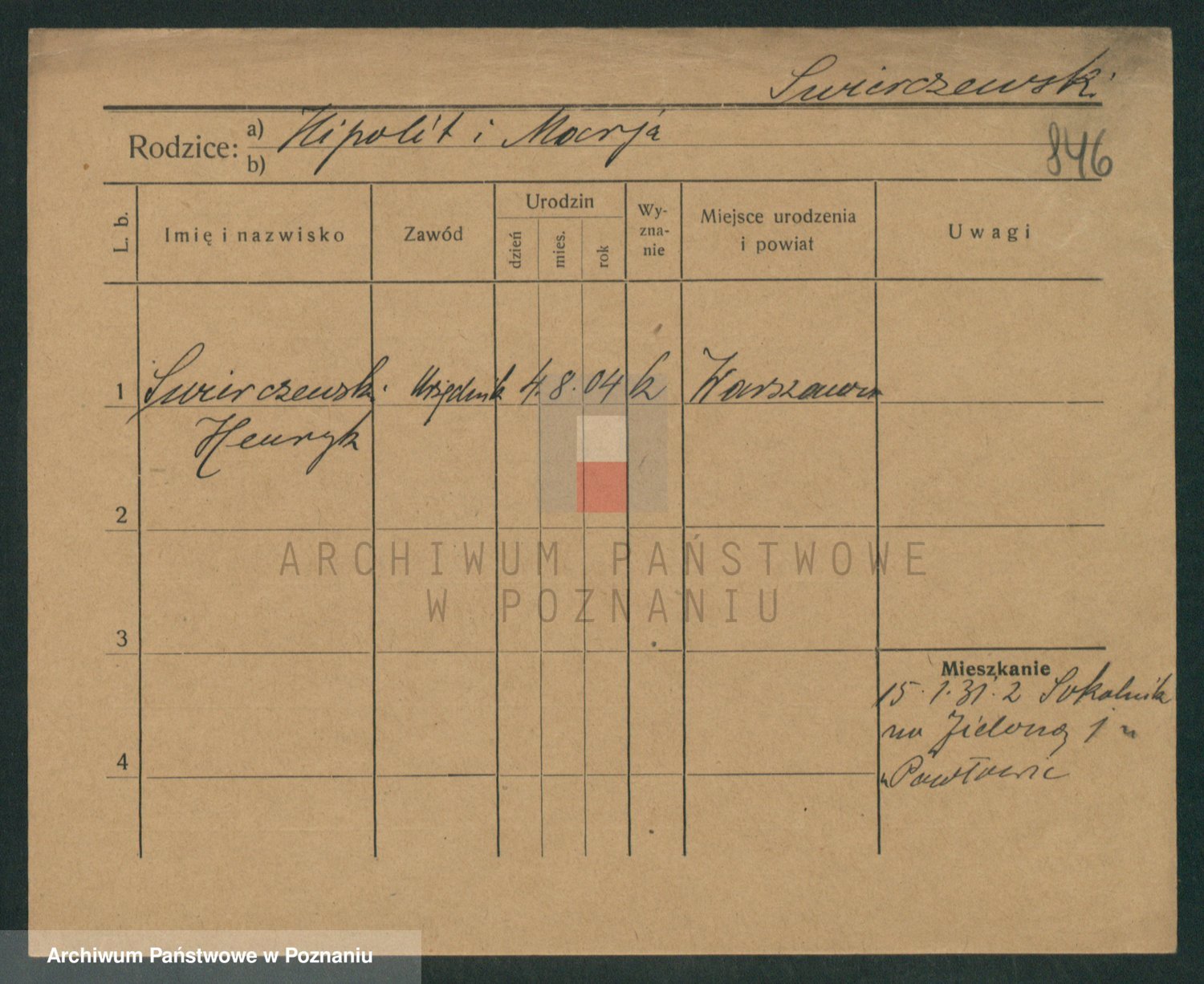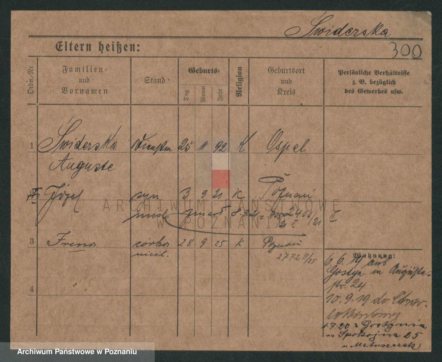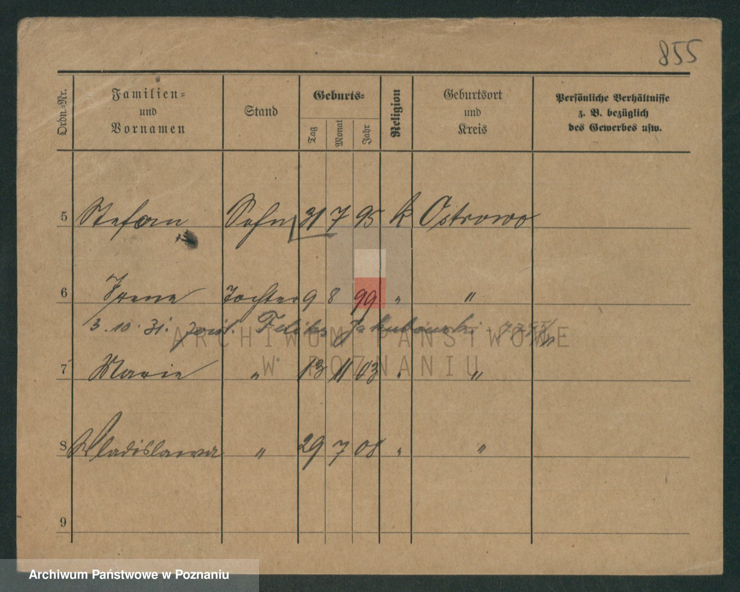 Podgląd karty osobowej dostępny jest po kliknięciu na nazwisko lub ikonkę karty. Można dokonywać powiększenia (ikony na górze) lub przechodzić między kolejnymi skanami (strzałki po bokach).