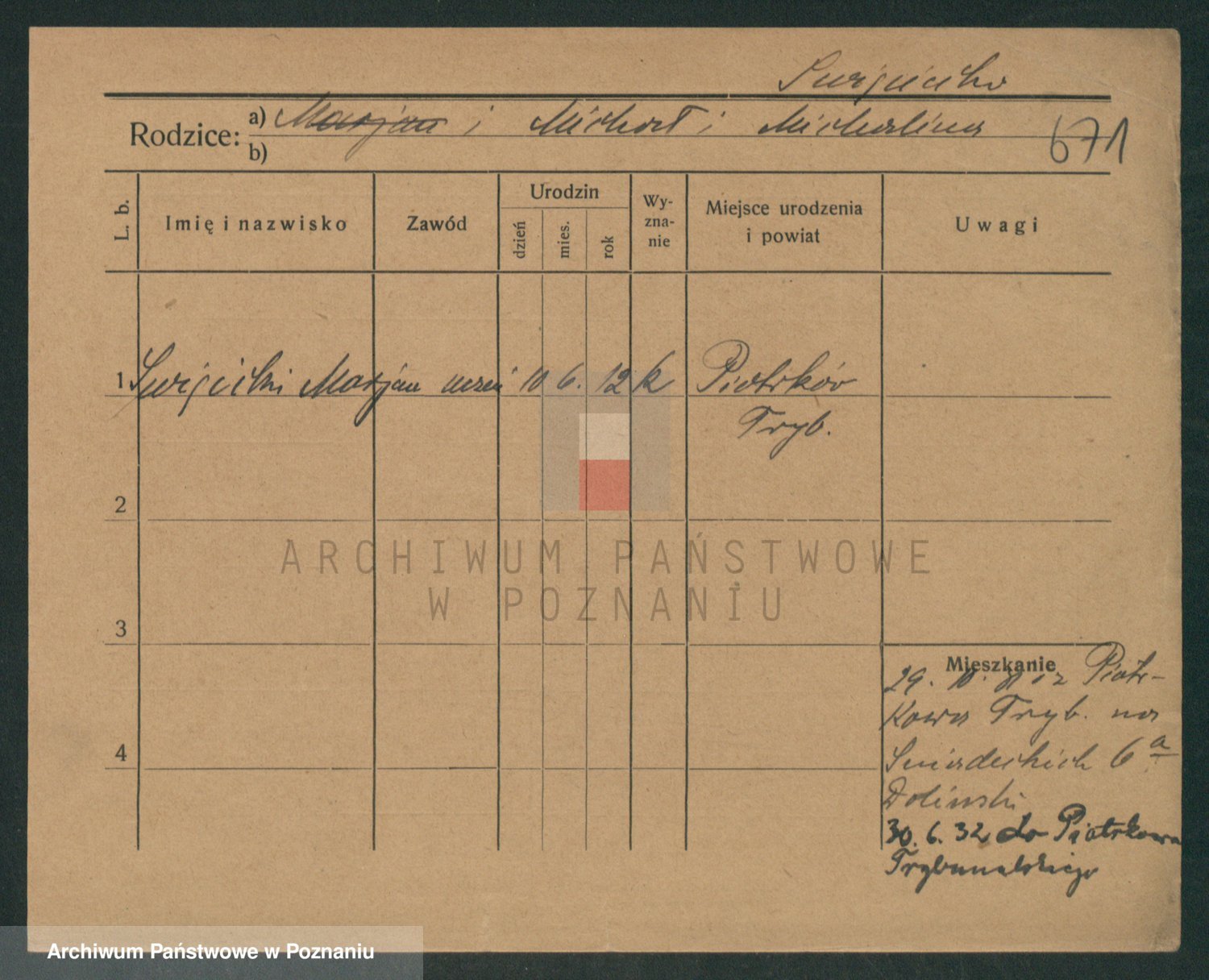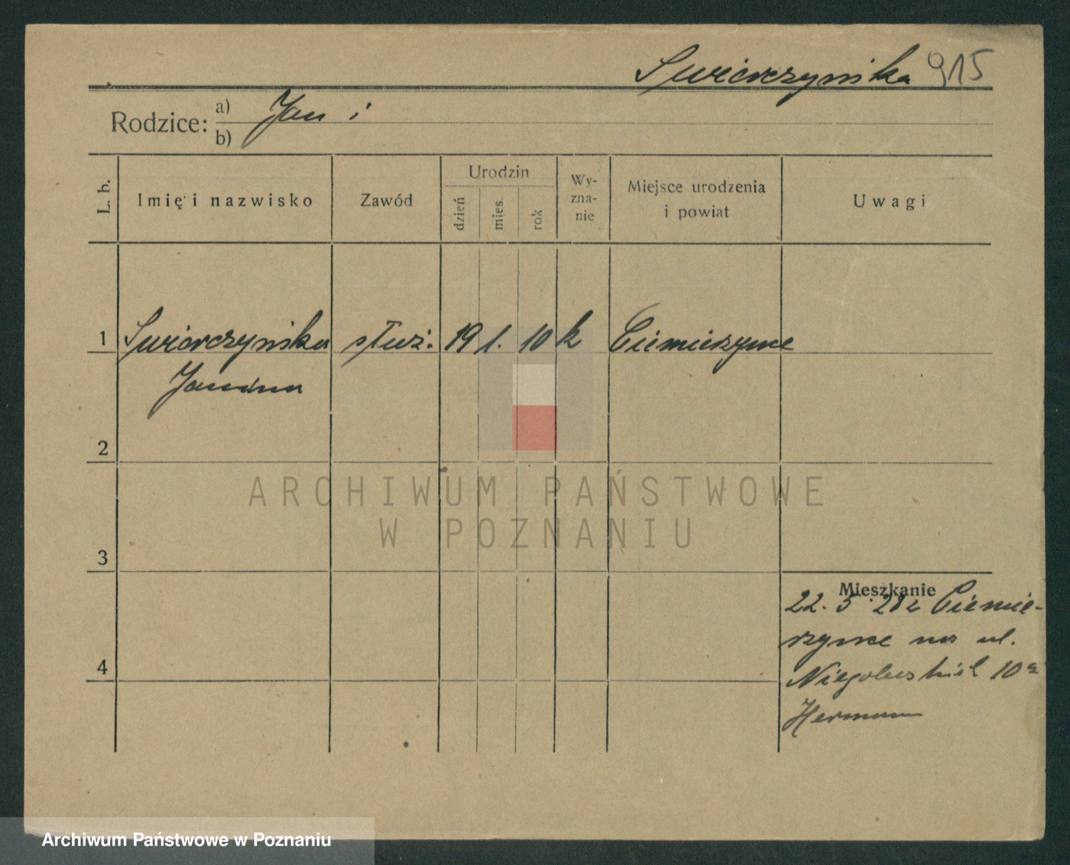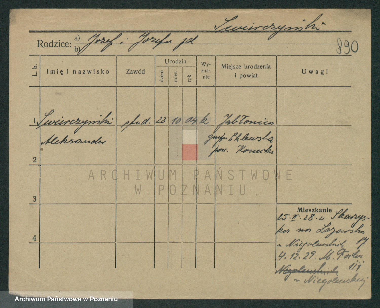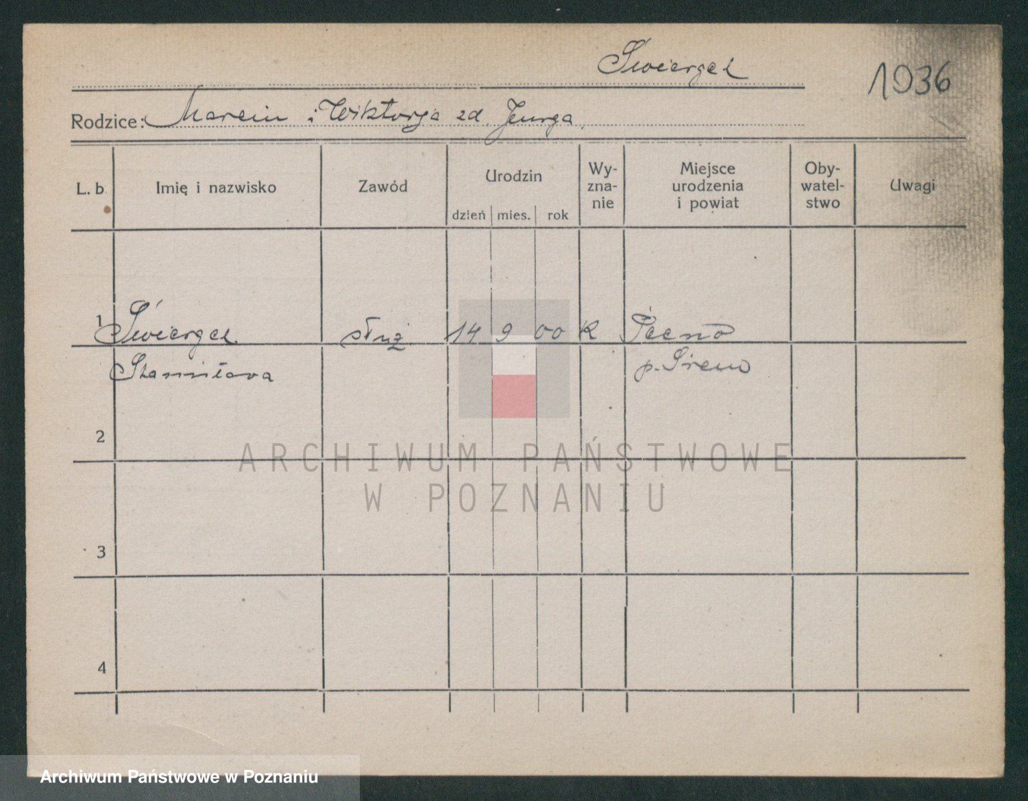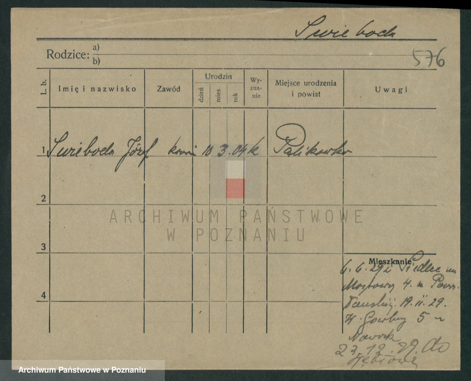 Podgląd karty osobowej dostępny jest po kliknięciu na nazwisko lub ikonkę karty. Można dokonywać powiększenia (ikony na górze) lub przechodzić między kolejnymi skanami (strzałki po bokach).