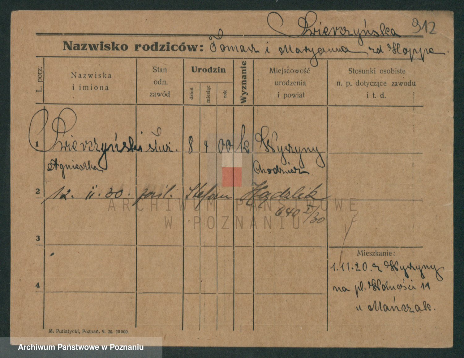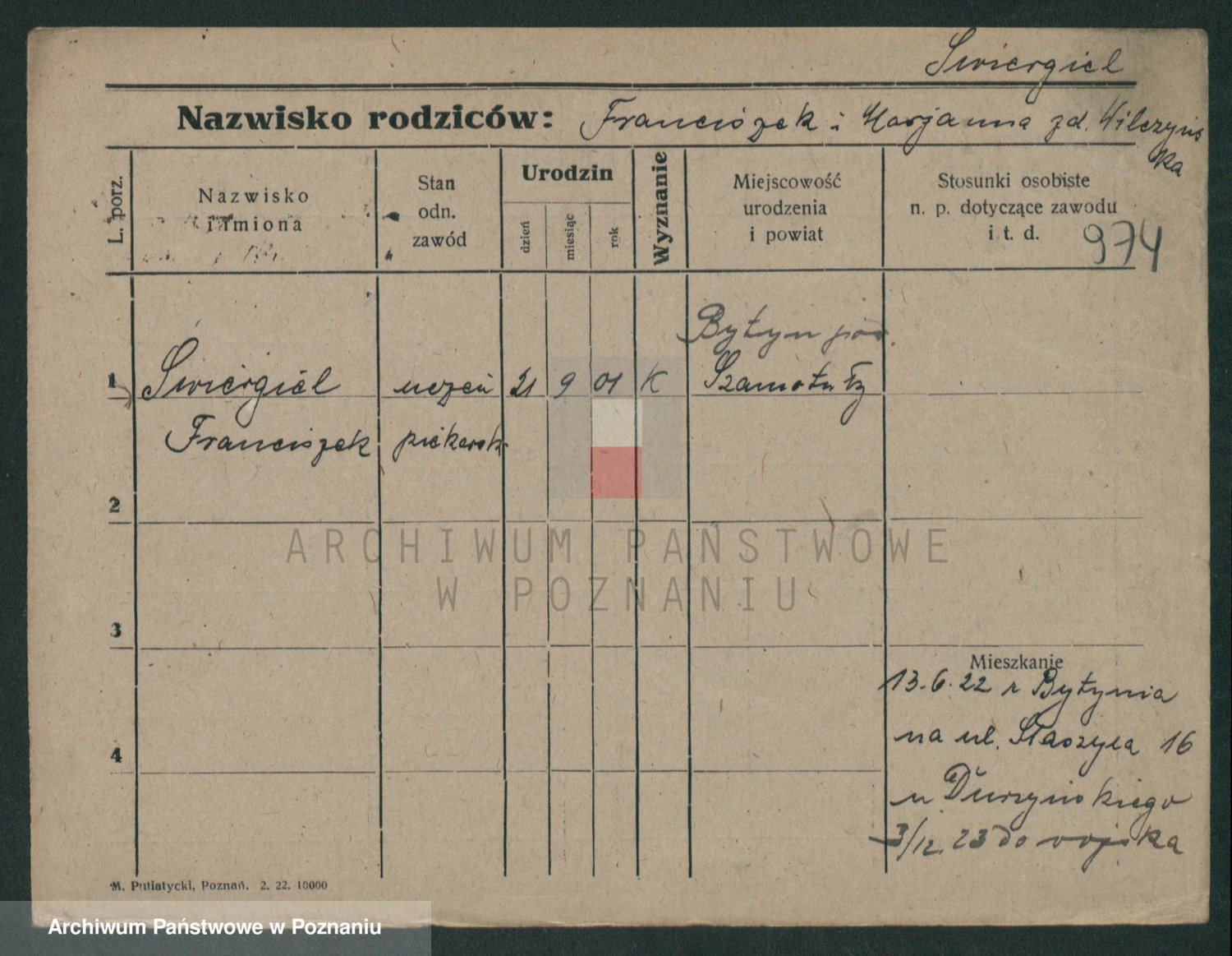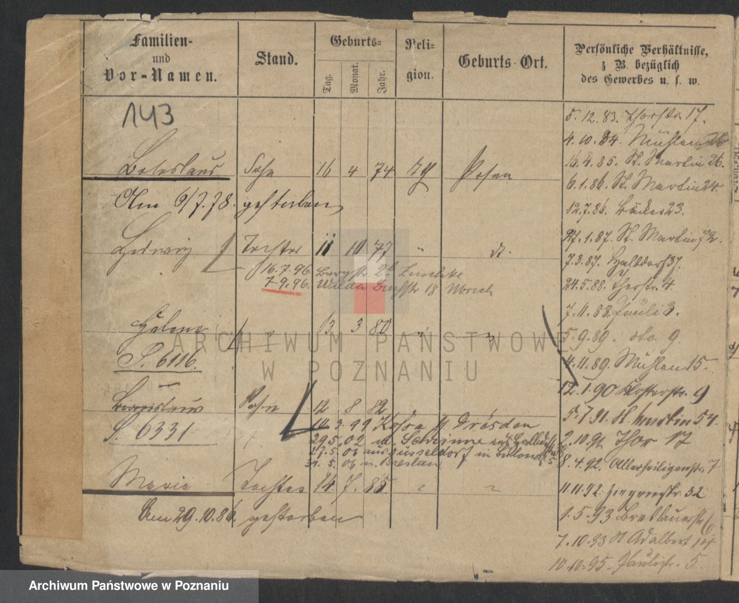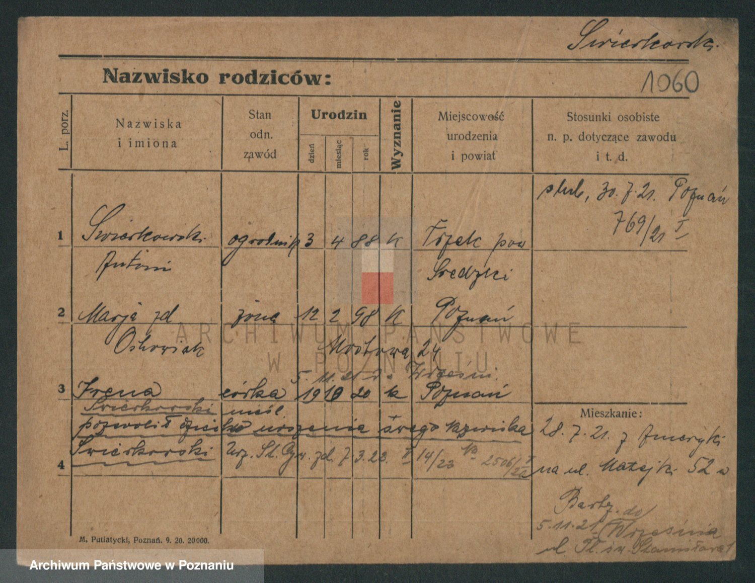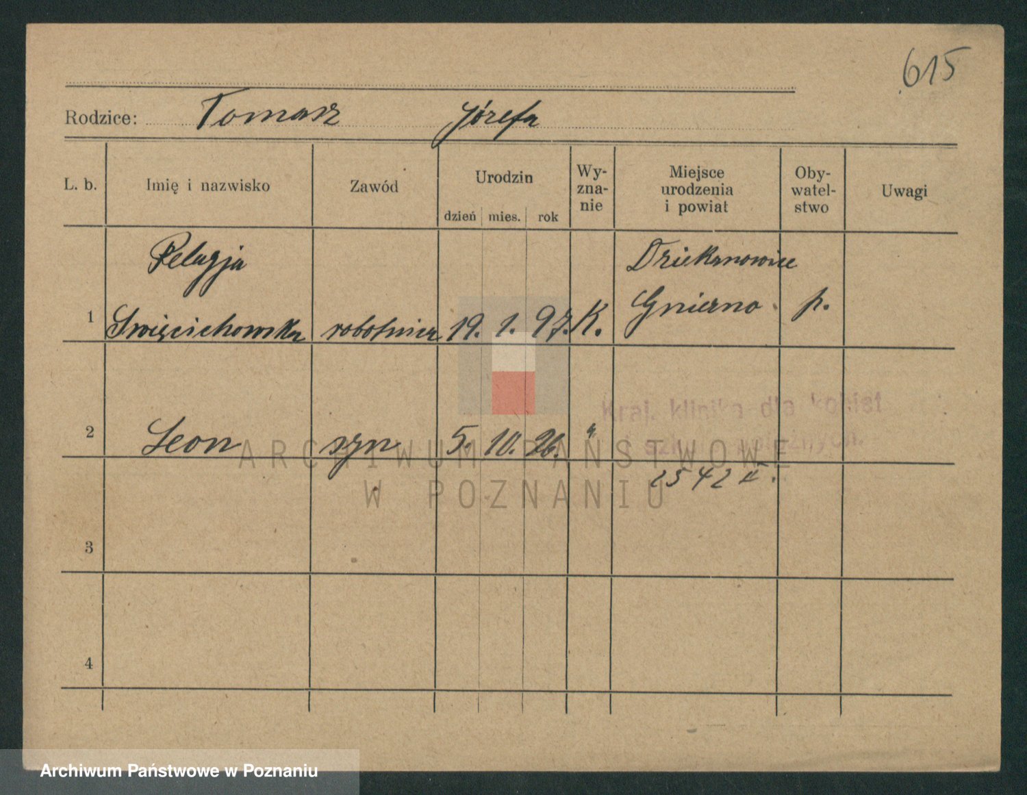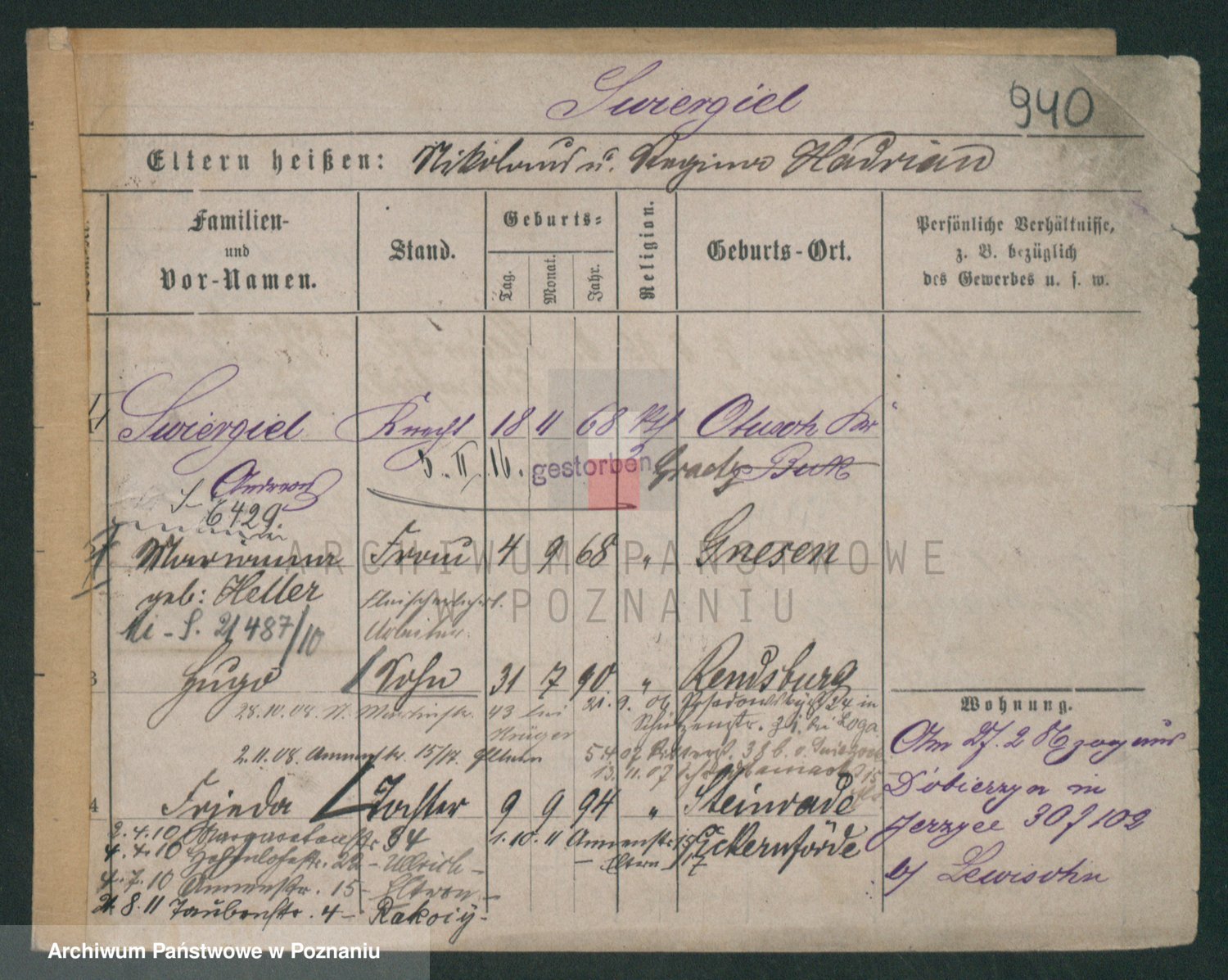 Podgląd karty osobowej dostępny jest po kliknięciu na nazwisko lub ikonkę karty. Można dokonywać powiększenia (ikony na górze) lub przechodzić między kolejnymi skanami (strzałki po bokach).
