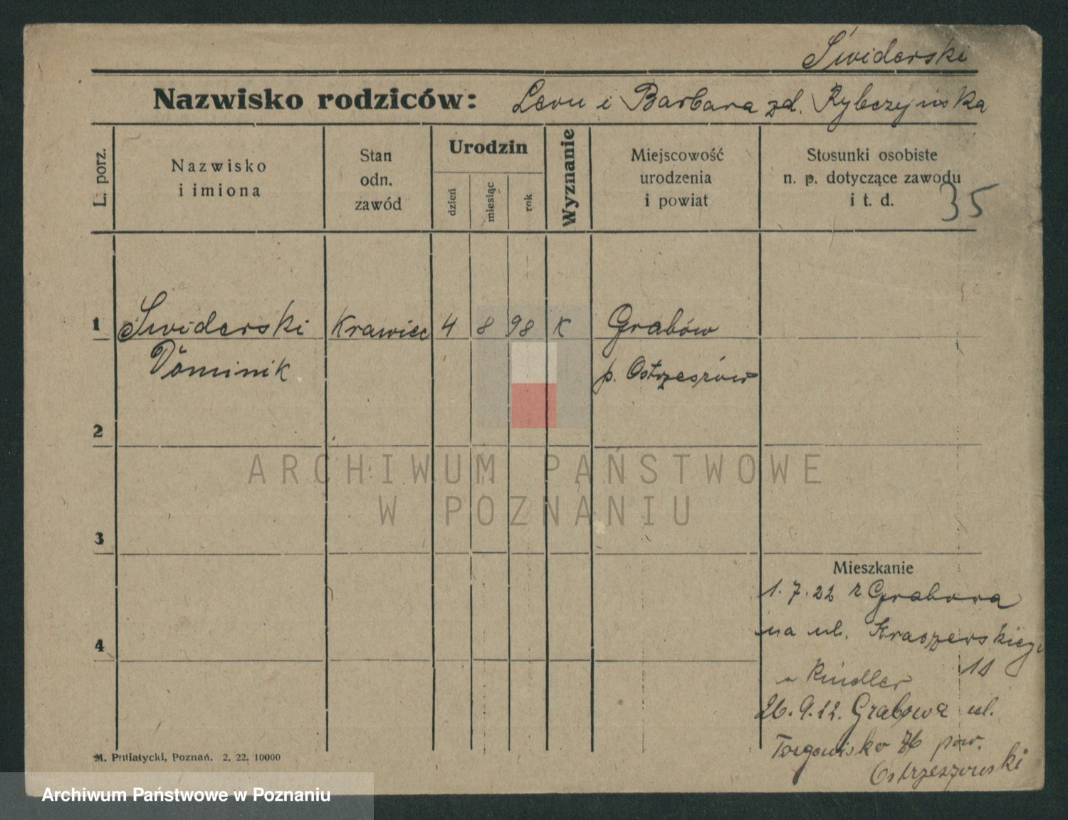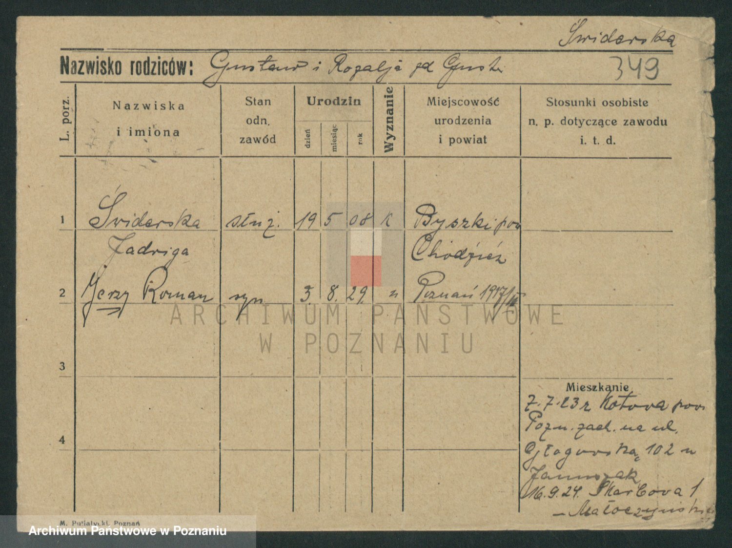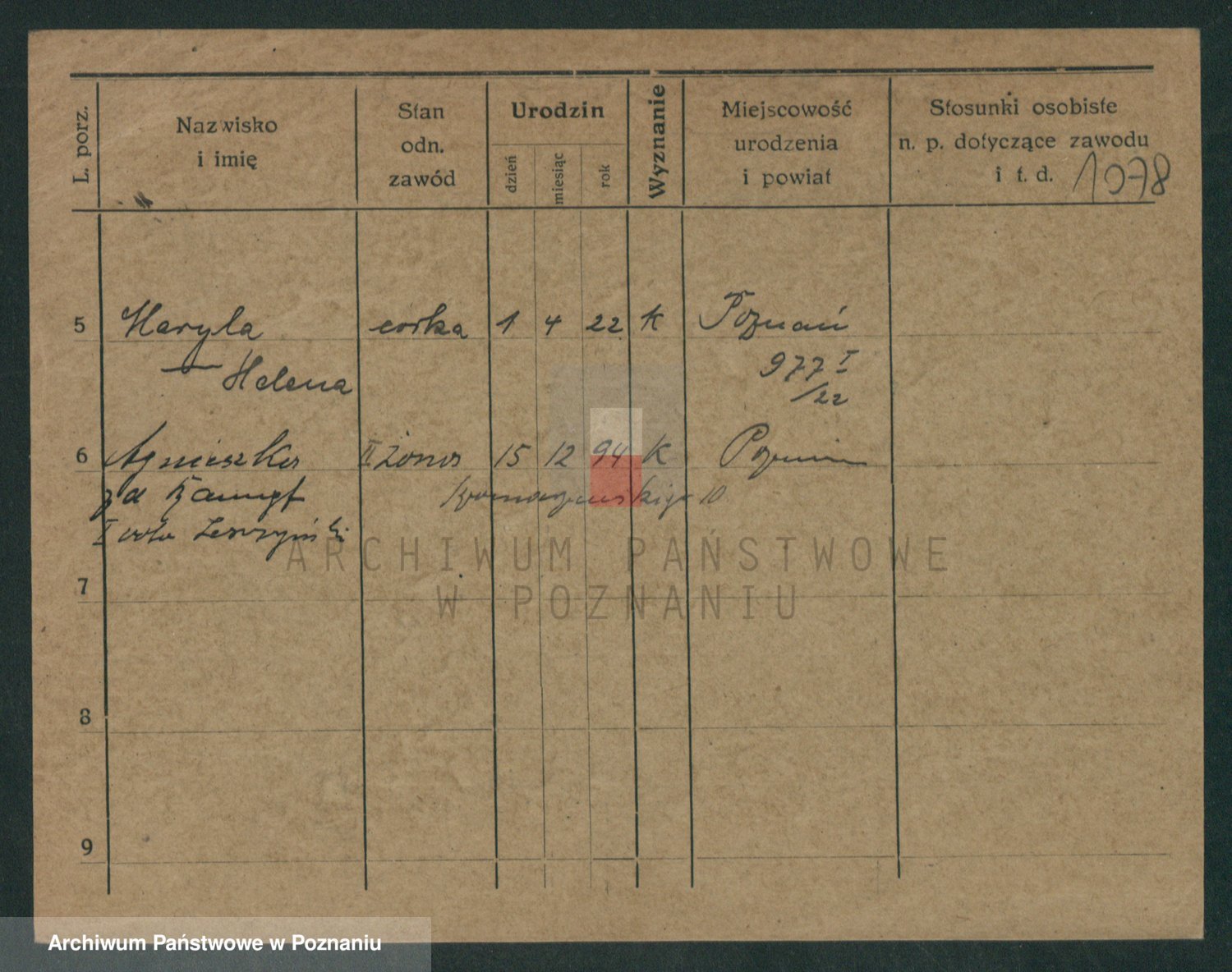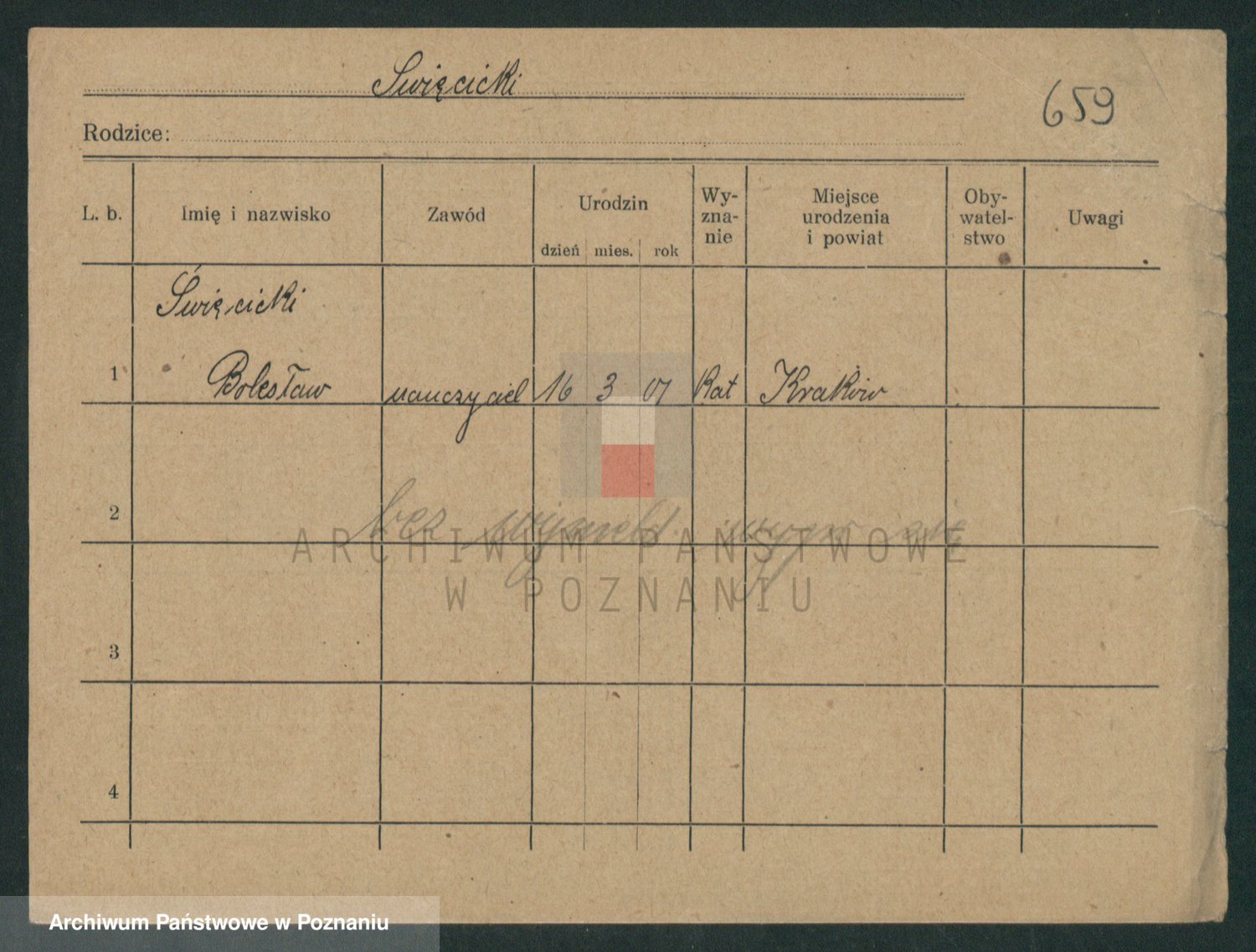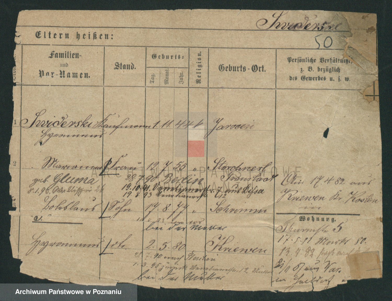 Podgląd karty osobowej dostępny jest po kliknięciu na nazwisko lub ikonkę karty. Można dokonywać powiększenia (ikony na górze) lub przechodzić między kolejnymi skanami (strzałki po bokach).