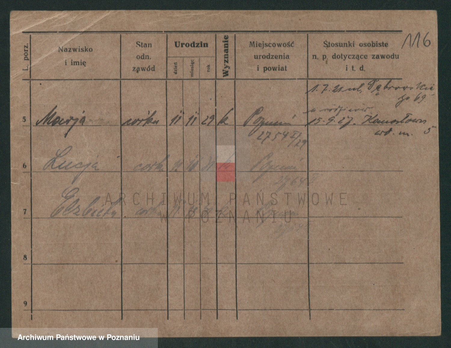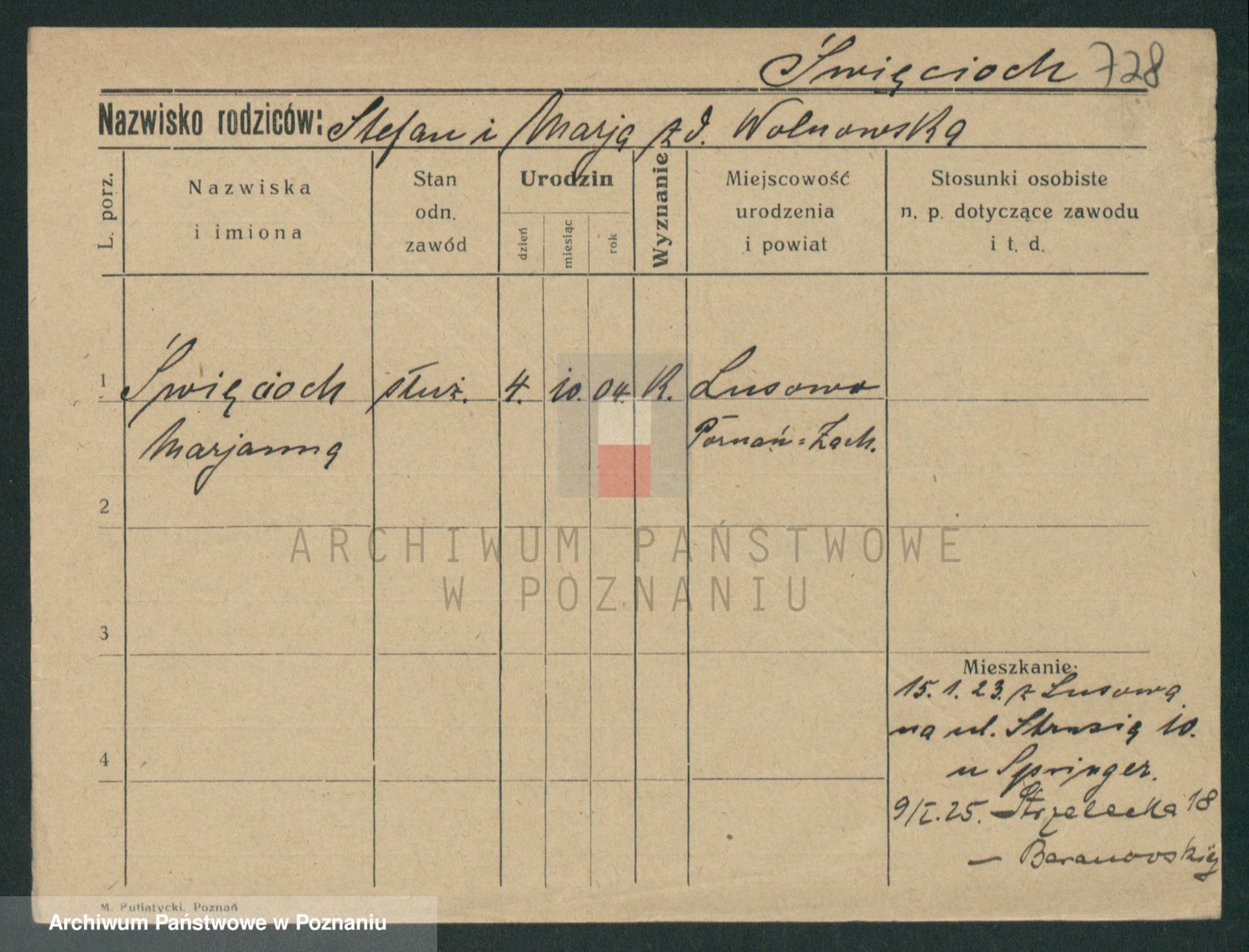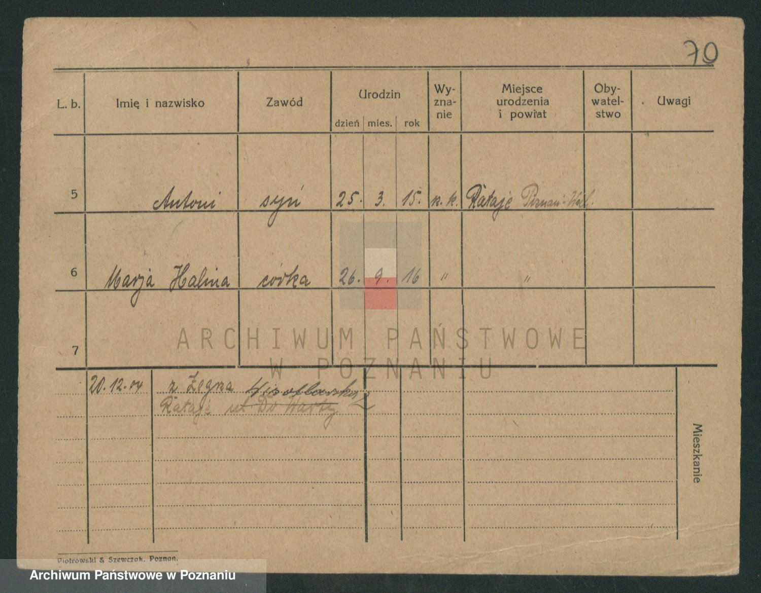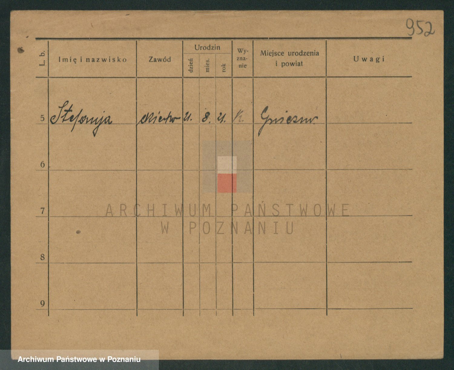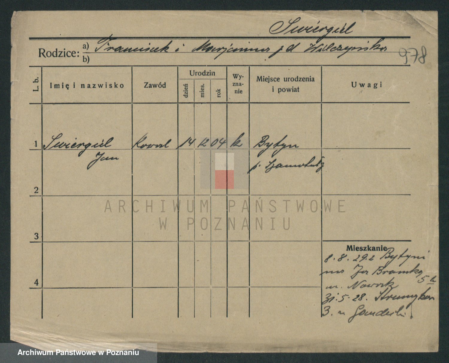 Podgląd karty osobowej dostępny jest po kliknięciu na nazwisko lub ikonkę karty. Można dokonywać powiększenia (ikony na górze) lub przechodzić między kolejnymi skanami (strzałki po bokach).