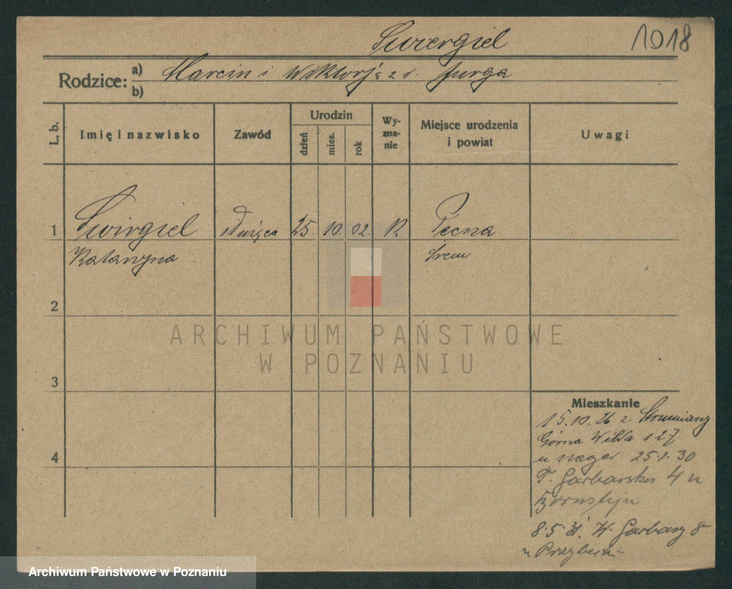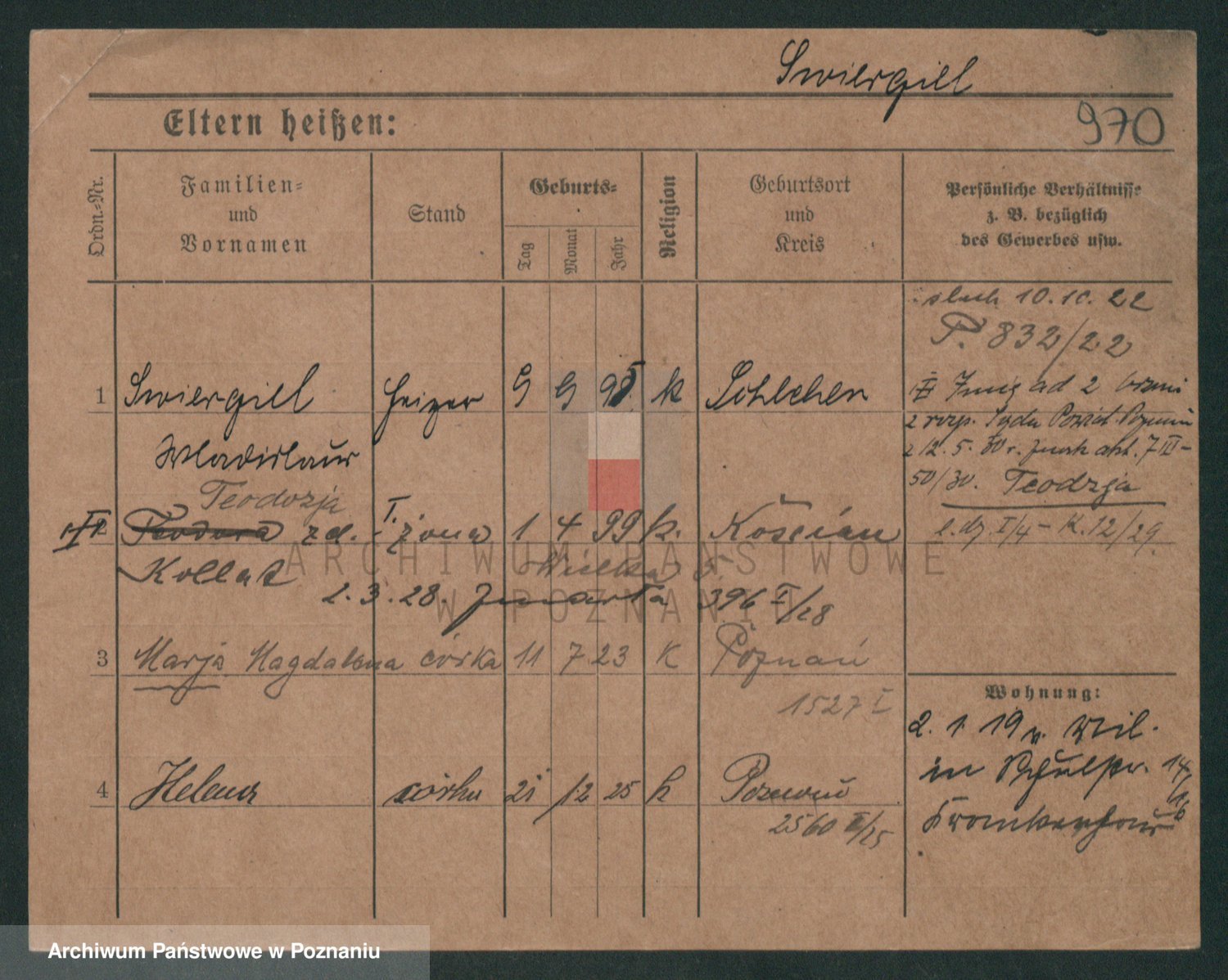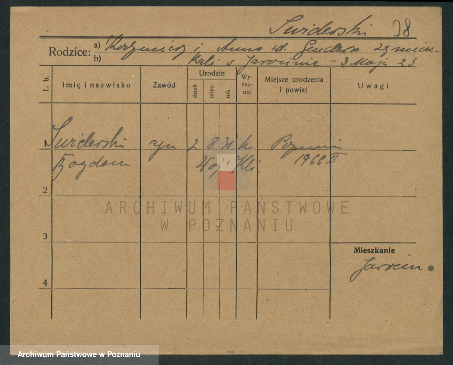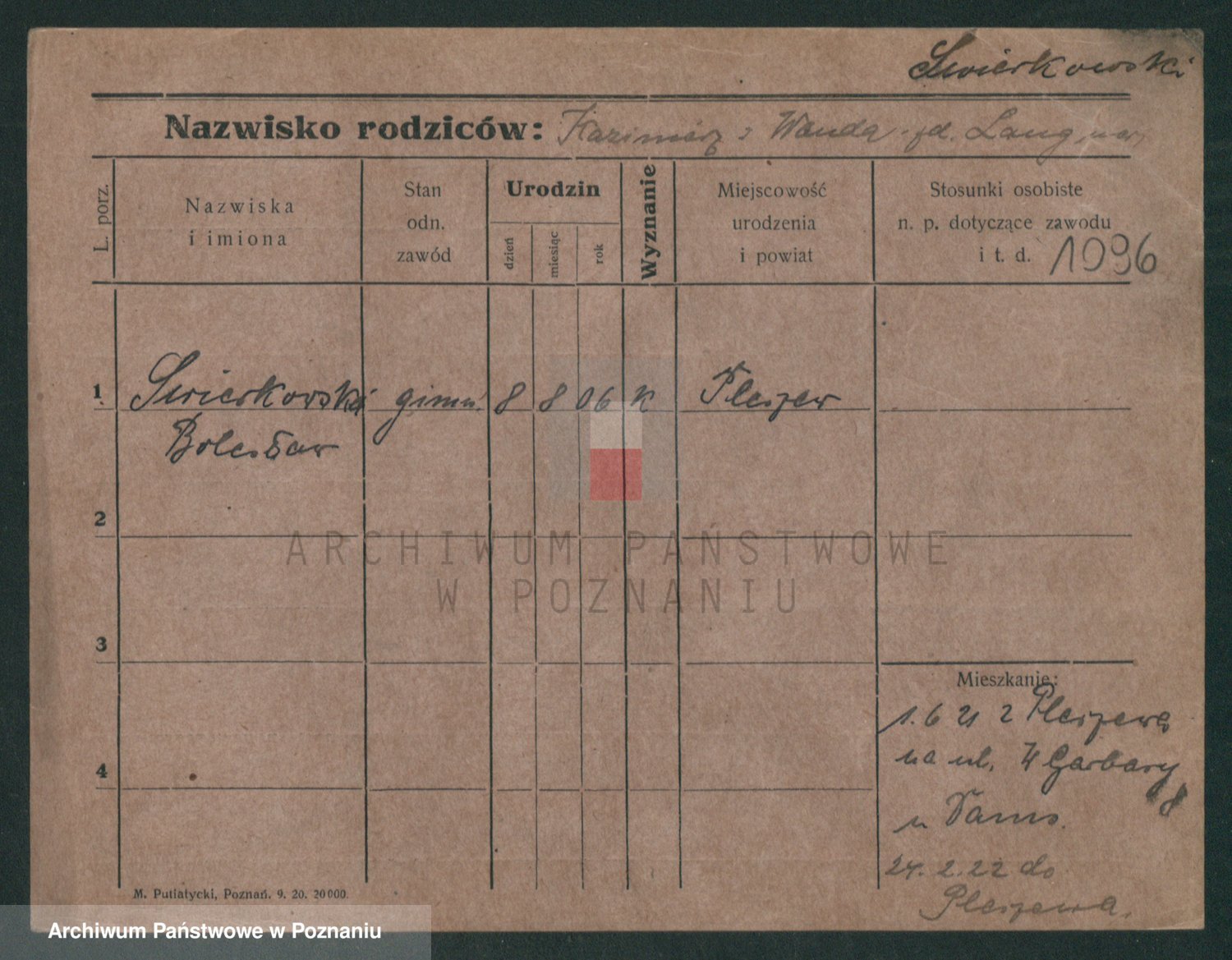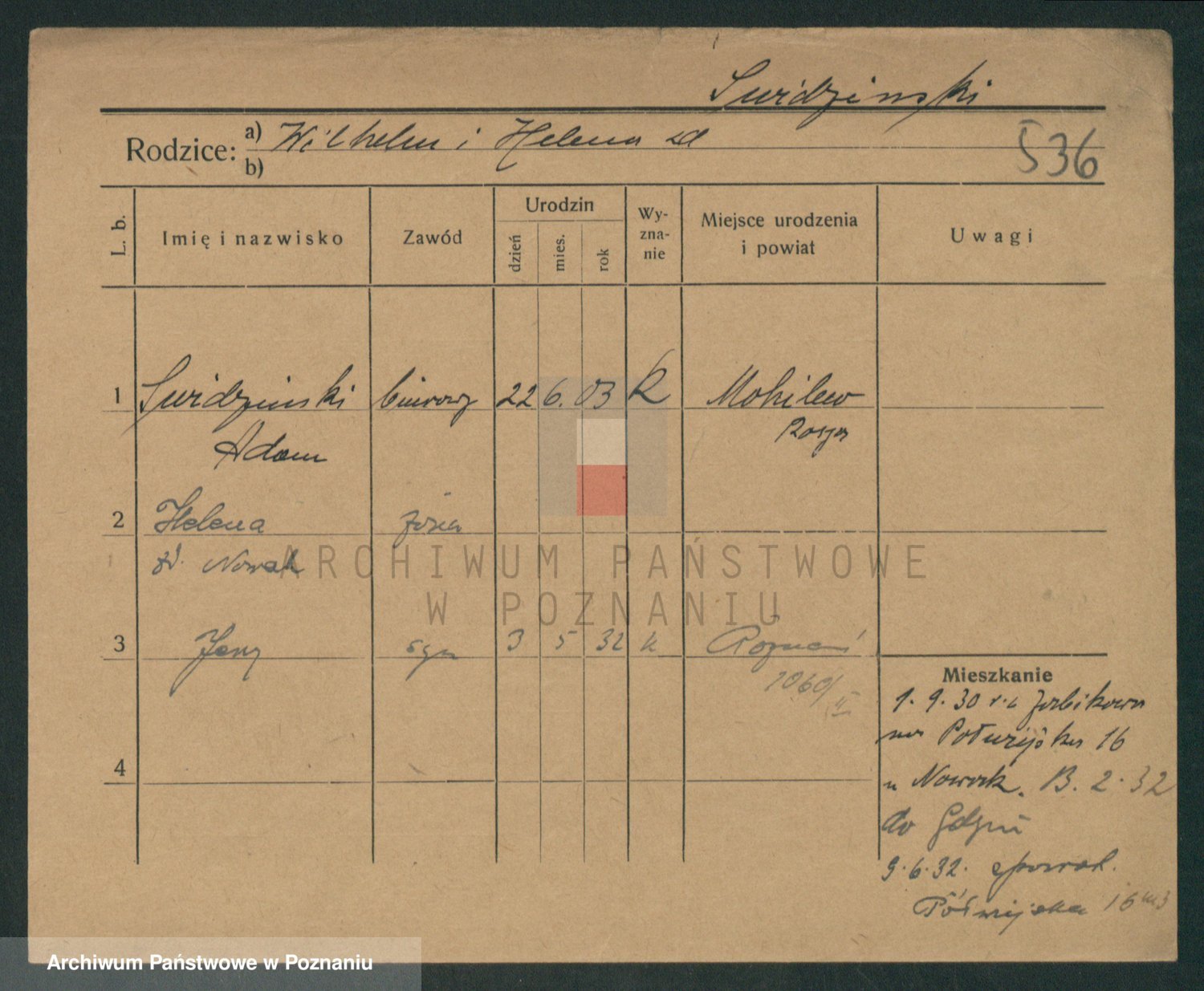 Podgląd karty osobowej dostępny jest po kliknięciu na nazwisko lub ikonkę karty. Można dokonywać powiększenia (ikony na górze) lub przechodzić między kolejnymi skanami (strzałki po bokach).
