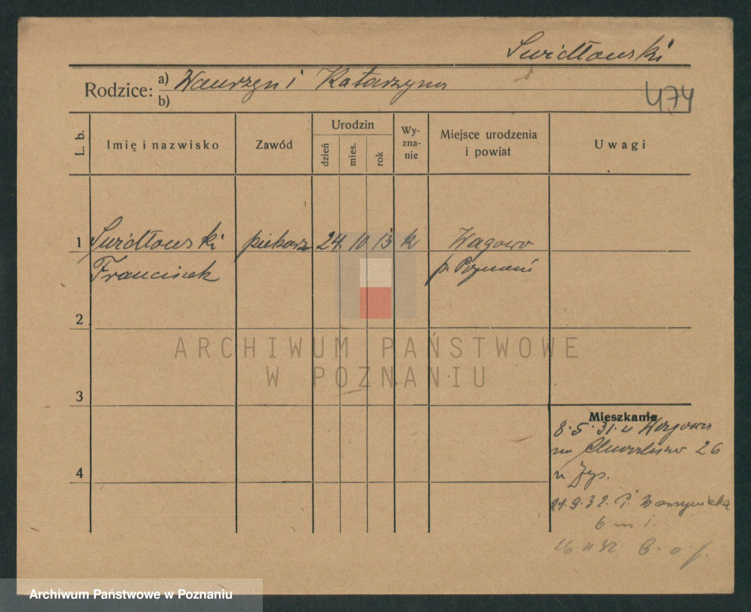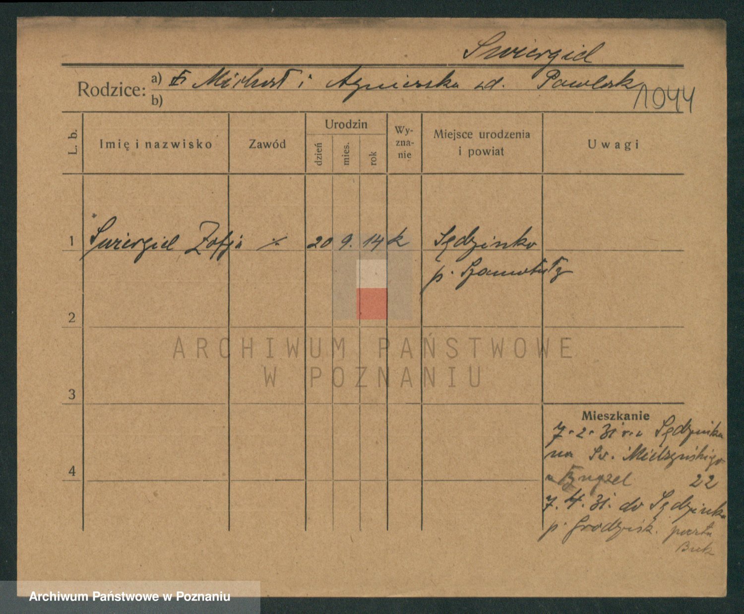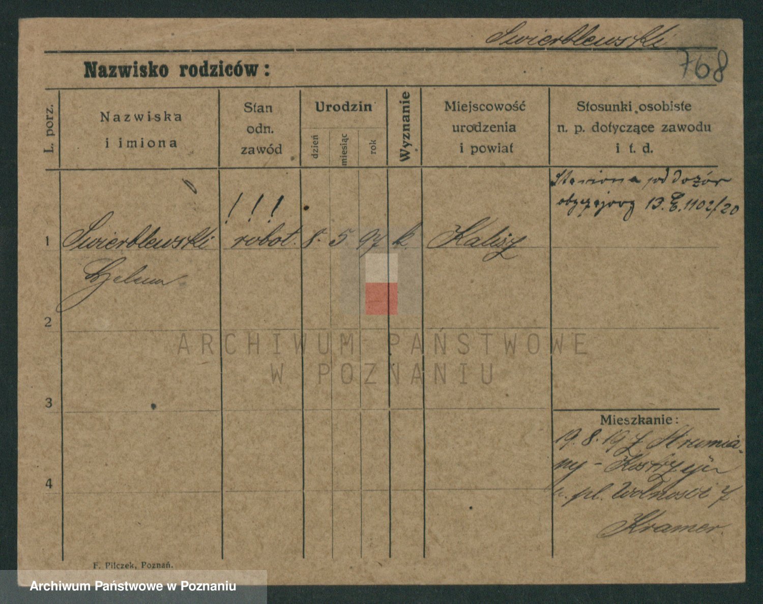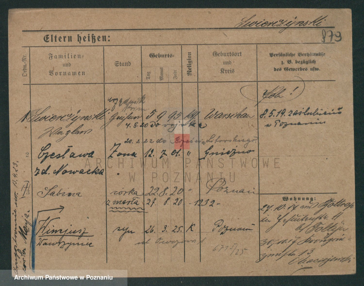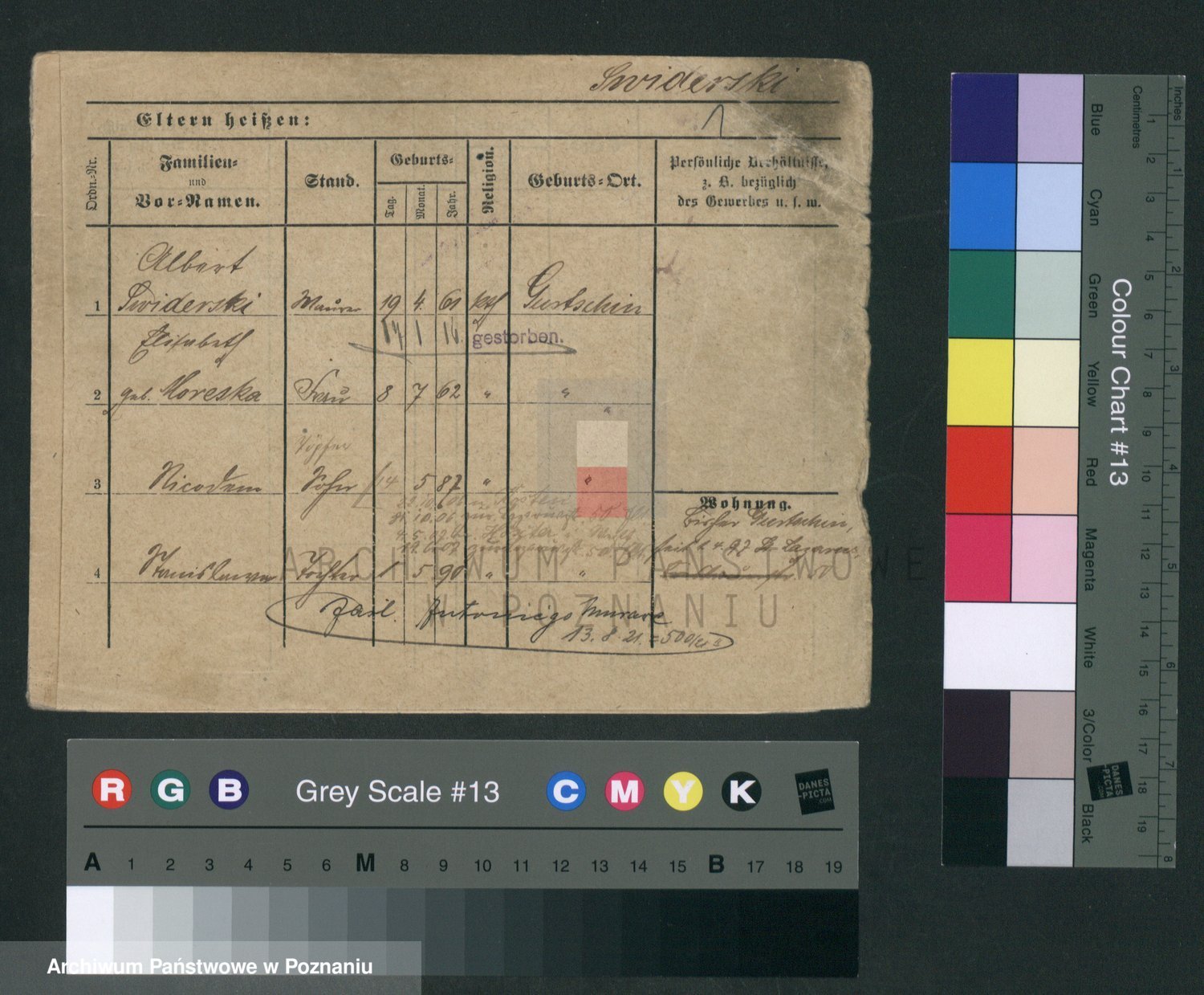 Podgląd karty osobowej dostępny jest po kliknięciu na nazwisko lub ikonkę karty. Można dokonywać powiększenia (ikony na górze) lub przechodzić między kolejnymi skanami (strzałki po bokach).
