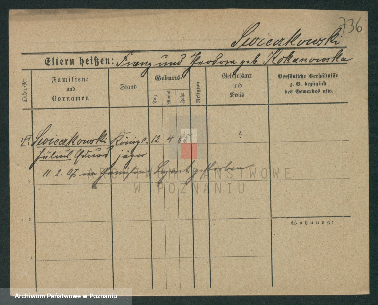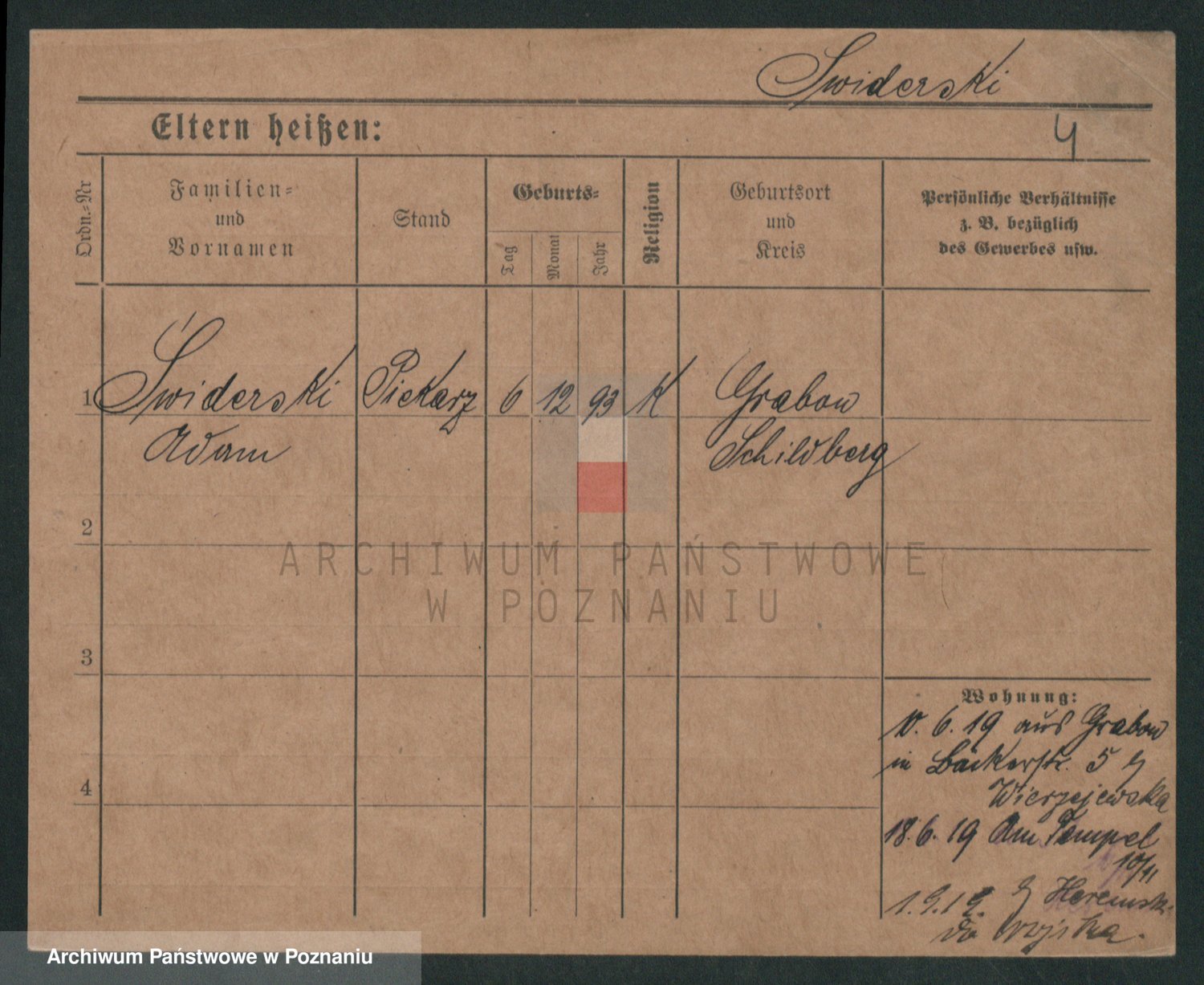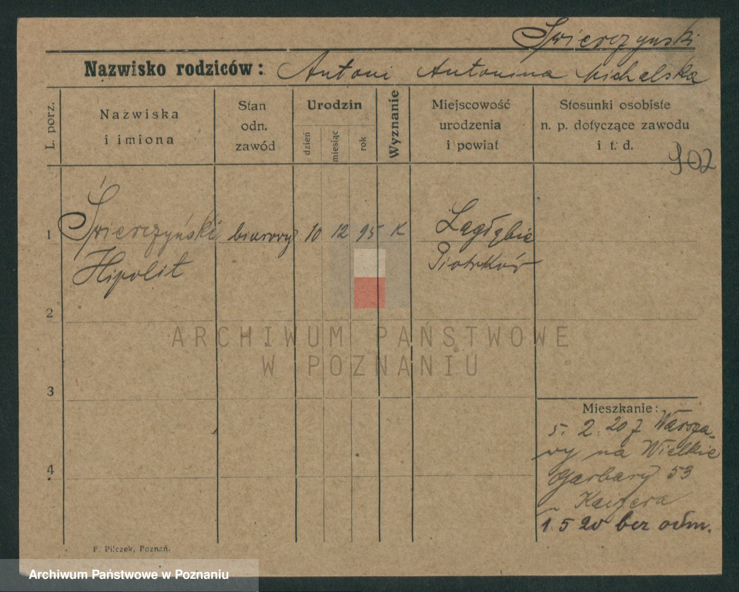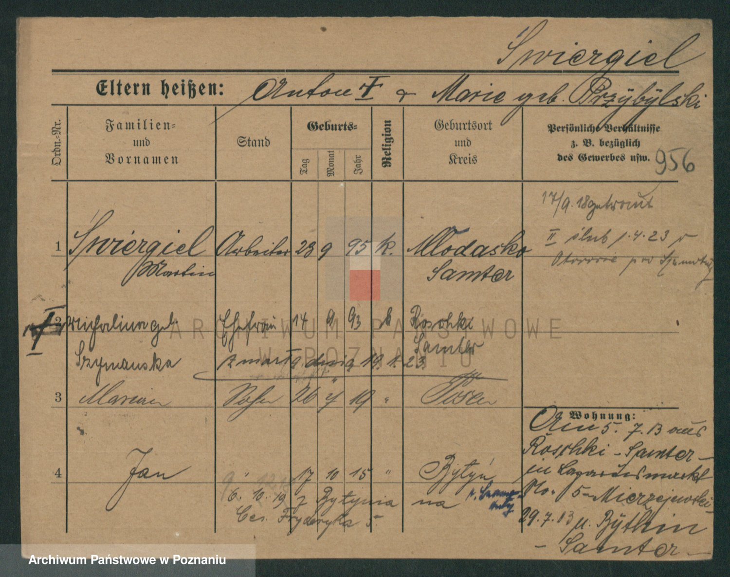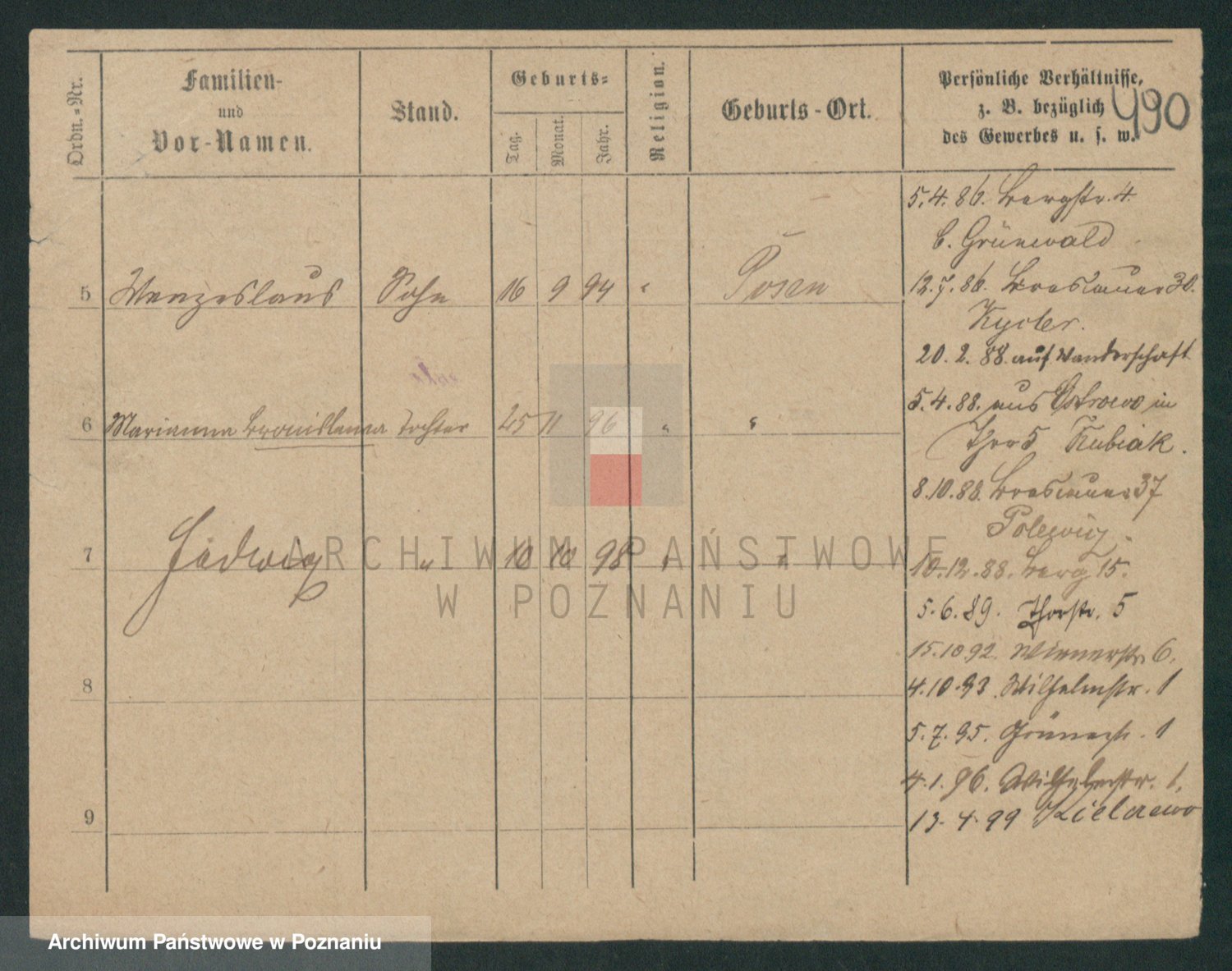 Podgląd karty osobowej dostępny jest po kliknięciu na nazwisko lub ikonkę karty. Można dokonywać powiększenia (ikony na górze) lub przechodzić między kolejnymi skanami (strzałki po bokach).