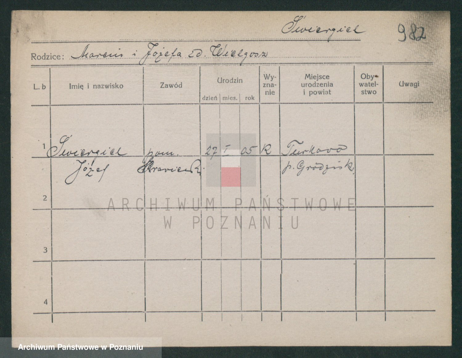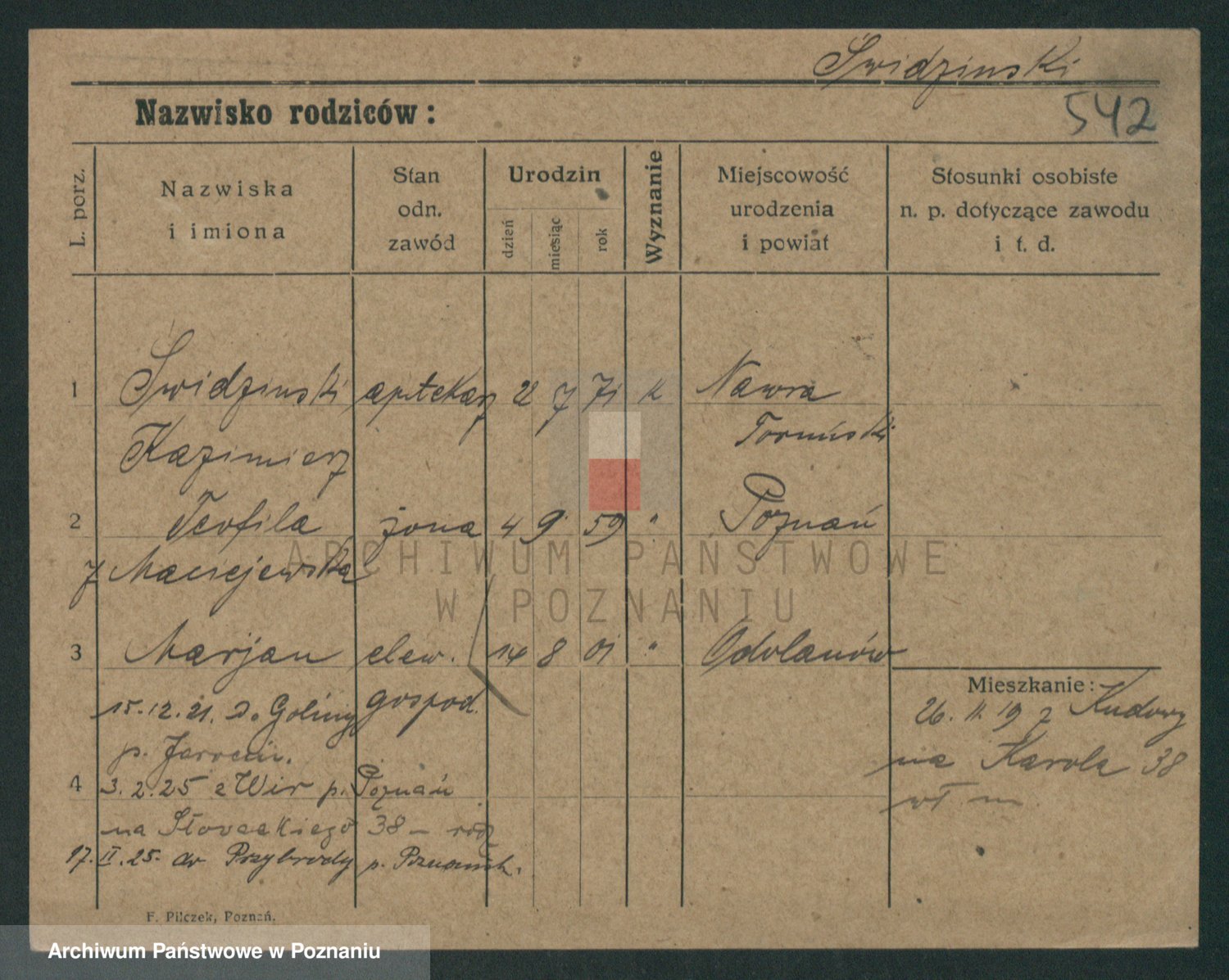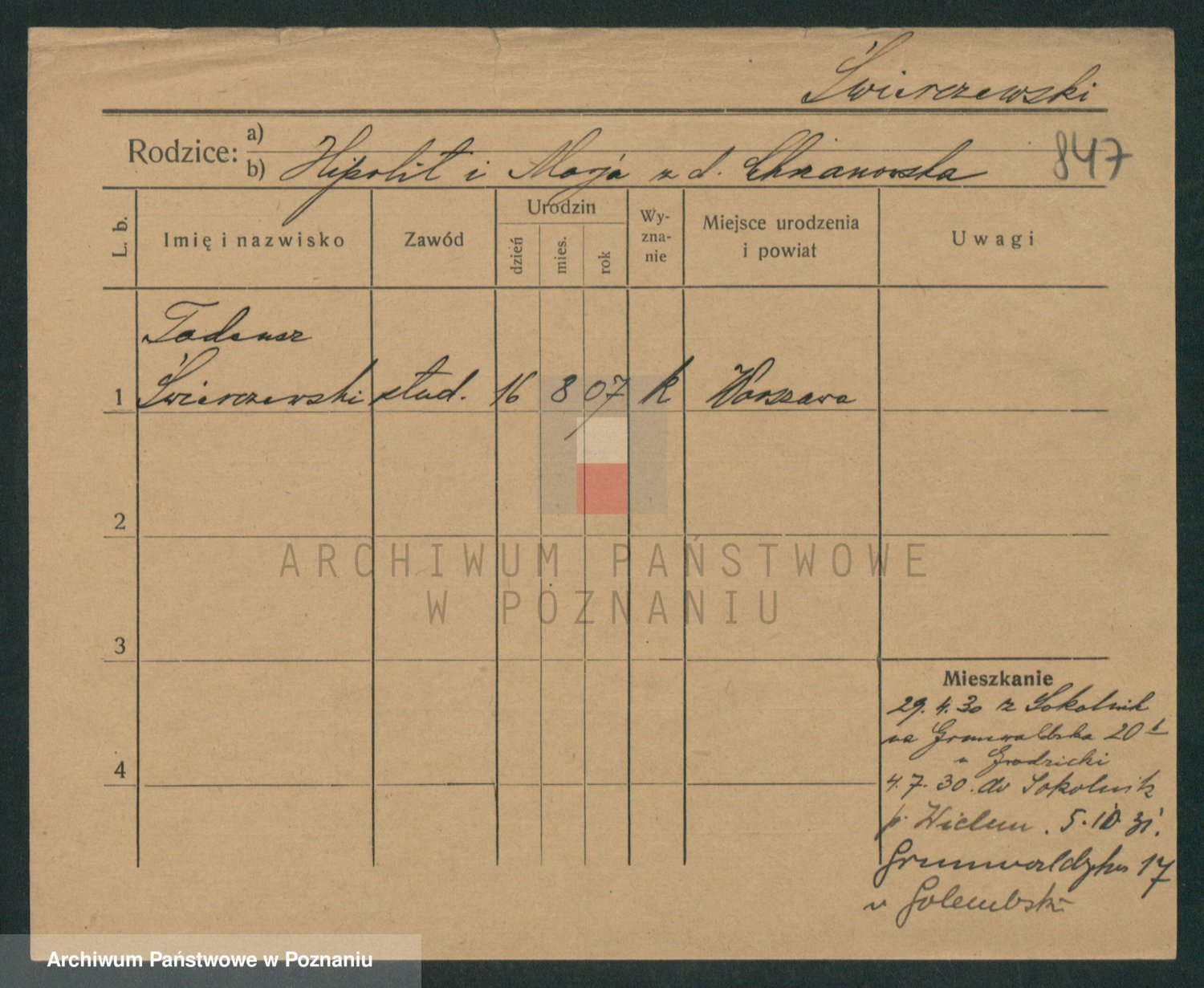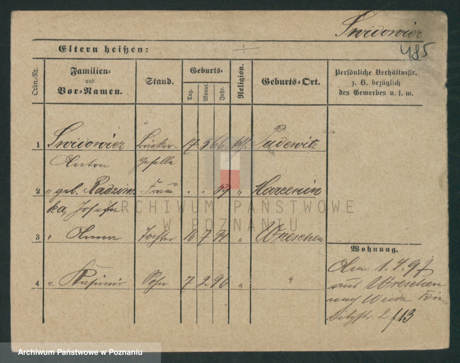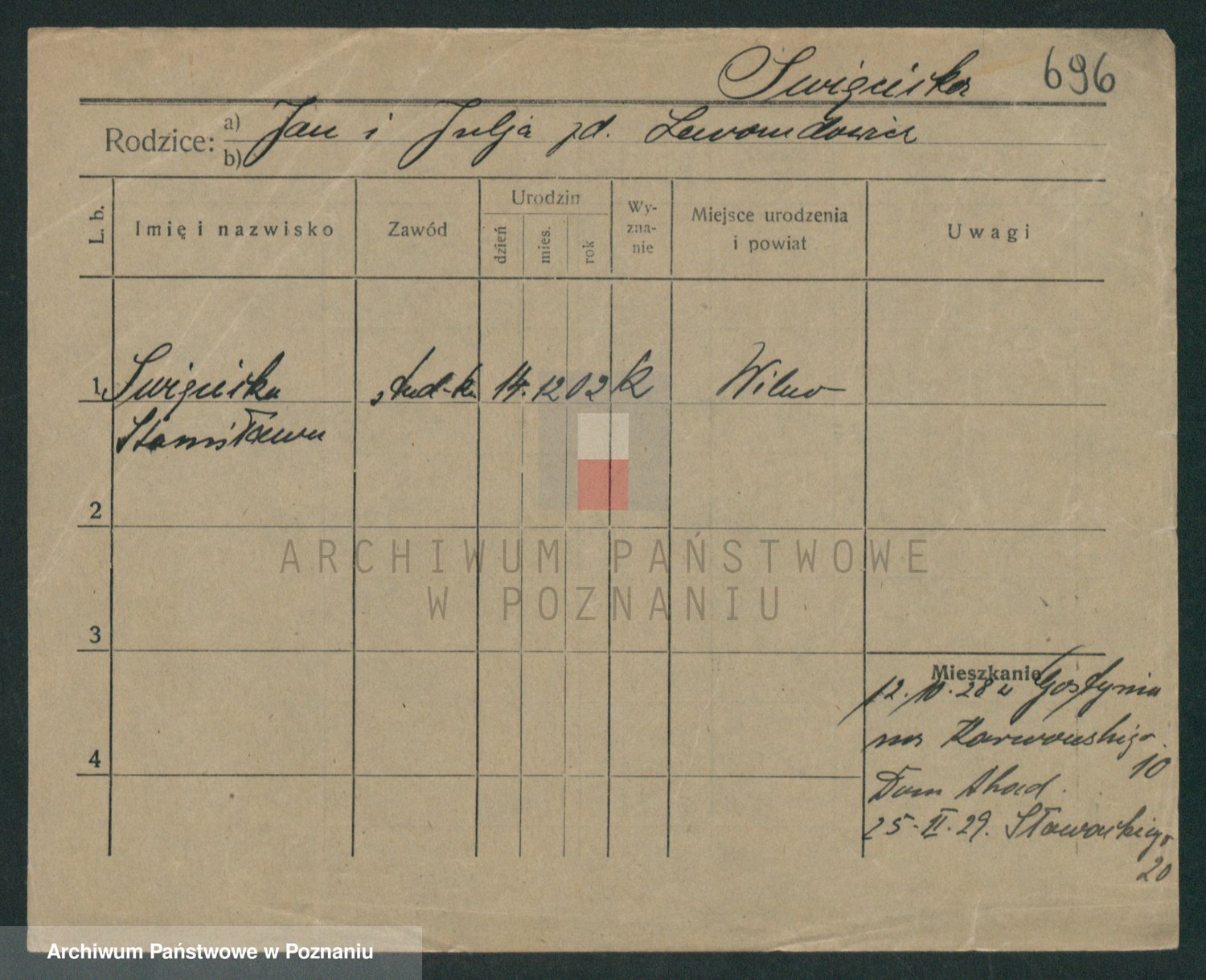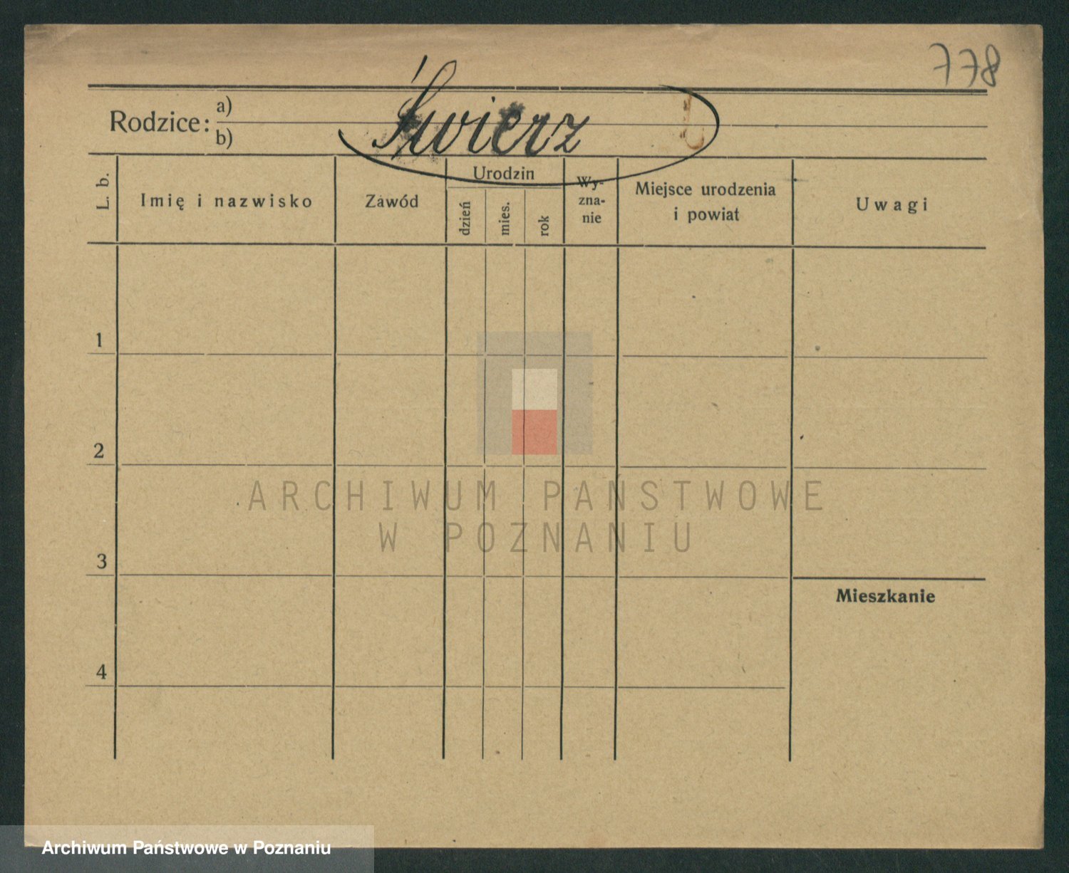 Podgląd karty osobowej dostępny jest po kliknięciu na nazwisko lub ikonkę karty. Można dokonywać powiększenia (ikony na górze) lub przechodzić między kolejnymi skanami (strzałki po bokach).