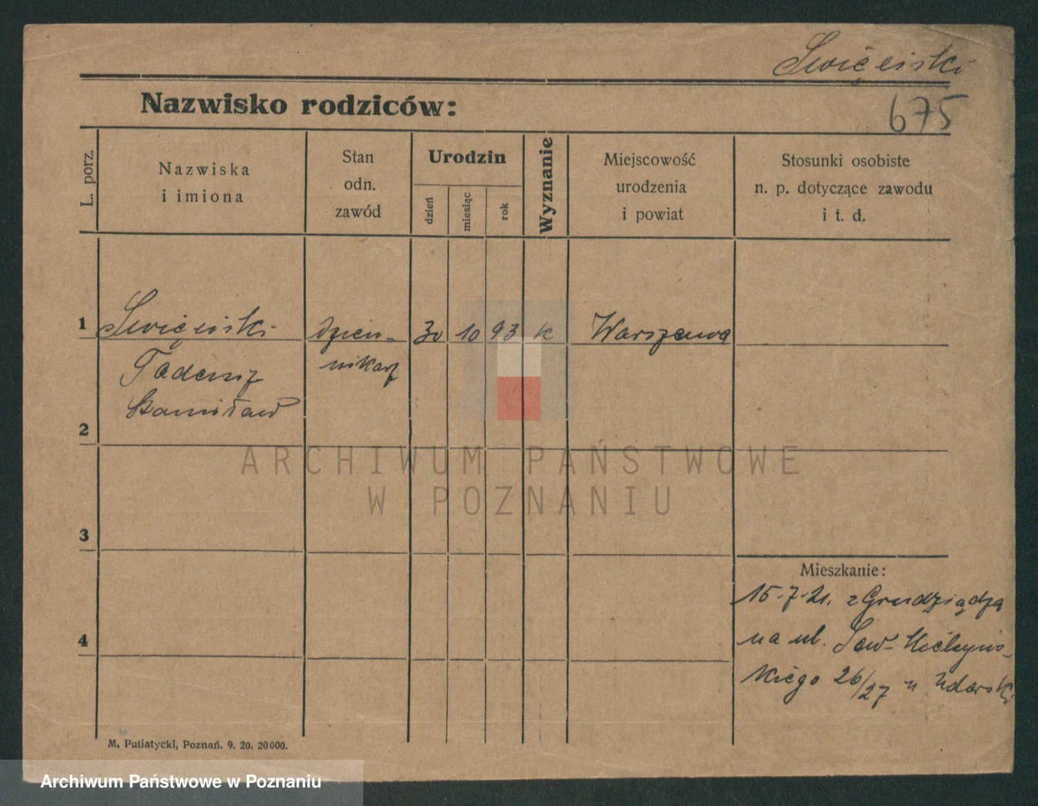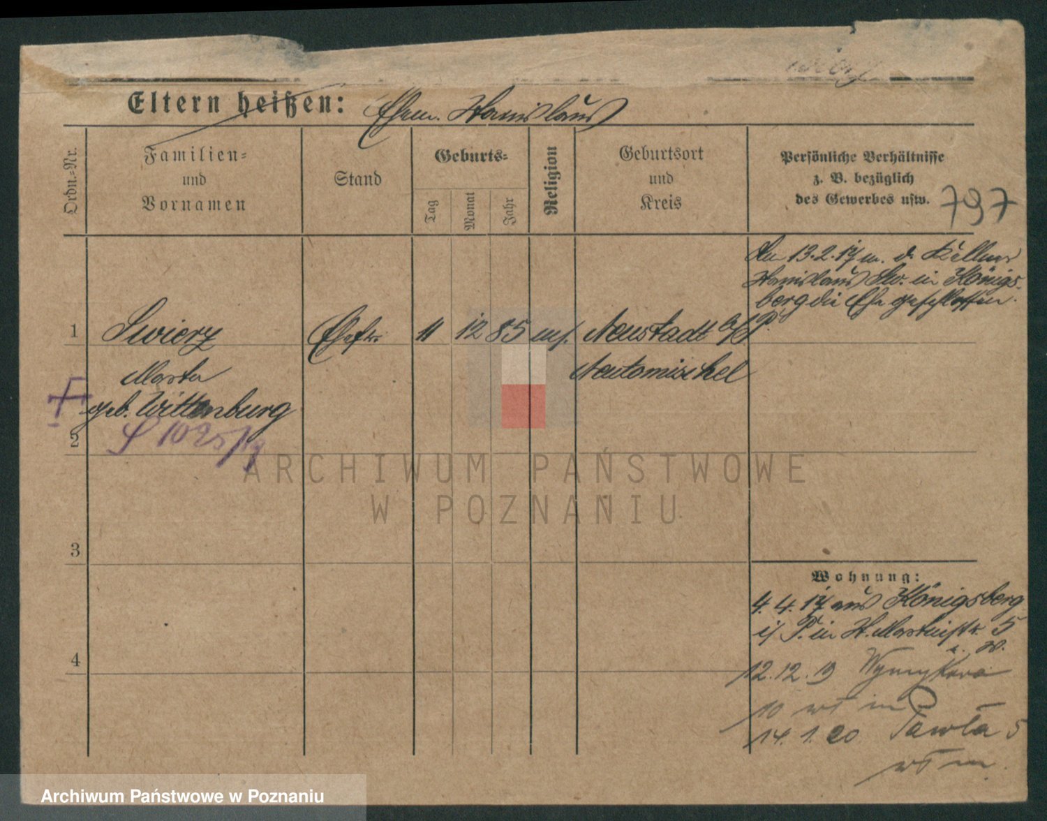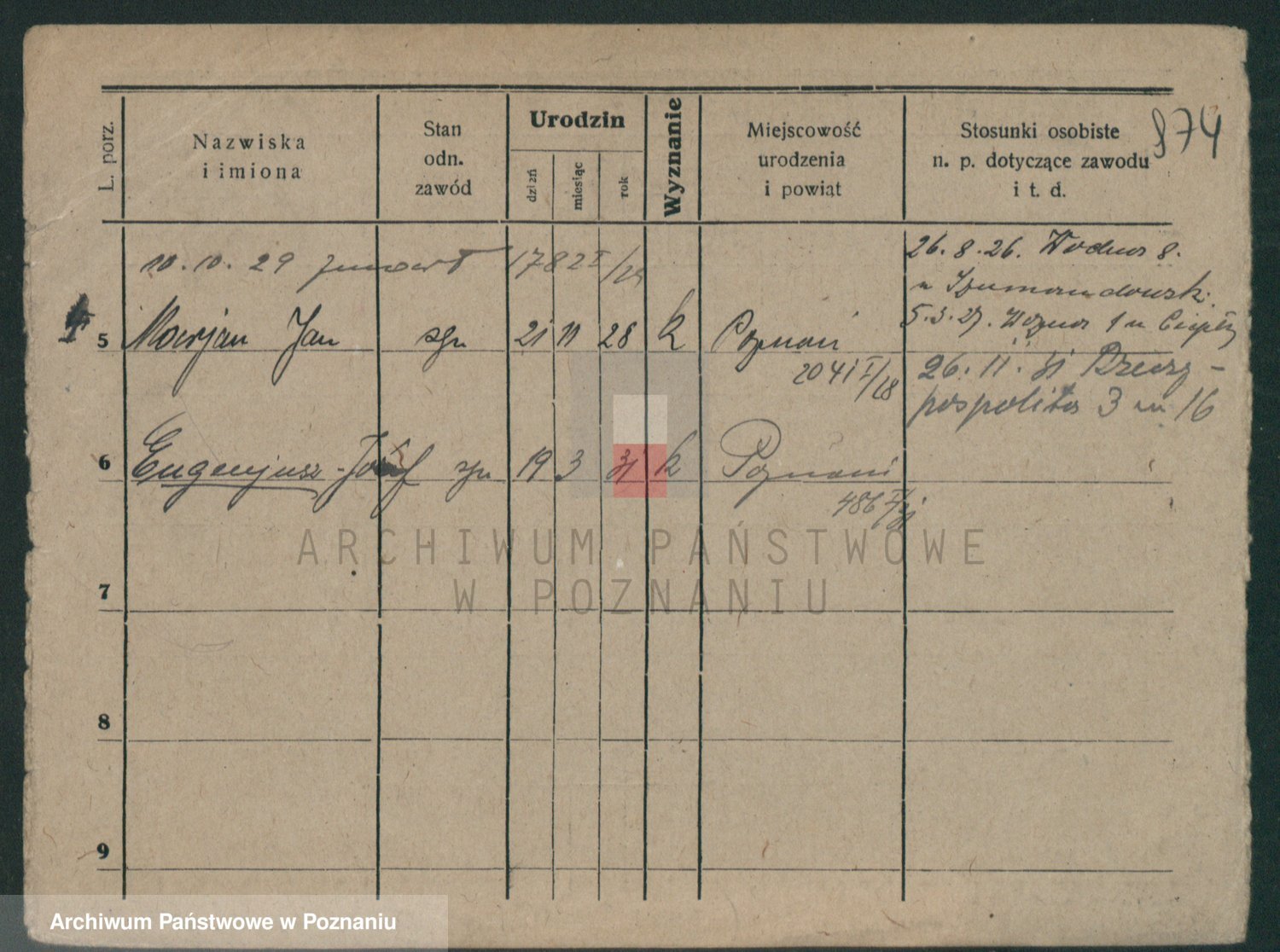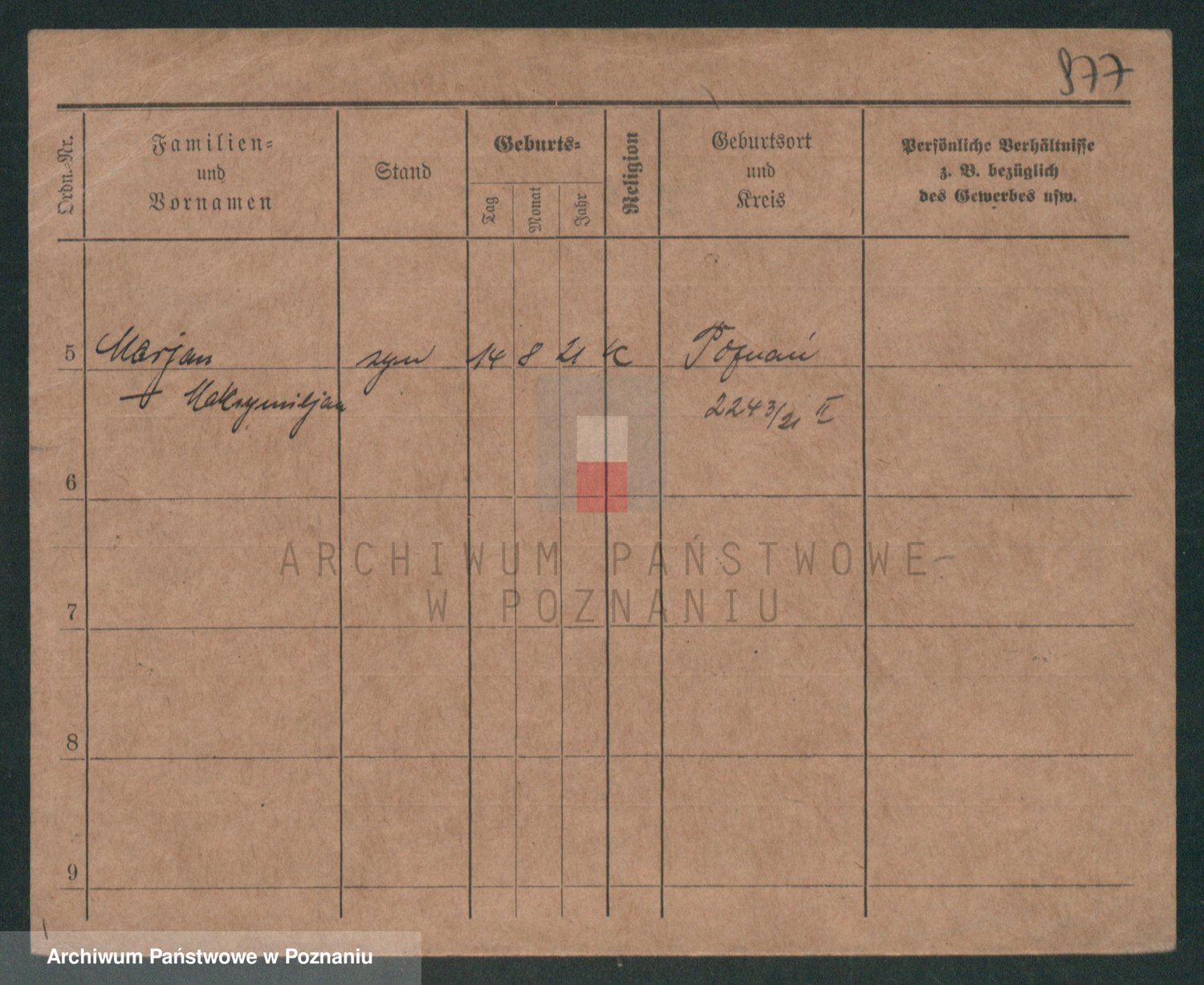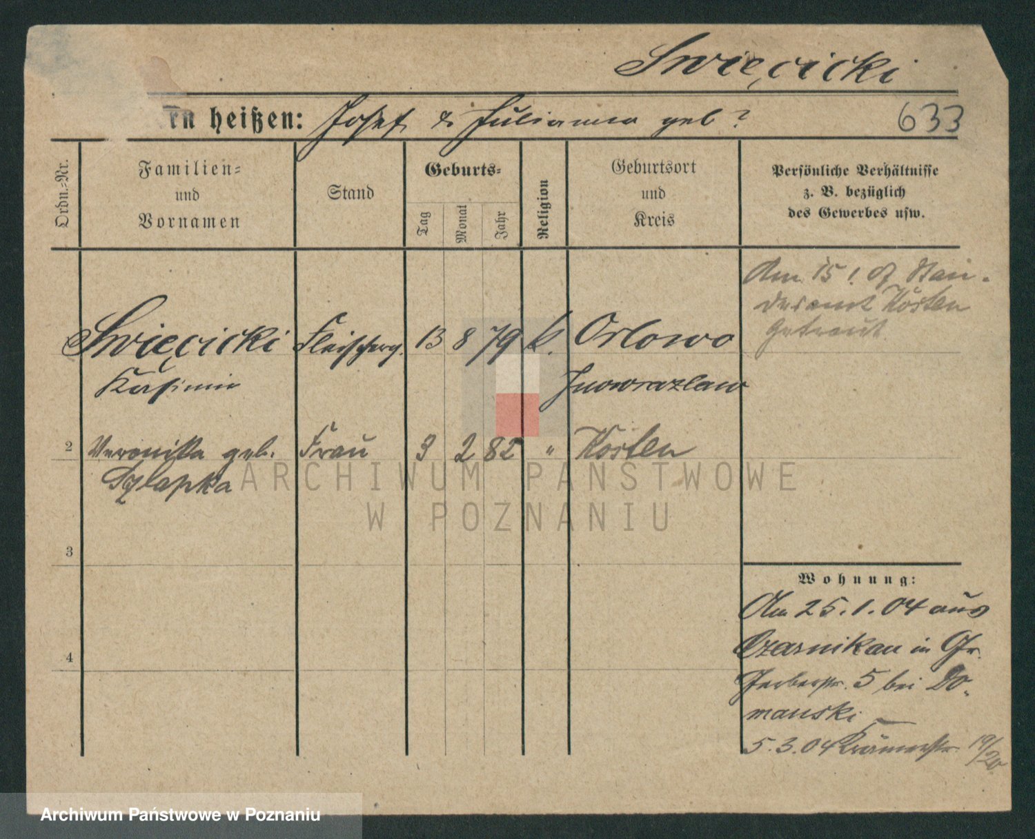 Podgląd karty osobowej dostępny jest po kliknięciu na nazwisko lub ikonkę karty. Można dokonywać powiększenia (ikony na górze) lub przechodzić między kolejnymi skanami (strzałki po bokach).