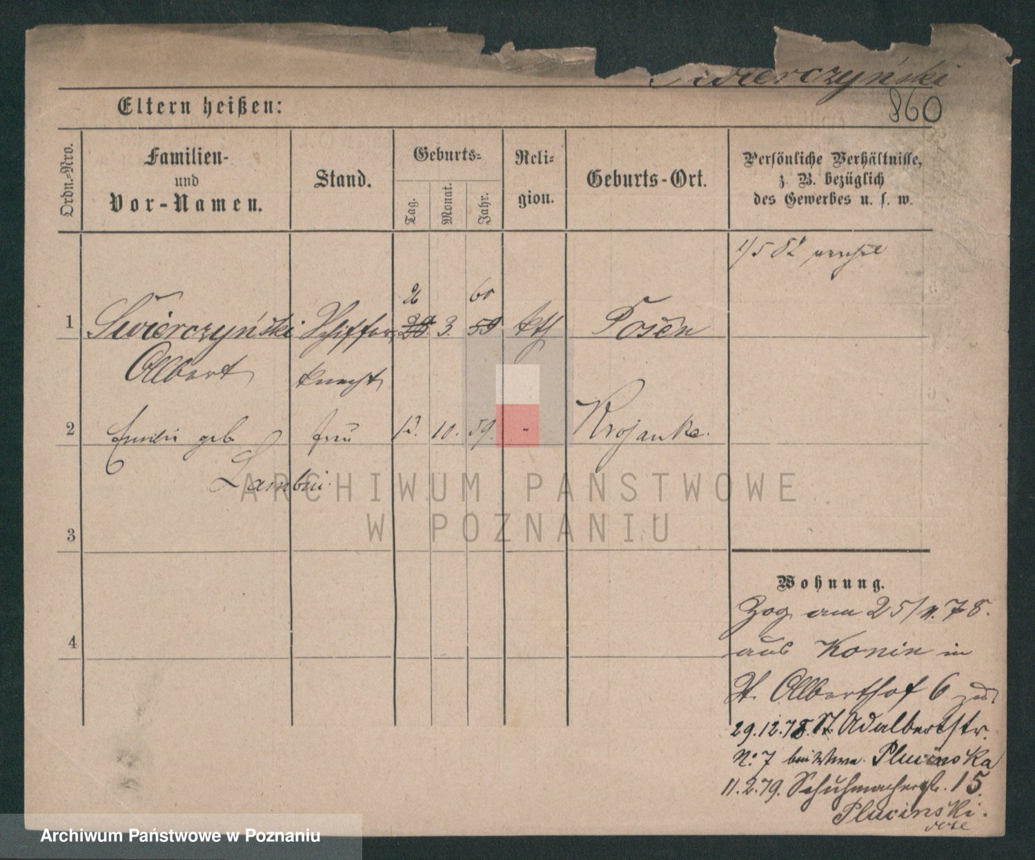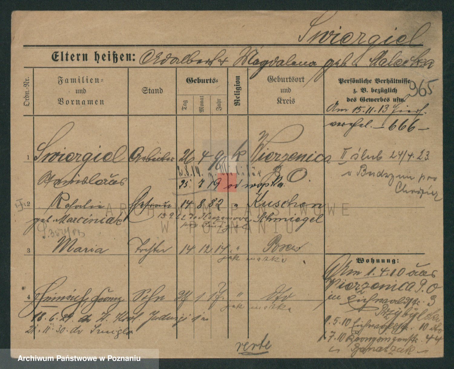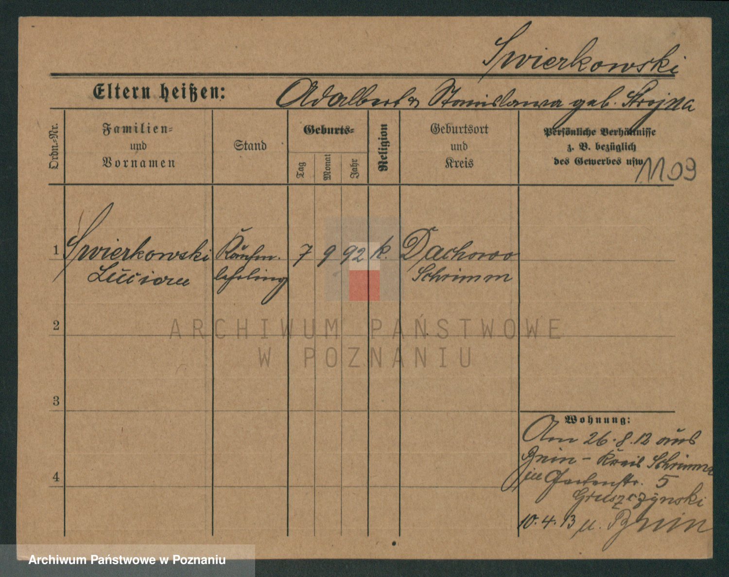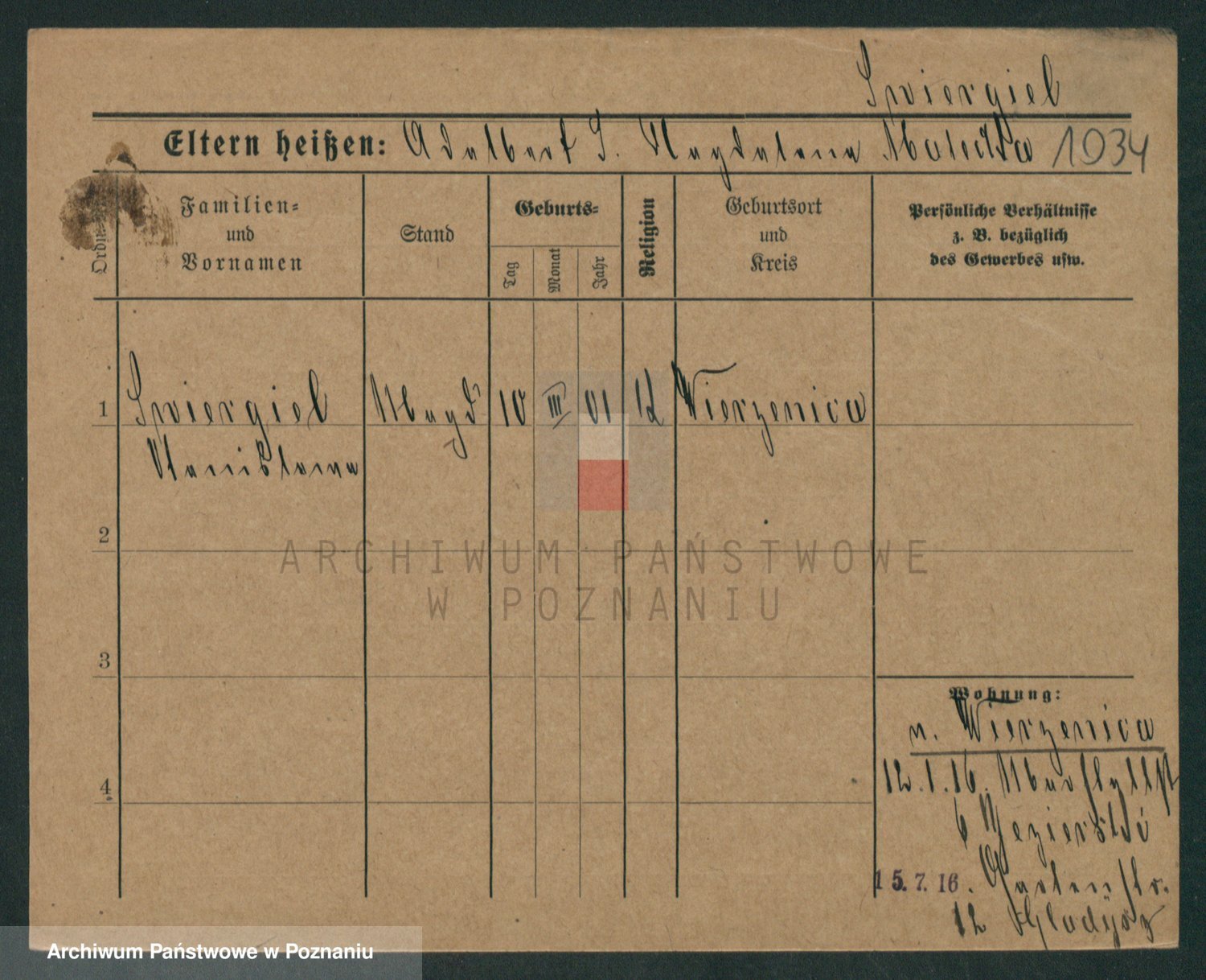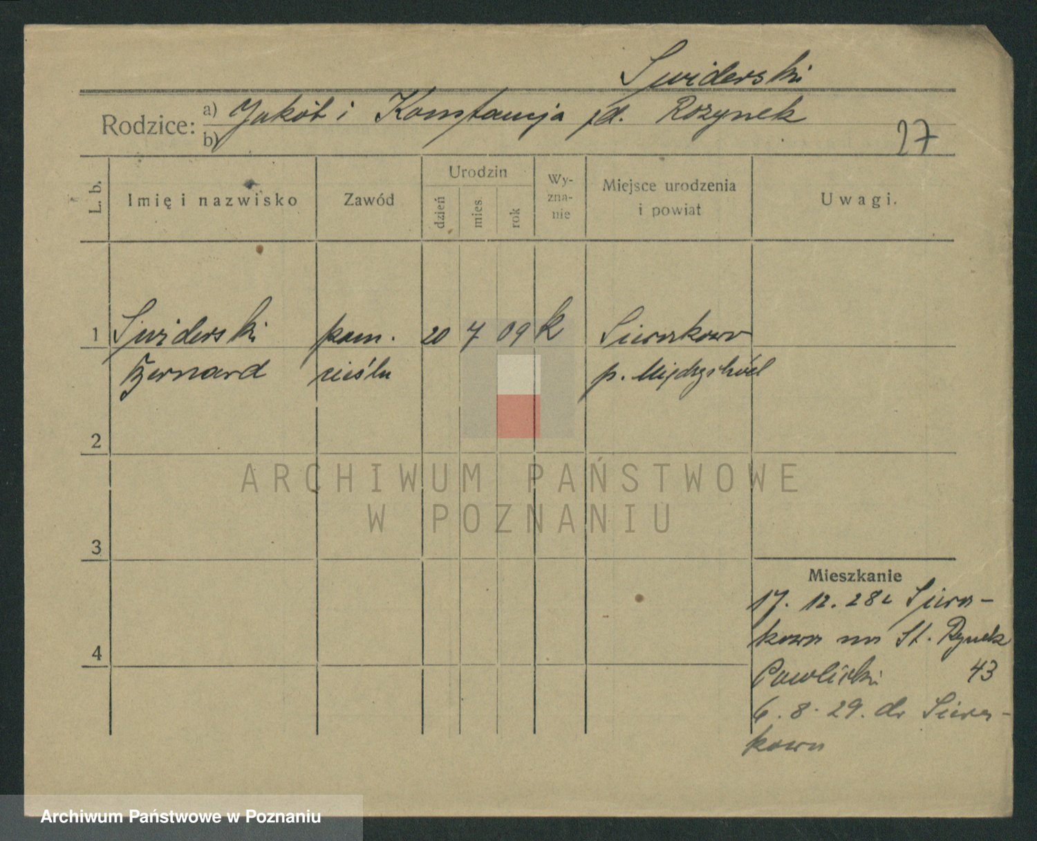 Podgląd karty osobowej dostępny jest po kliknięciu na nazwisko lub ikonkę karty. Można dokonywać powiększenia (ikony na górze) lub przechodzić między kolejnymi skanami (strzałki po bokach).