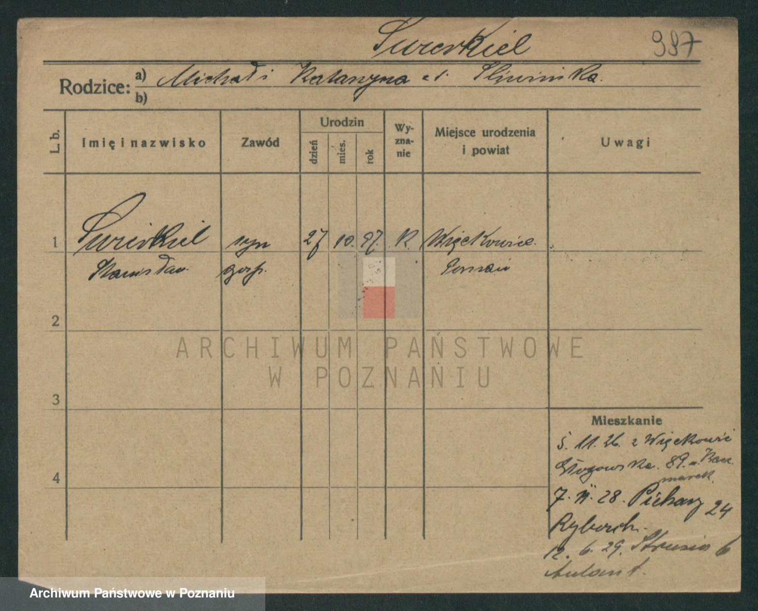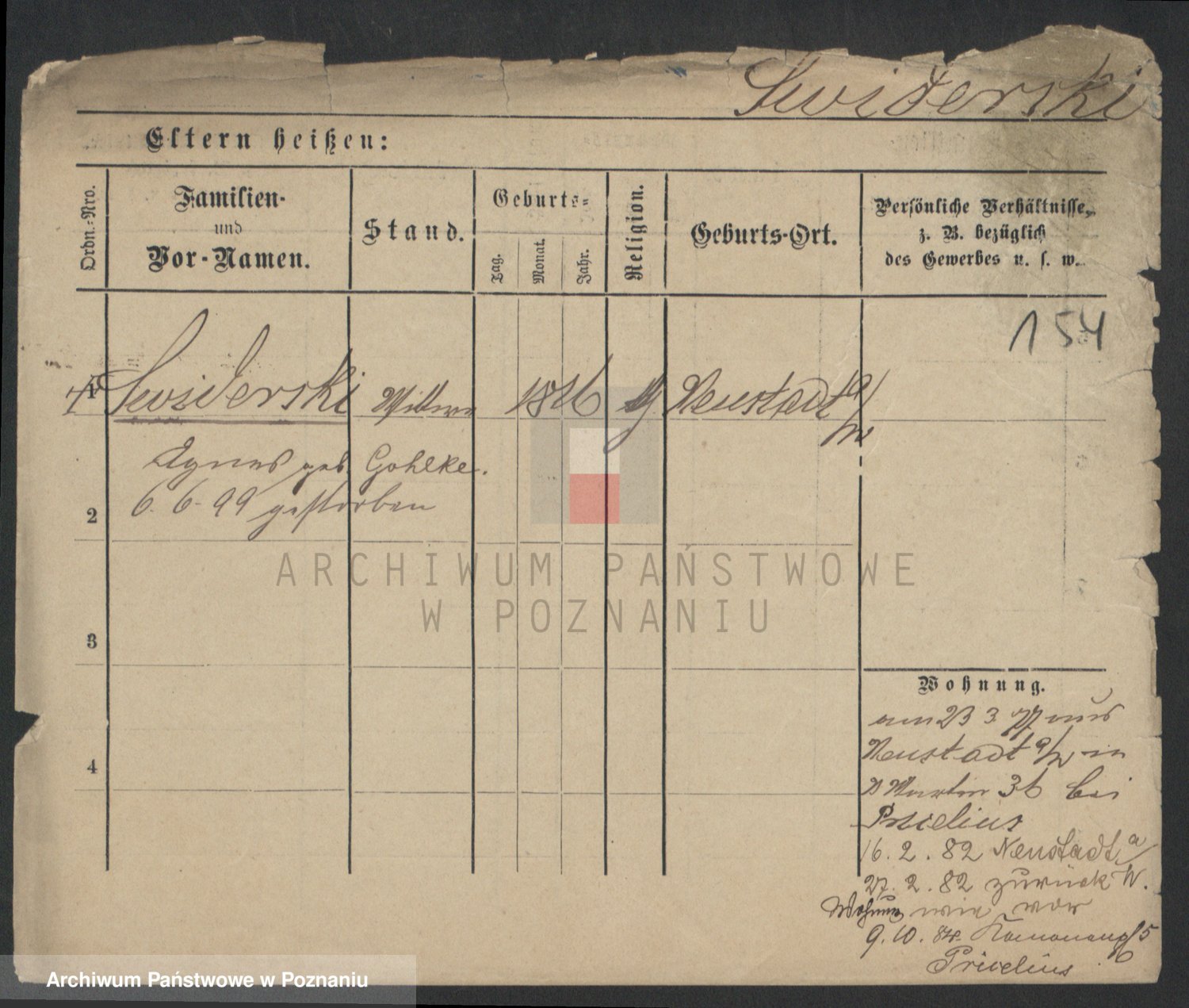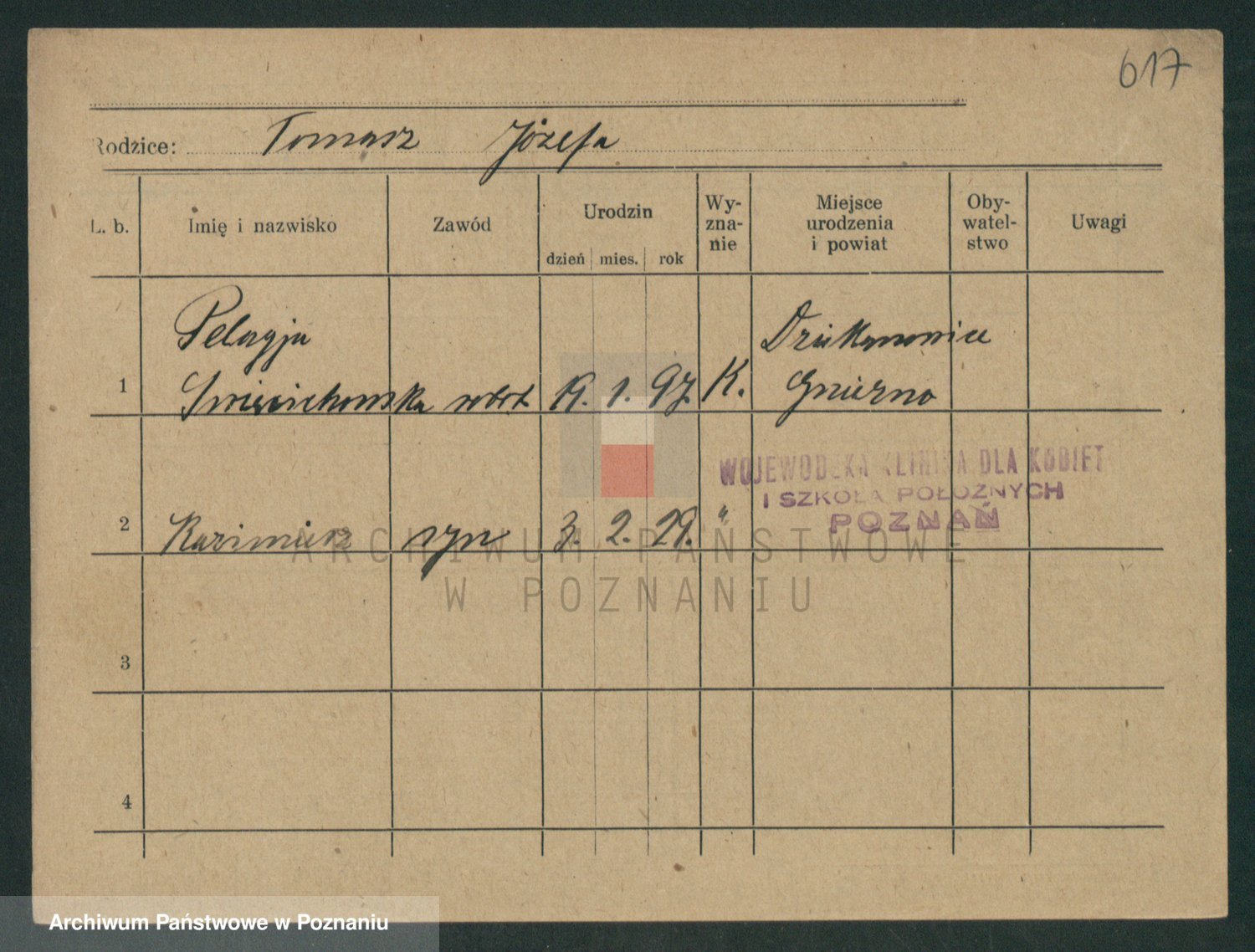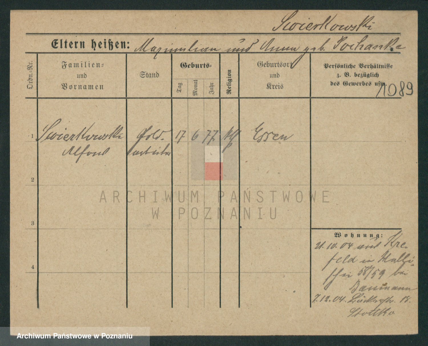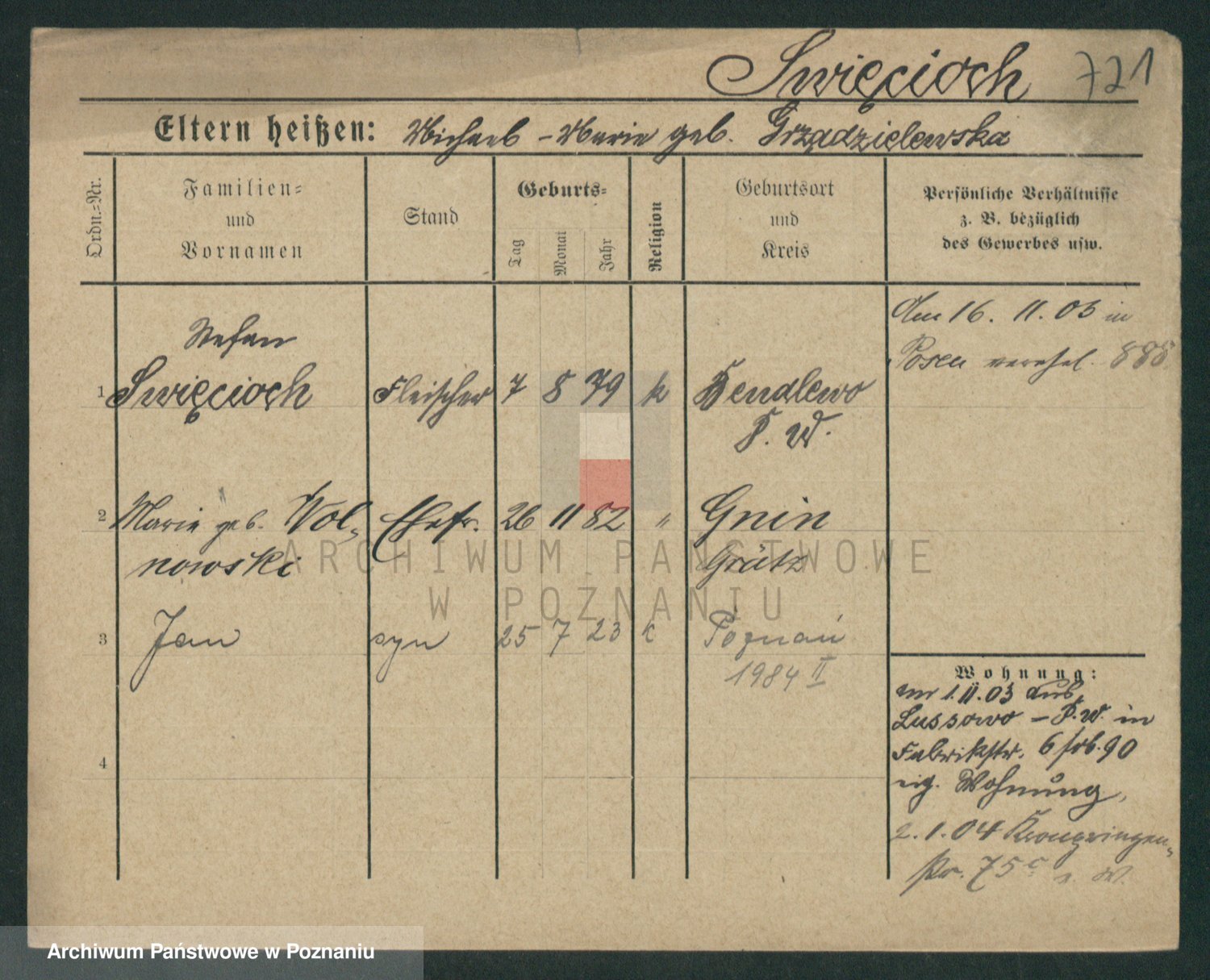 Podgląd karty osobowej dostępny jest po kliknięciu na nazwisko lub ikonkę karty. Można dokonywać powiększenia (ikony na górze) lub przechodzić między kolejnymi skanami (strzałki po bokach).