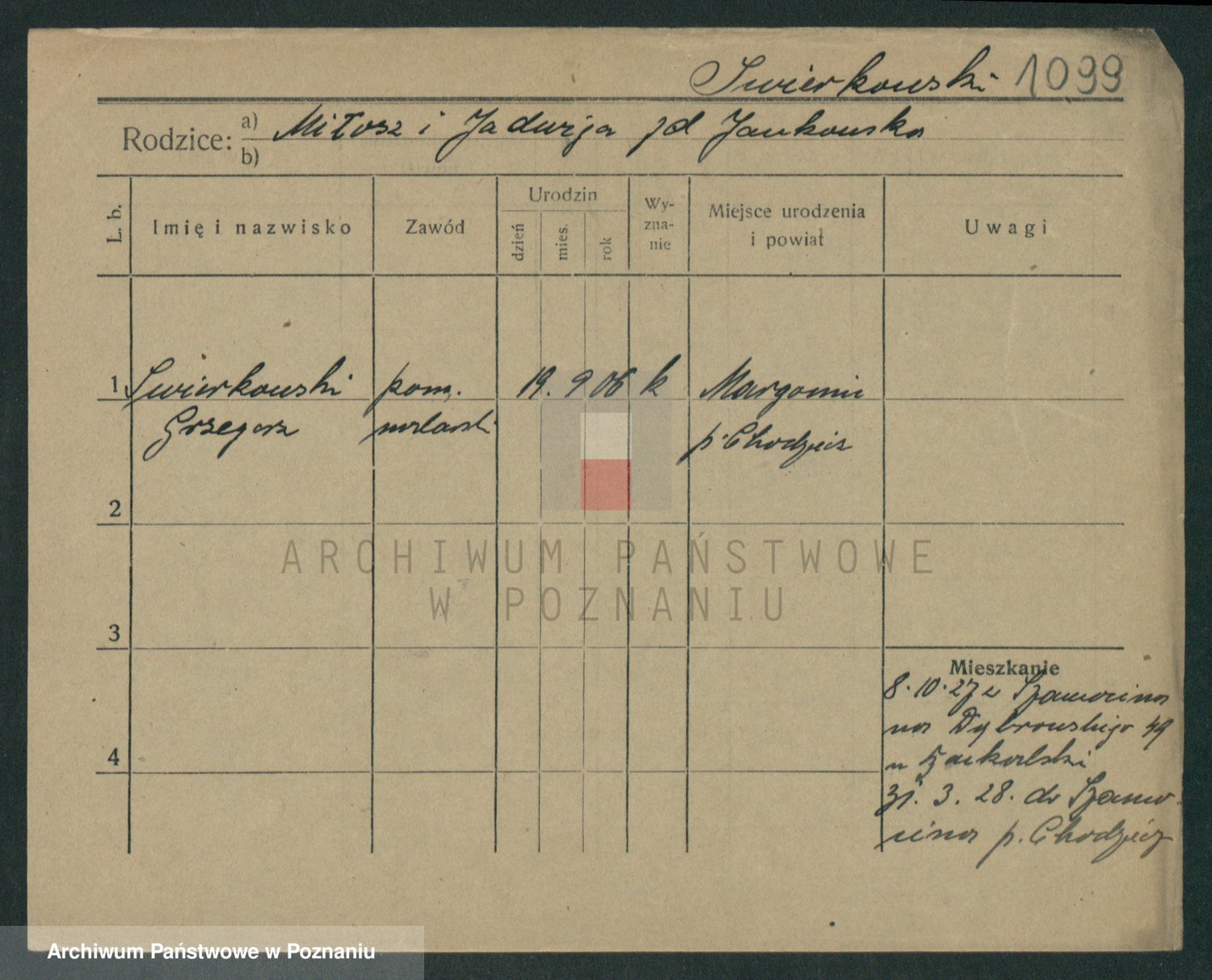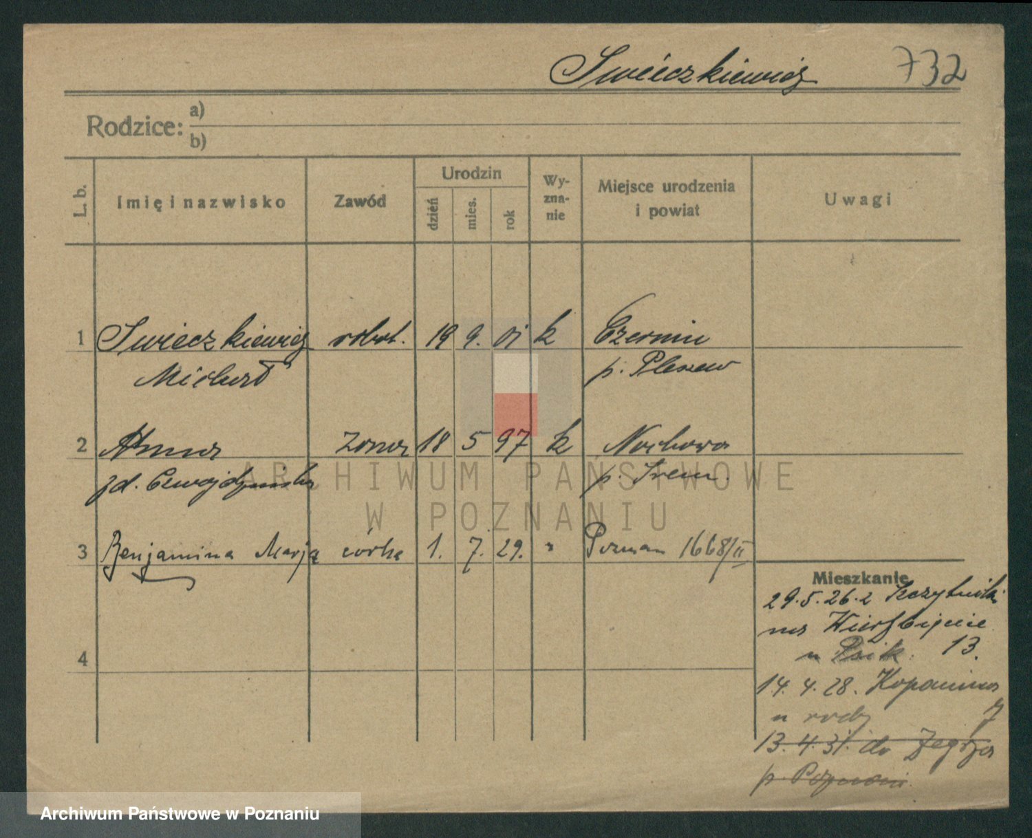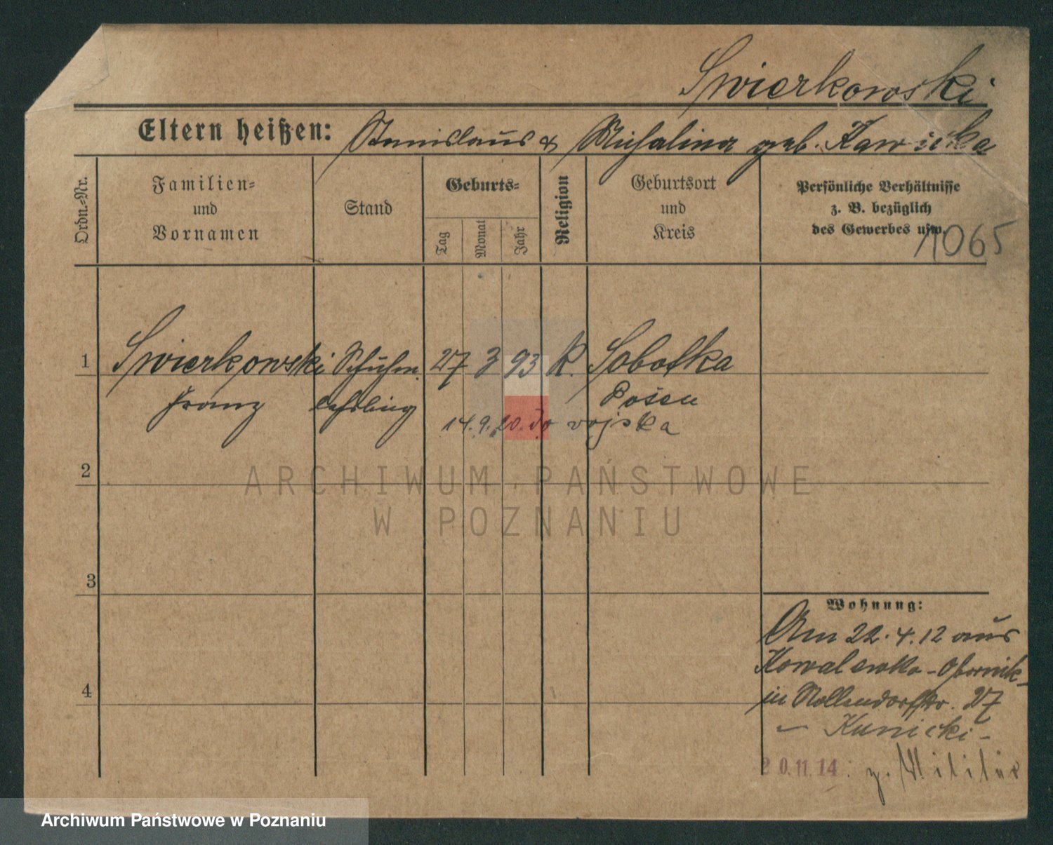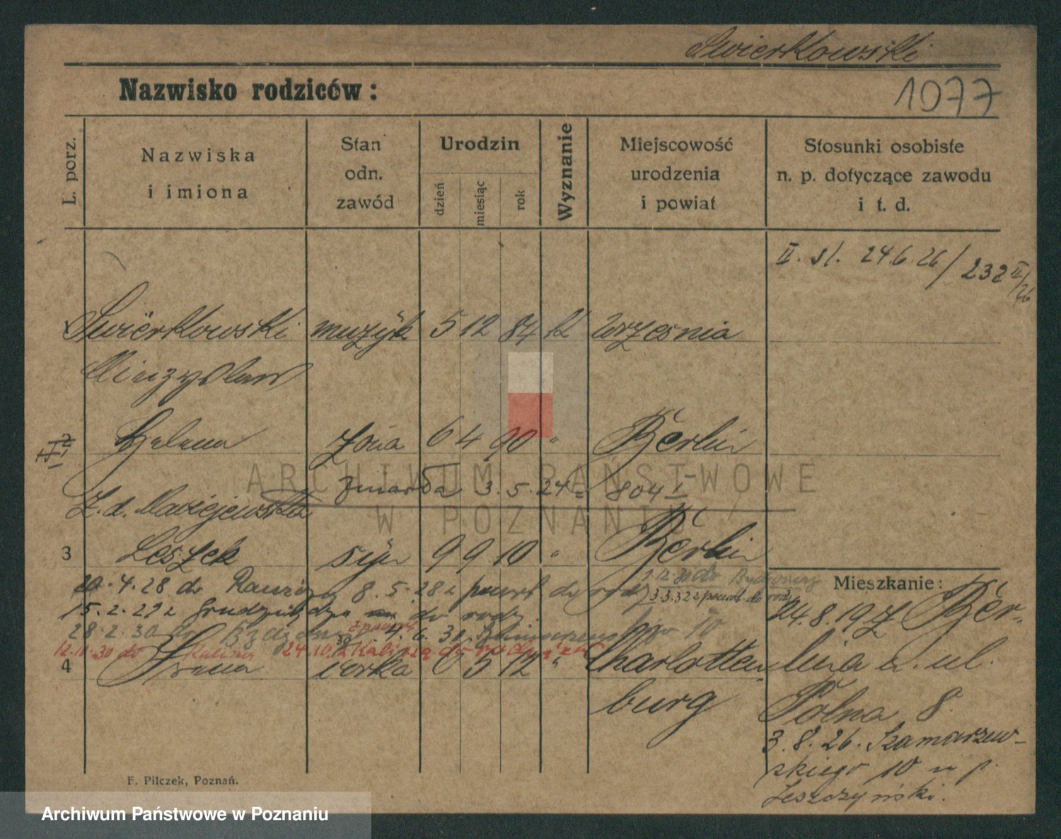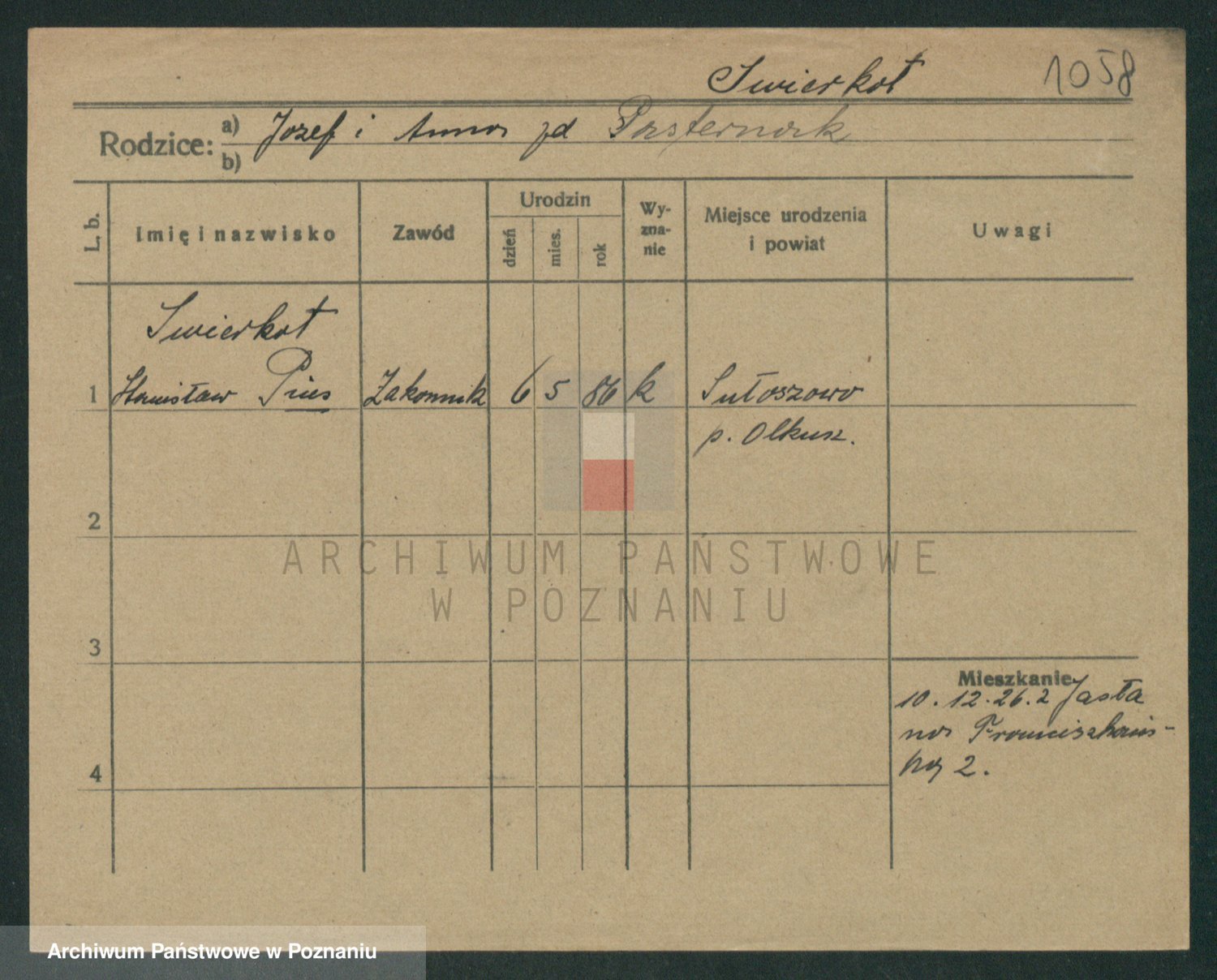 Podgląd karty osobowej dostępny jest po kliknięciu na nazwisko lub ikonkę karty. Można dokonywać powiększenia (ikony na górze) lub przechodzić między kolejnymi skanami (strzałki po bokach).