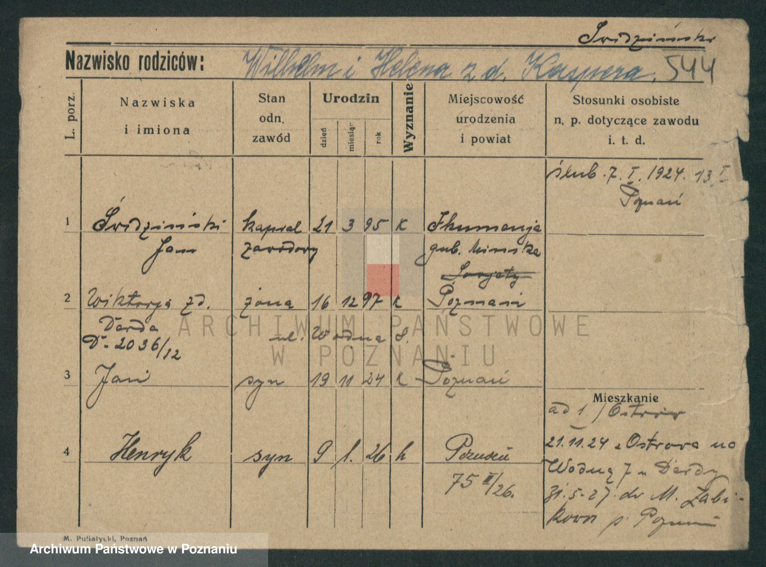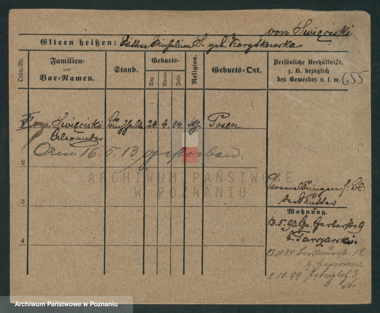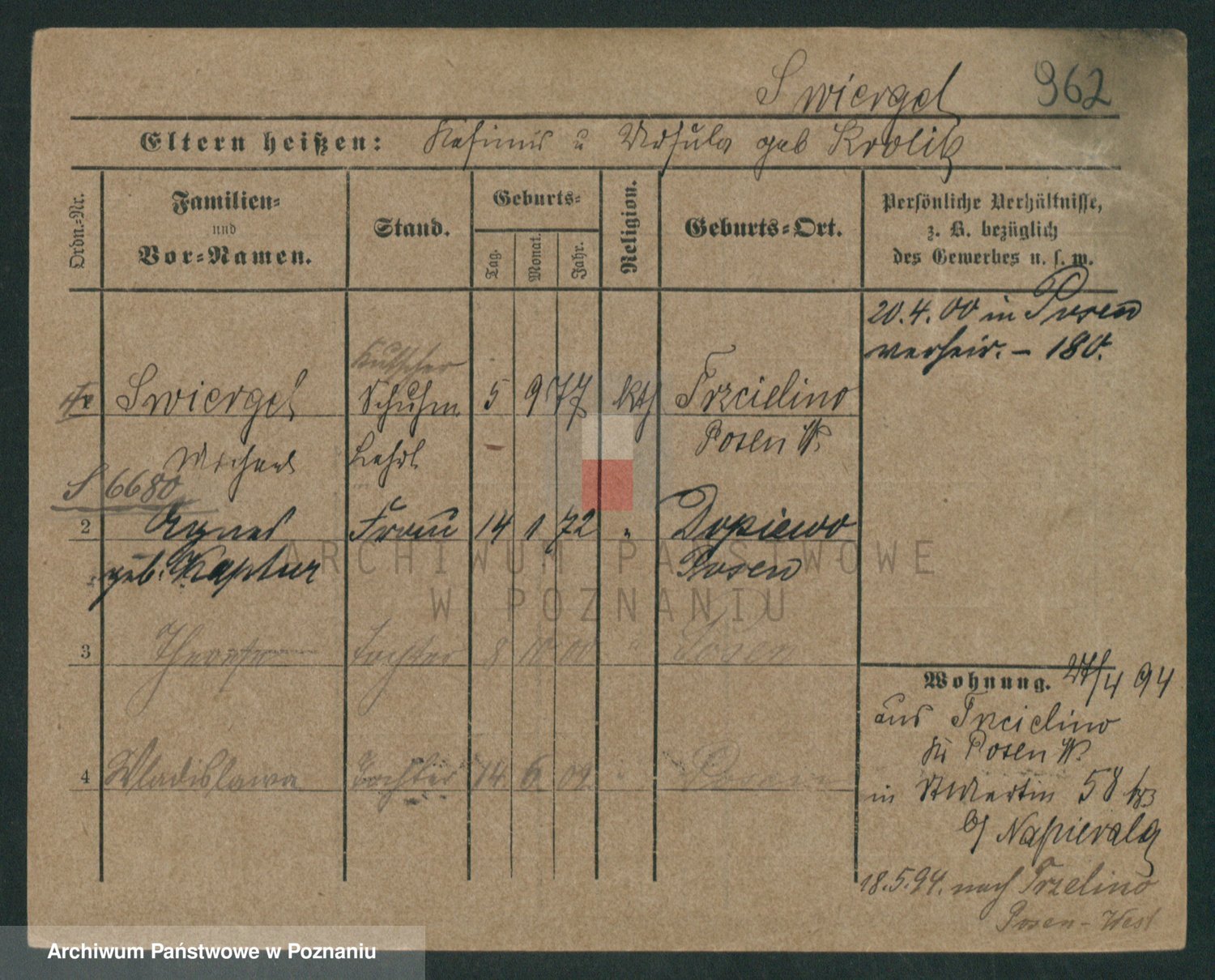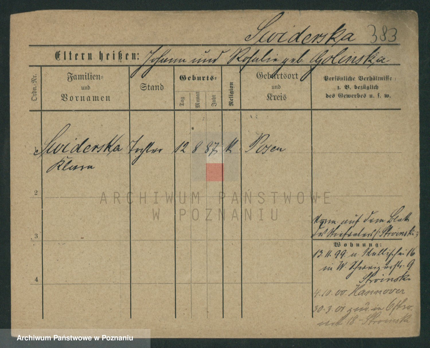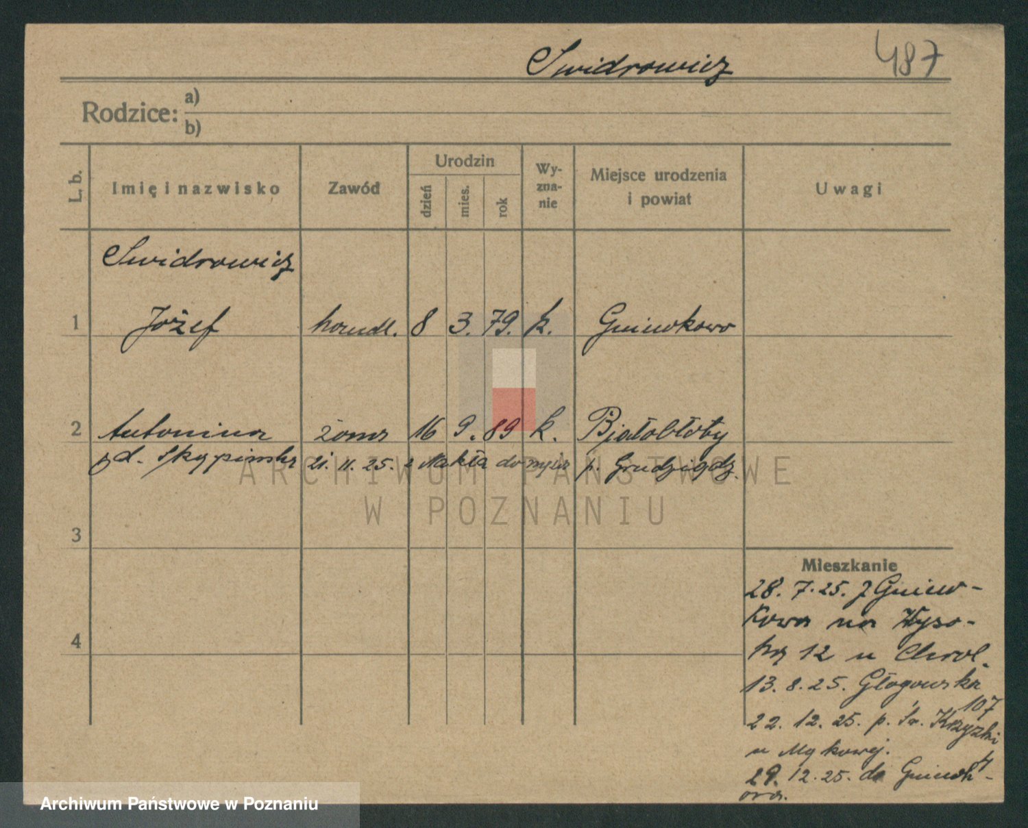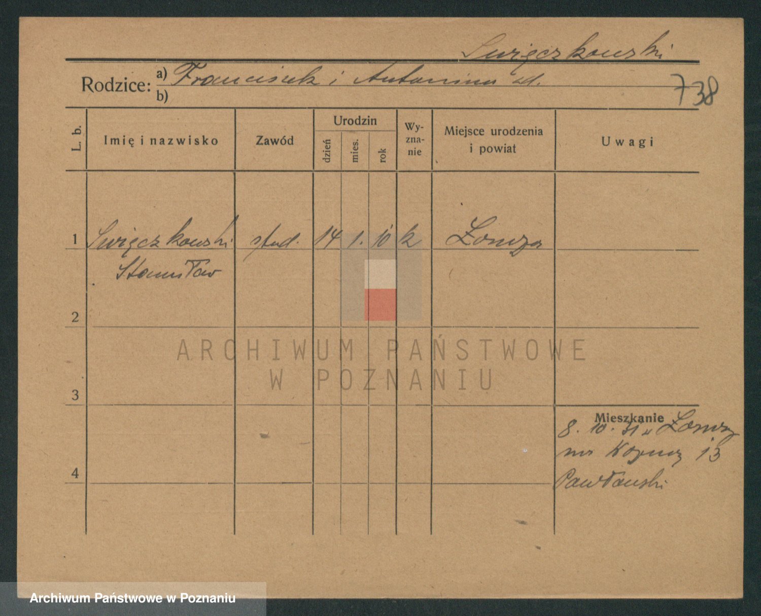 Podgląd karty osobowej dostępny jest po kliknięciu na nazwisko lub ikonkę karty. Można dokonywać powiększenia (ikony na górze) lub przechodzić między kolejnymi skanami (strzałki po bokach).