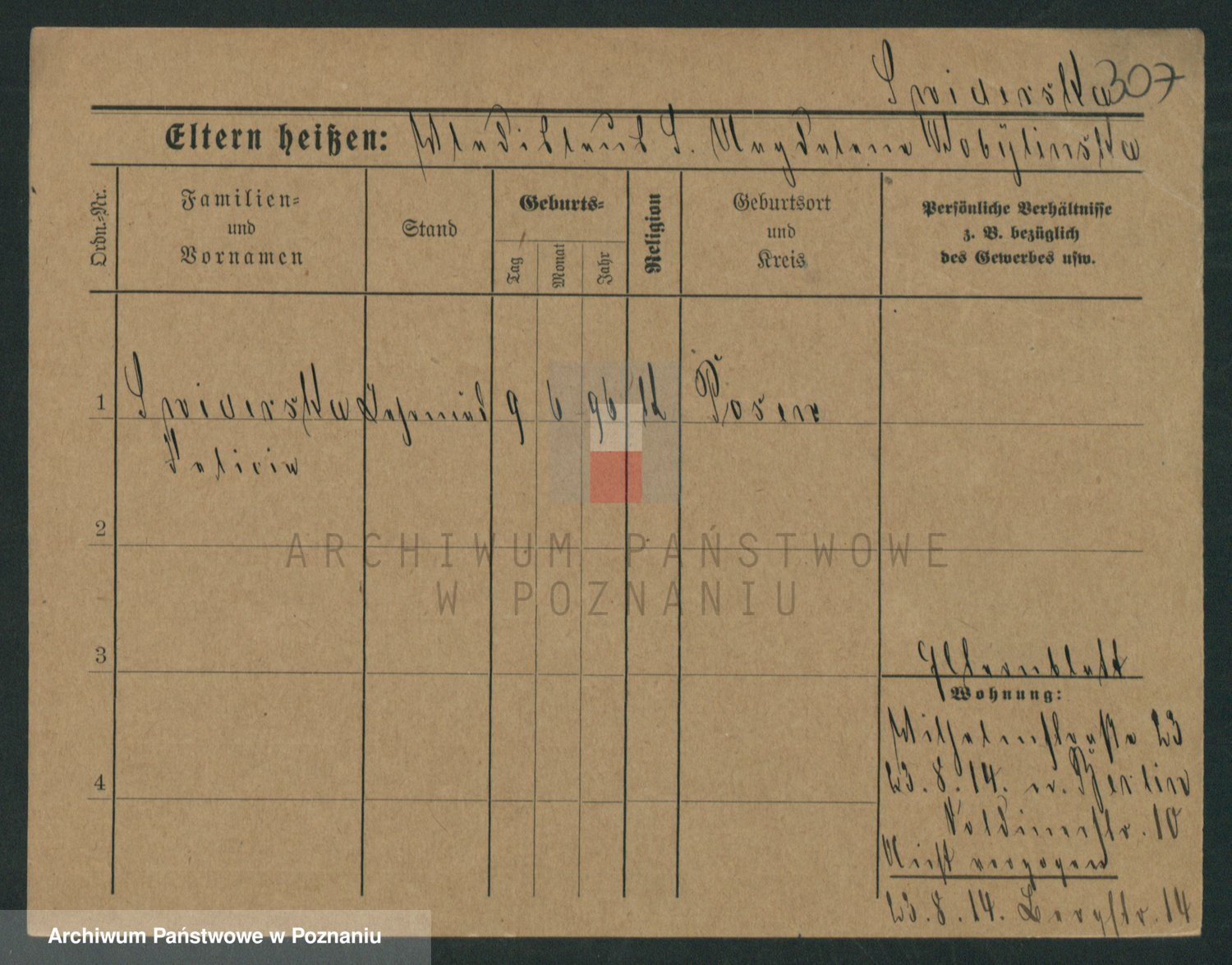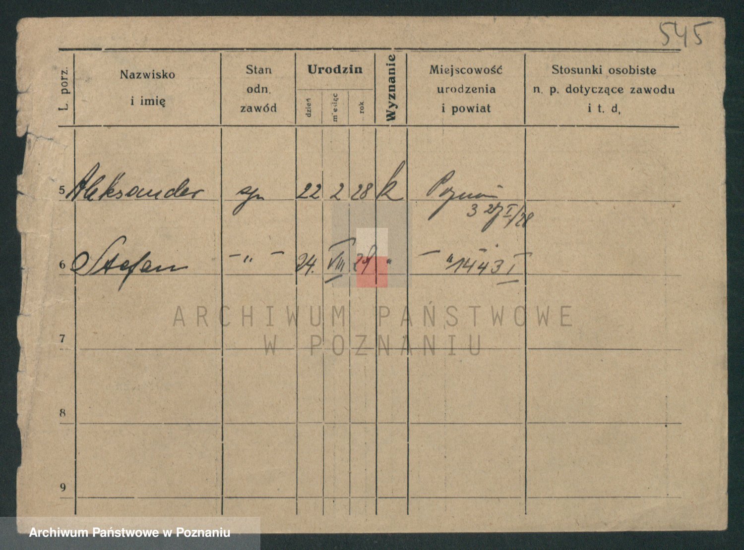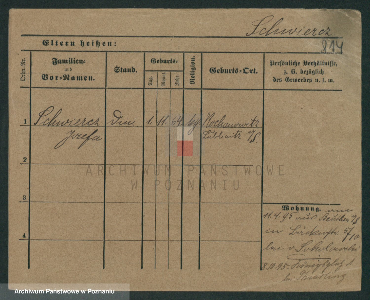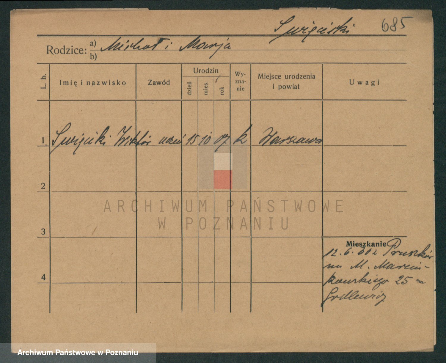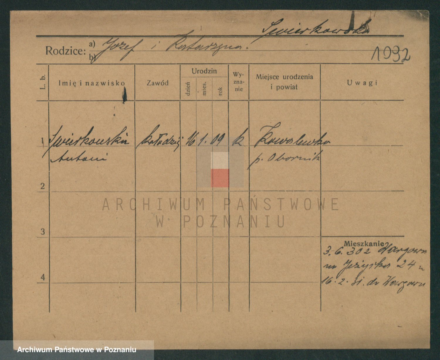 Podgląd karty osobowej dostępny jest po kliknięciu na nazwisko lub ikonkę karty. Można dokonywać powiększenia (ikony na górze) lub przechodzić między kolejnymi skanami (strzałki po bokach).