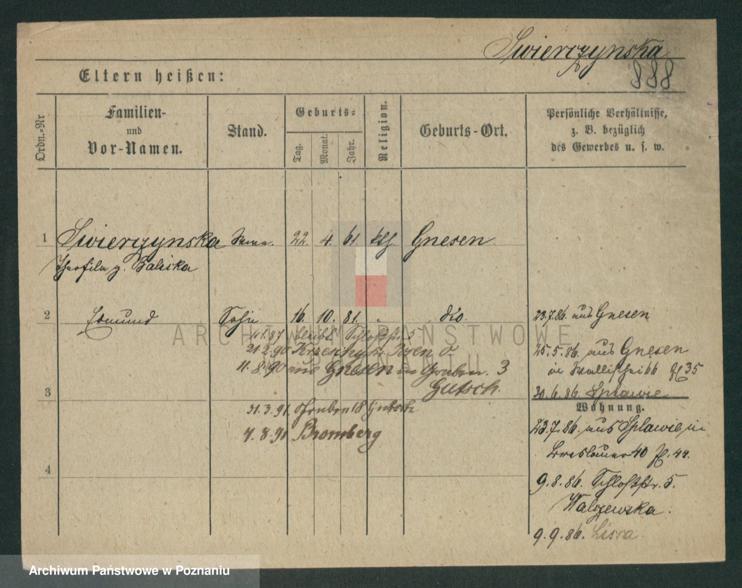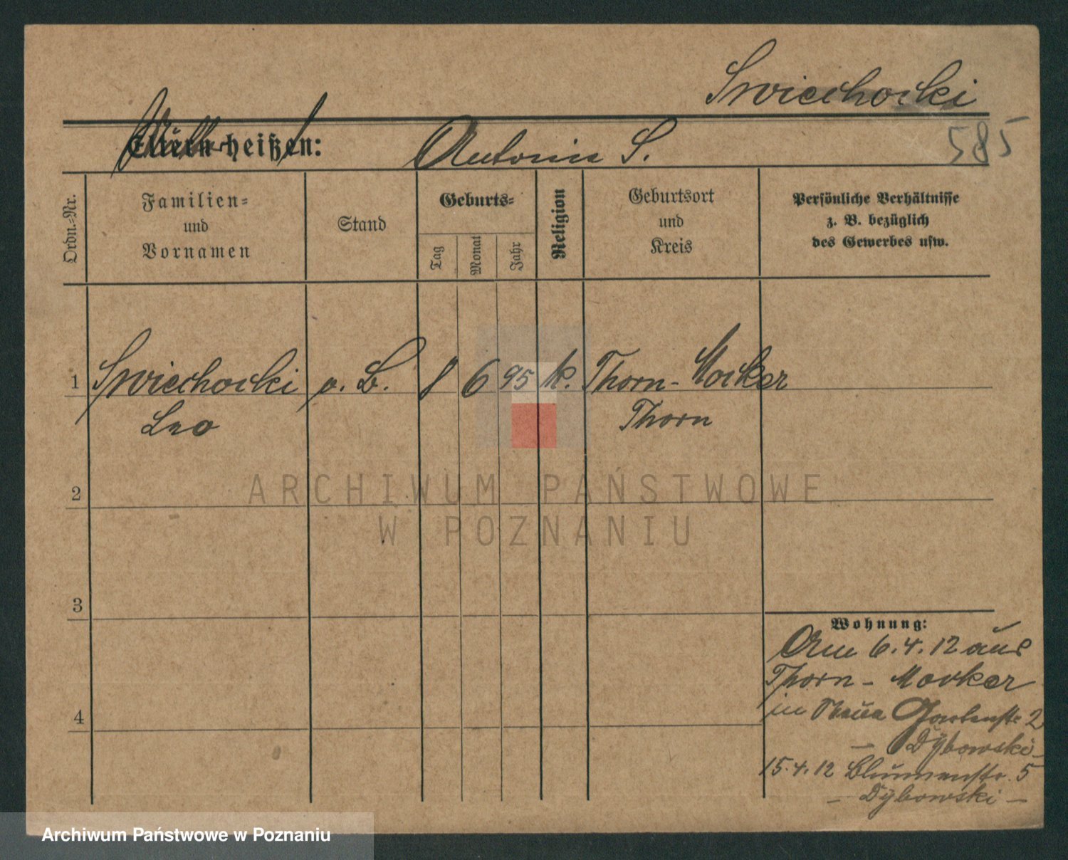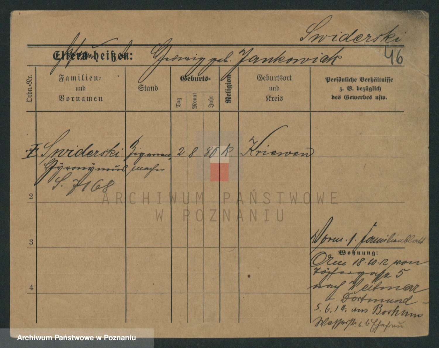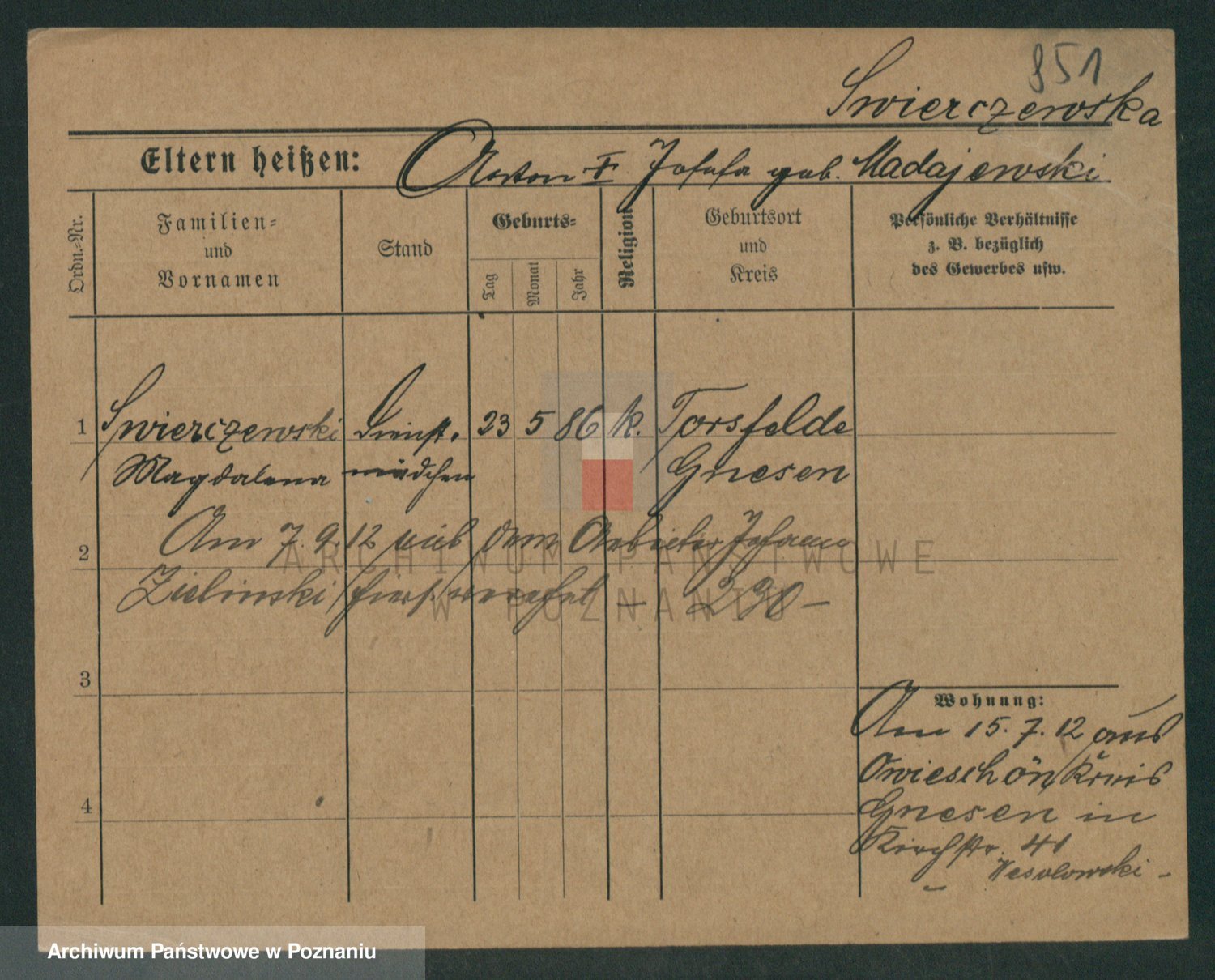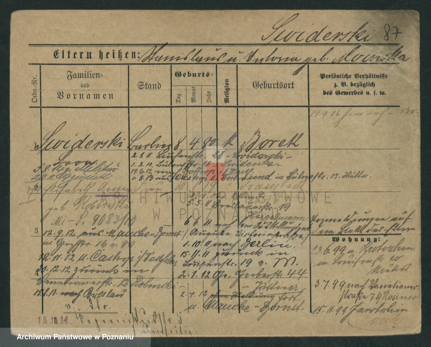 Podgląd karty osobowej dostępny jest po kliknięciu na nazwisko lub ikonkę karty. Można dokonywać powiększenia (ikony na górze) lub przechodzić między kolejnymi skanami (strzałki po bokach).