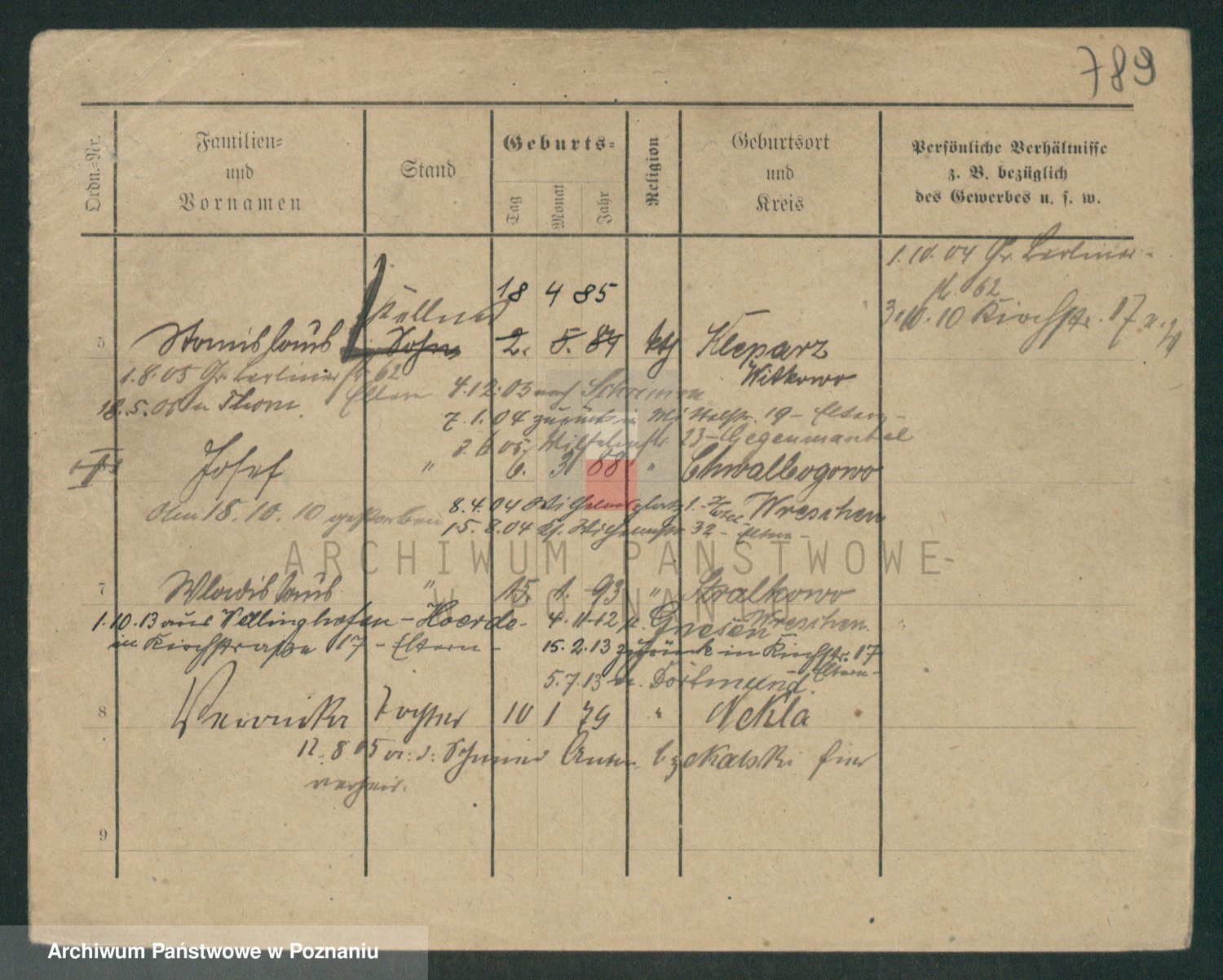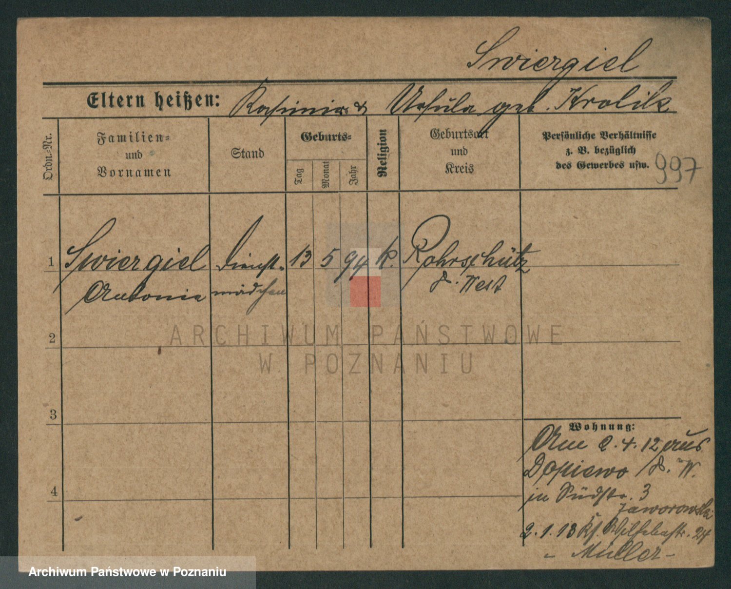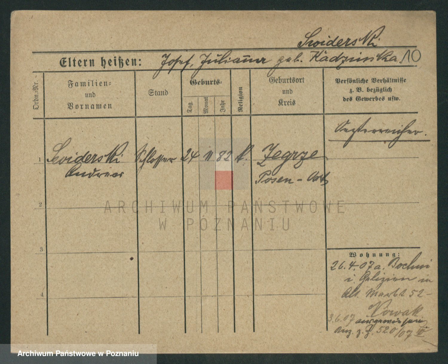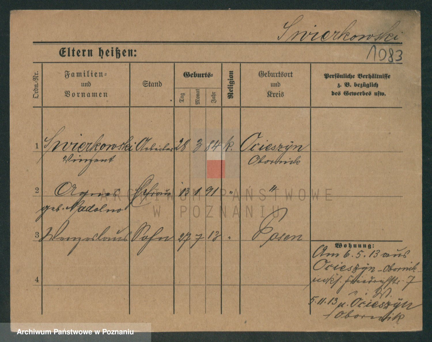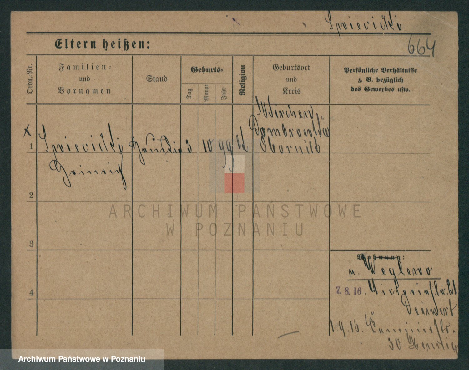 Podgląd karty osobowej dostępny jest po kliknięciu na nazwisko lub ikonkę karty. Można dokonywać powiększenia (ikony na górze) lub przechodzić między kolejnymi skanami (strzałki po bokach).