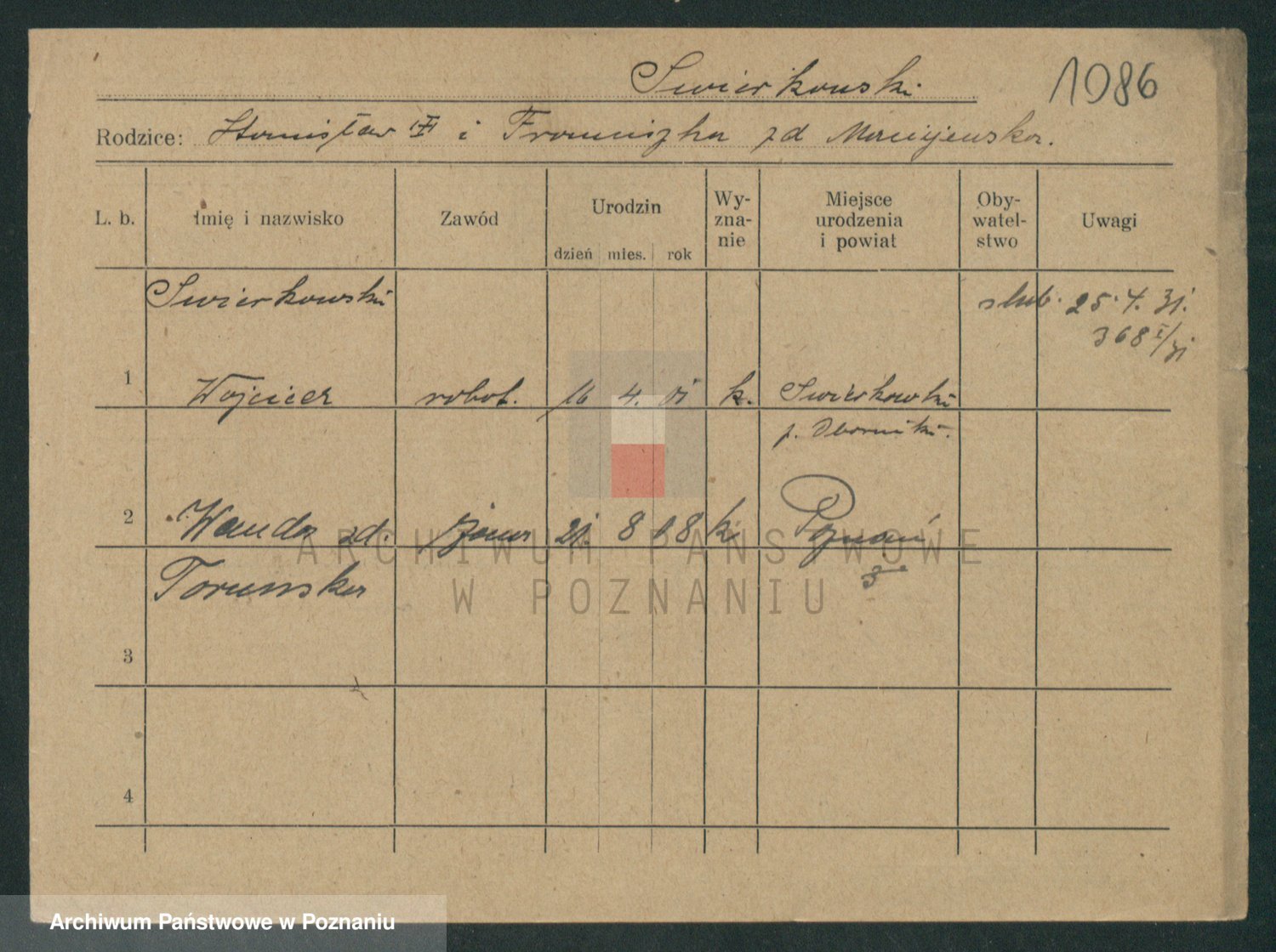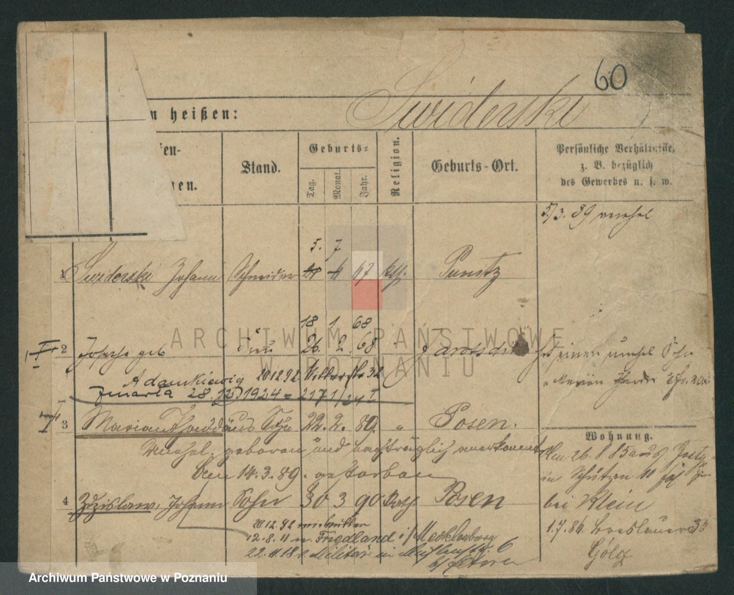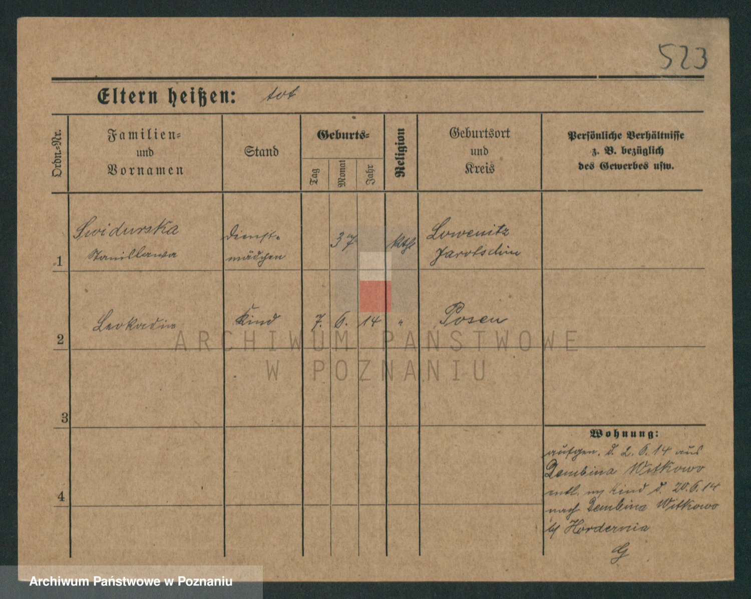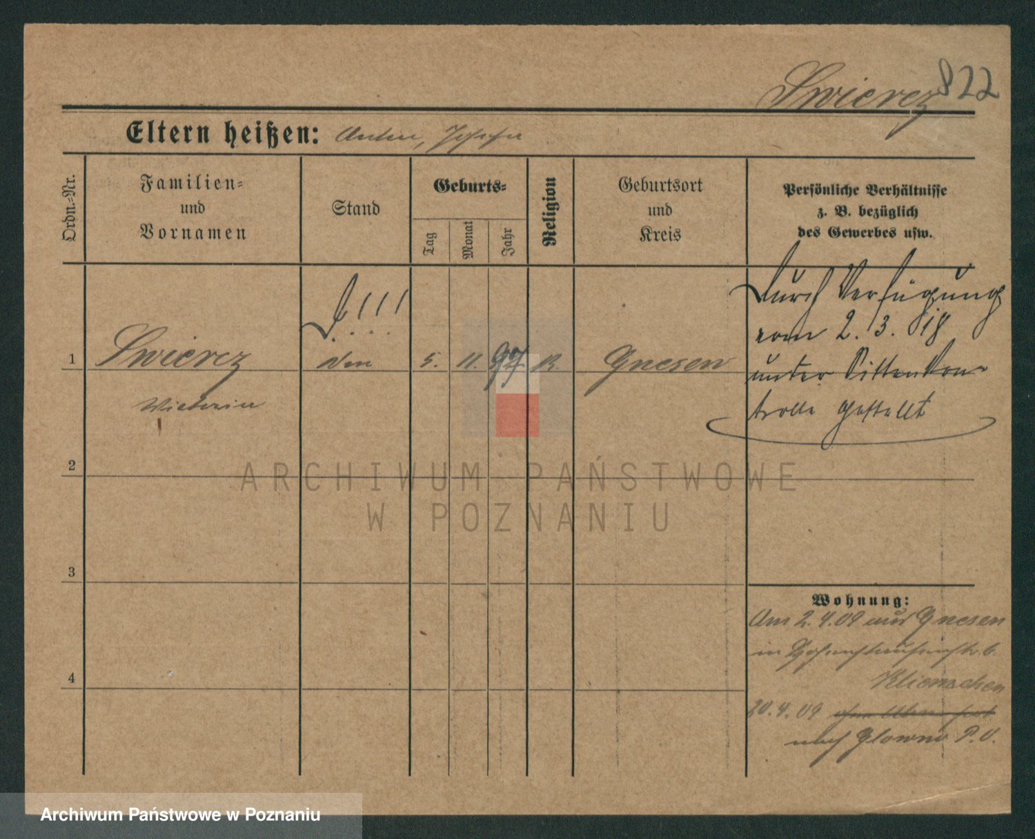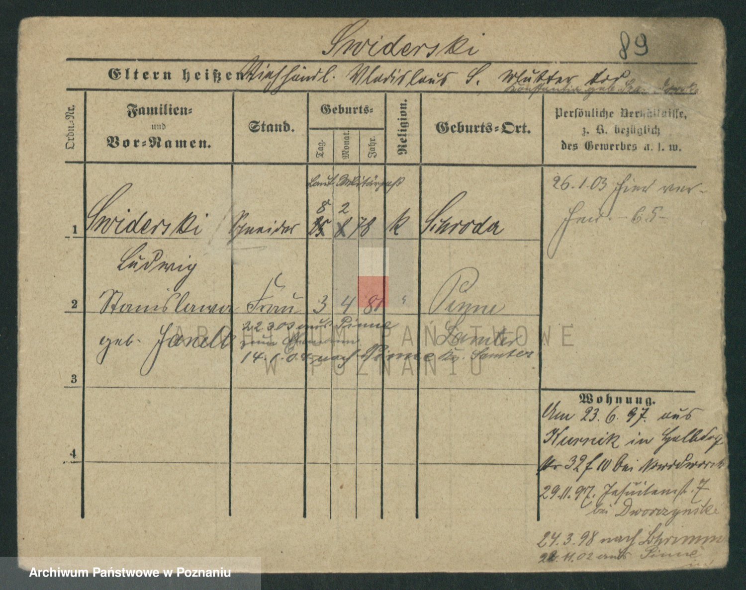 Podgląd karty osobowej dostępny jest po kliknięciu na nazwisko lub ikonkę karty. Można dokonywać powiększenia (ikony na górze) lub przechodzić między kolejnymi skanami (strzałki po bokach).