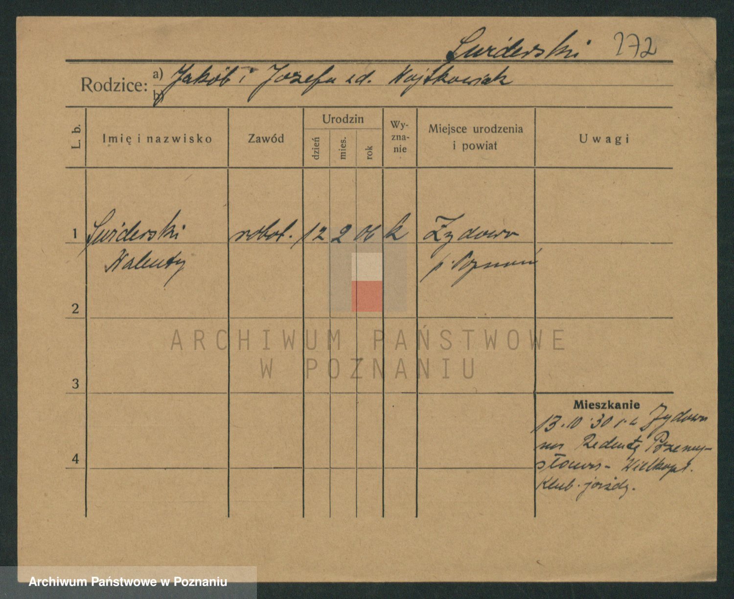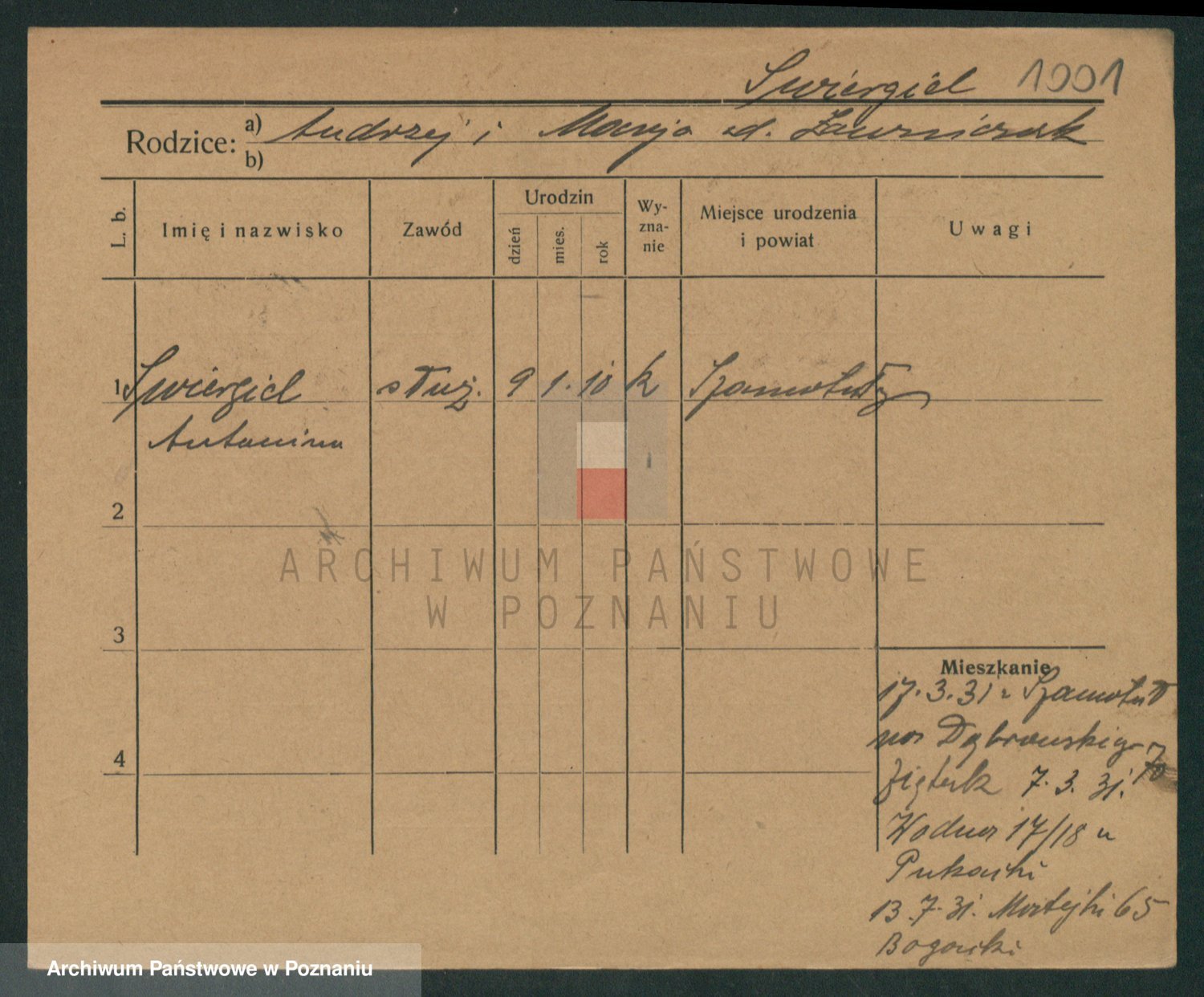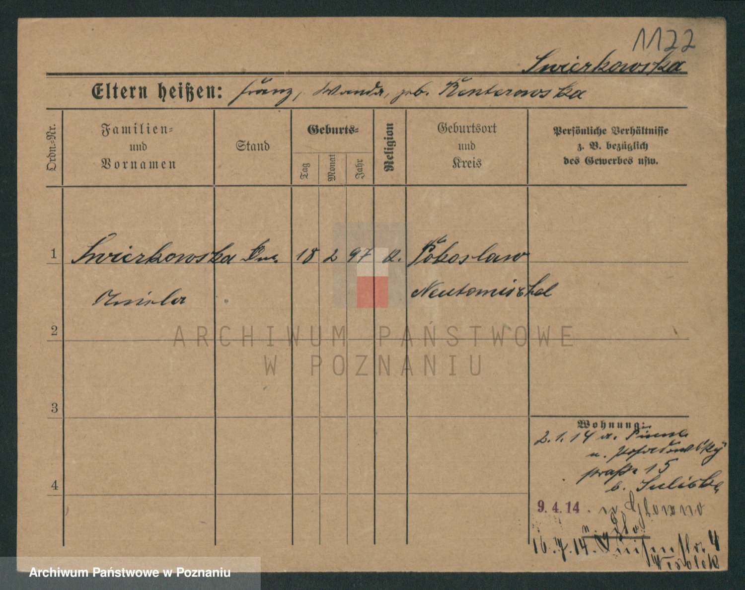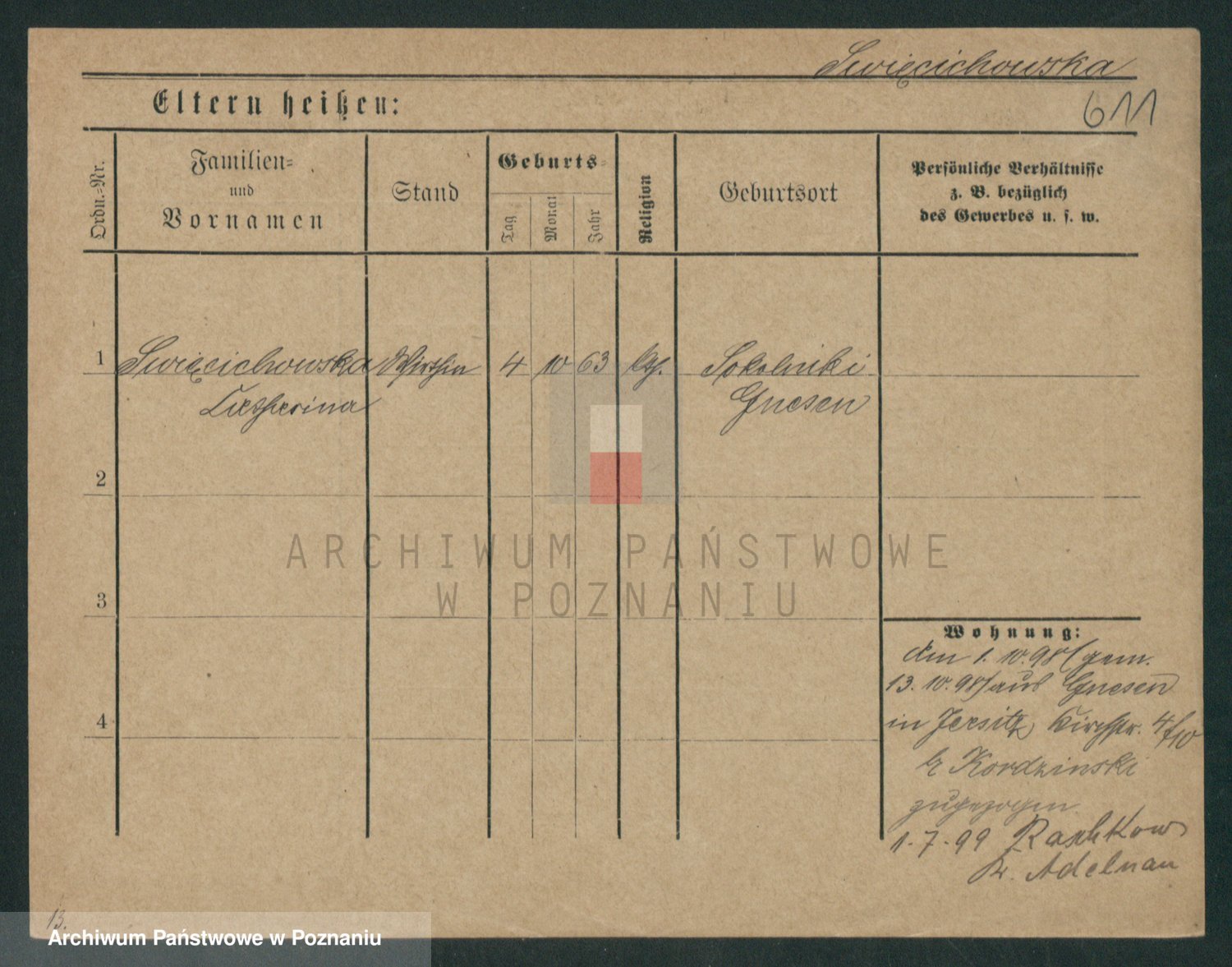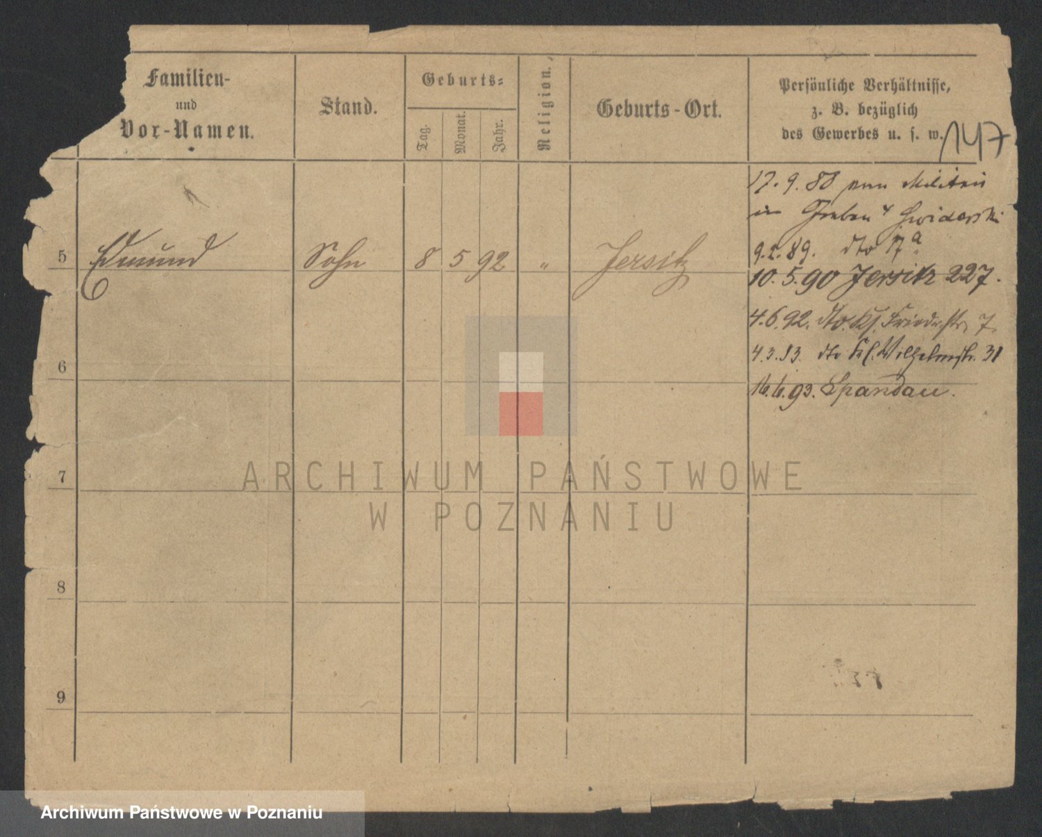 Podgląd karty osobowej dostępny jest po kliknięciu na nazwisko lub ikonkę karty. Można dokonywać powiększenia (ikony na górze) lub przechodzić między kolejnymi skanami (strzałki po bokach).