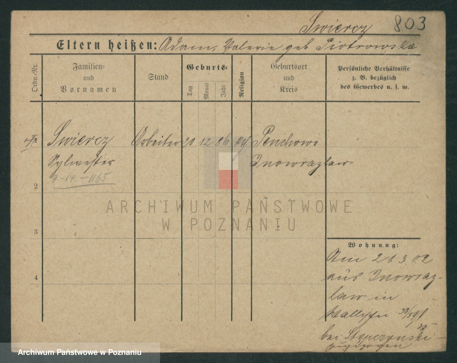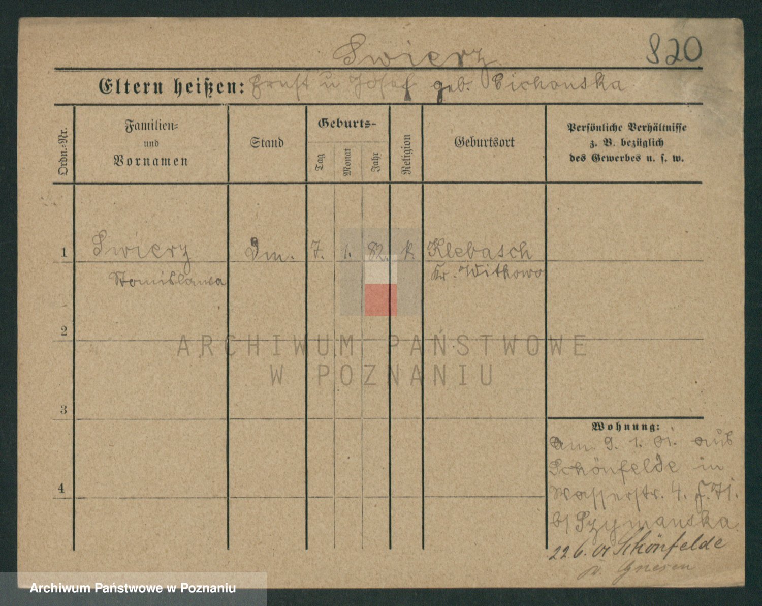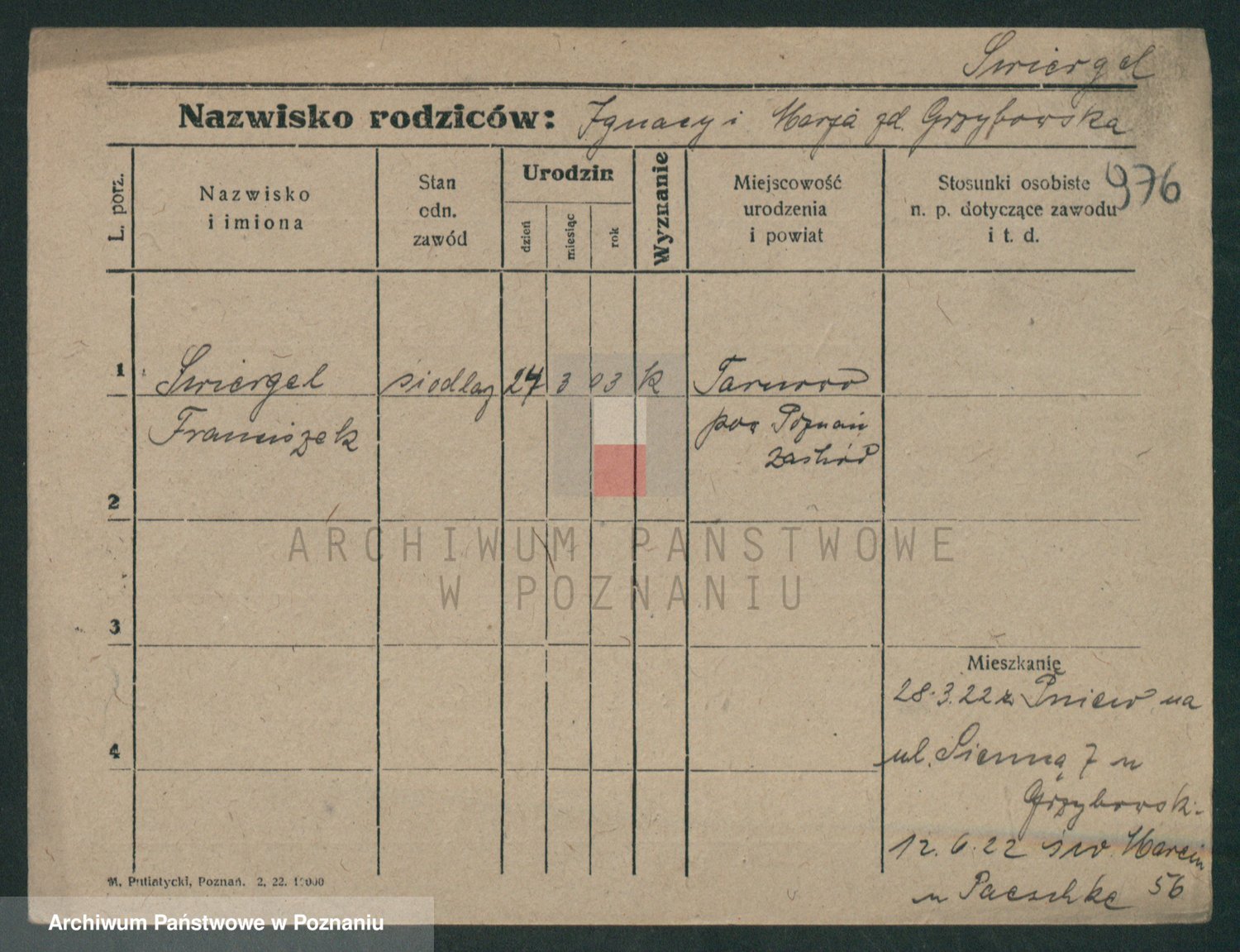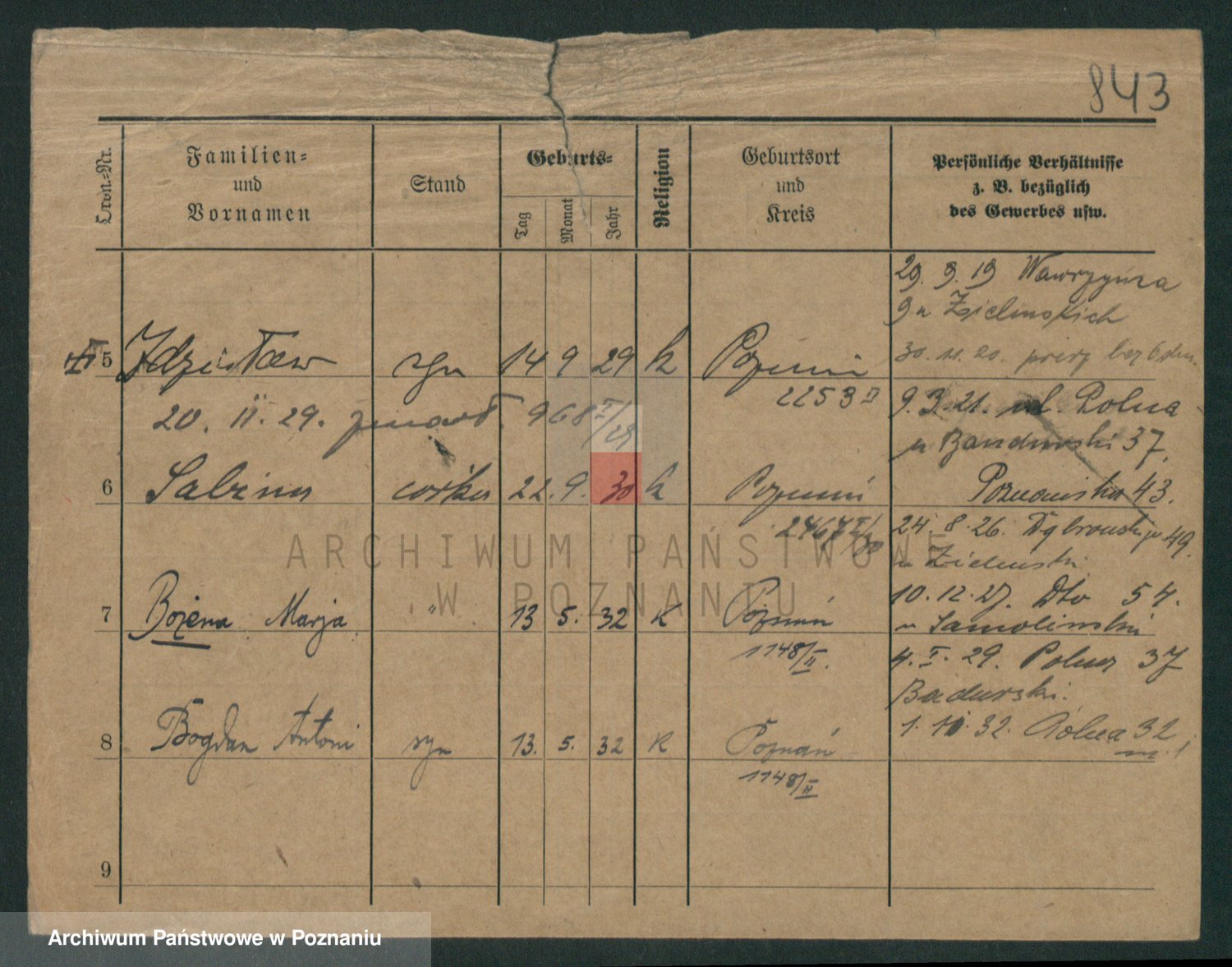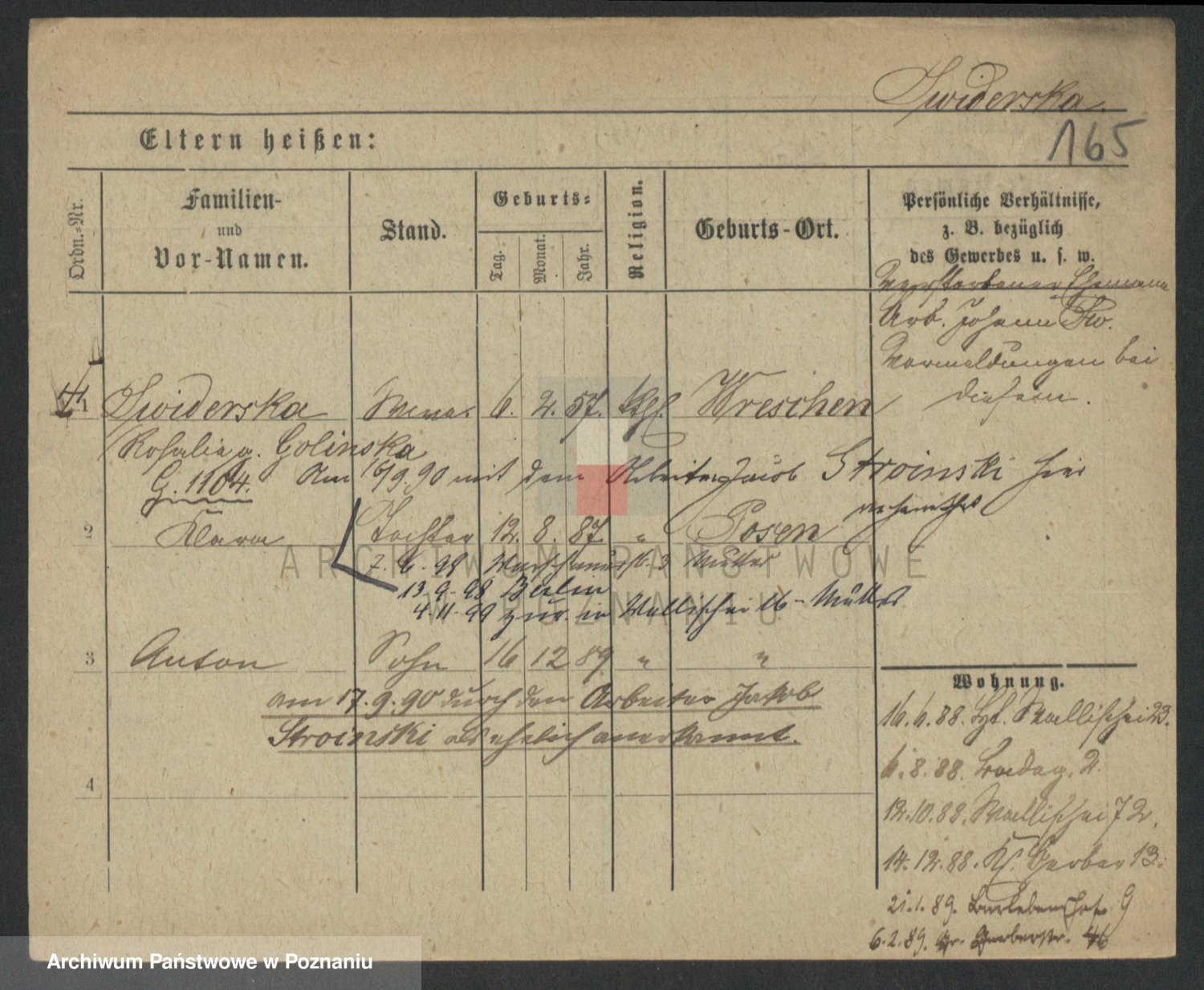 Podgląd karty osobowej dostępny jest po kliknięciu na nazwisko lub ikonkę karty. Można dokonywać powiększenia (ikony na górze) lub przechodzić między kolejnymi skanami (strzałki po bokach).