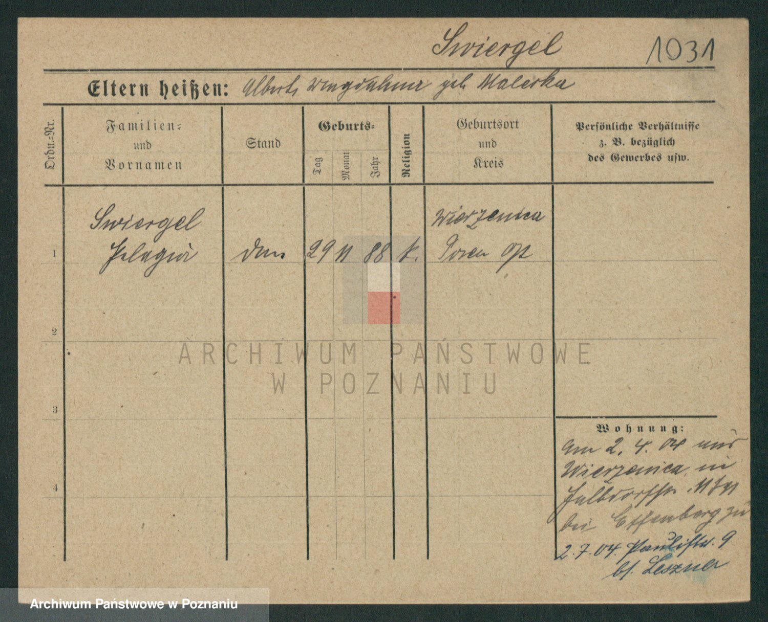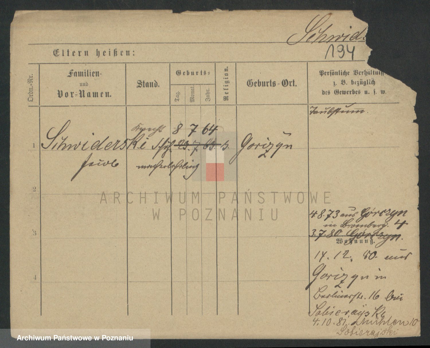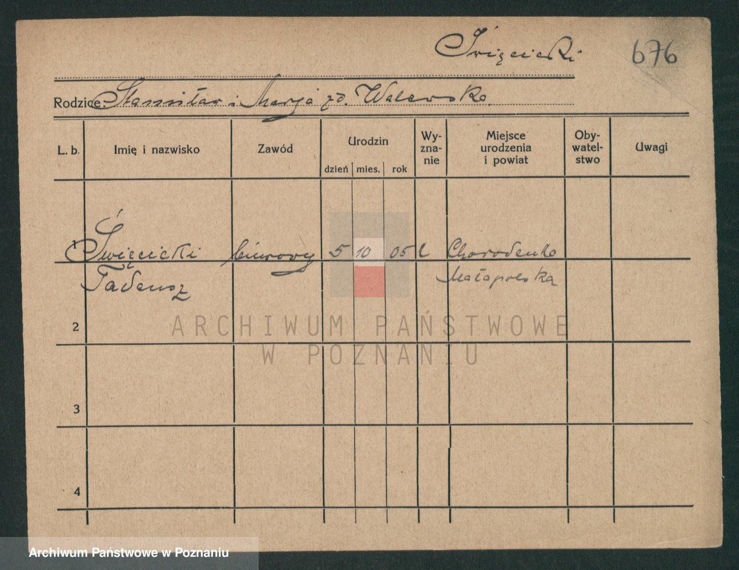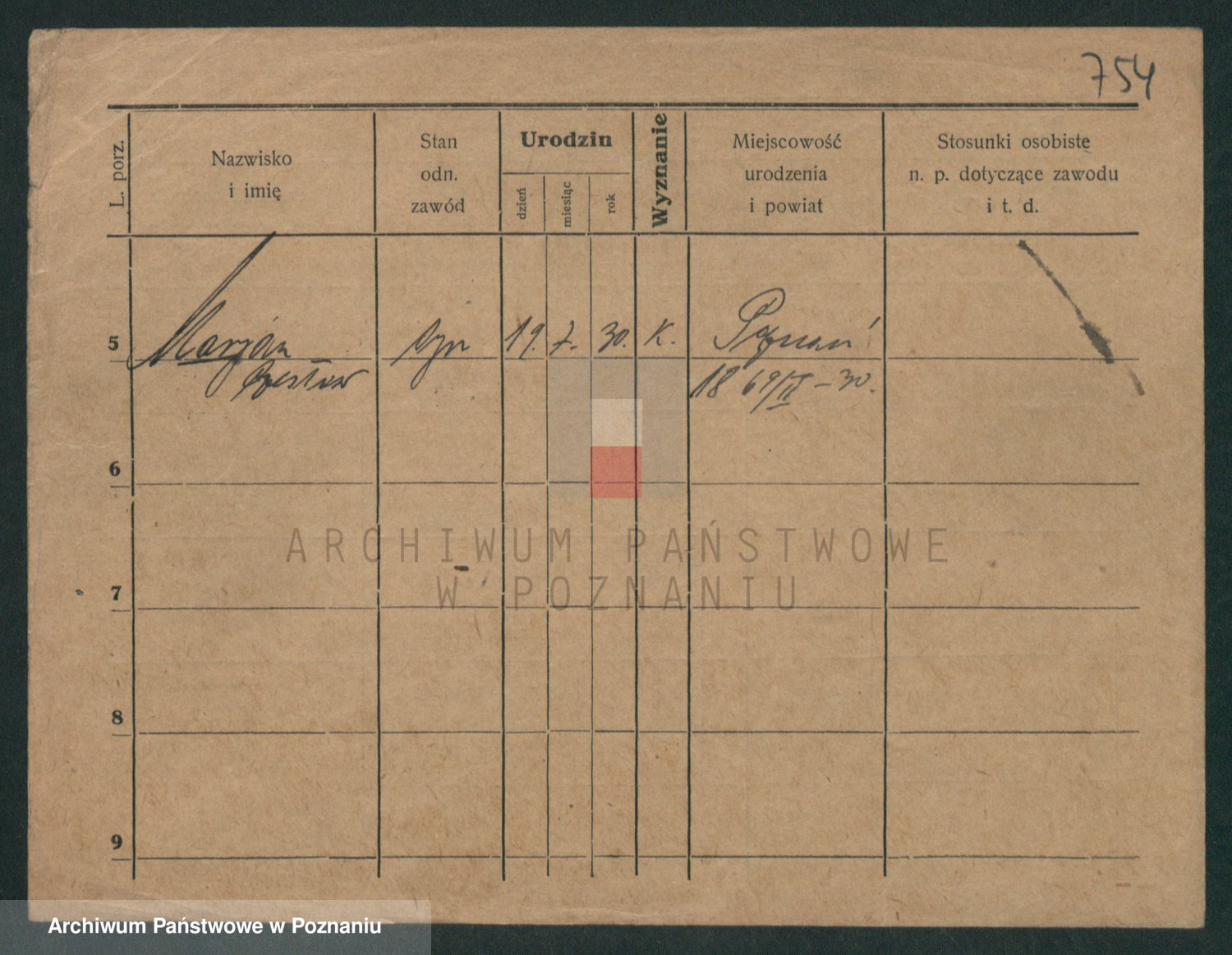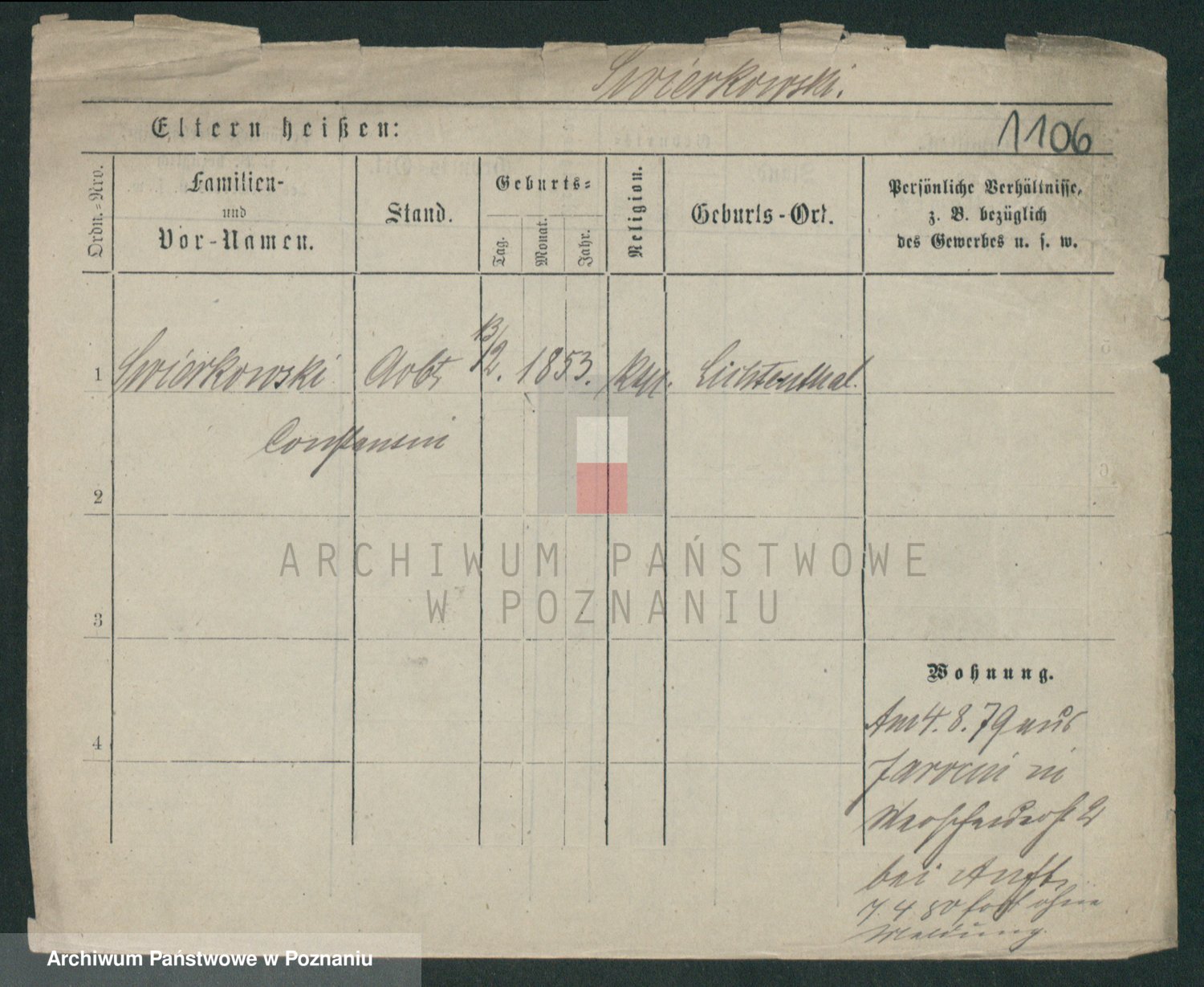 Podgląd karty osobowej dostępny jest po kliknięciu na nazwisko lub ikonkę karty. Można dokonywać powiększenia (ikony na górze) lub przechodzić między kolejnymi skanami (strzałki po bokach).