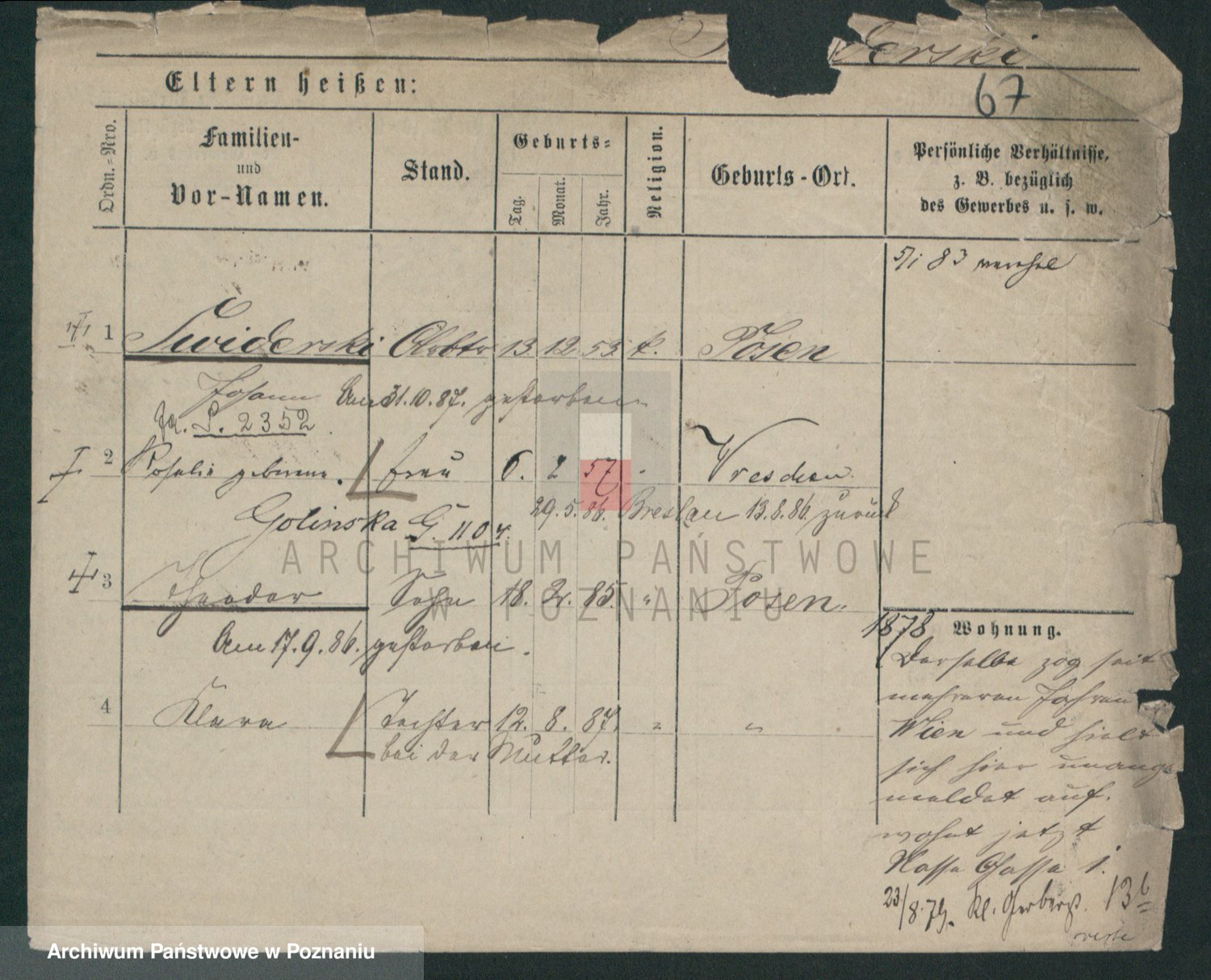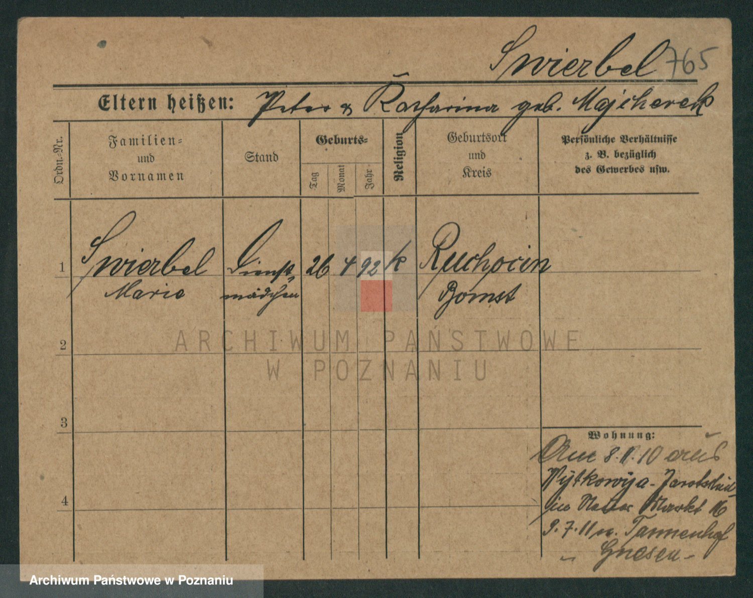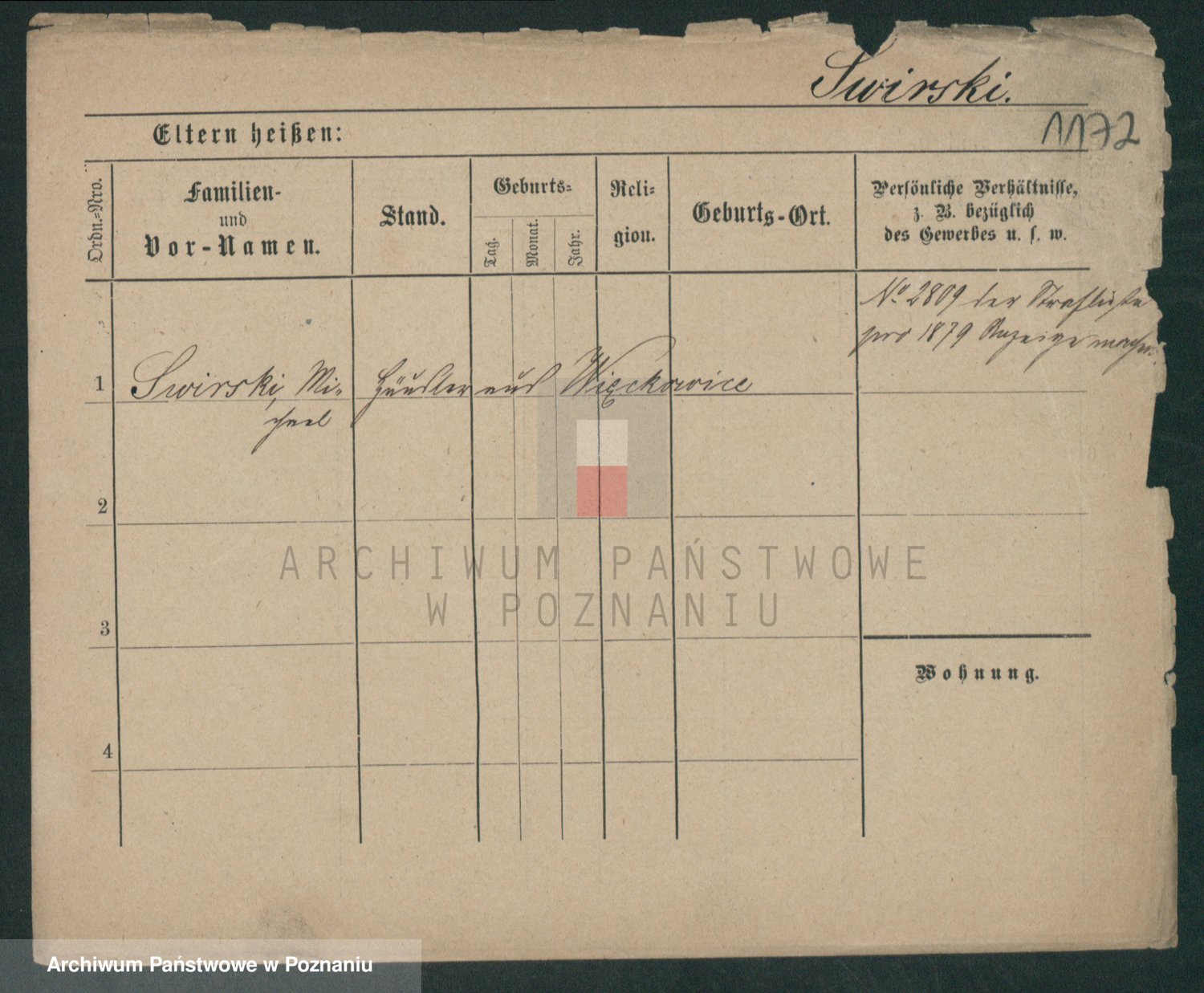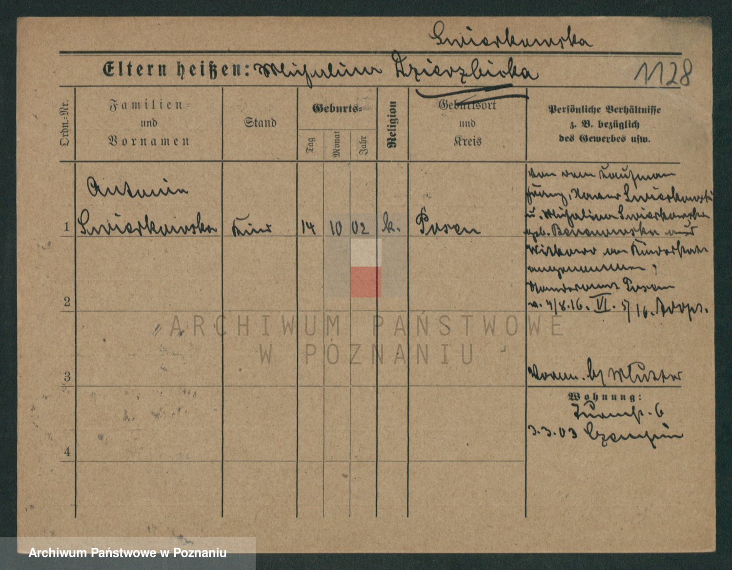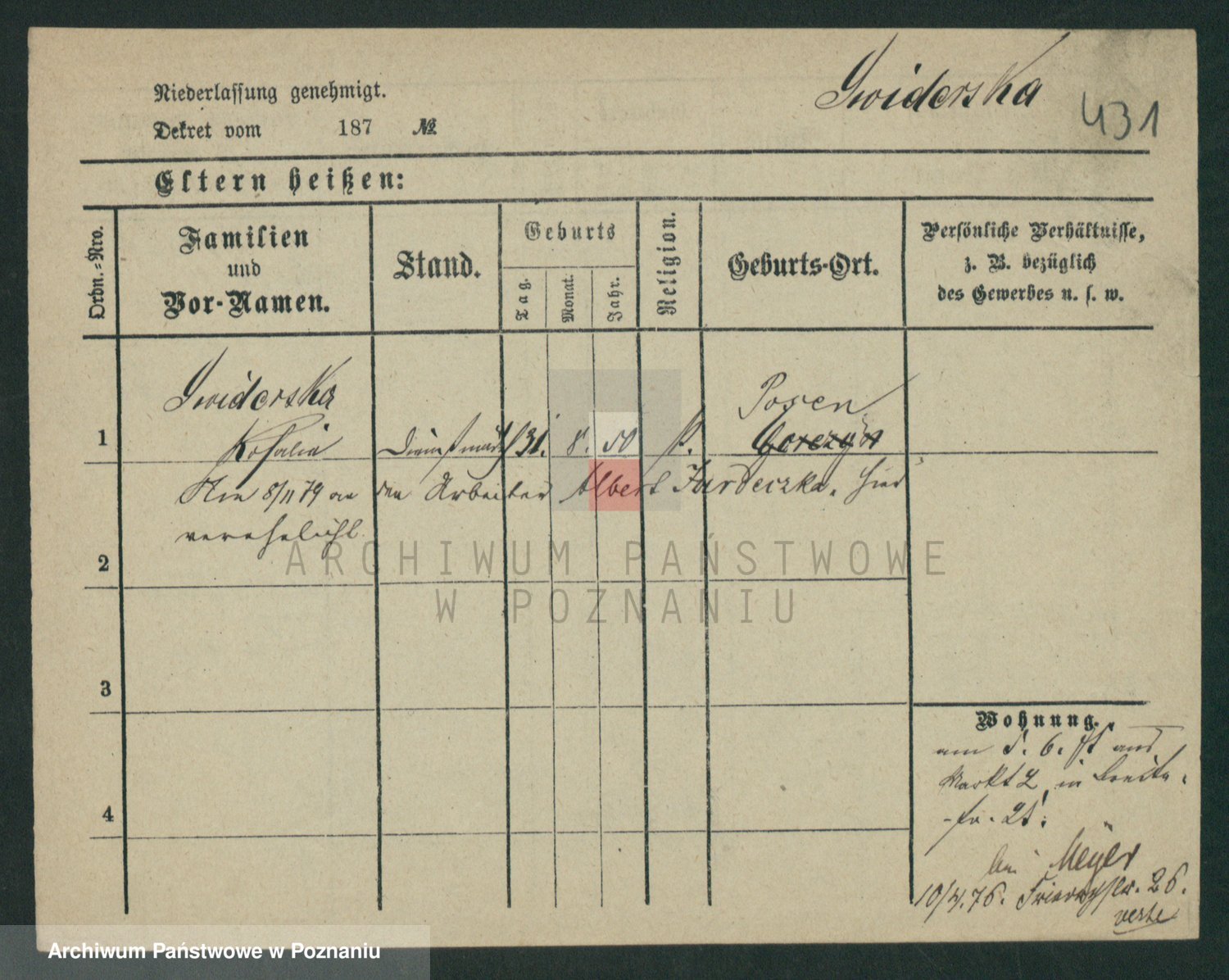 Podgląd karty osobowej dostępny jest po kliknięciu na nazwisko lub ikonkę karty. Można dokonywać powiększenia (ikony na górze) lub przechodzić między kolejnymi skanami (strzałki po bokach).