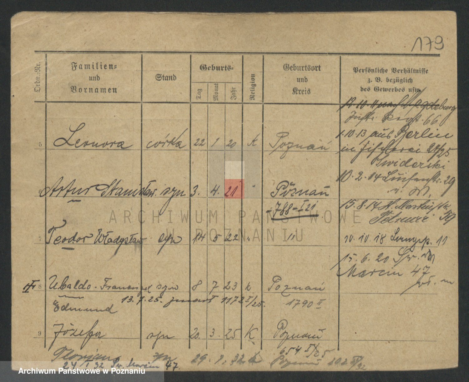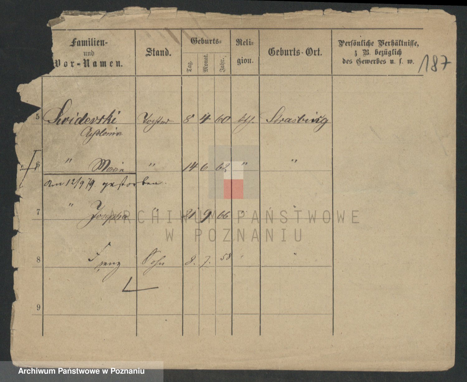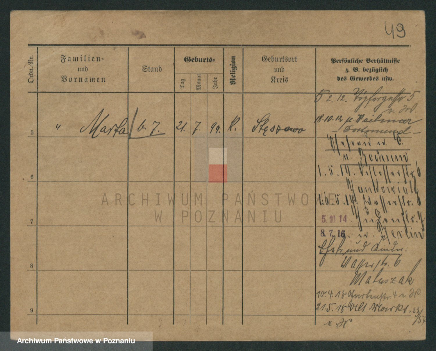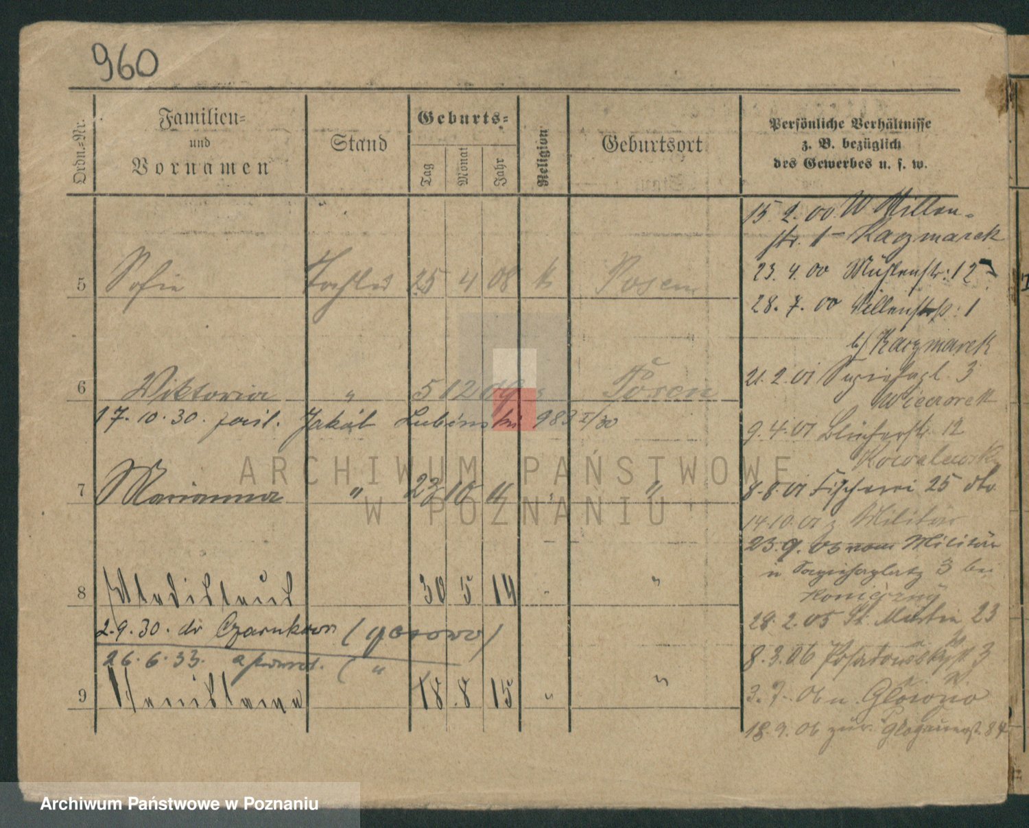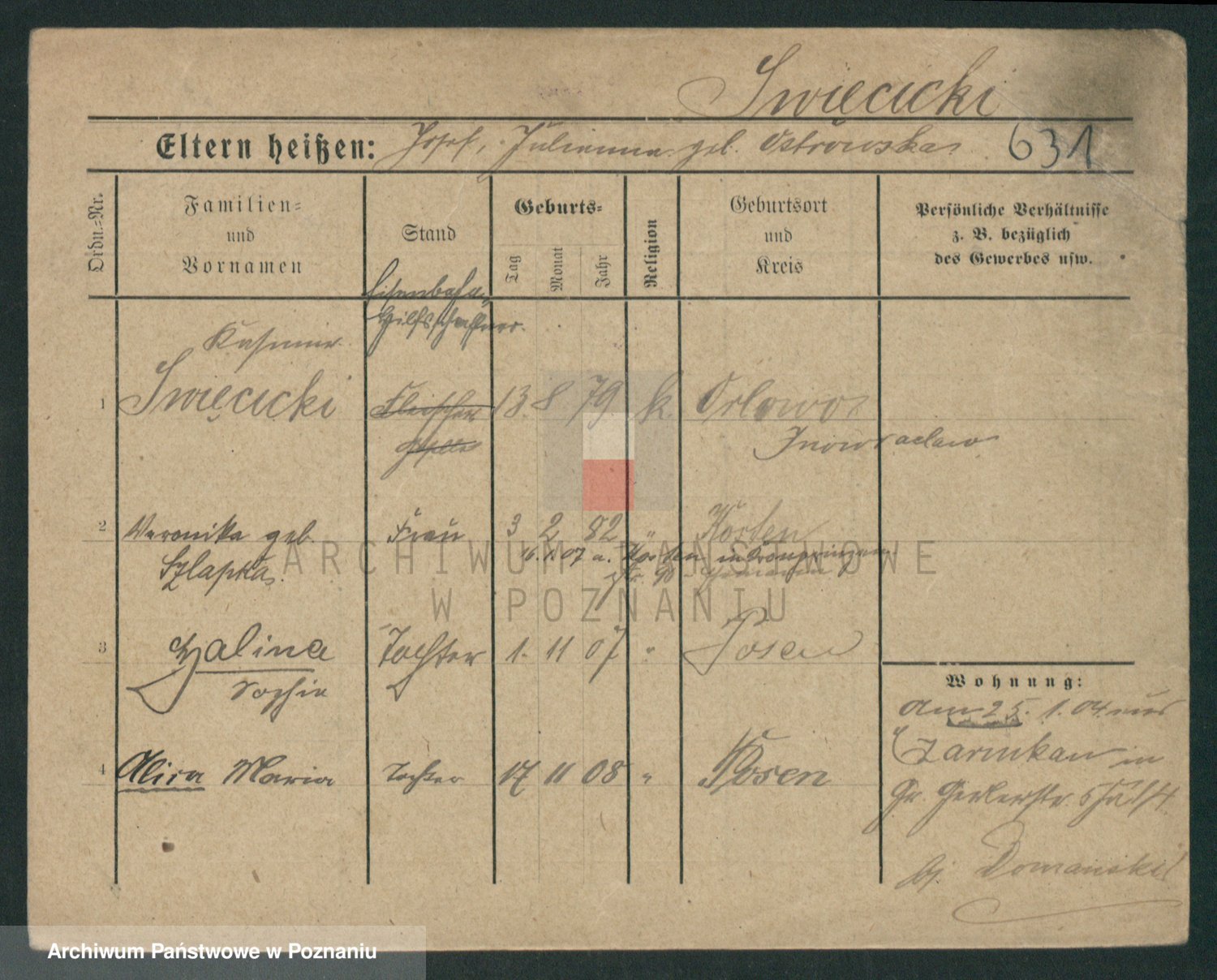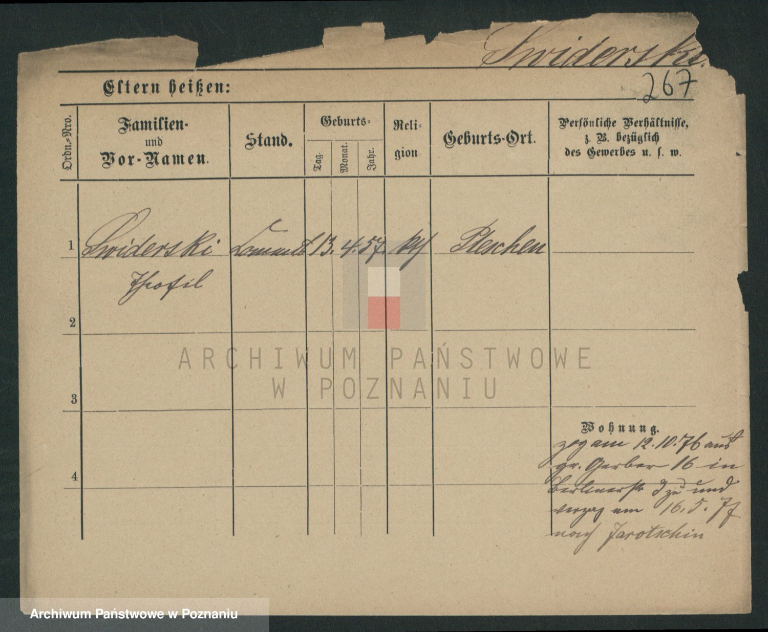 Podgląd karty osobowej dostępny jest po kliknięciu na nazwisko lub ikonkę karty. Można dokonywać powiększenia (ikony na górze) lub przechodzić między kolejnymi skanami (strzałki po bokach).