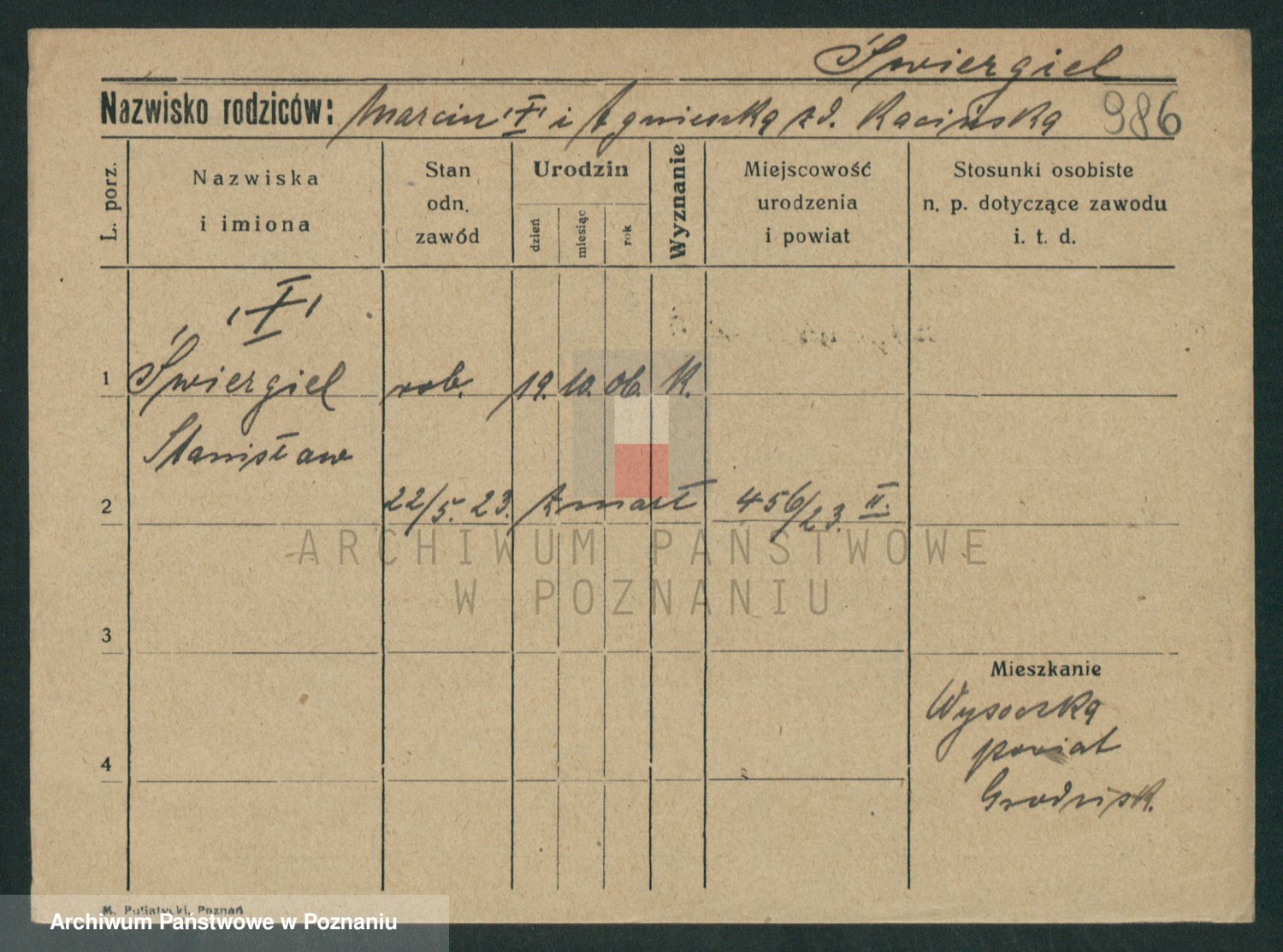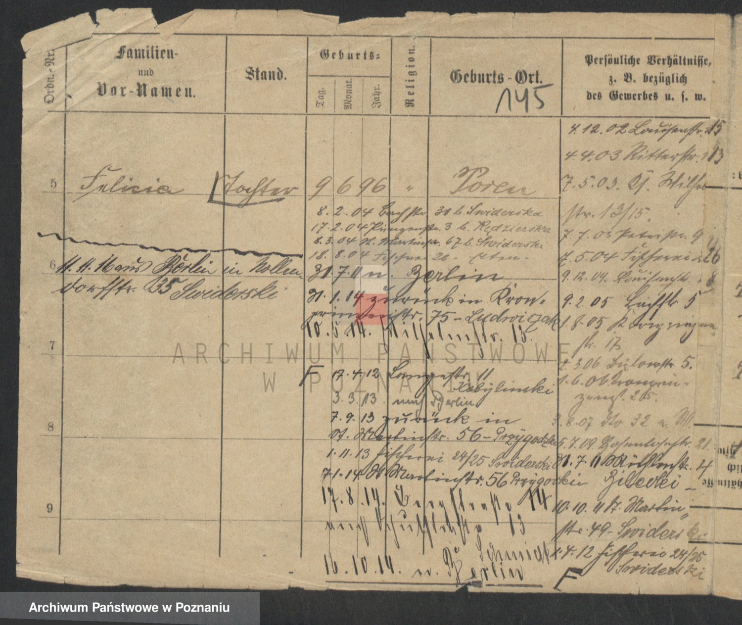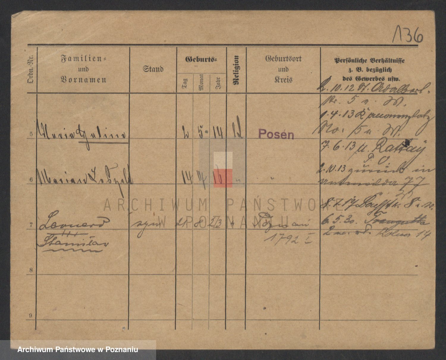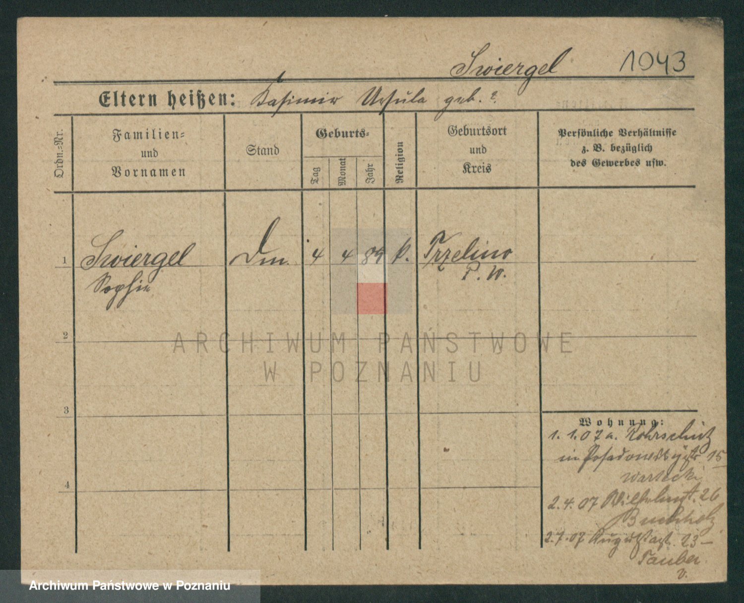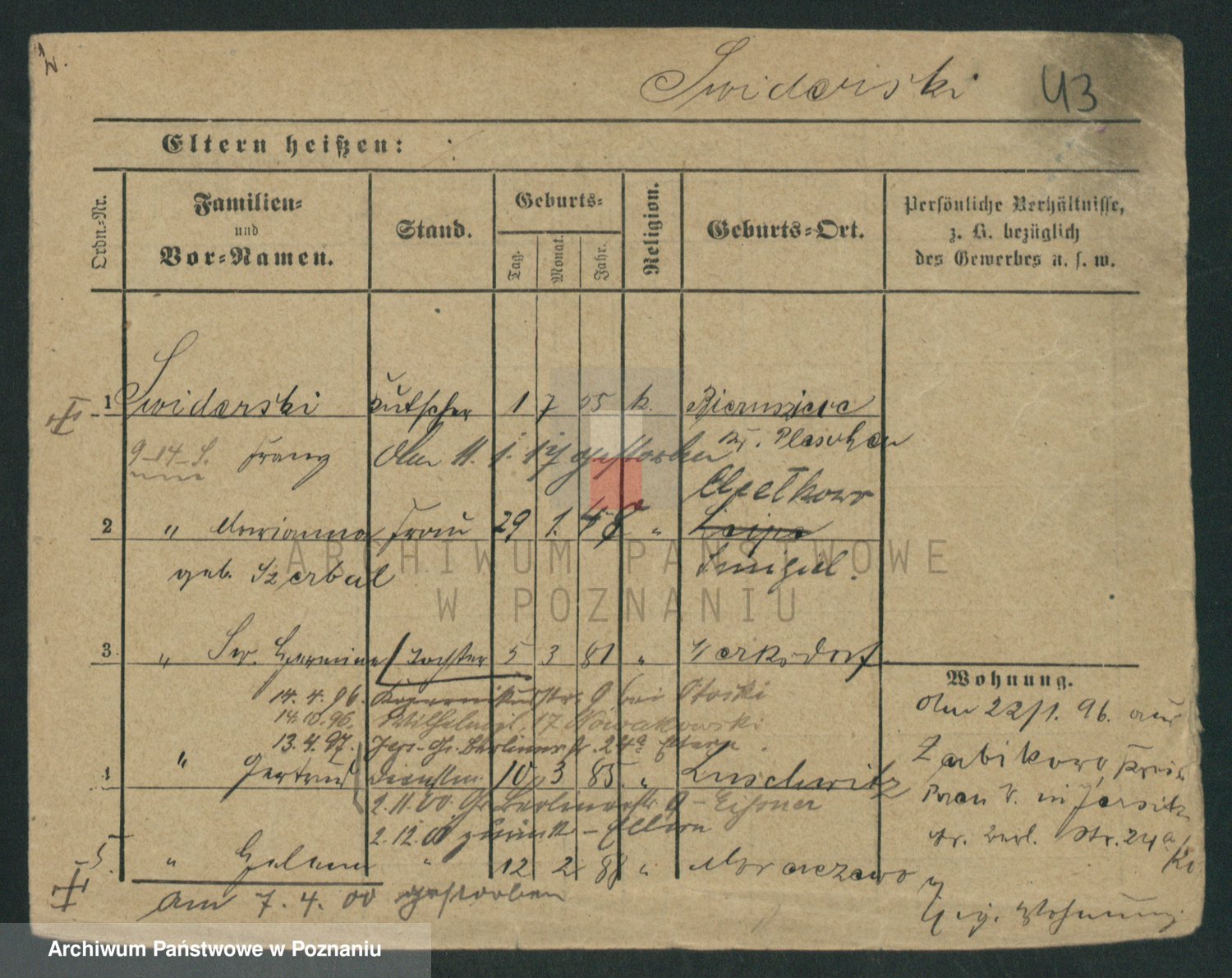 Podgląd karty osobowej dostępny jest po kliknięciu na nazwisko lub ikonkę karty. Można dokonywać powiększenia (ikony na górze) lub przechodzić między kolejnymi skanami (strzałki po bokach).