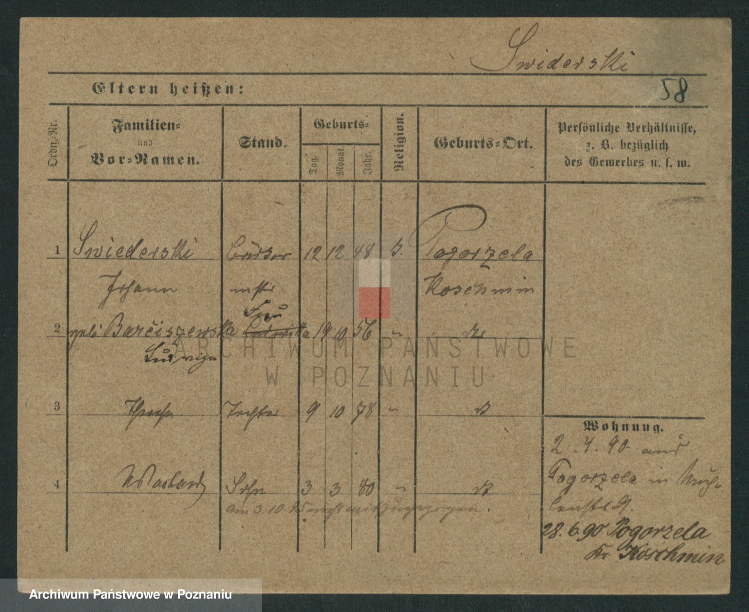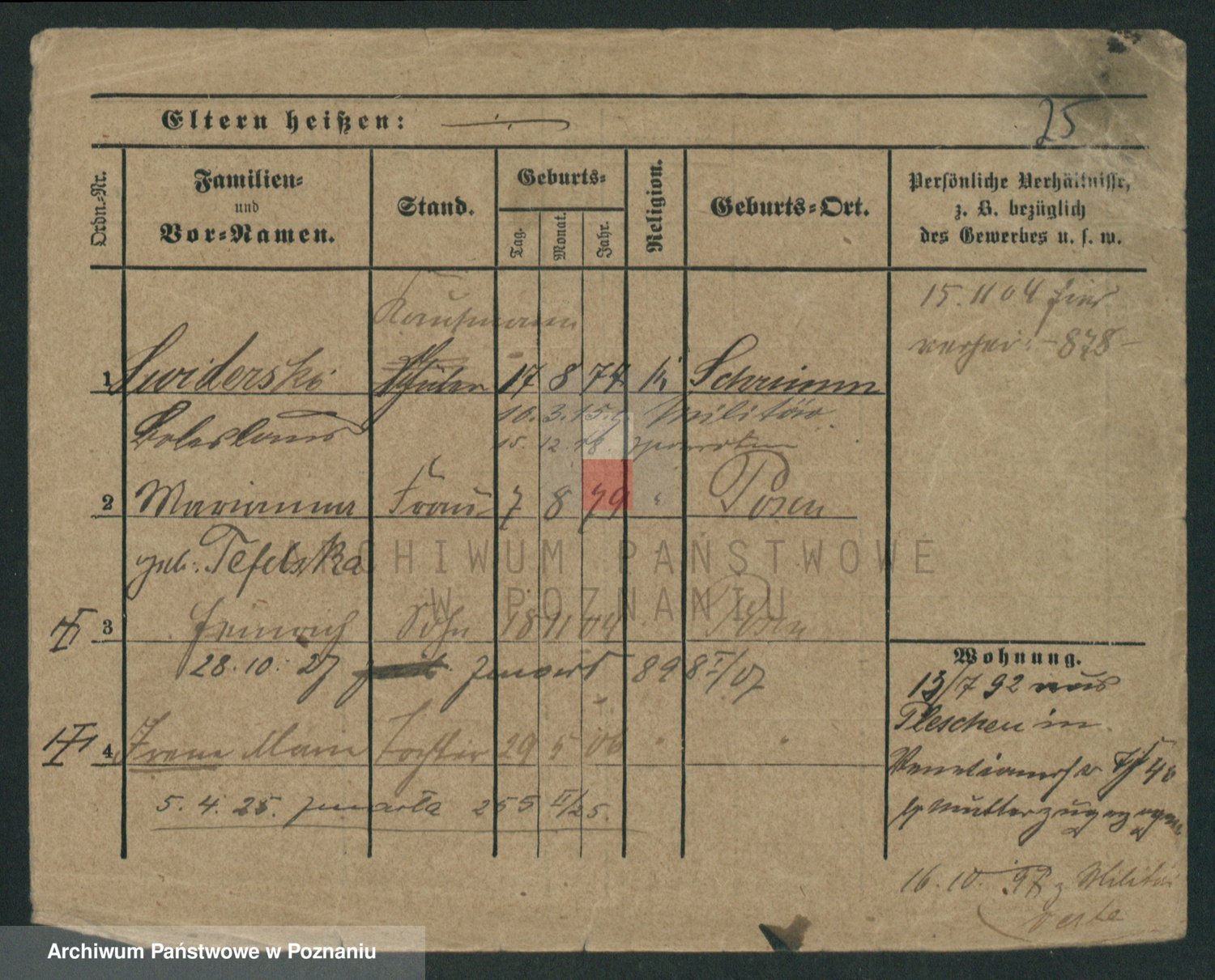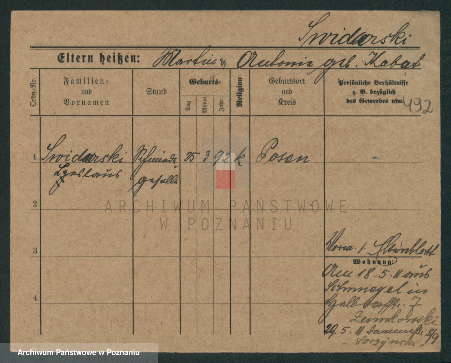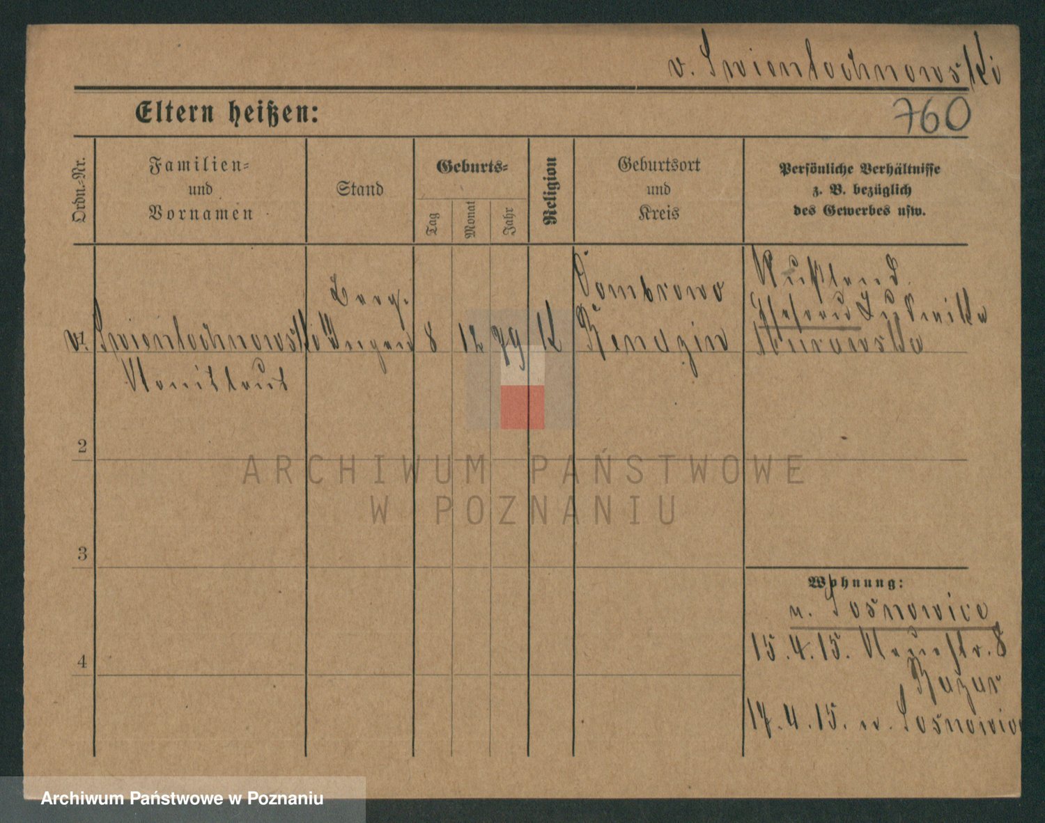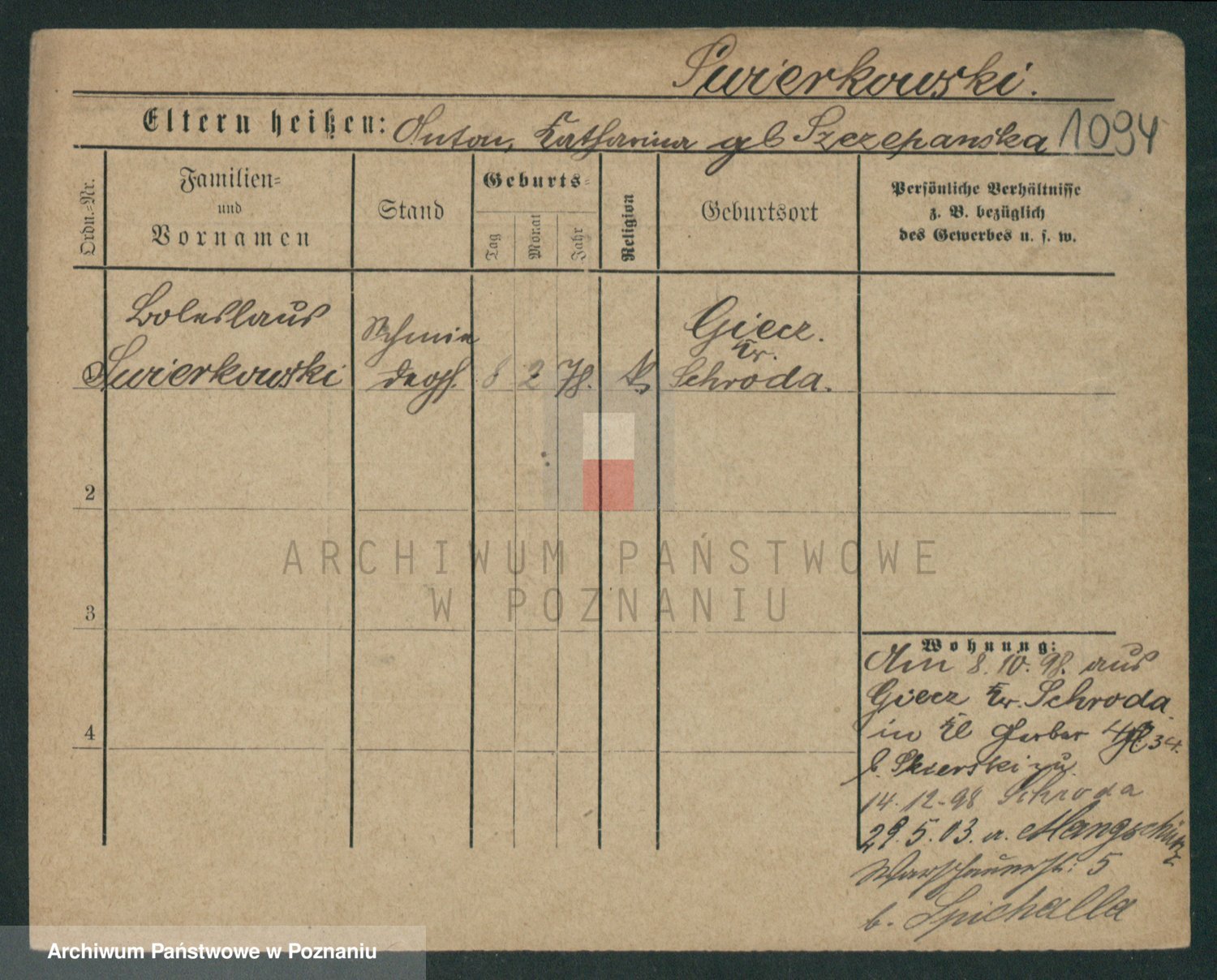 Podgląd karty osobowej dostępny jest po kliknięciu na nazwisko lub ikonkę karty. Można dokonywać powiększenia (ikony na górze) lub przechodzić między kolejnymi skanami (strzałki po bokach).
