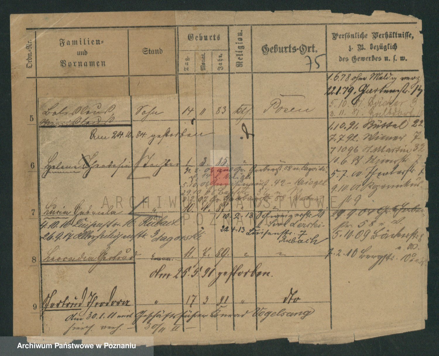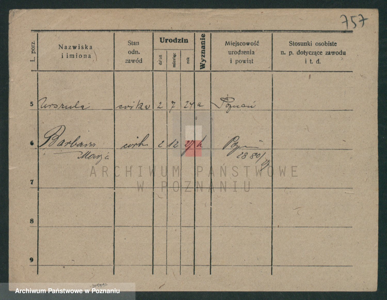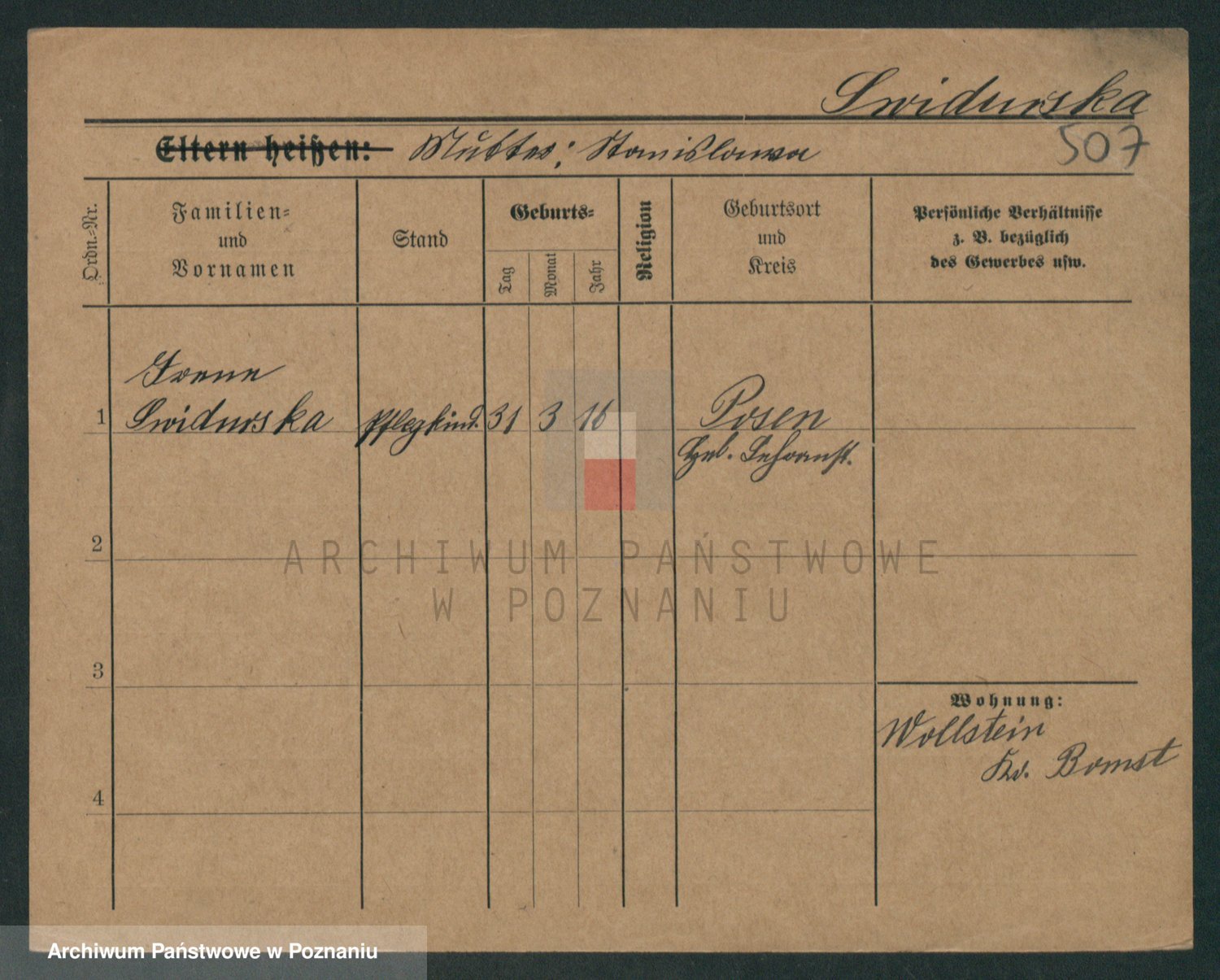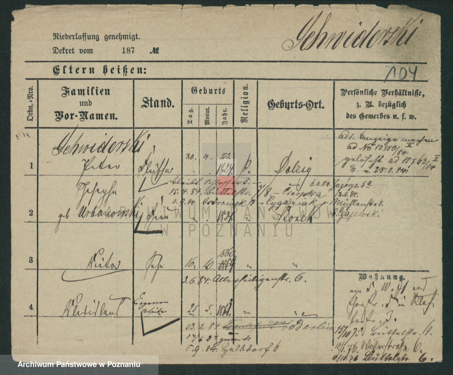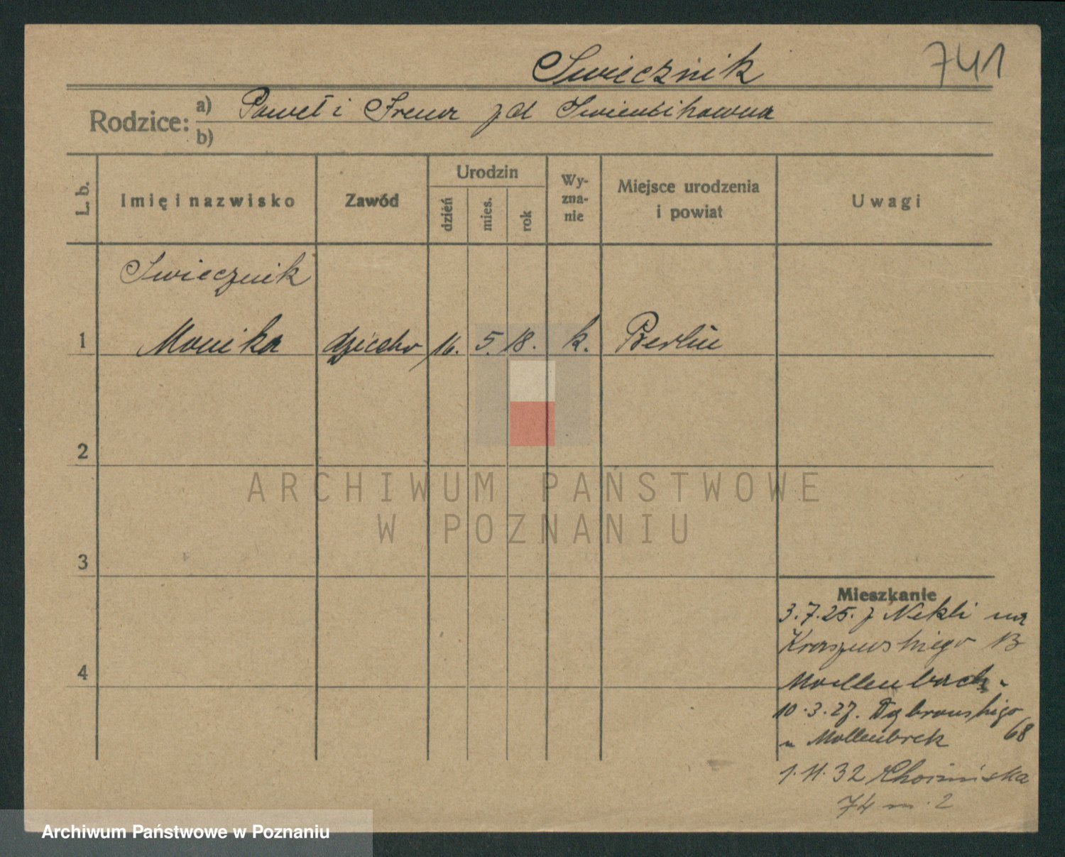 Podgląd karty osobowej dostępny jest po kliknięciu na nazwisko lub ikonkę karty. Można dokonywać powiększenia (ikony na górze) lub przechodzić między kolejnymi skanami (strzałki po bokach).