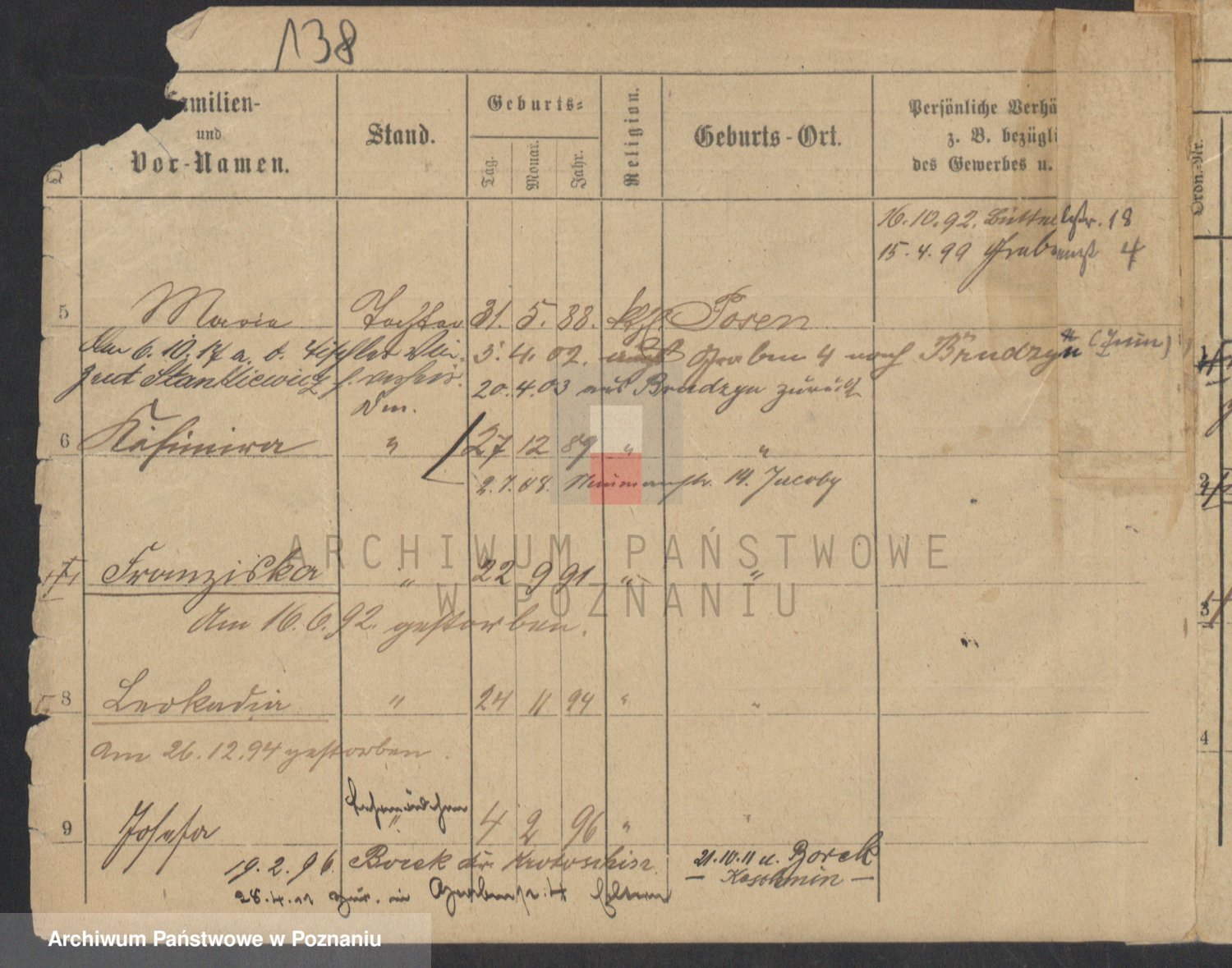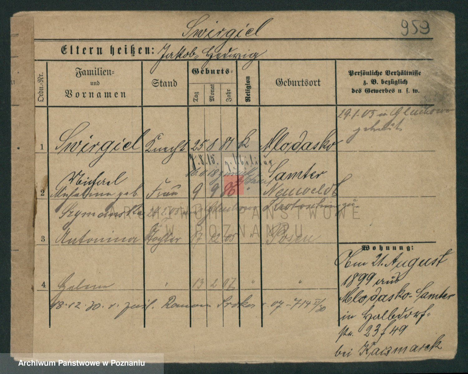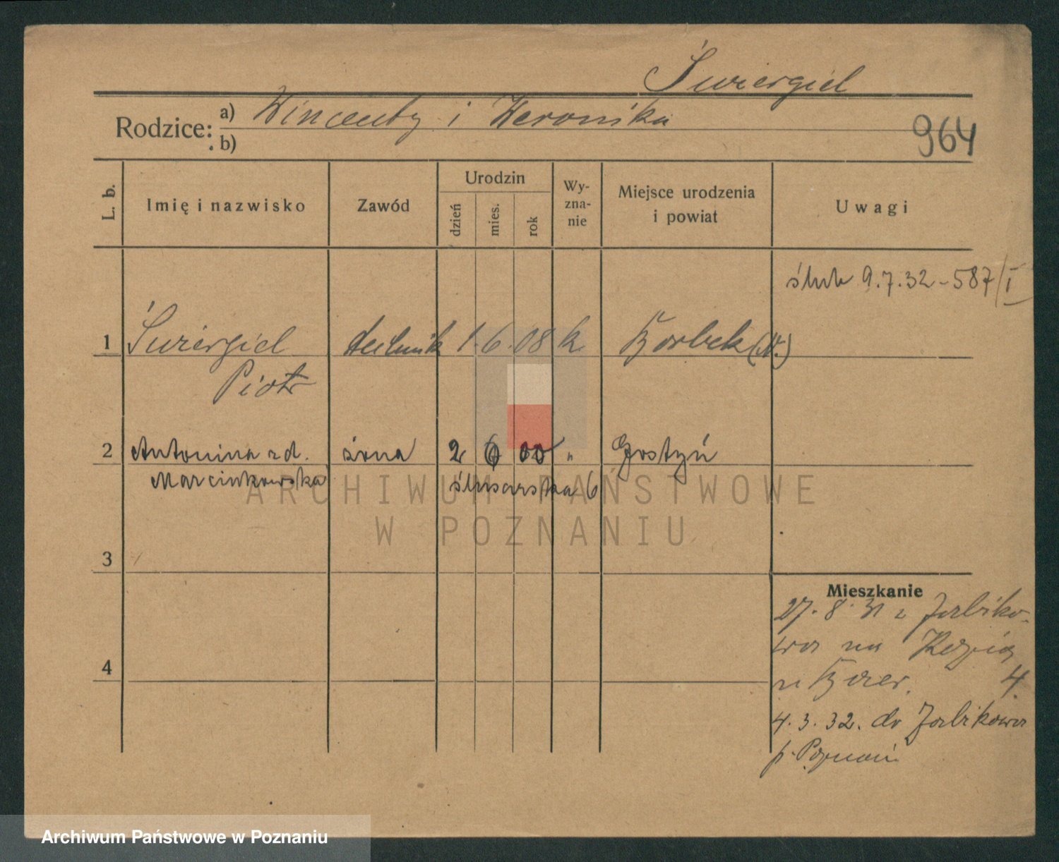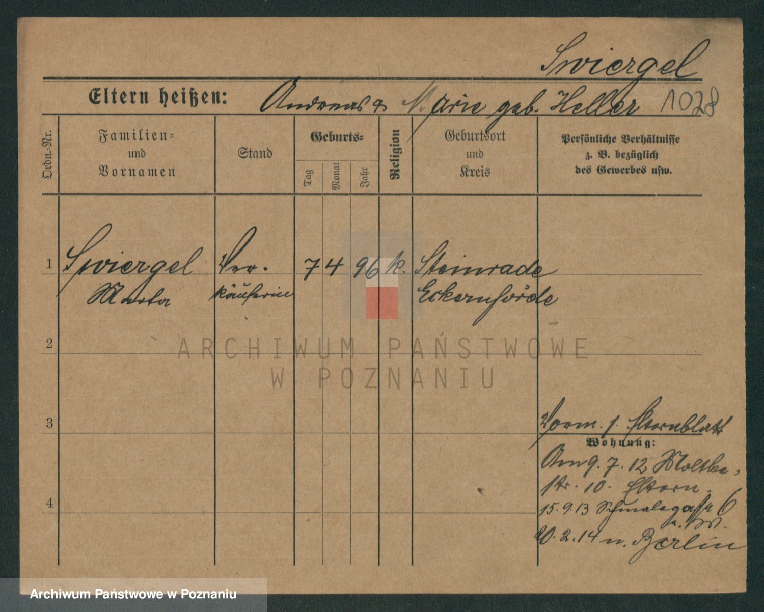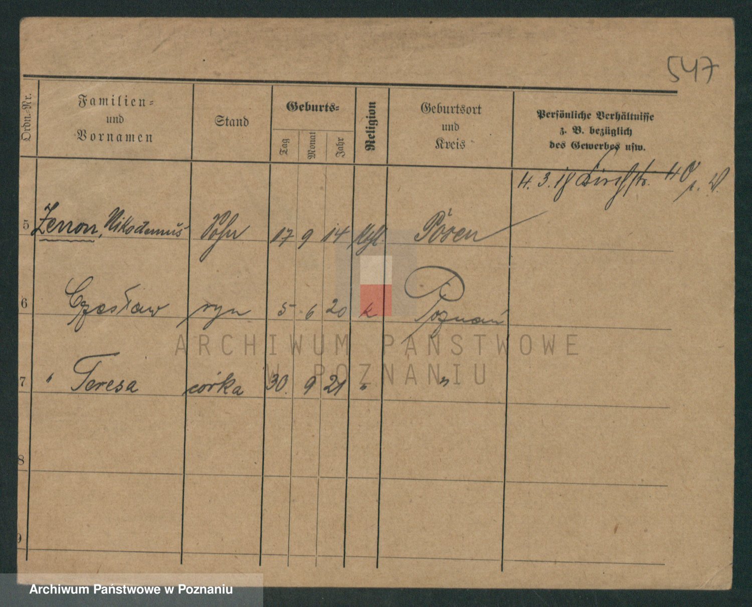 Podgląd karty osobowej dostępny jest po kliknięciu na nazwisko lub ikonkę karty. Można dokonywać powiększenia (ikony na górze) lub przechodzić między kolejnymi skanami (strzałki po bokach).