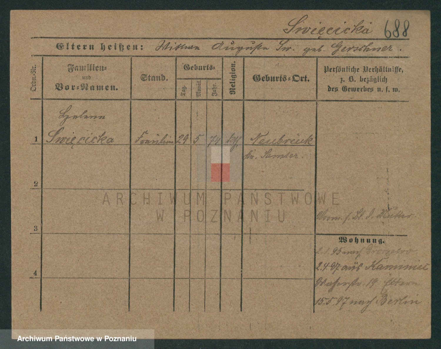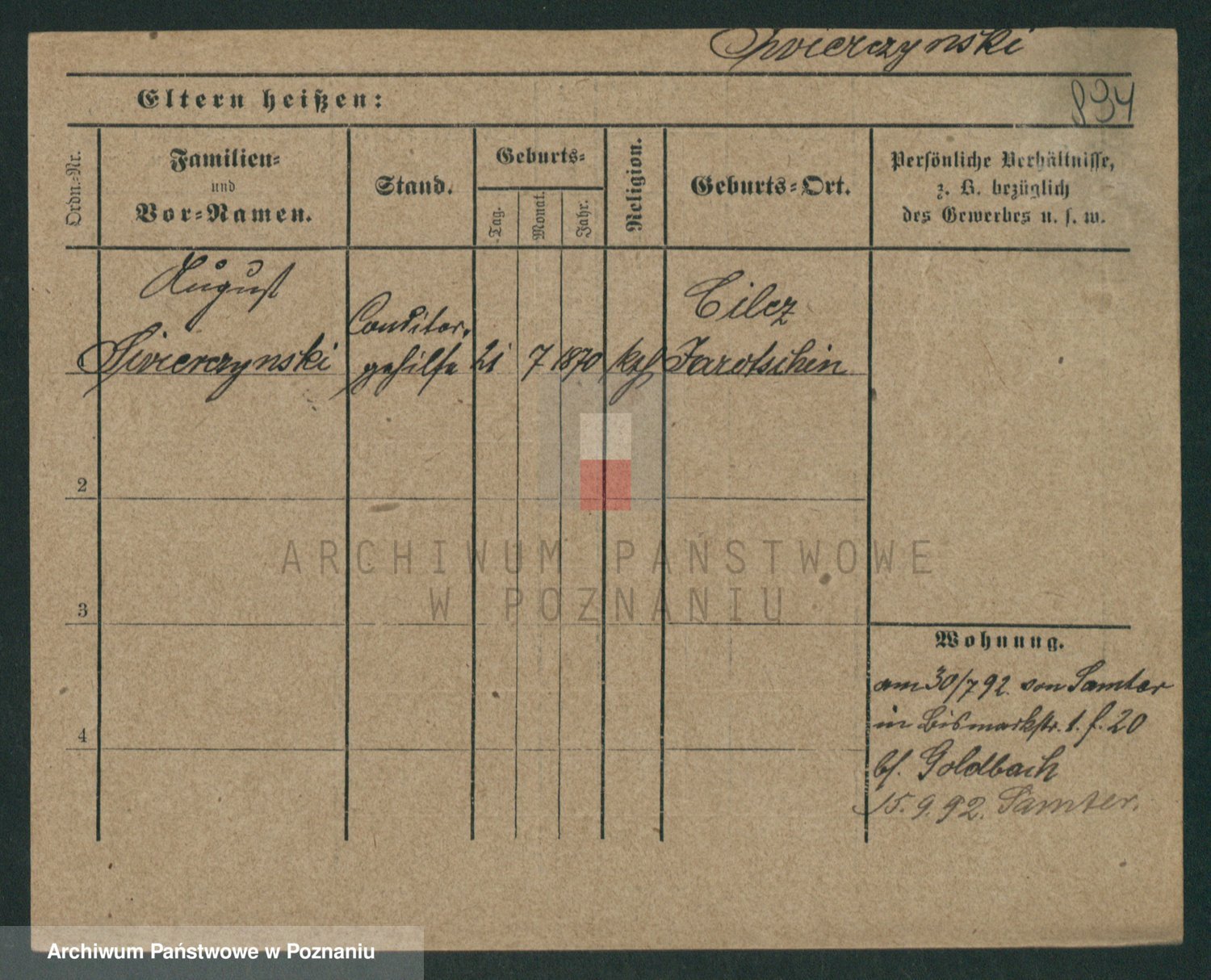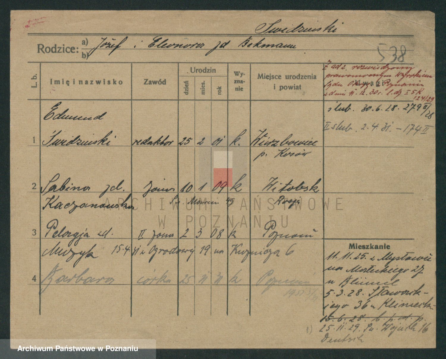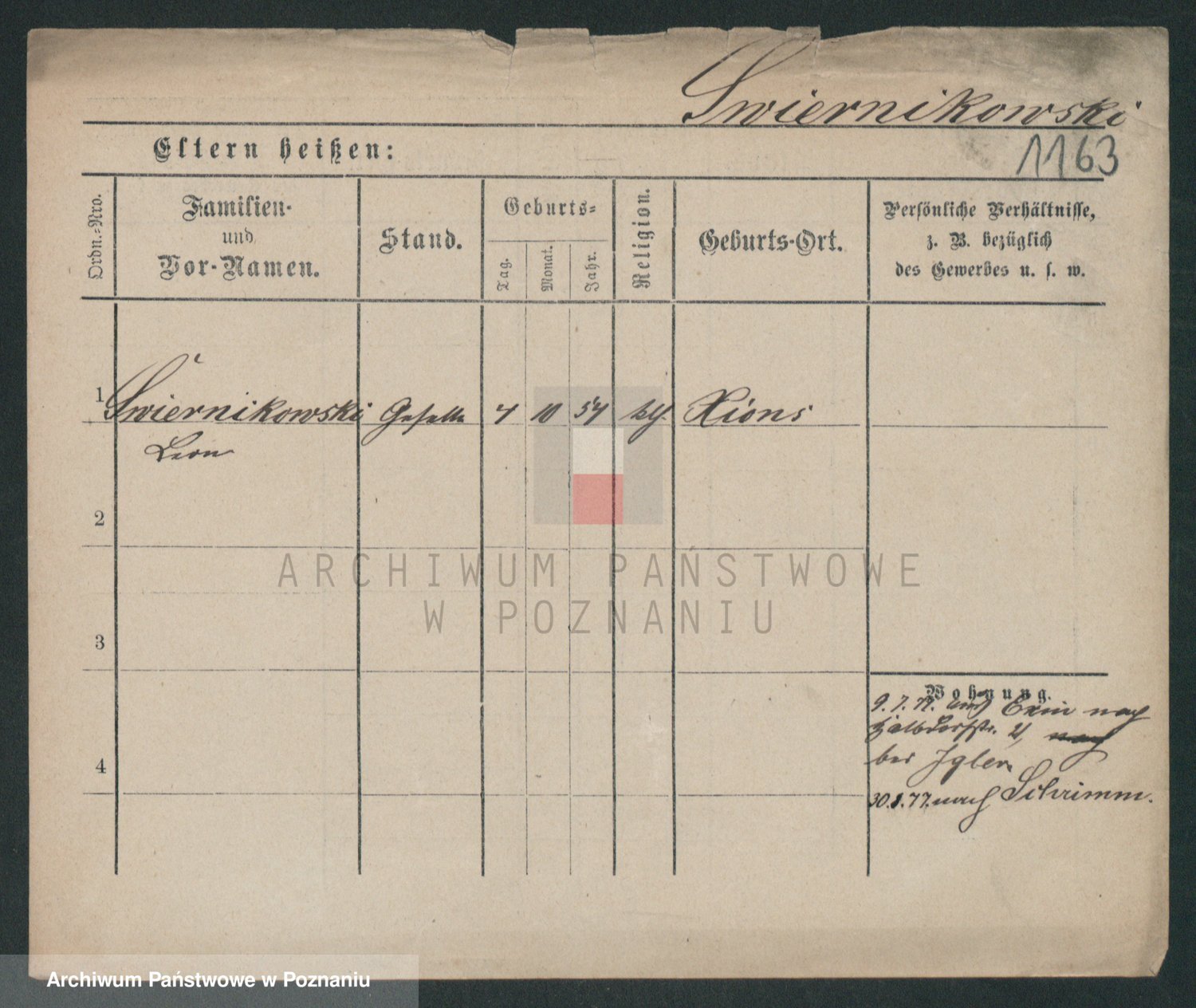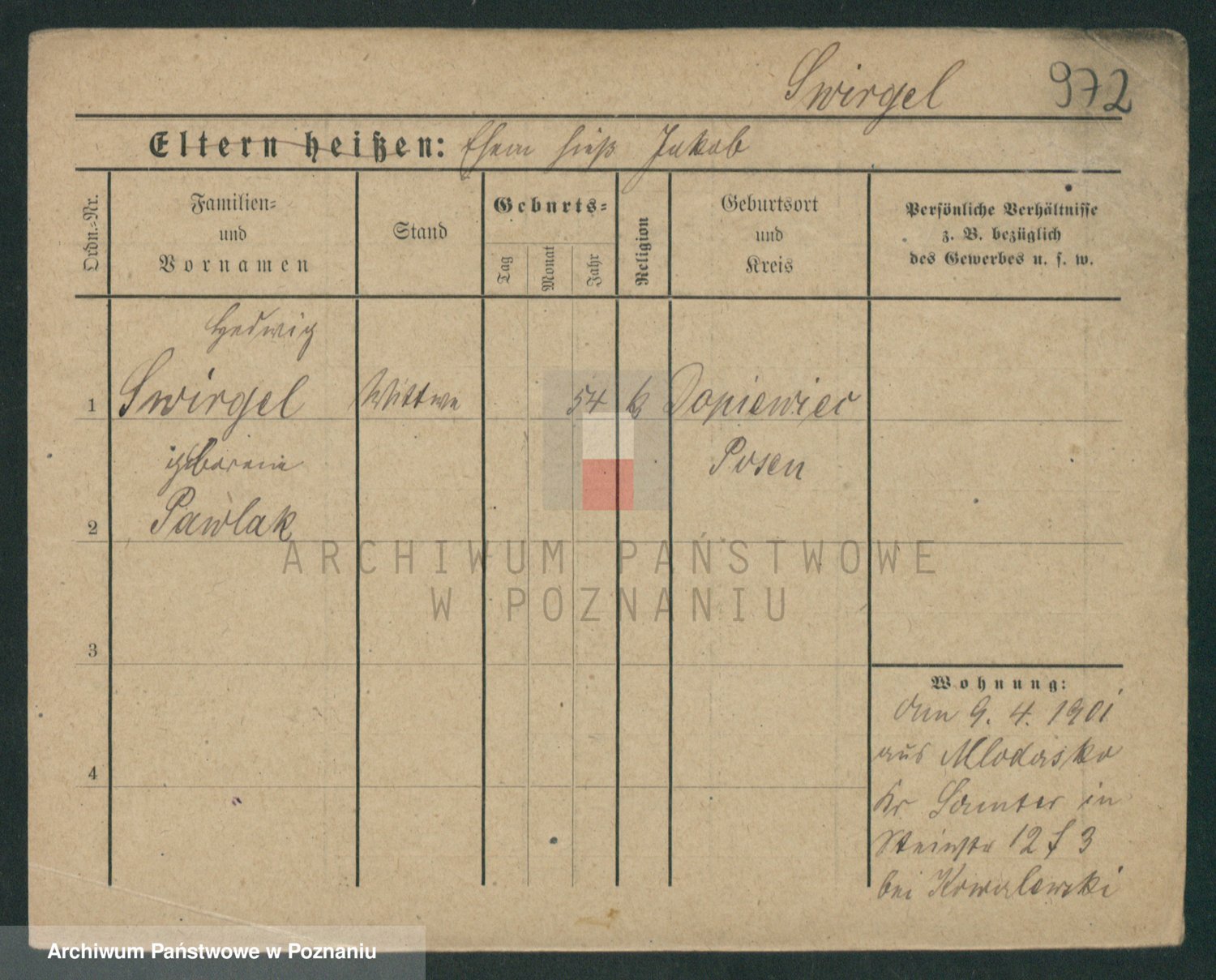 Podgląd karty osobowej dostępny jest po kliknięciu na nazwisko lub ikonkę karty. Można dokonywać powiększenia (ikony na górze) lub przechodzić między kolejnymi skanami (strzałki po bokach).