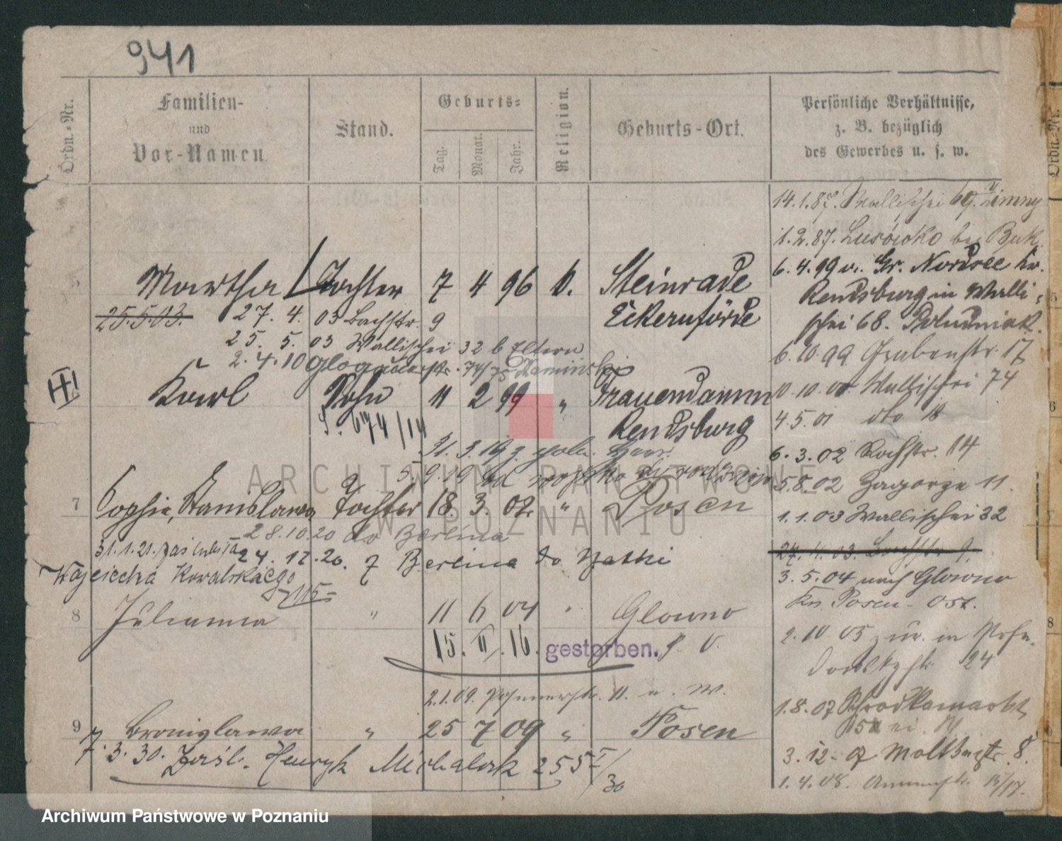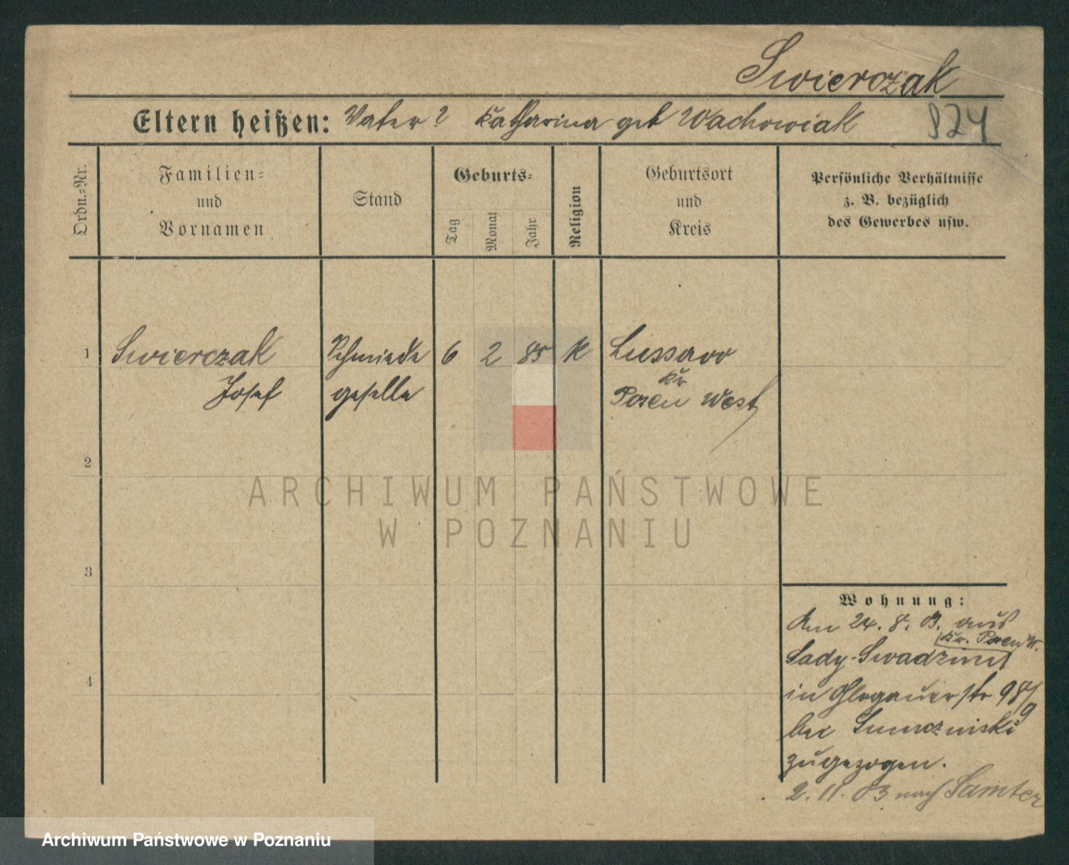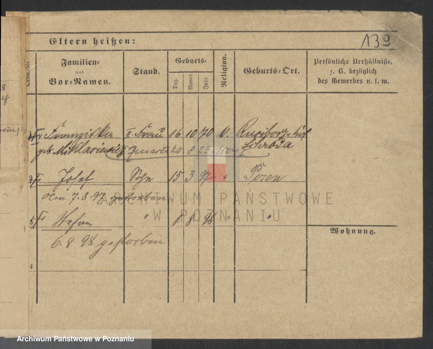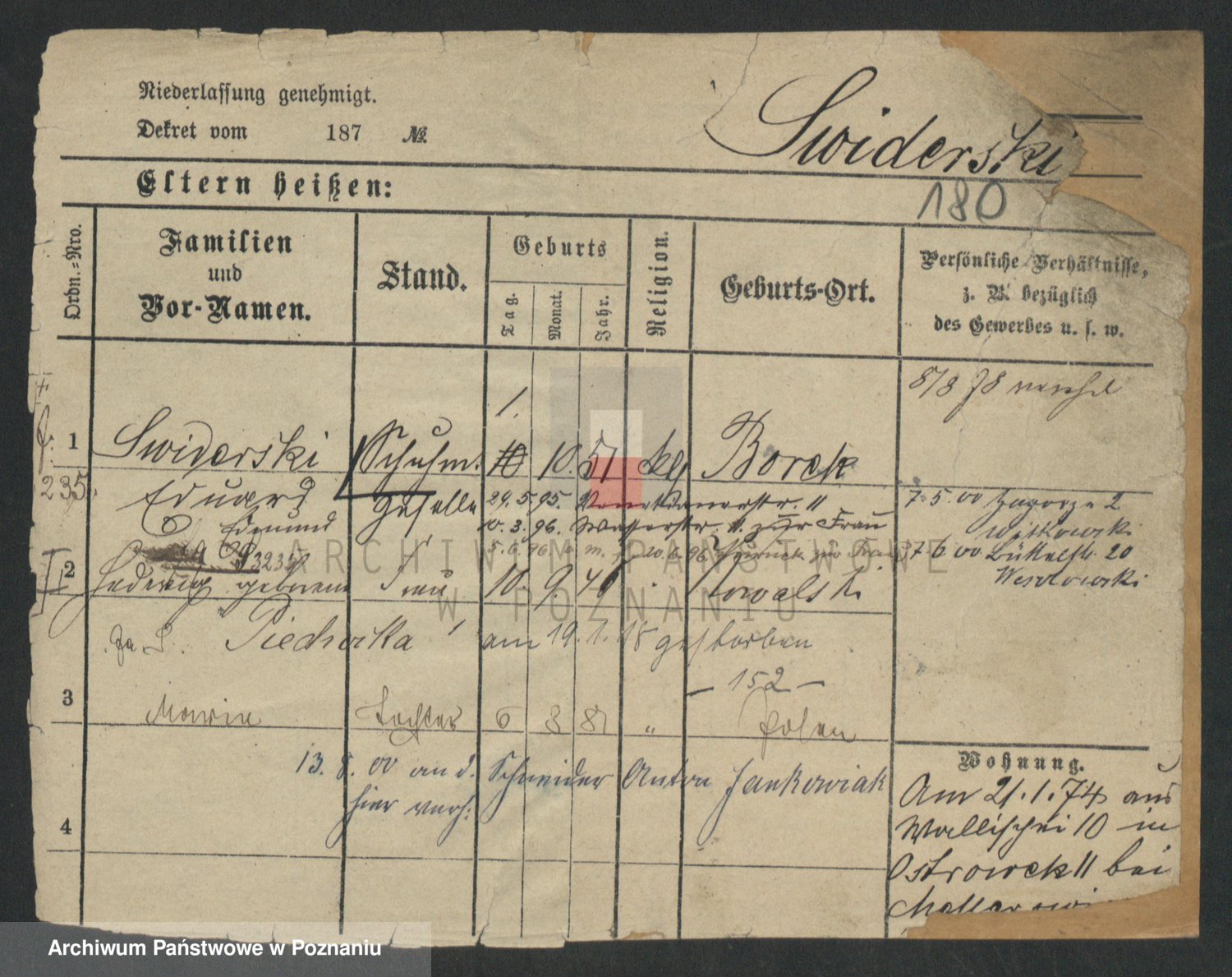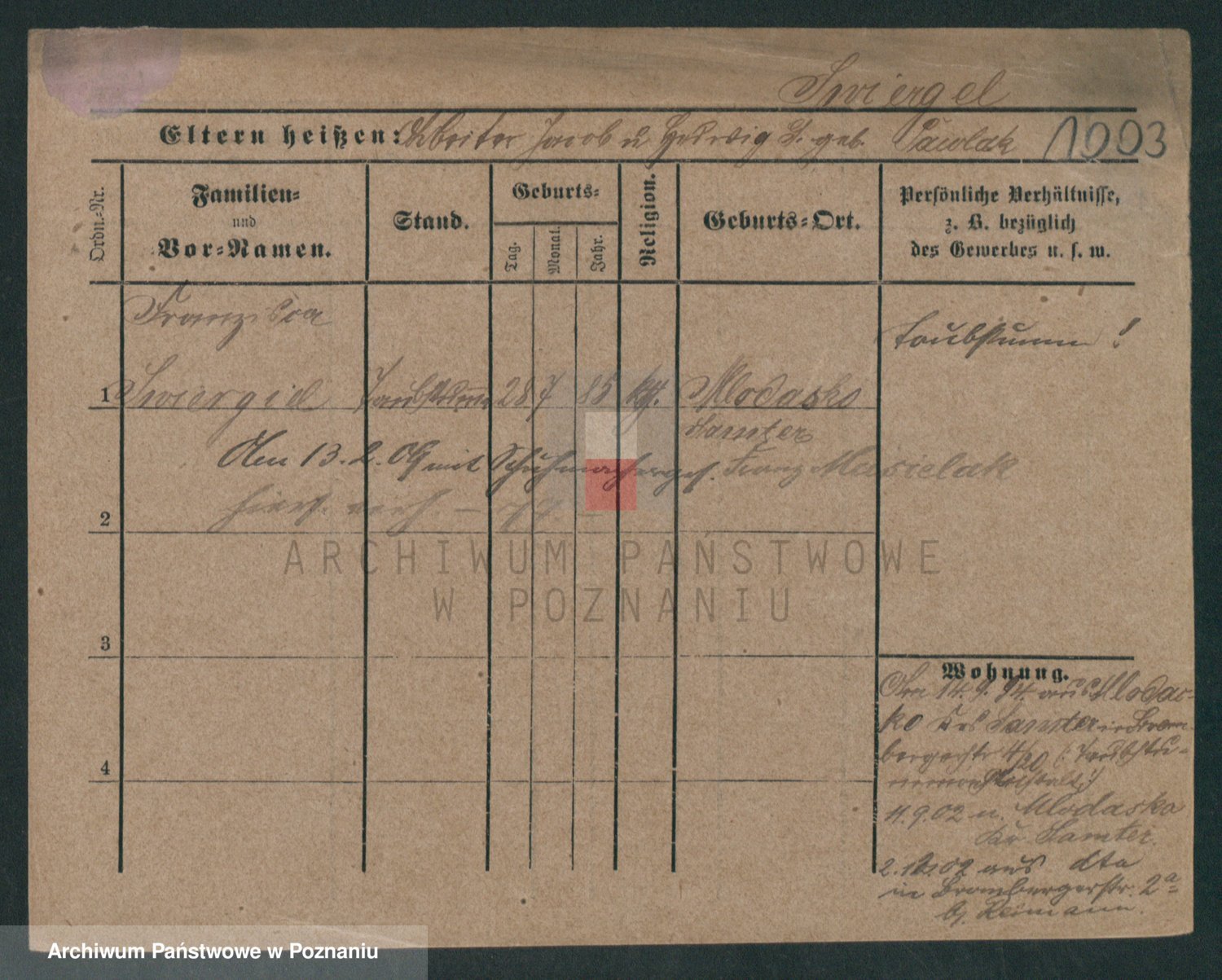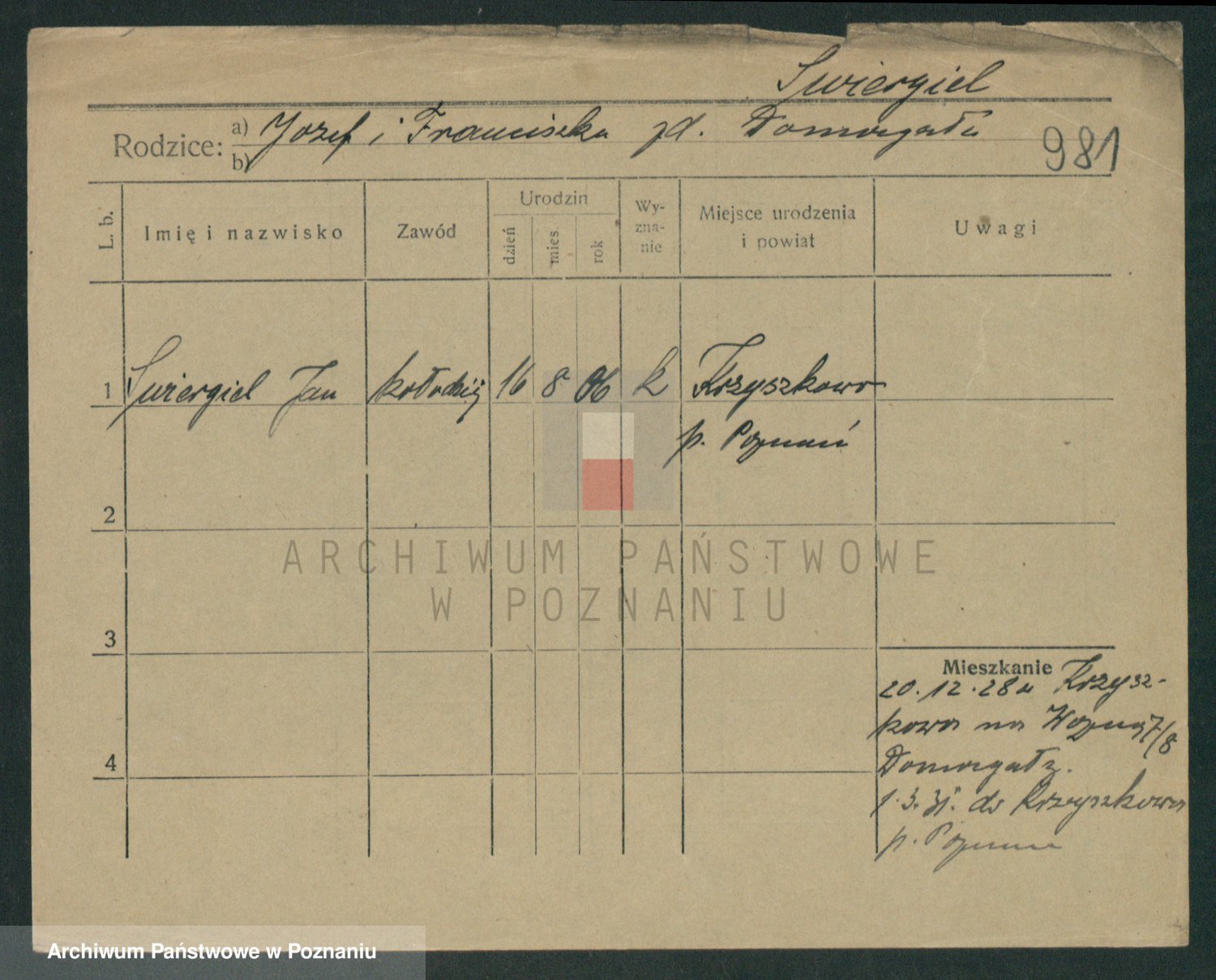 Podgląd karty osobowej dostępny jest po kliknięciu na nazwisko lub ikonkę karty. Można dokonywać powiększenia (ikony na górze) lub przechodzić między kolejnymi skanami (strzałki po bokach).