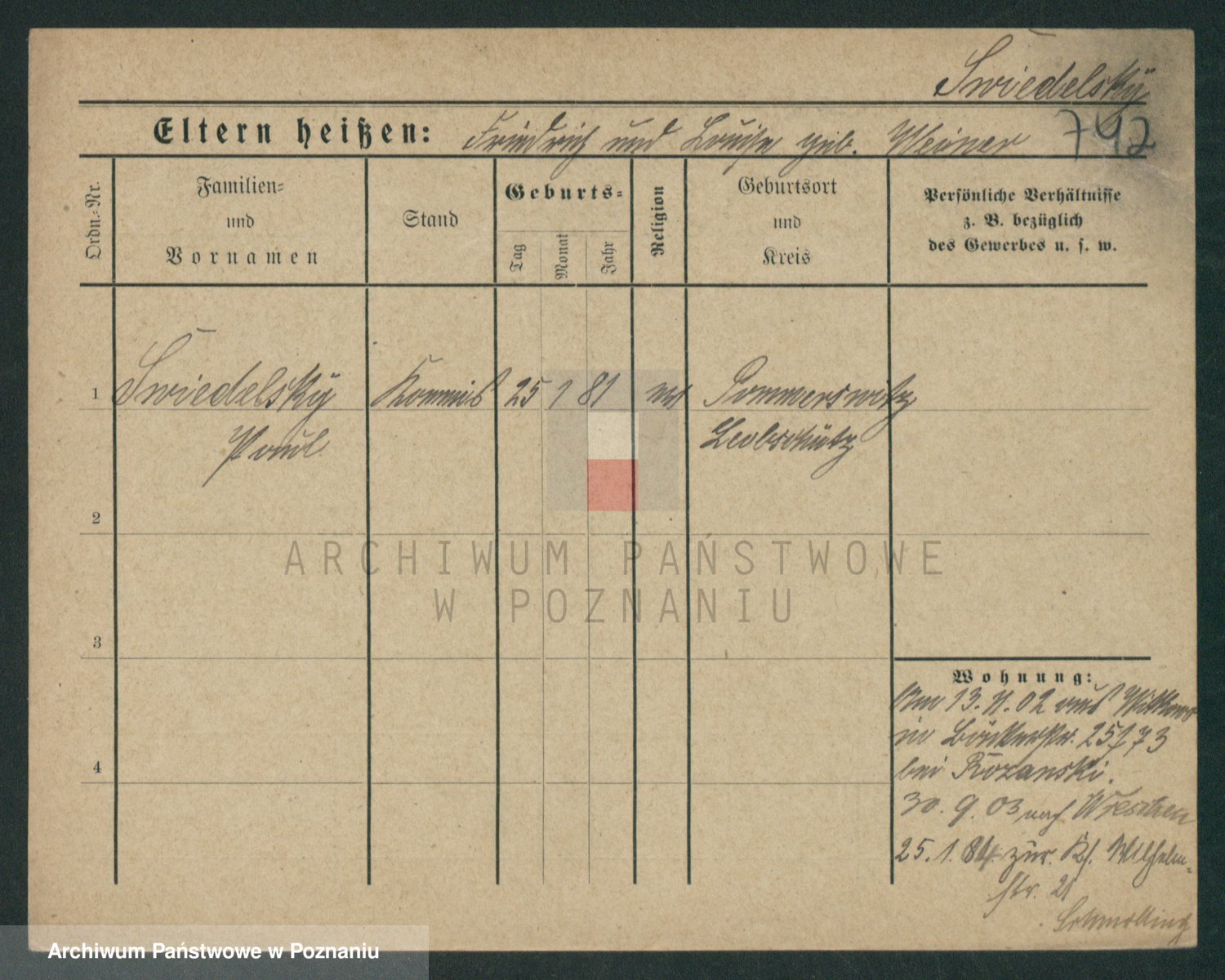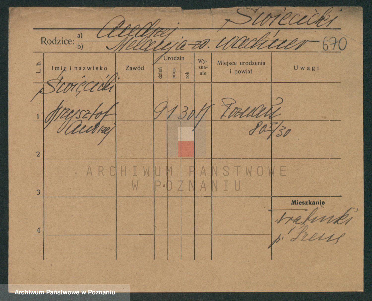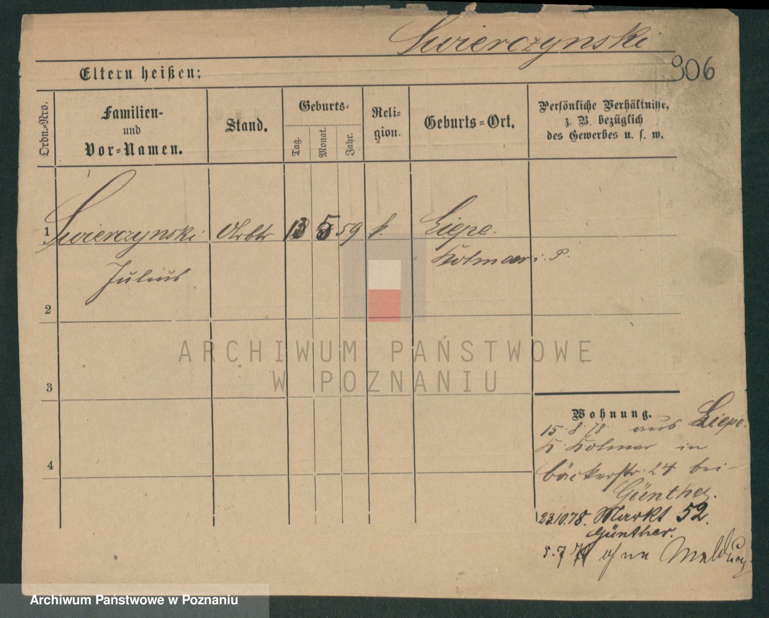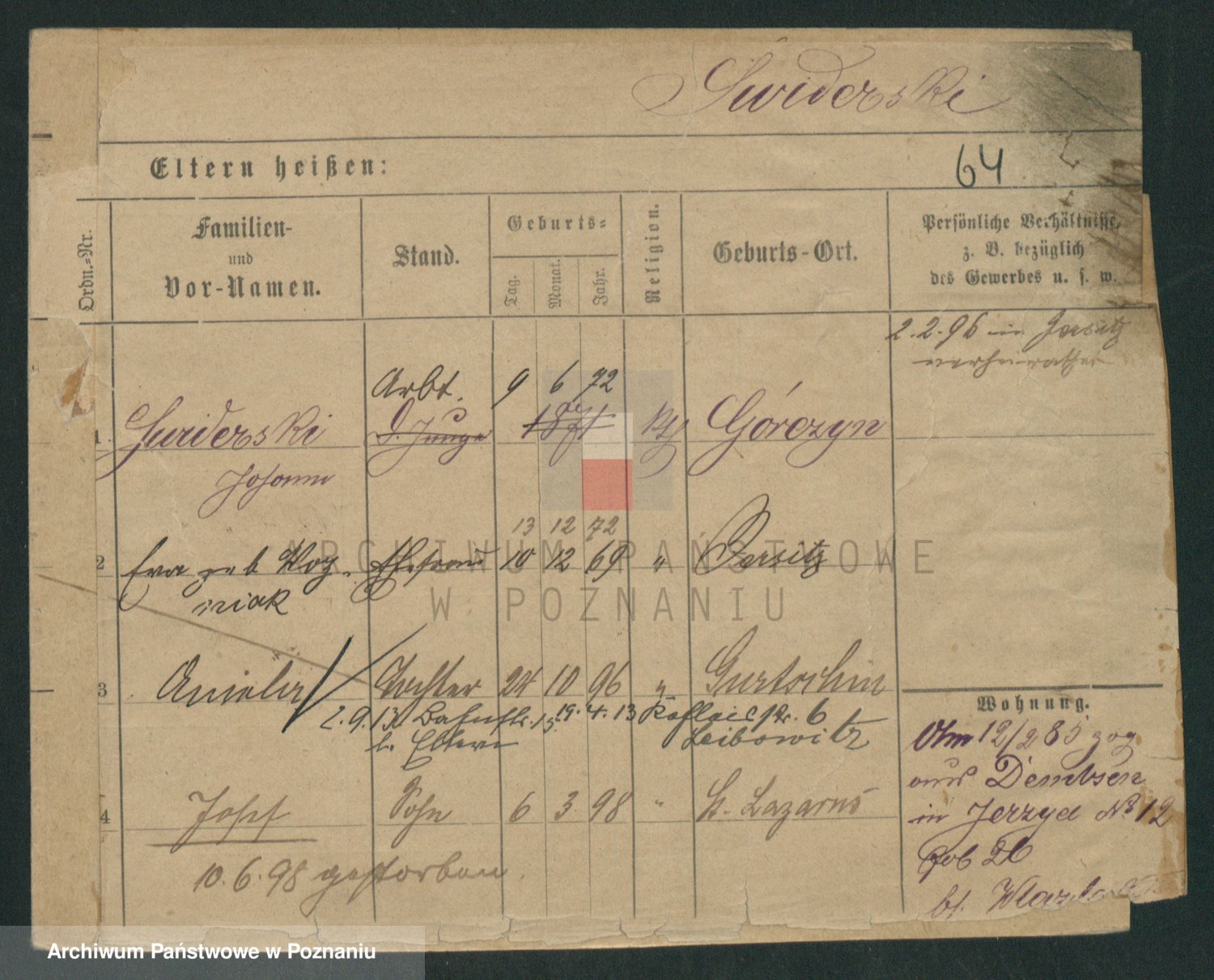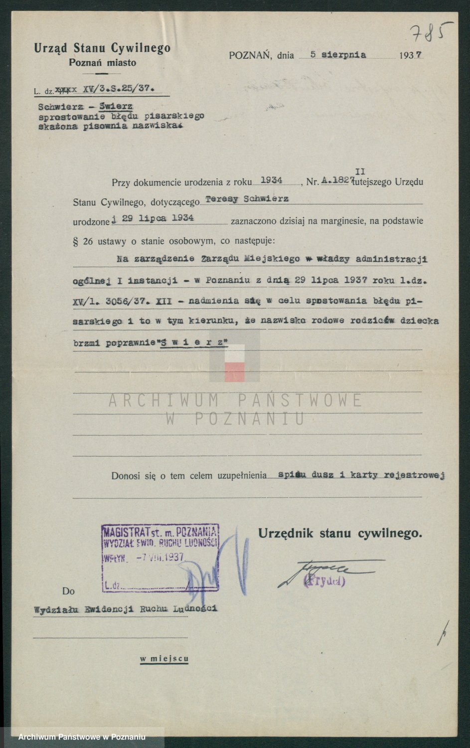 Podgląd karty osobowej dostępny jest po kliknięciu na nazwisko lub ikonkę karty. Można dokonywać powiększenia (ikony na górze) lub przechodzić między kolejnymi skanami (strzałki po bokach).