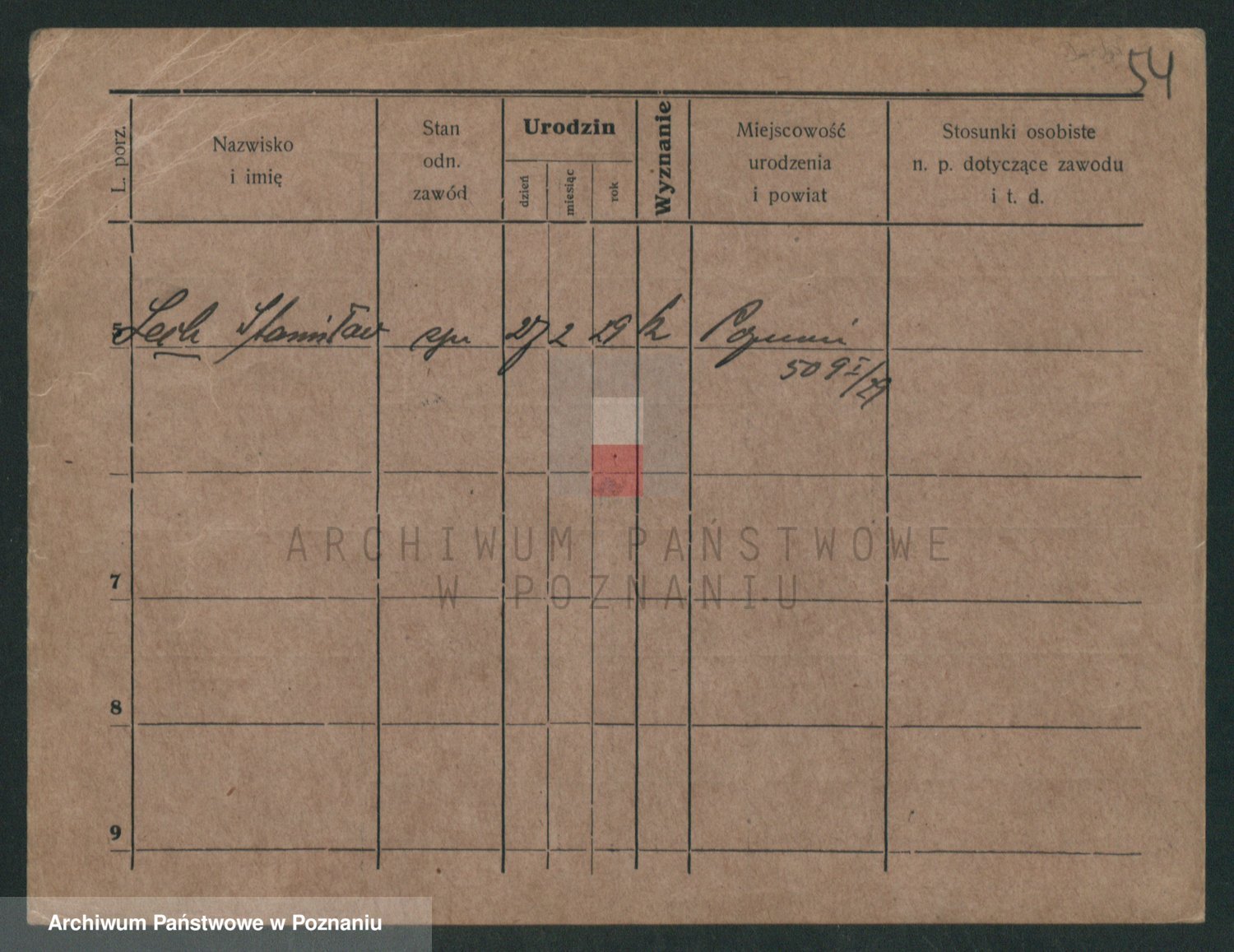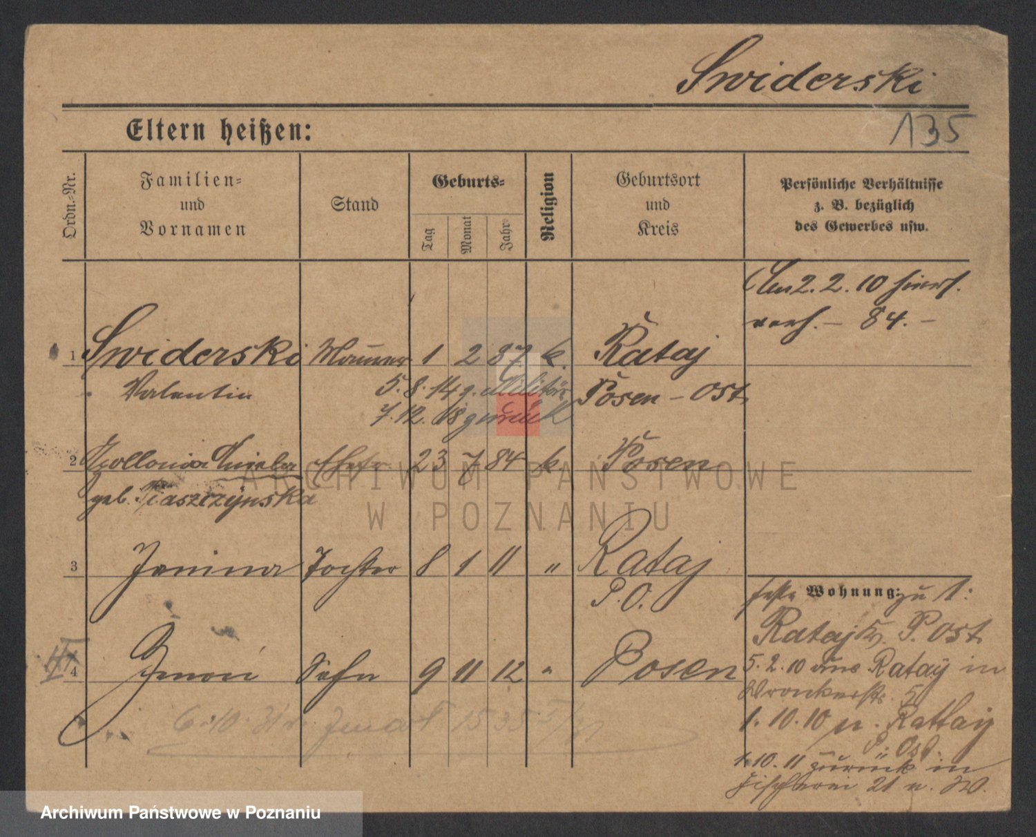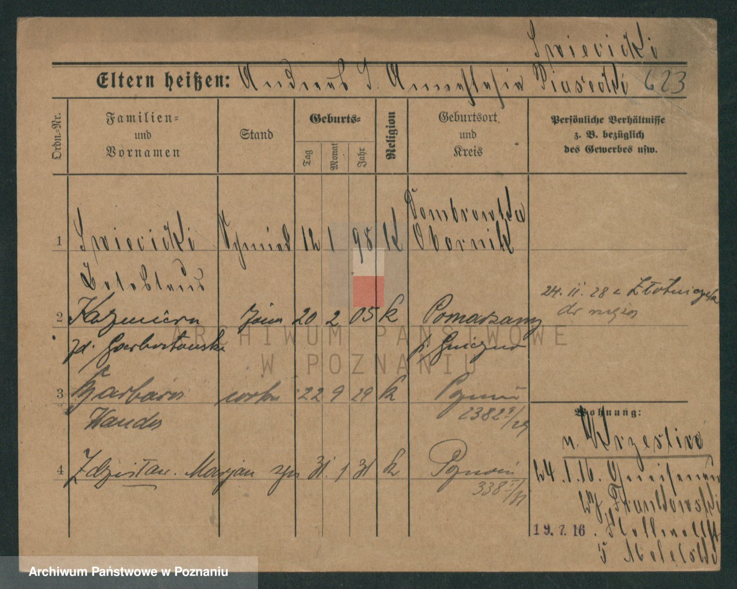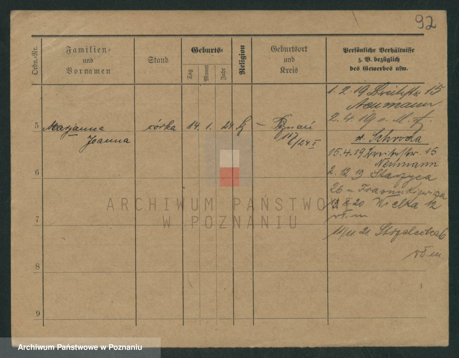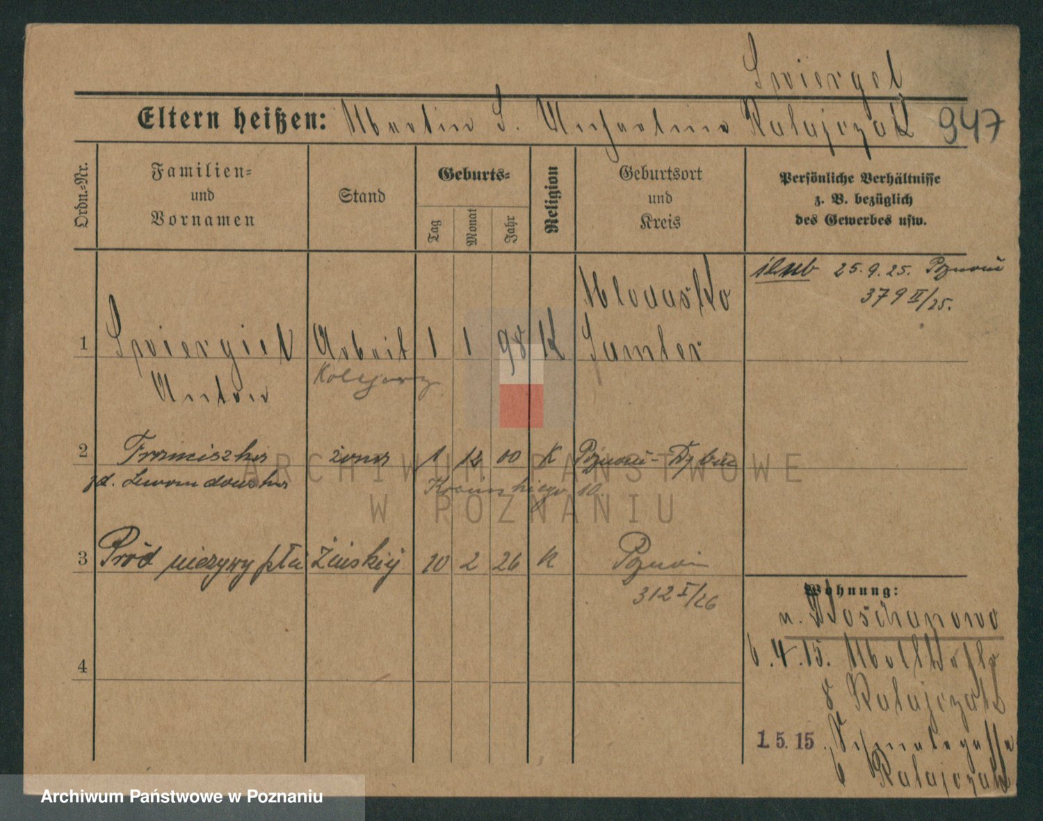 Podgląd karty osobowej dostępny jest po kliknięciu na nazwisko lub ikonkę karty. Można dokonywać powiększenia (ikony na górze) lub przechodzić między kolejnymi skanami (strzałki po bokach).