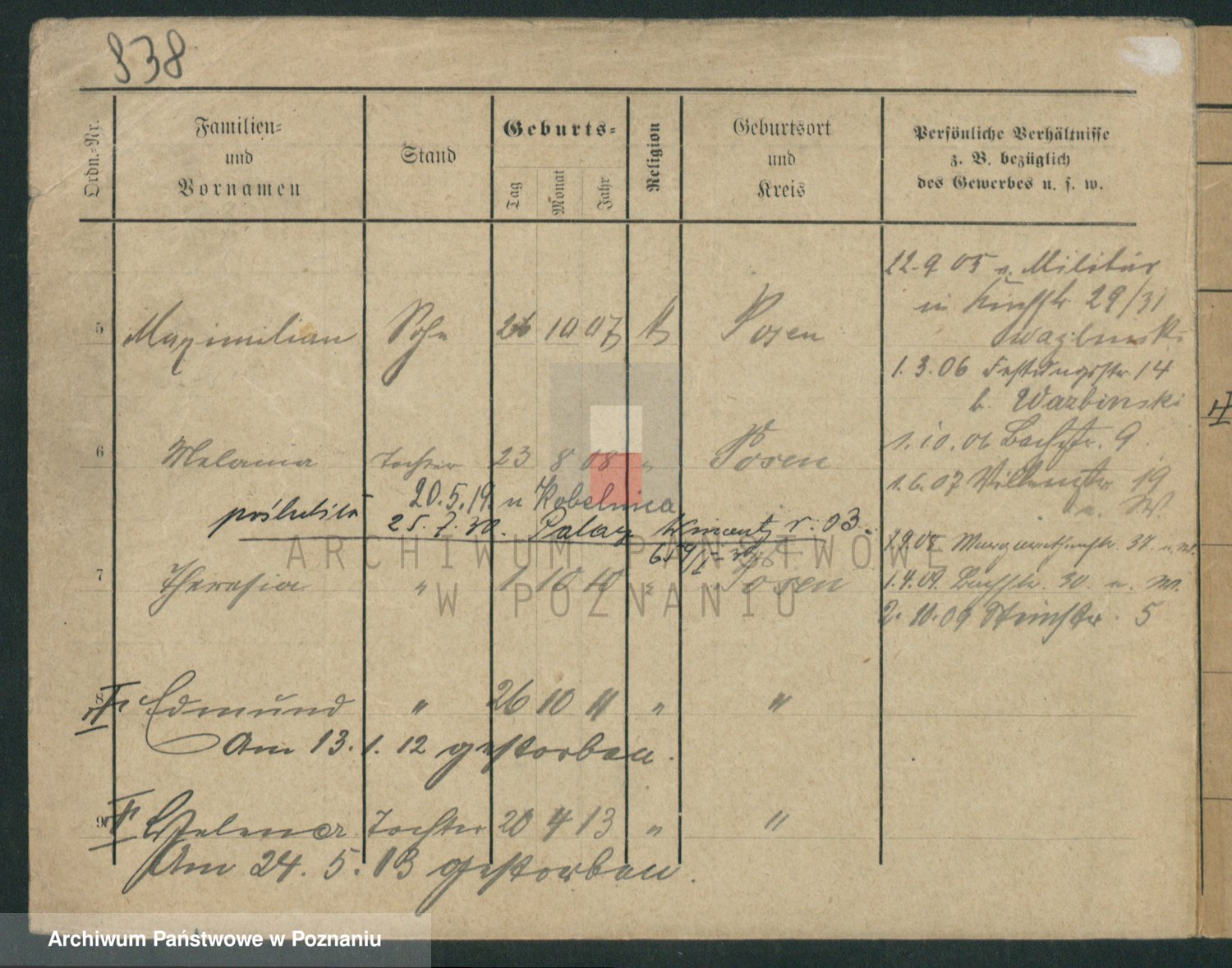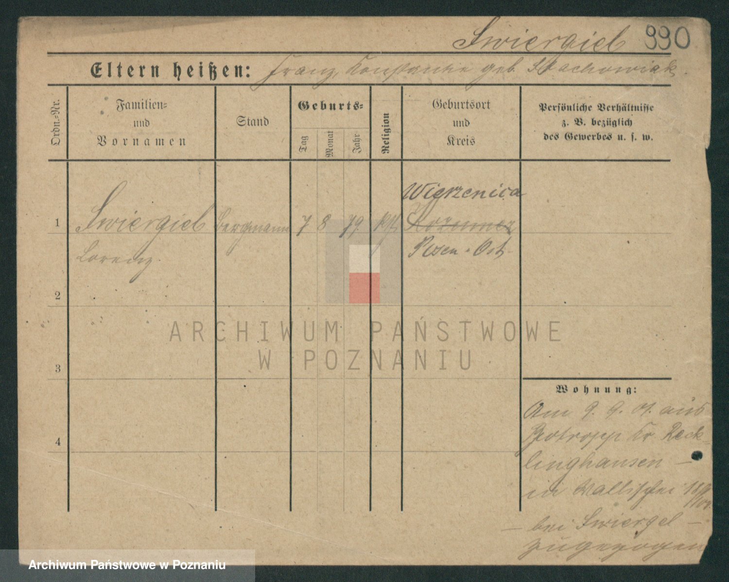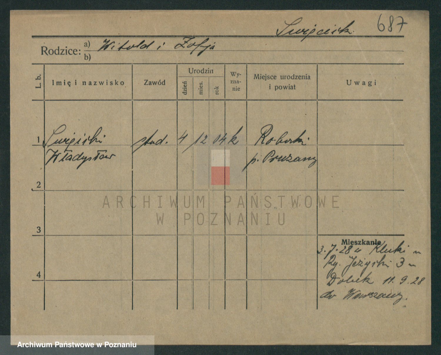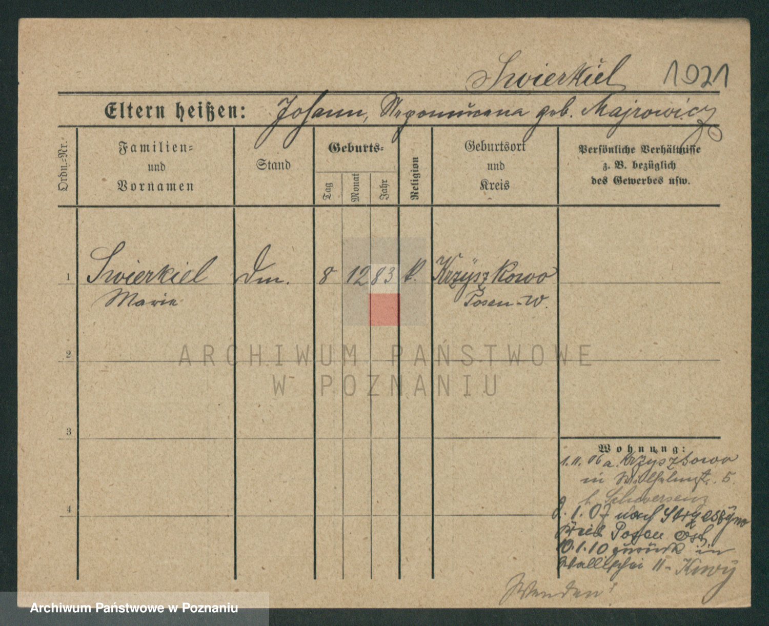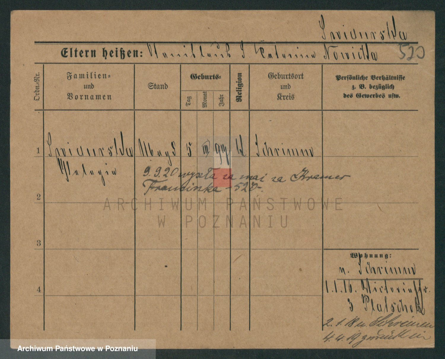 Podgląd karty osobowej dostępny jest po kliknięciu na nazwisko lub ikonkę karty. Można dokonywać powiększenia (ikony na górze) lub przechodzić między kolejnymi skanami (strzałki po bokach).
