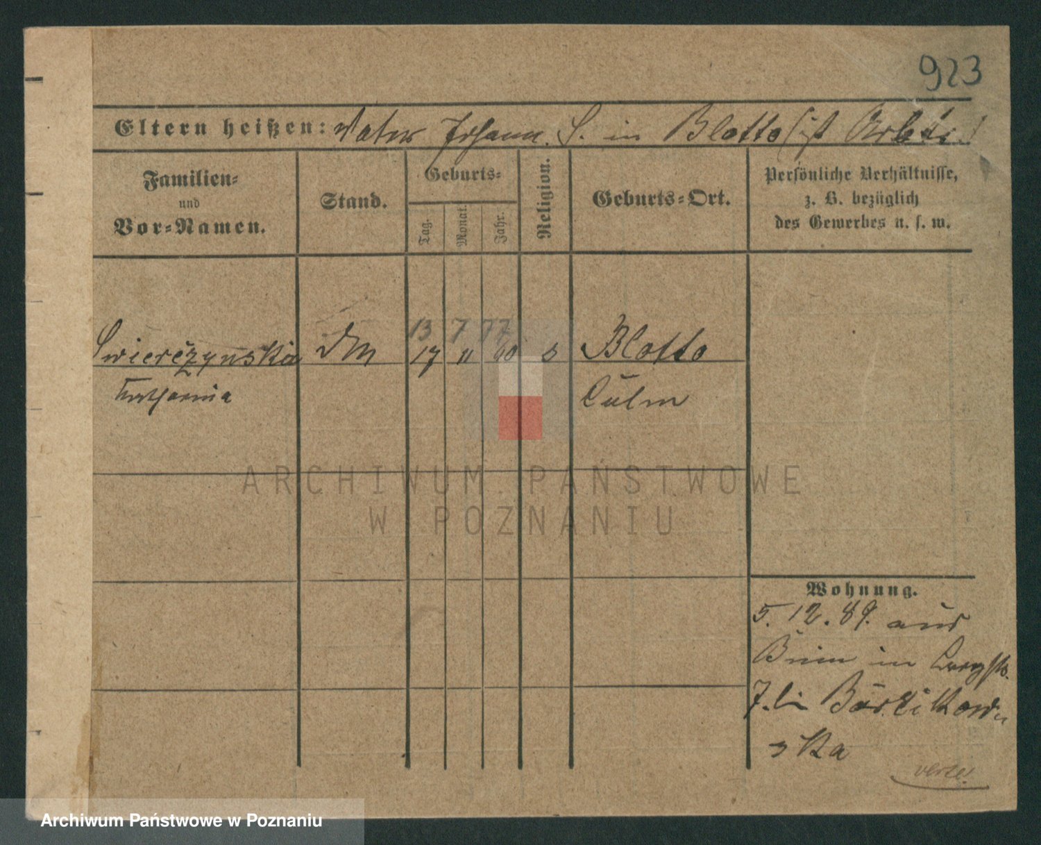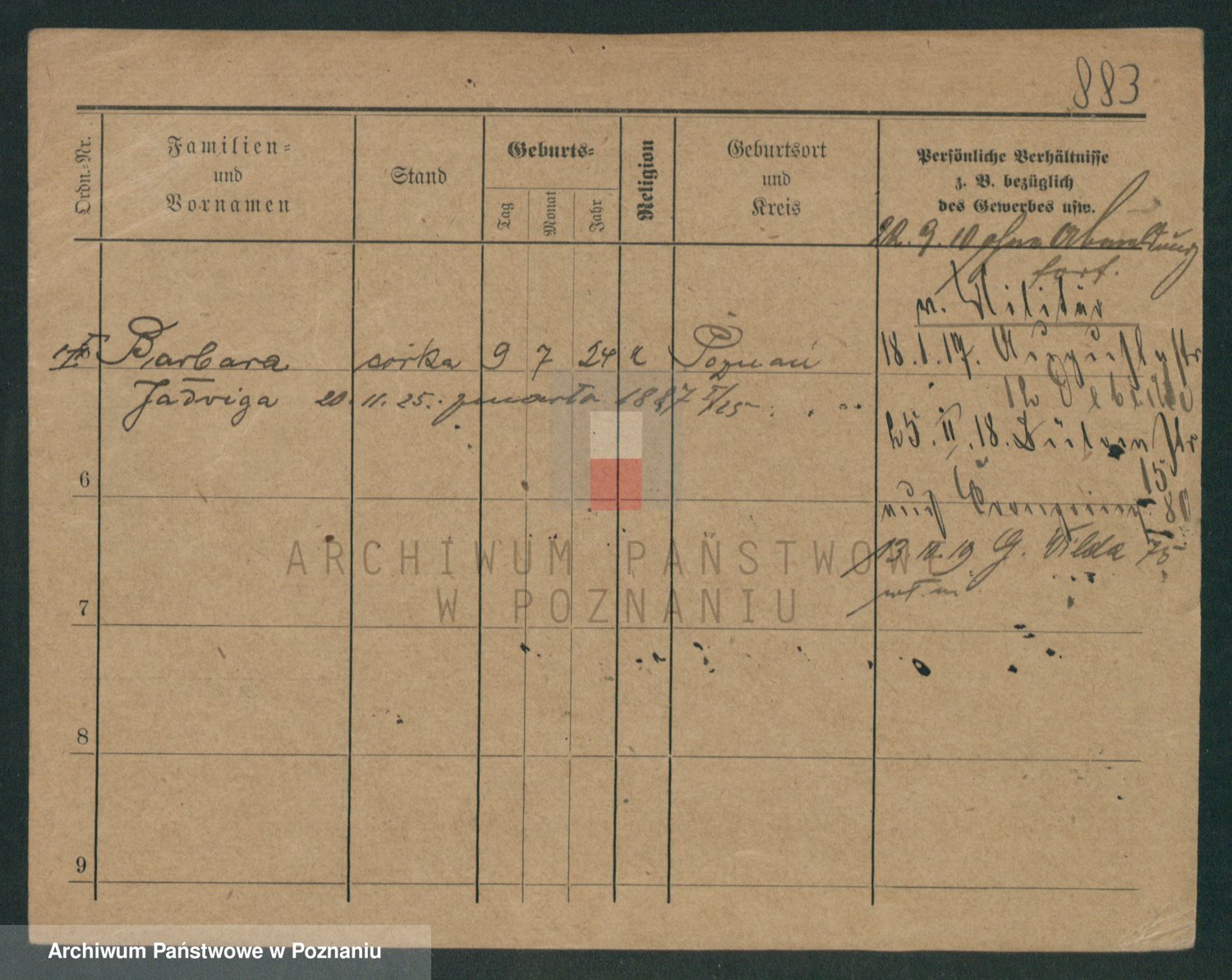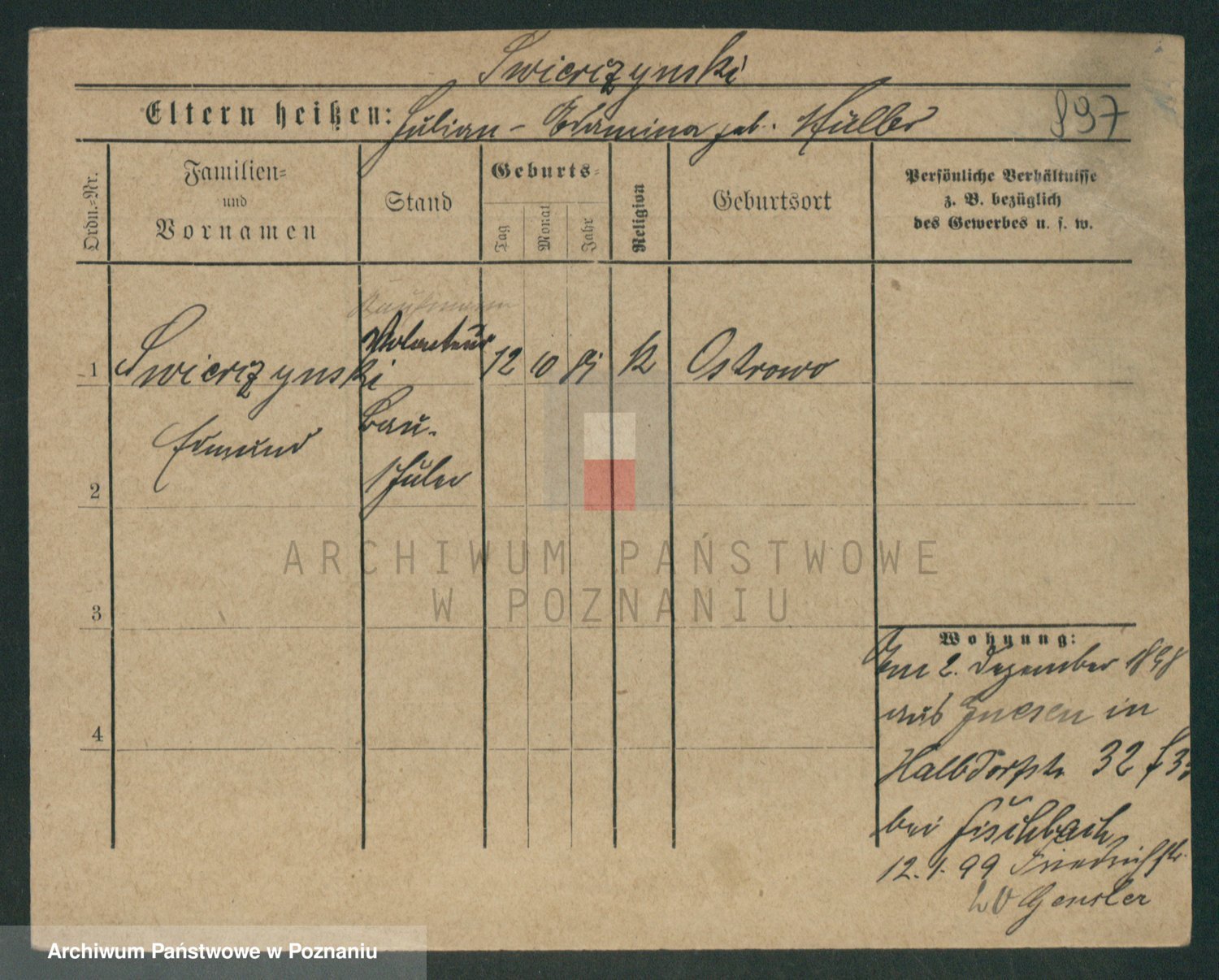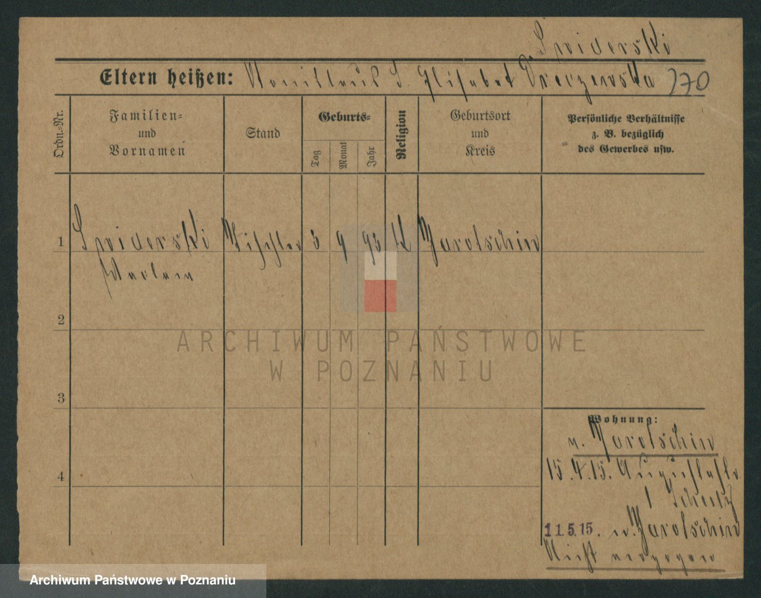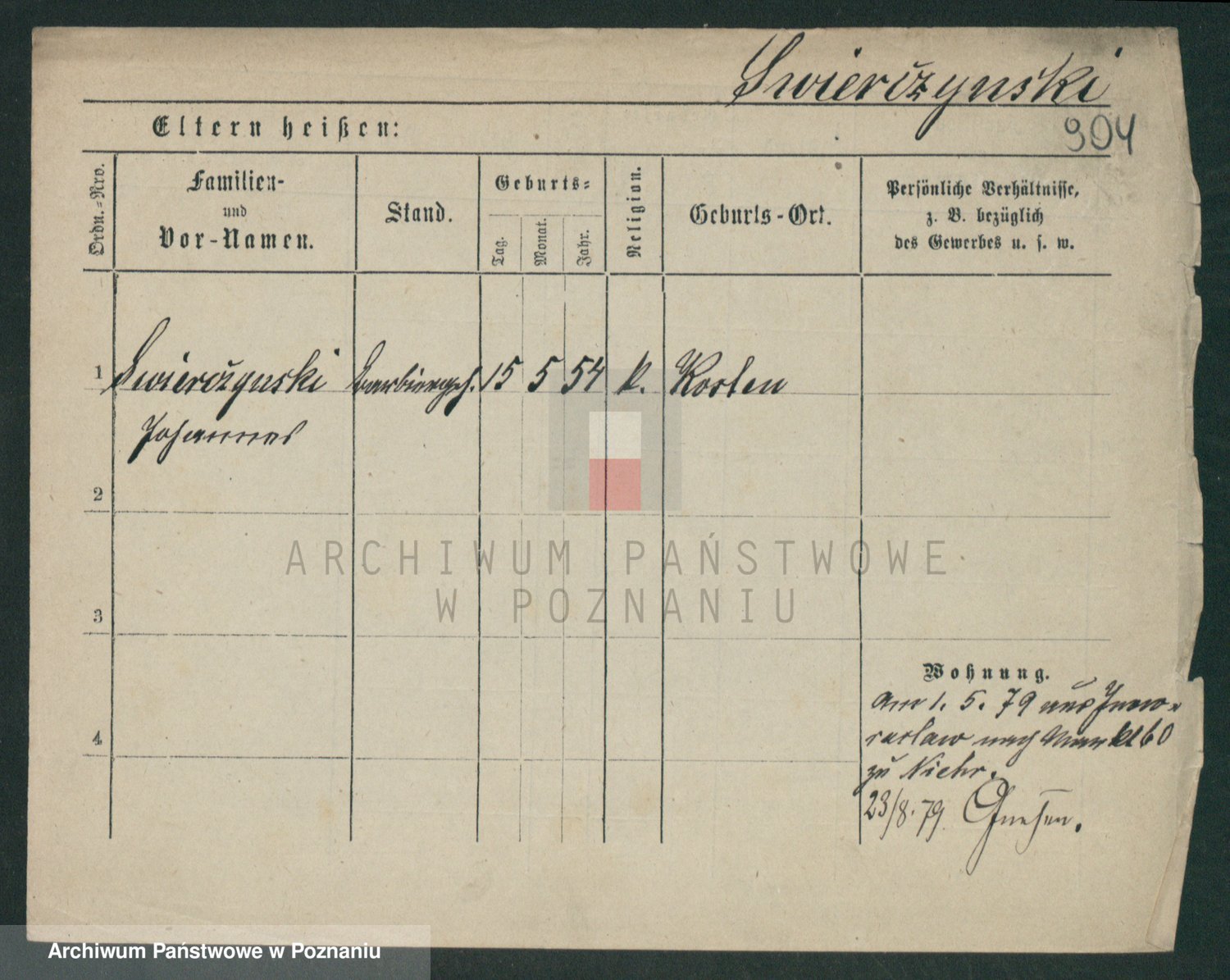 Podgląd karty osobowej dostępny jest po kliknięciu na nazwisko lub ikonkę karty. Można dokonywać powiększenia (ikony na górze) lub przechodzić między kolejnymi skanami (strzałki po bokach).