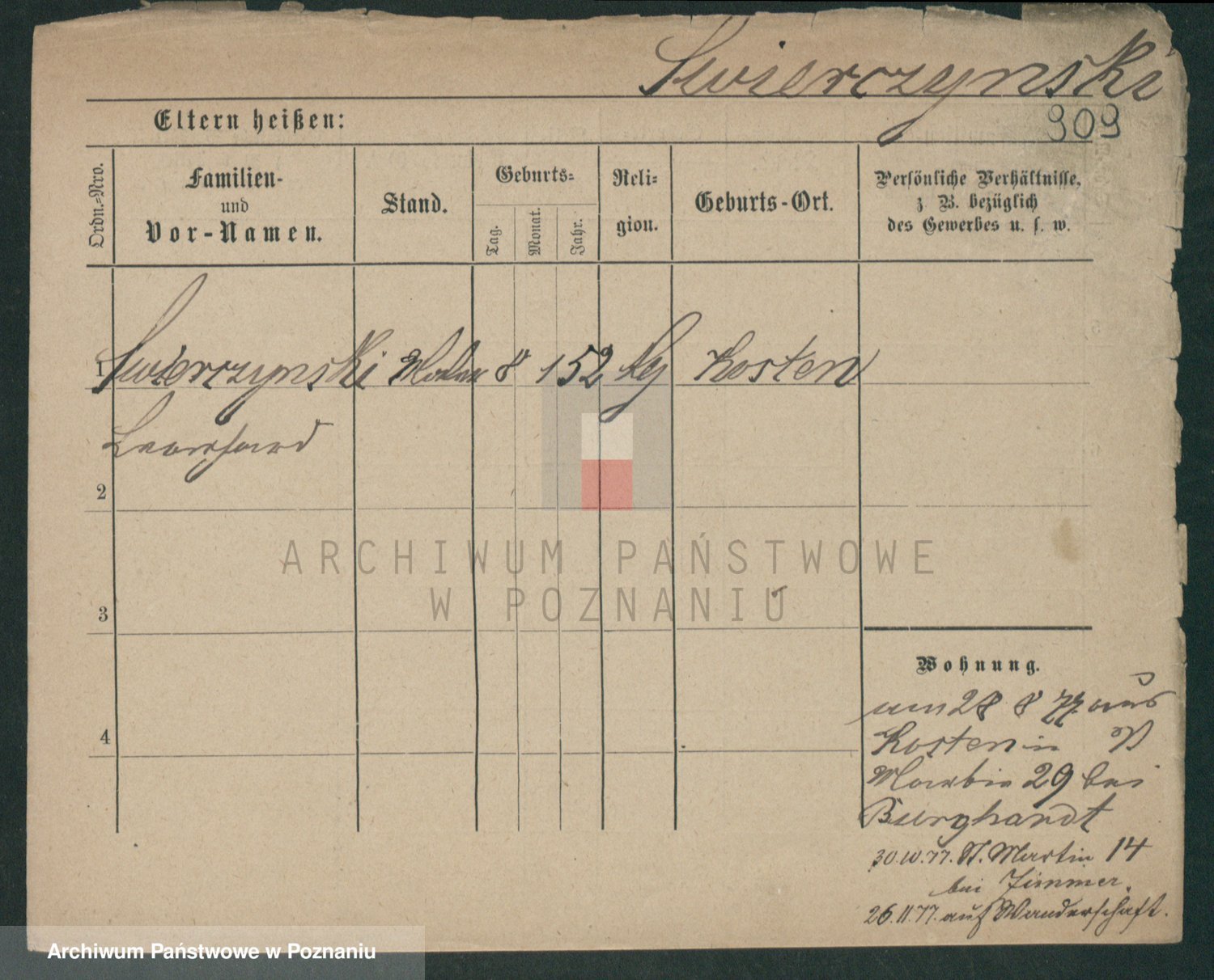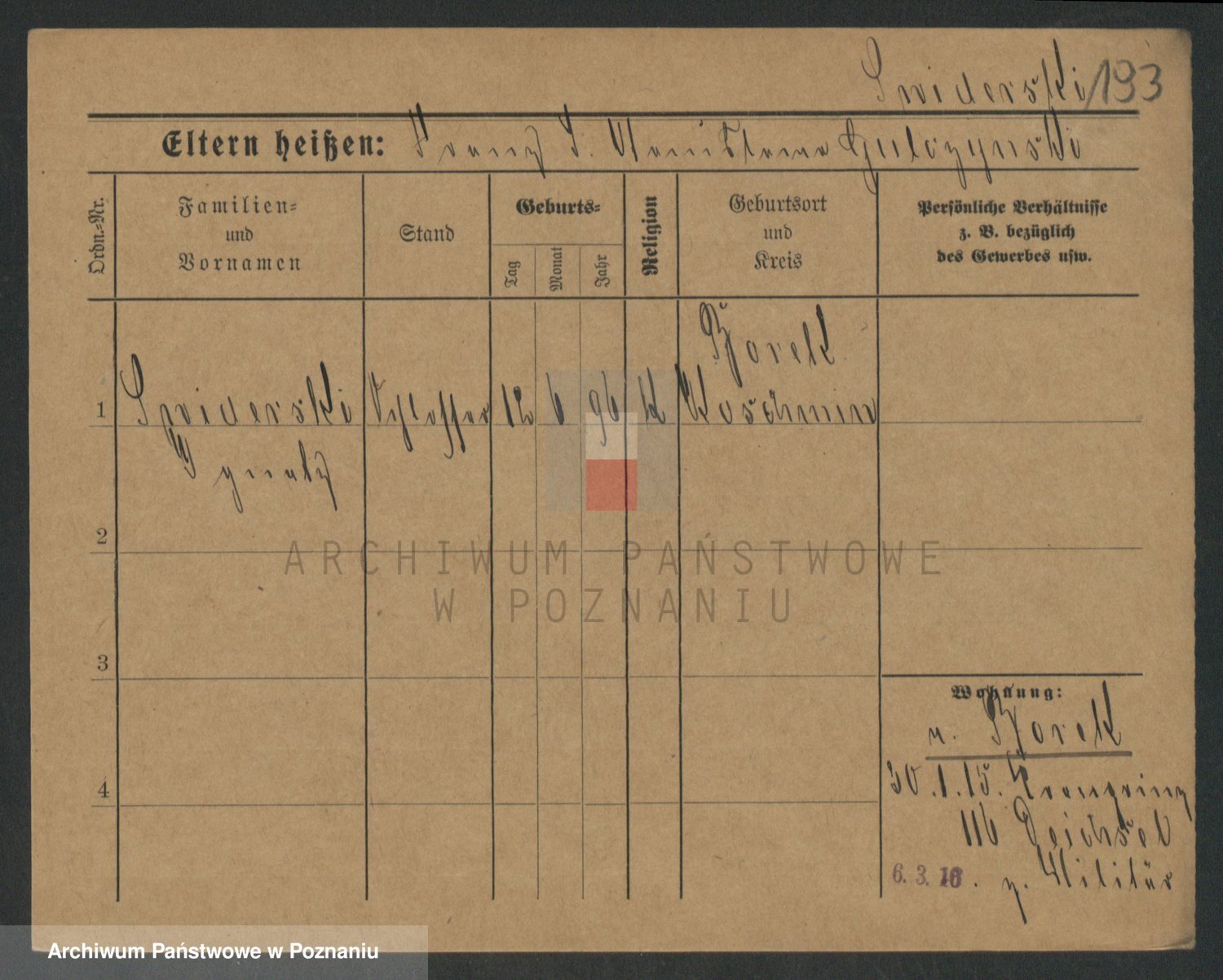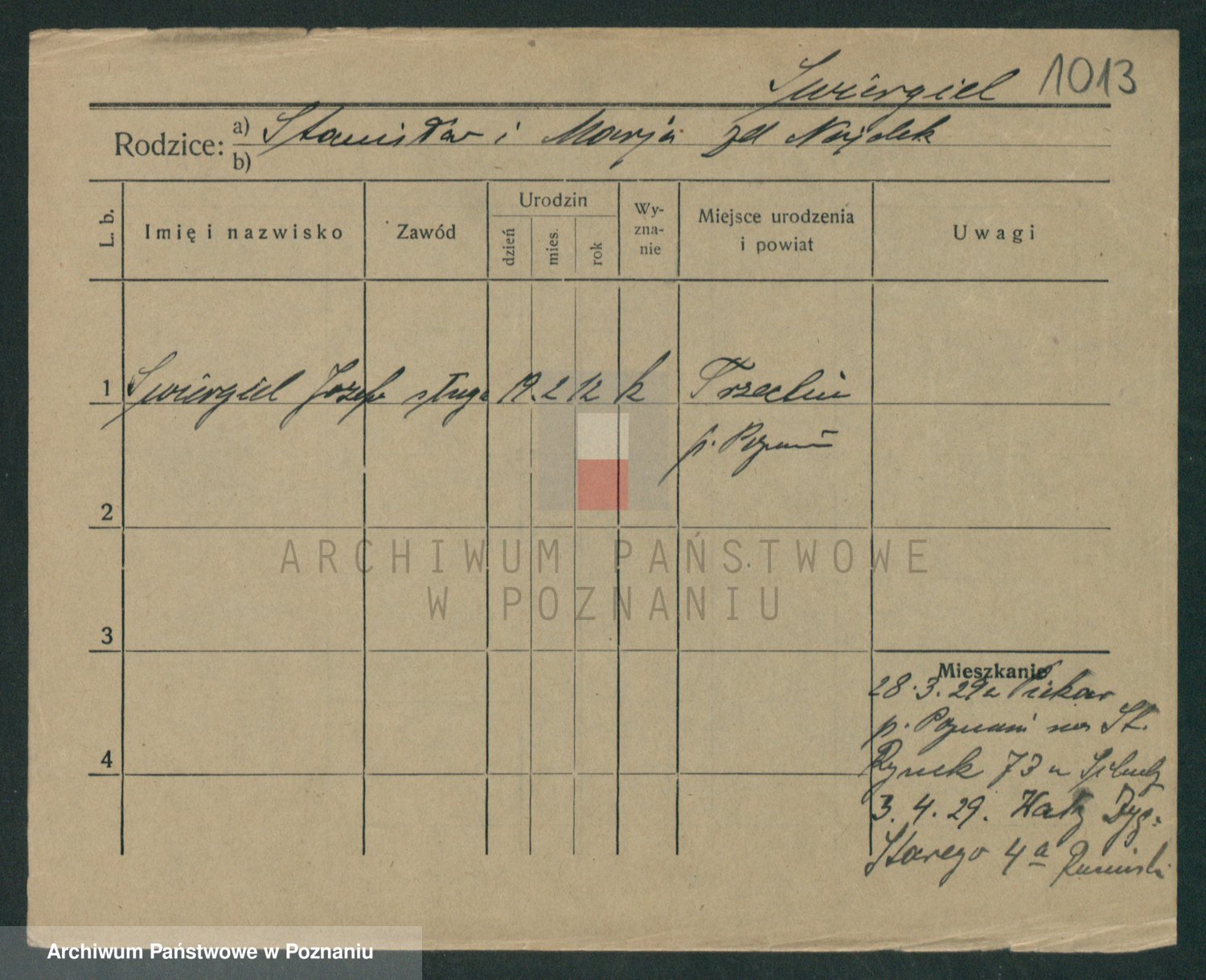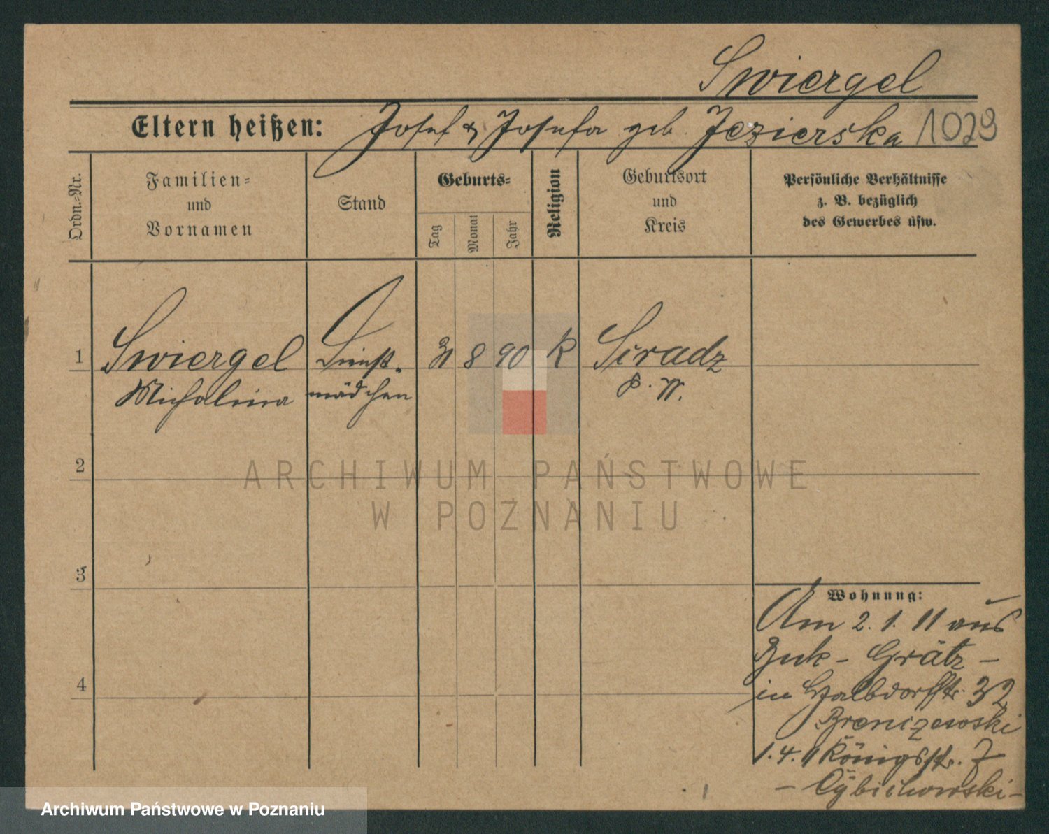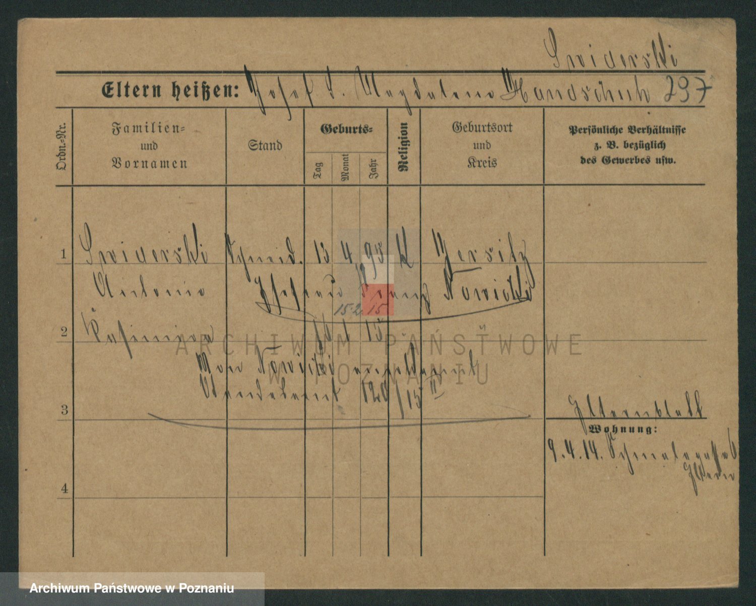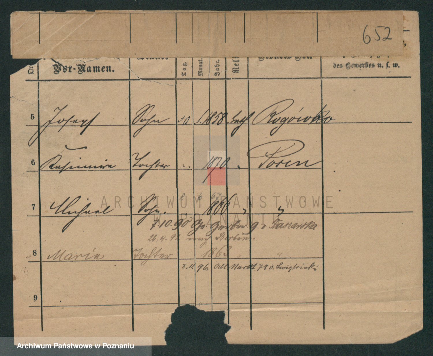 Podgląd karty osobowej dostępny jest po kliknięciu na nazwisko lub ikonkę karty. Można dokonywać powiększenia (ikony na górze) lub przechodzić między kolejnymi skanami (strzałki po bokach).
