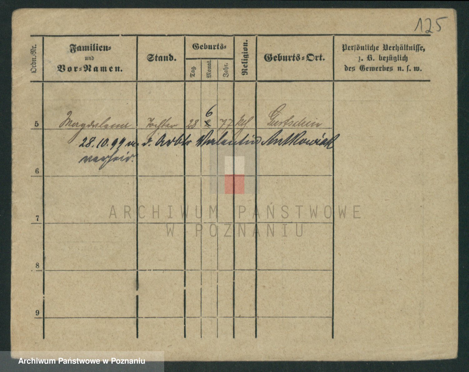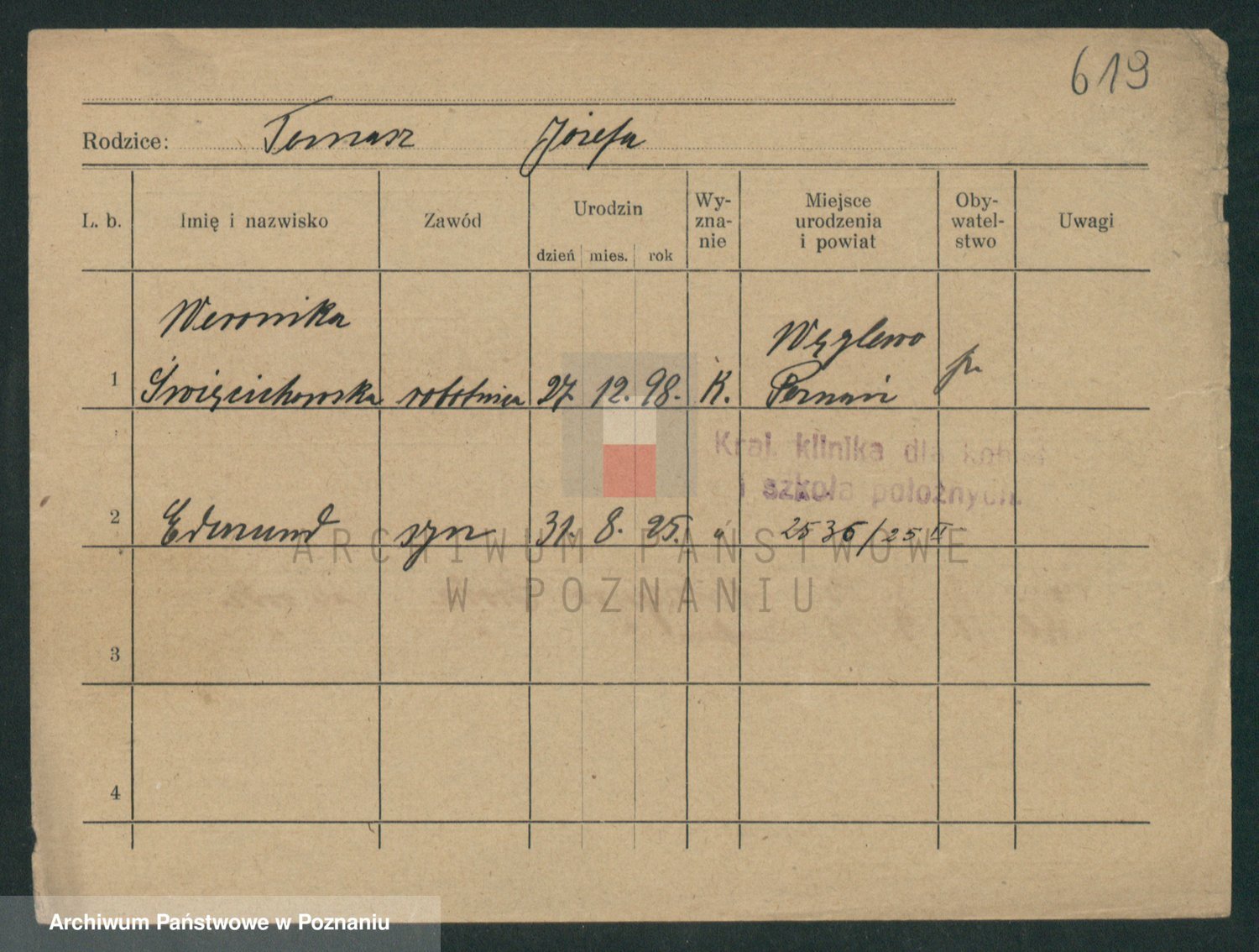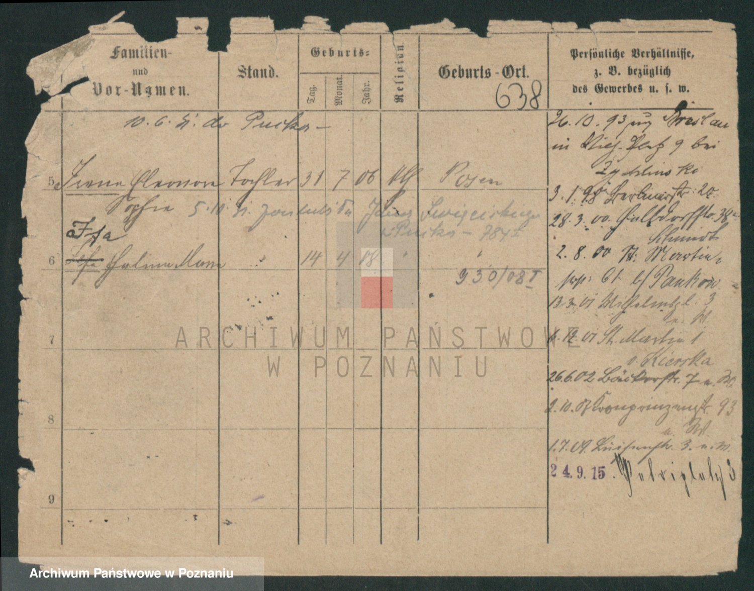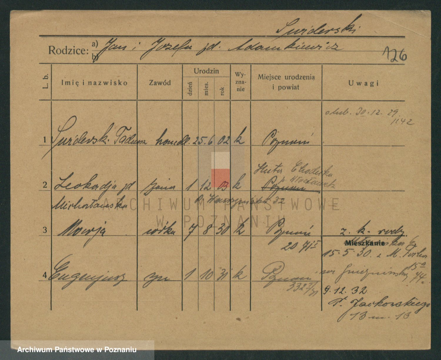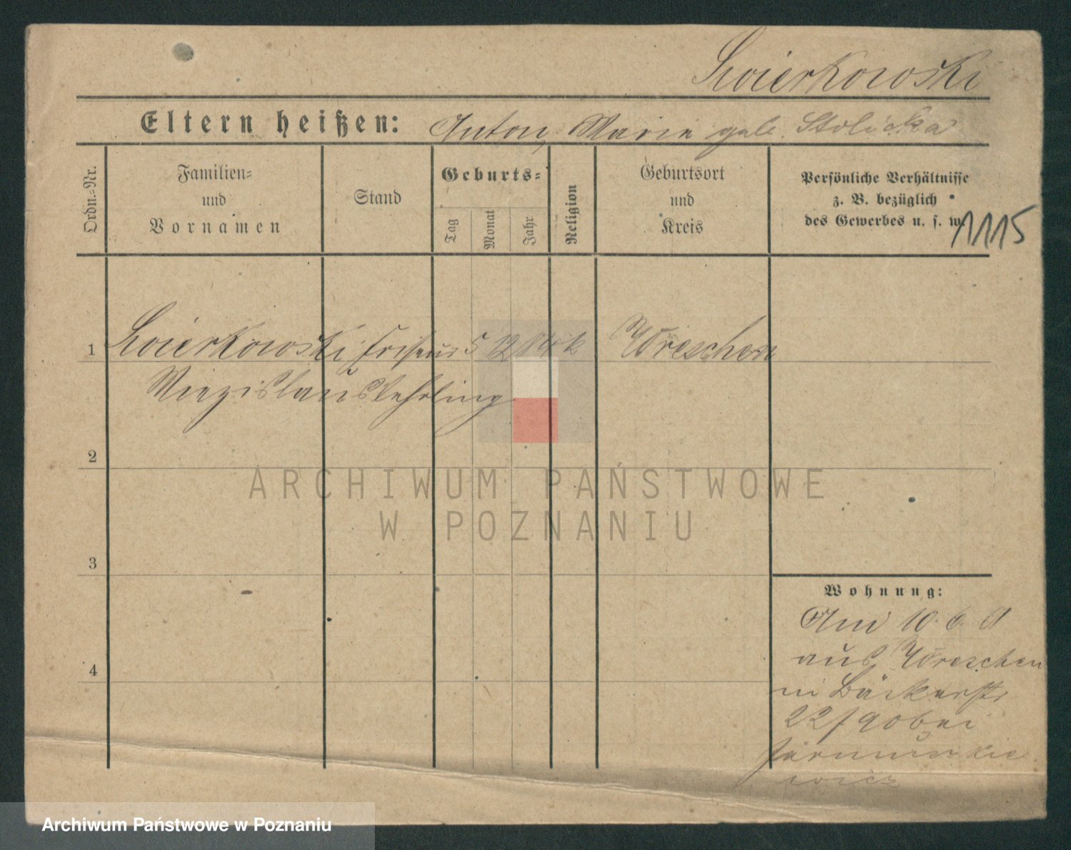 Podgląd karty osobowej dostępny jest po kliknięciu na nazwisko lub ikonkę karty. Można dokonywać powiększenia (ikony na górze) lub przechodzić między kolejnymi skanami (strzałki po bokach).