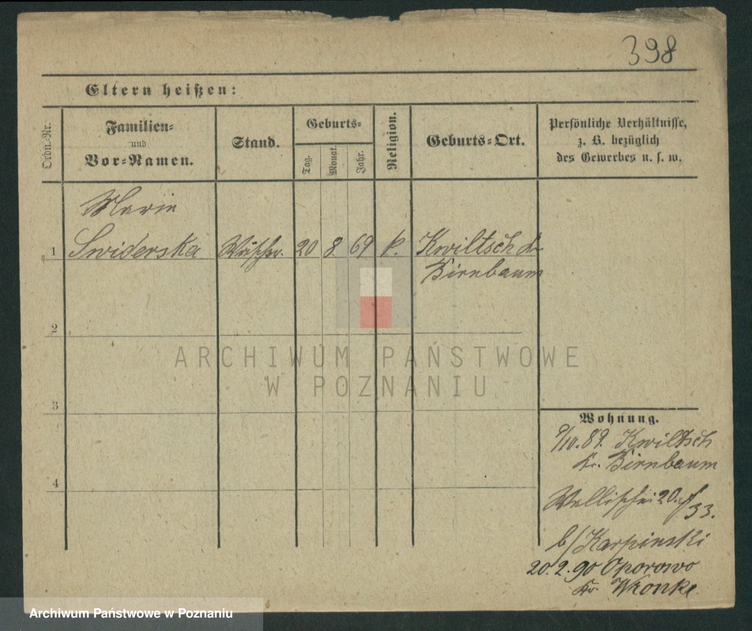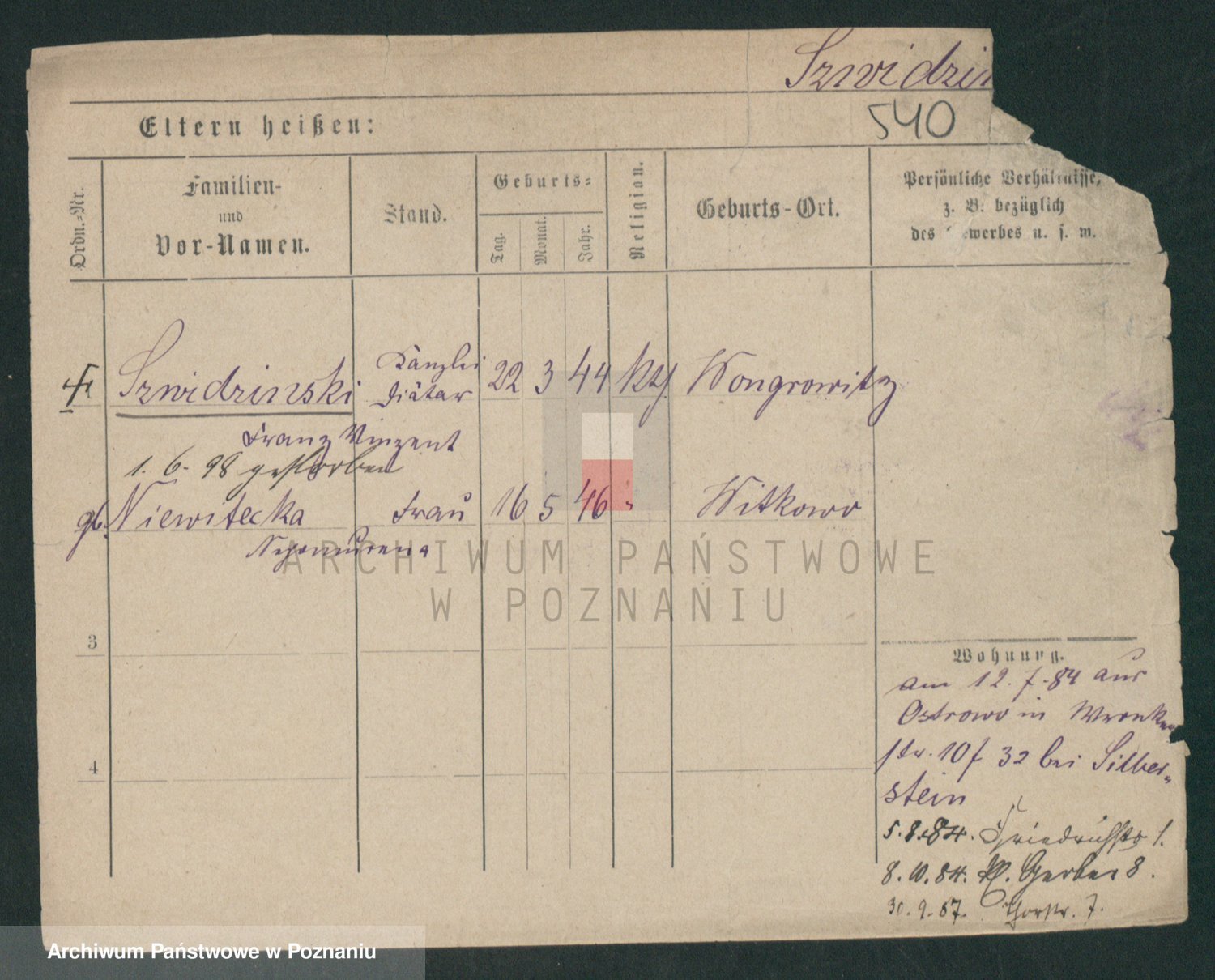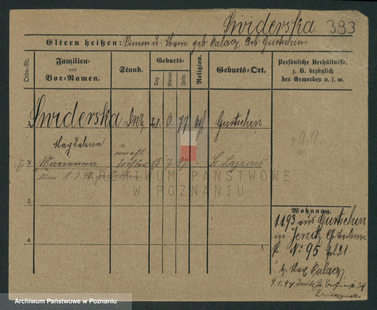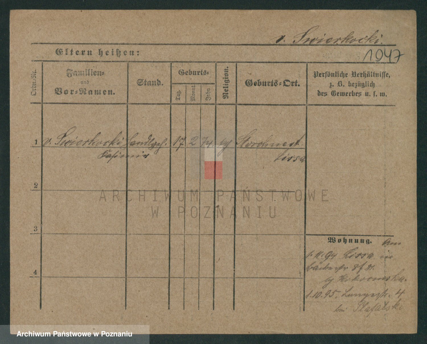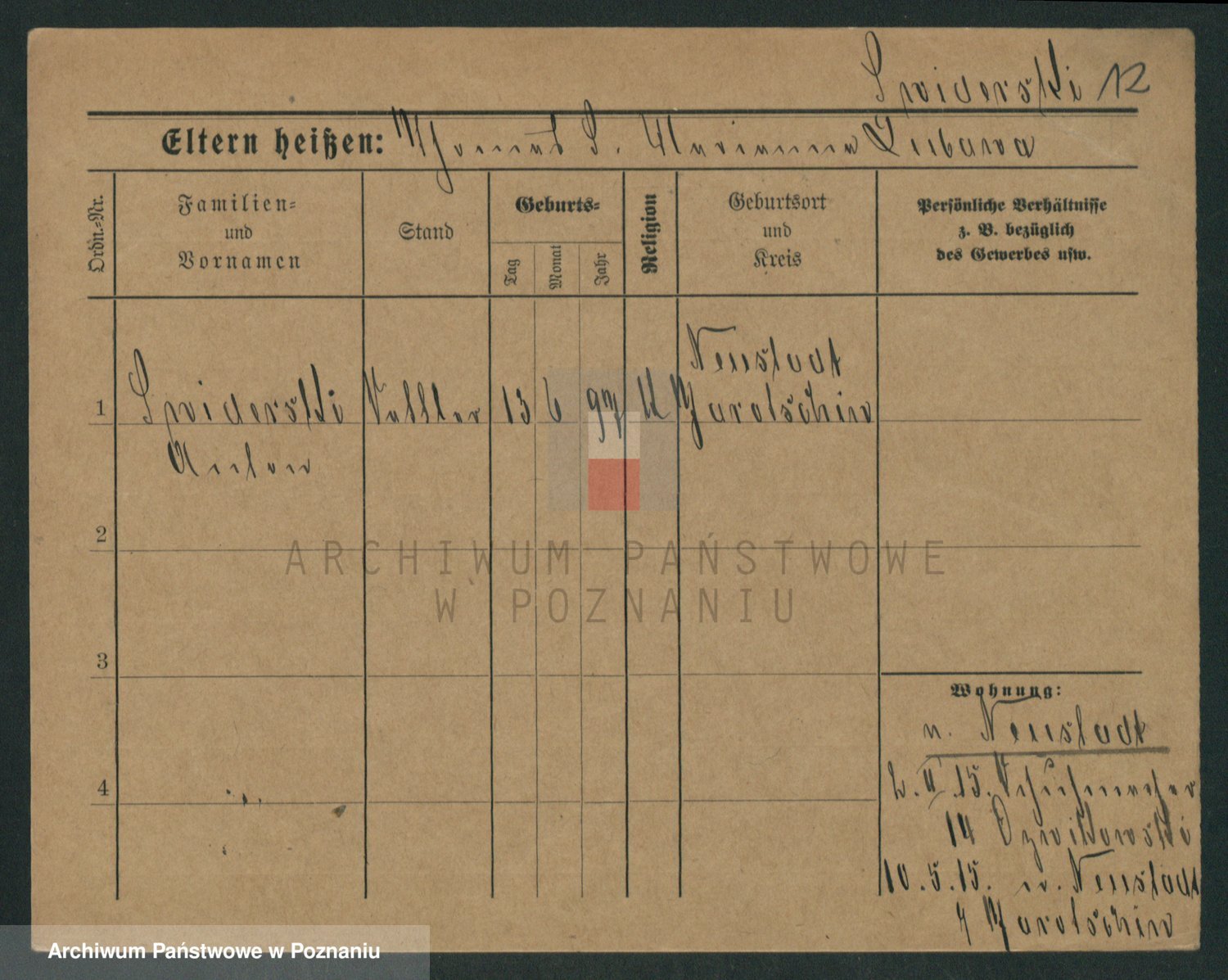 Podgląd karty osobowej dostępny jest po kliknięciu na nazwisko lub ikonkę karty. Można dokonywać powiększenia (ikony na górze) lub przechodzić między kolejnymi skanami (strzałki po bokach).
