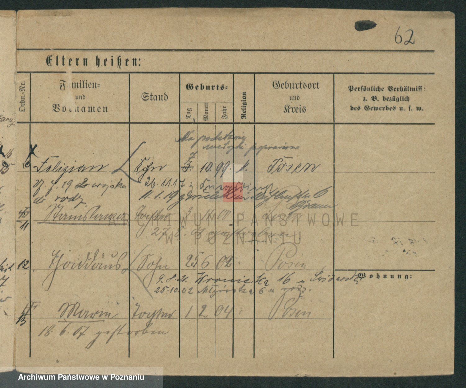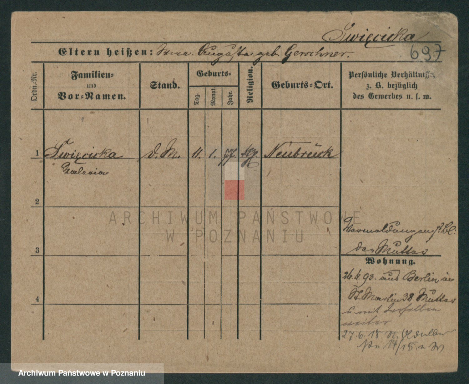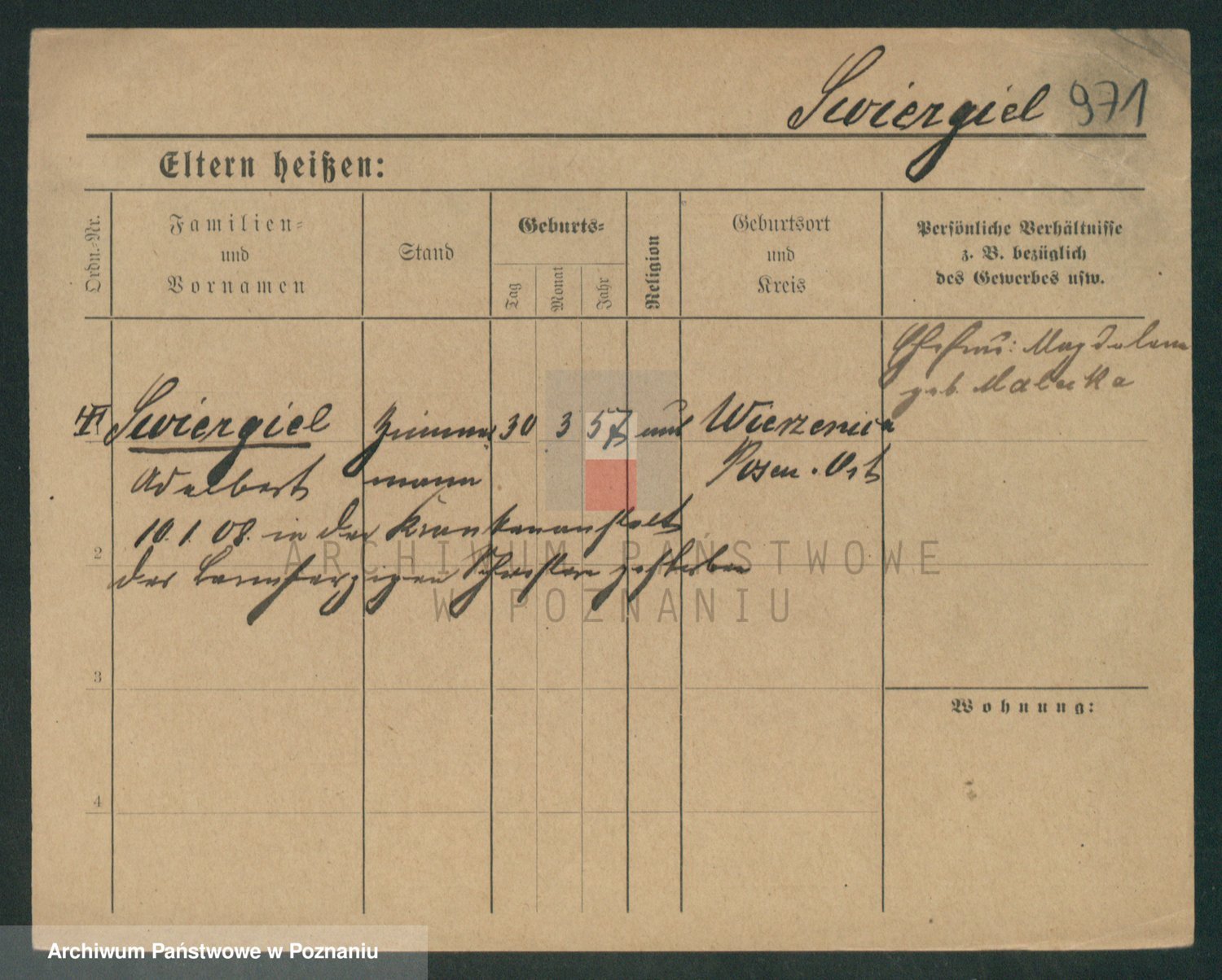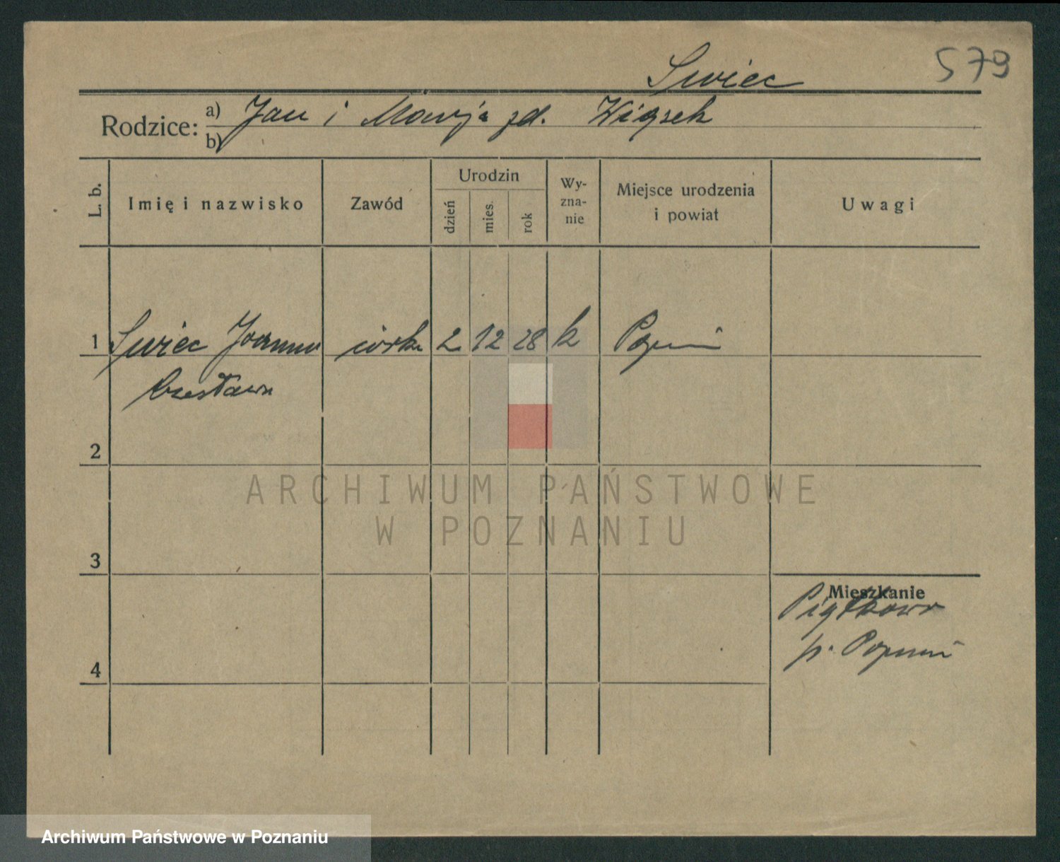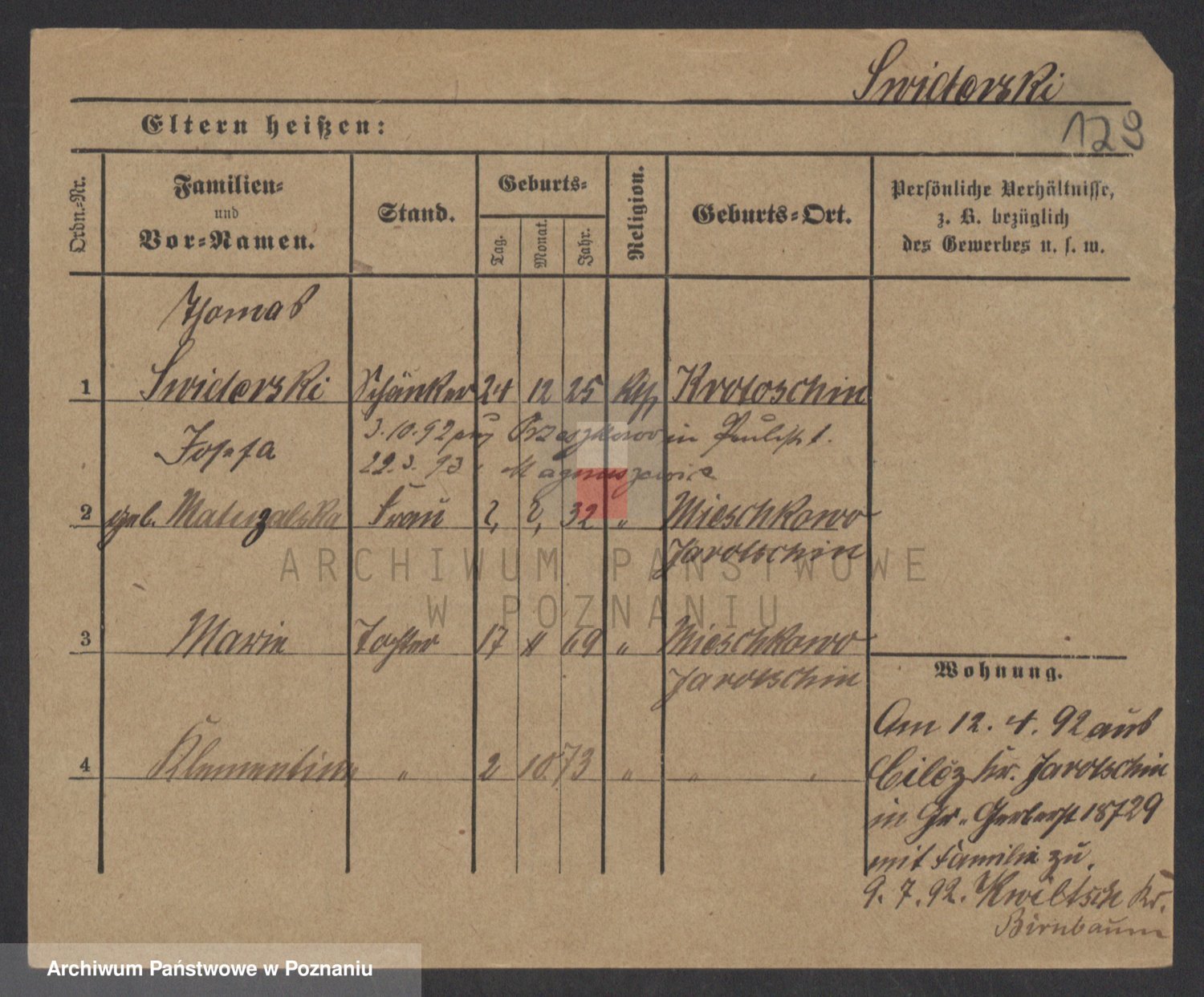 Podgląd karty osobowej dostępny jest po kliknięciu na nazwisko lub ikonkę karty. Można dokonywać powiększenia (ikony na górze) lub przechodzić między kolejnymi skanami (strzałki po bokach).
