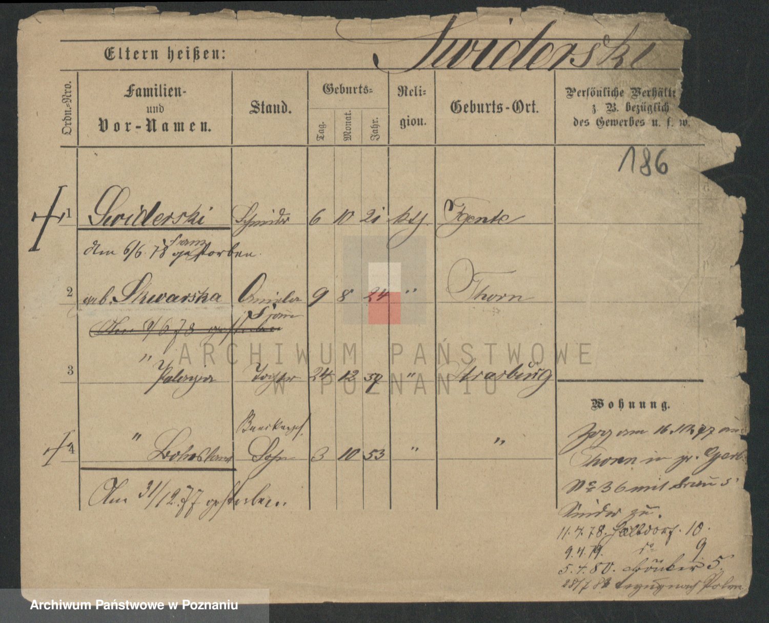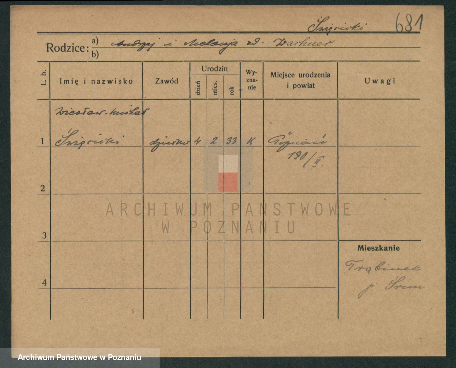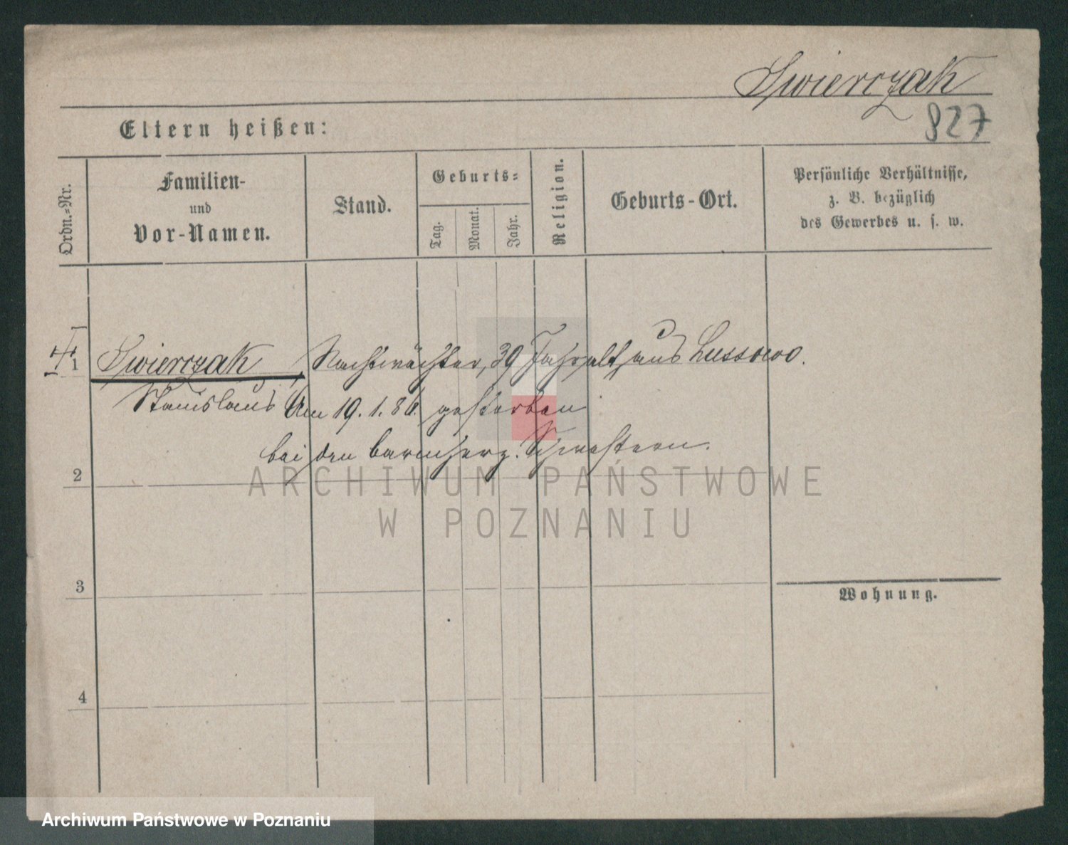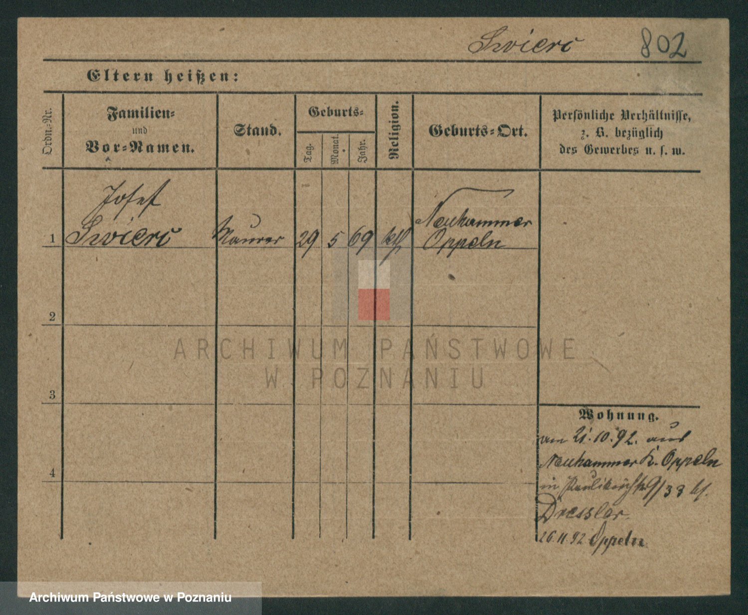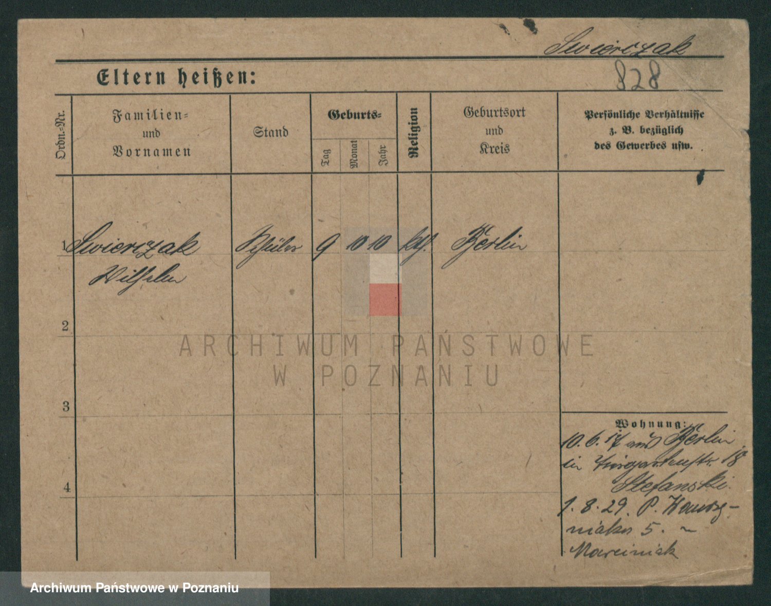 Podgląd karty osobowej dostępny jest po kliknięciu na nazwisko lub ikonkę karty. Można dokonywać powiększenia (ikony na górze) lub przechodzić między kolejnymi skanami (strzałki po bokach).