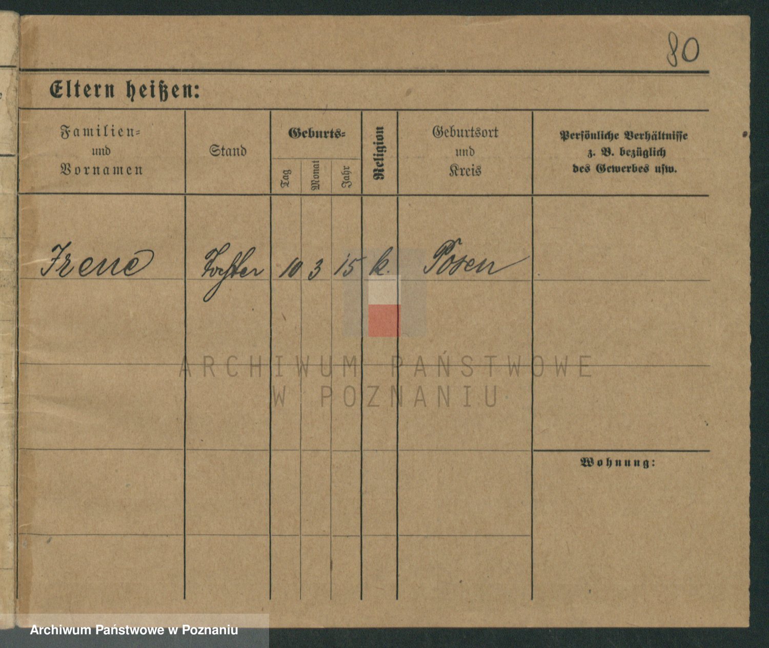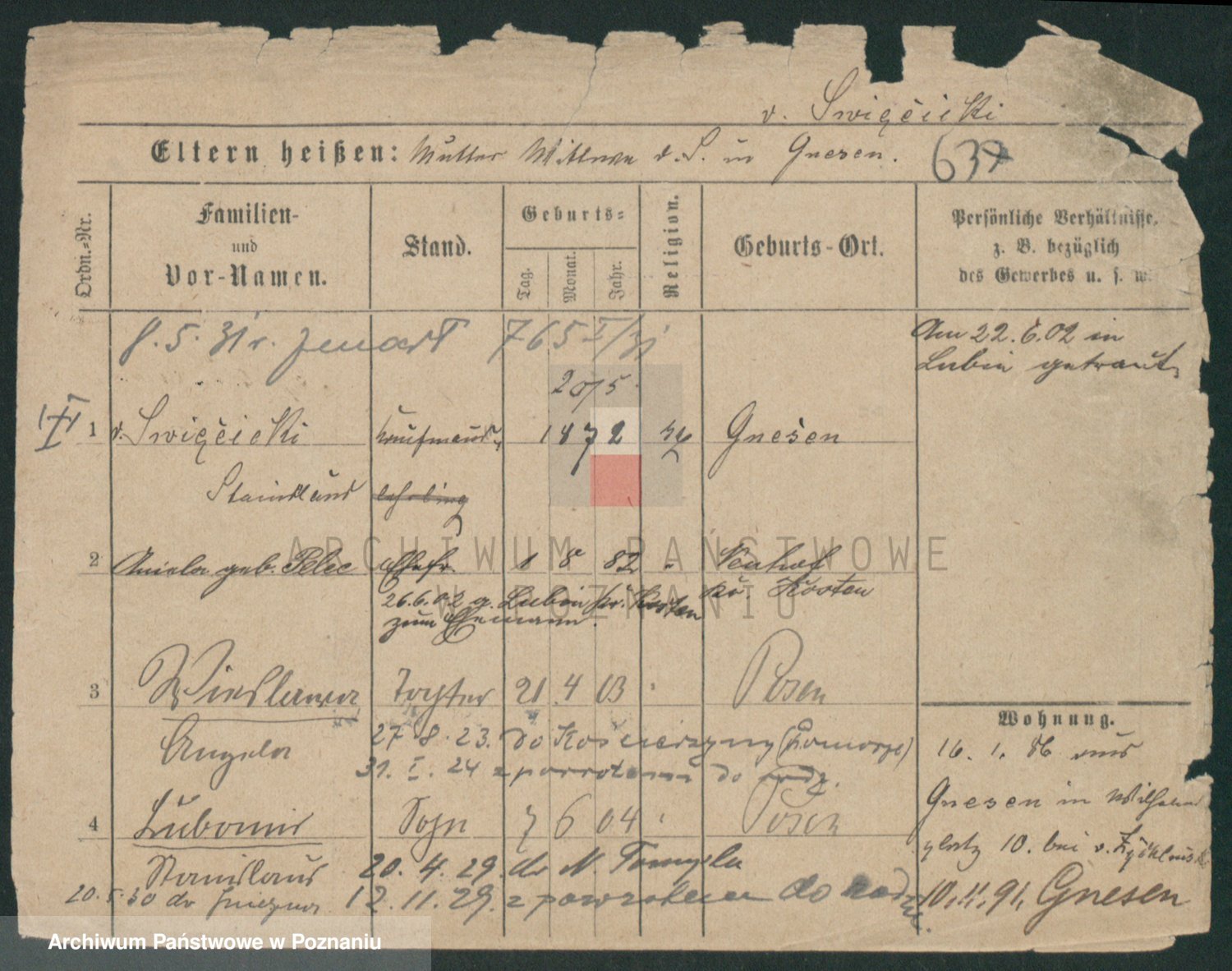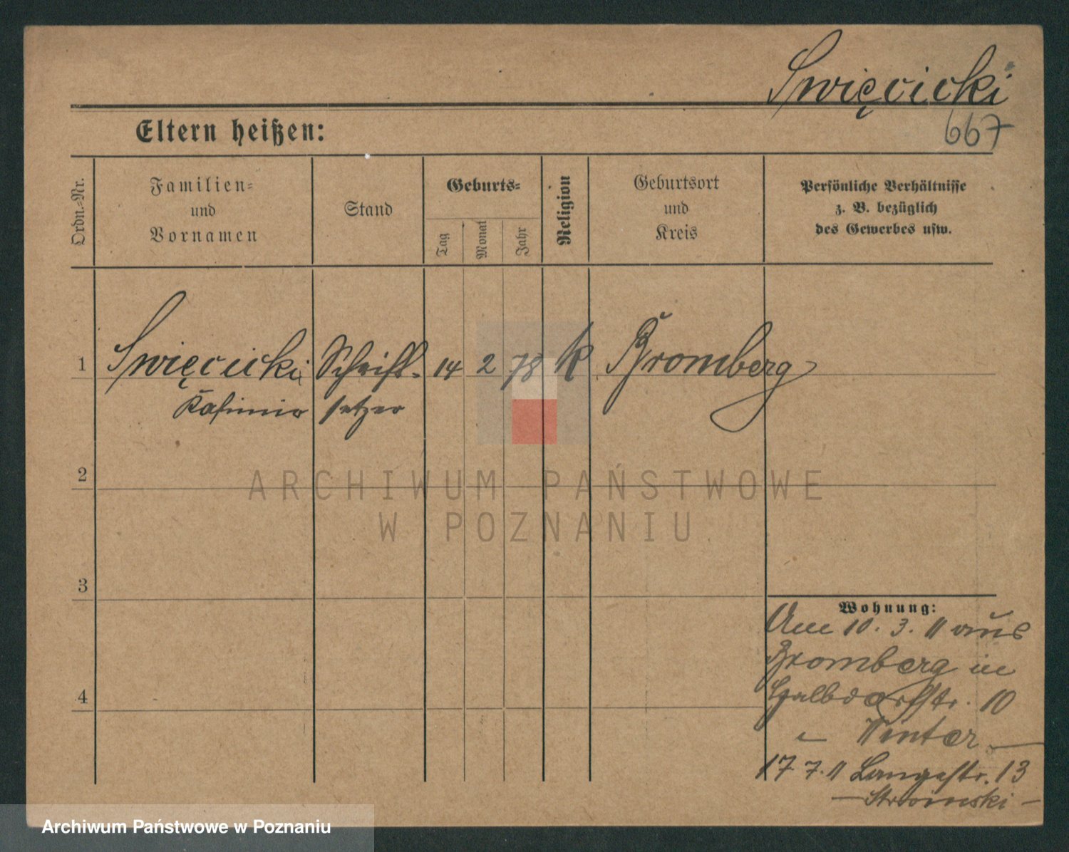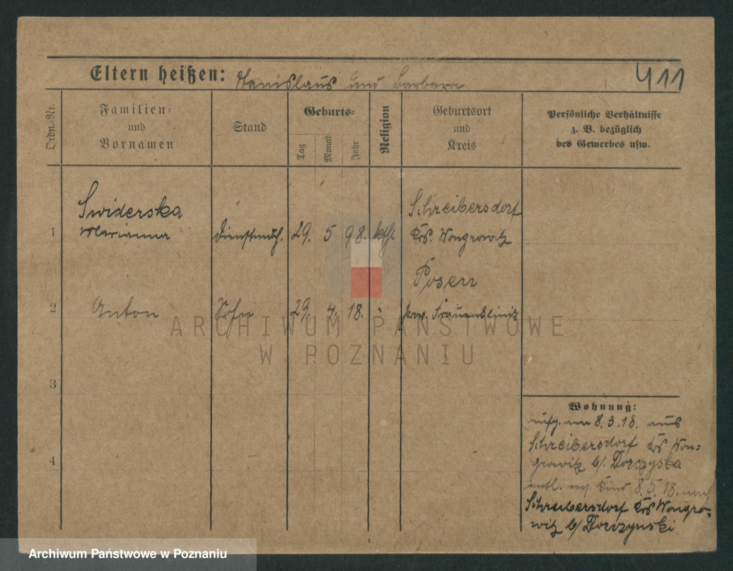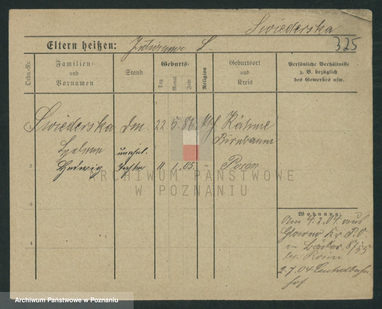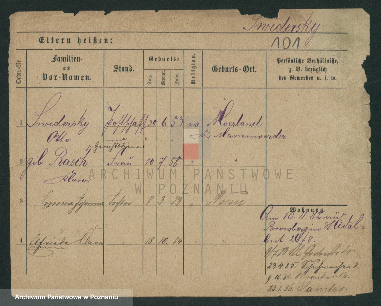 Podgląd karty osobowej dostępny jest po kliknięciu na nazwisko lub ikonkę karty. Można dokonywać powiększenia (ikony na górze) lub przechodzić między kolejnymi skanami (strzałki po bokach).