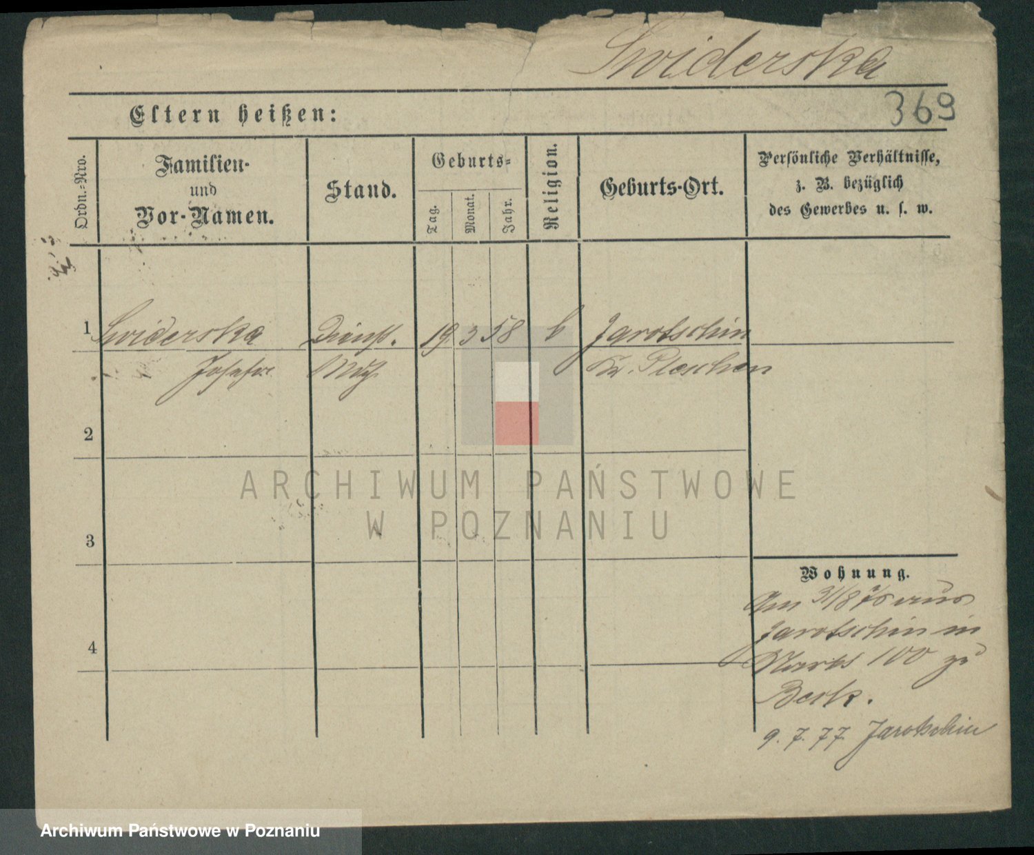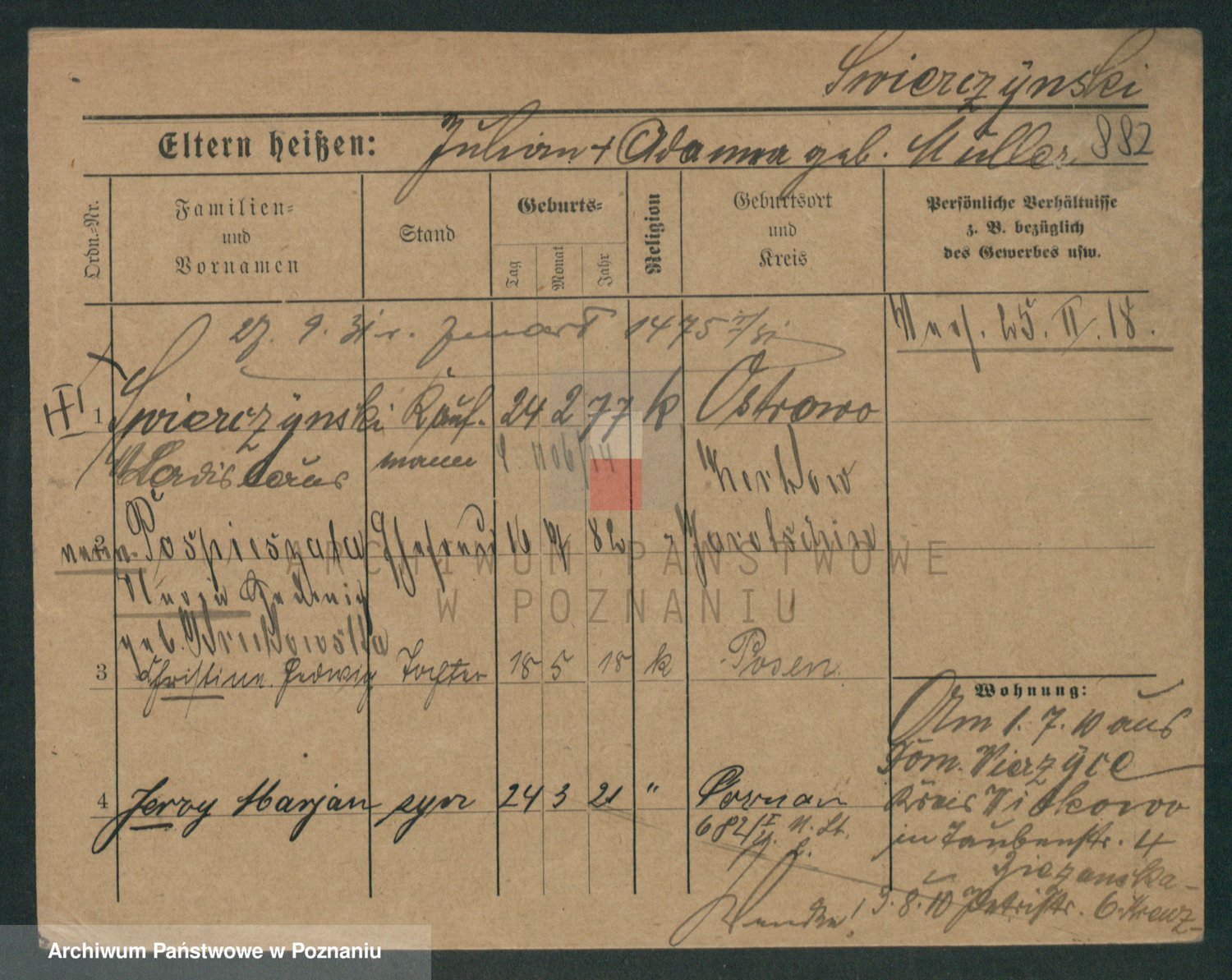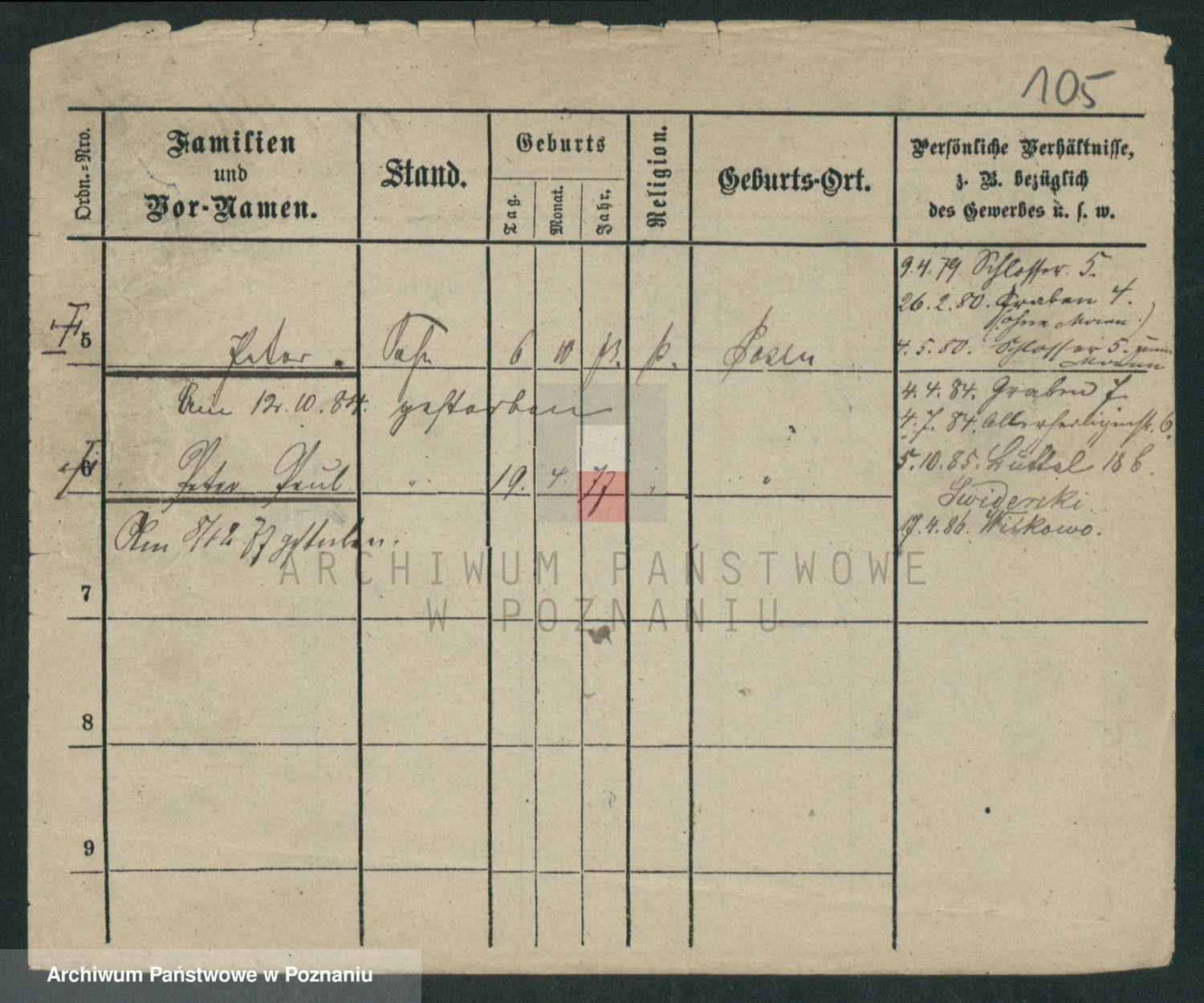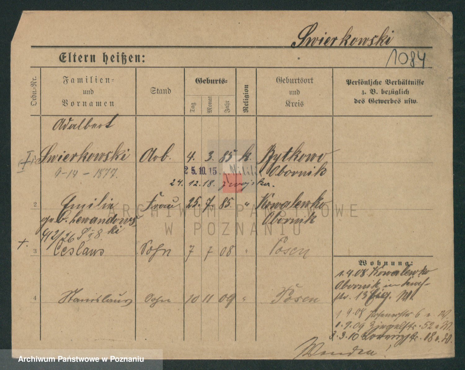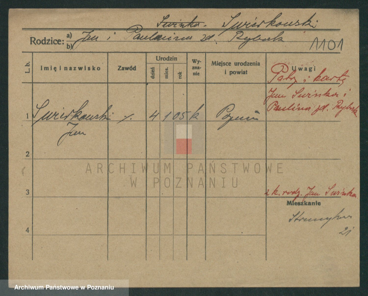 Podgląd karty osobowej dostępny jest po kliknięciu na nazwisko lub ikonkę karty. Można dokonywać powiększenia (ikony na górze) lub przechodzić między kolejnymi skanami (strzałki po bokach).