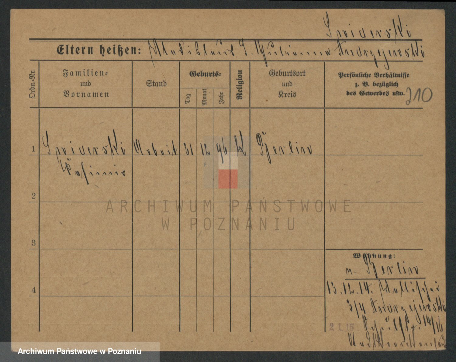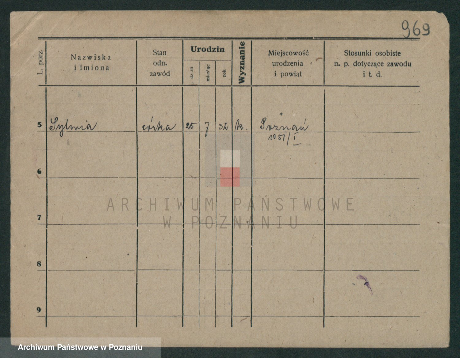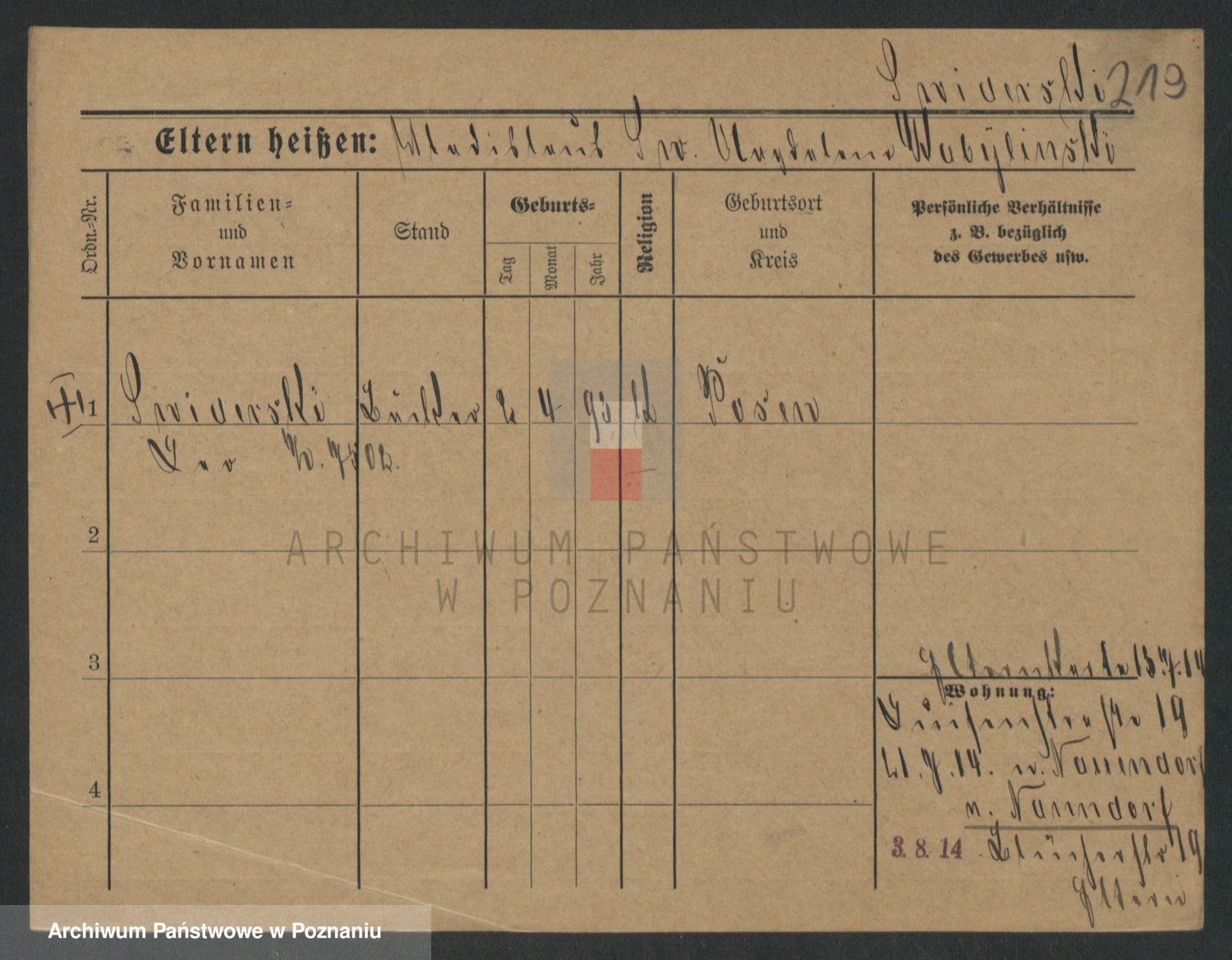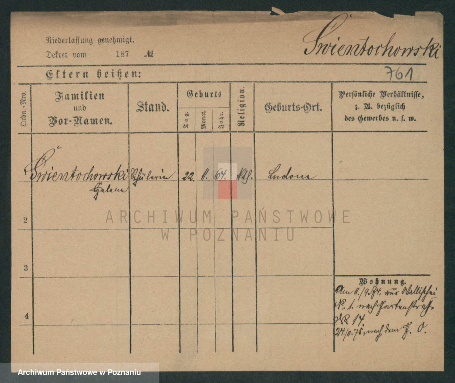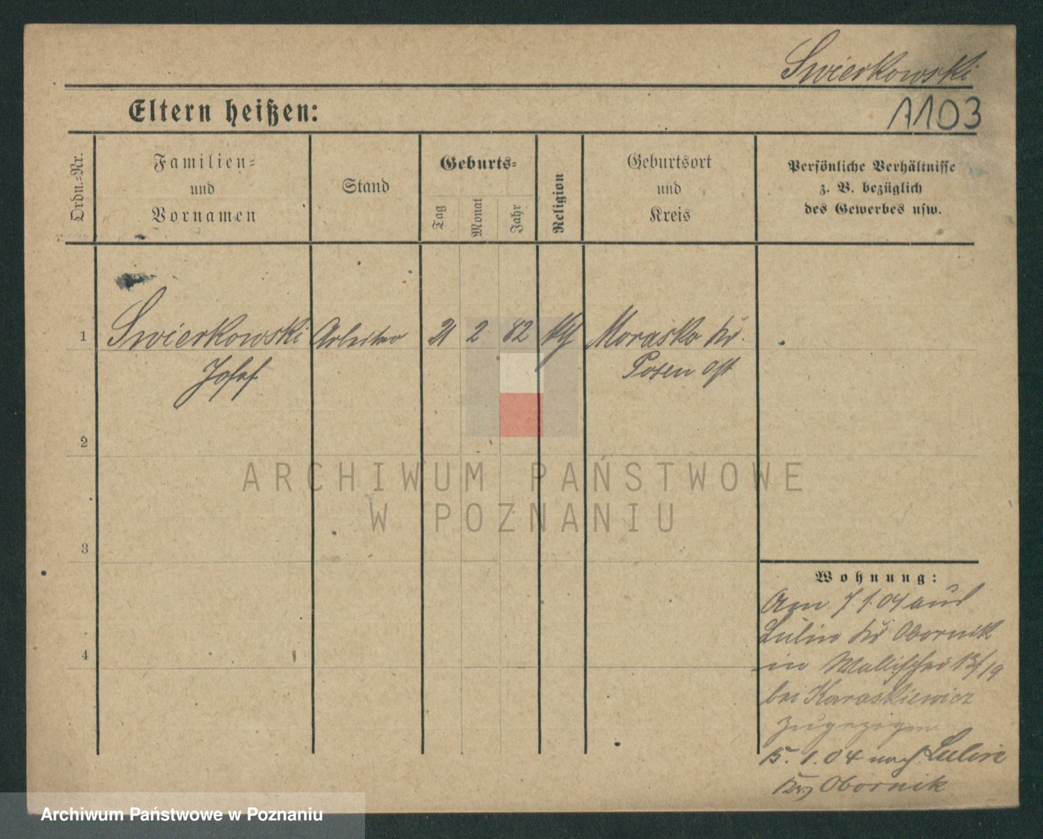 Podgląd karty osobowej dostępny jest po kliknięciu na nazwisko lub ikonkę karty. Można dokonywać powiększenia (ikony na górze) lub przechodzić między kolejnymi skanami (strzałki po bokach).